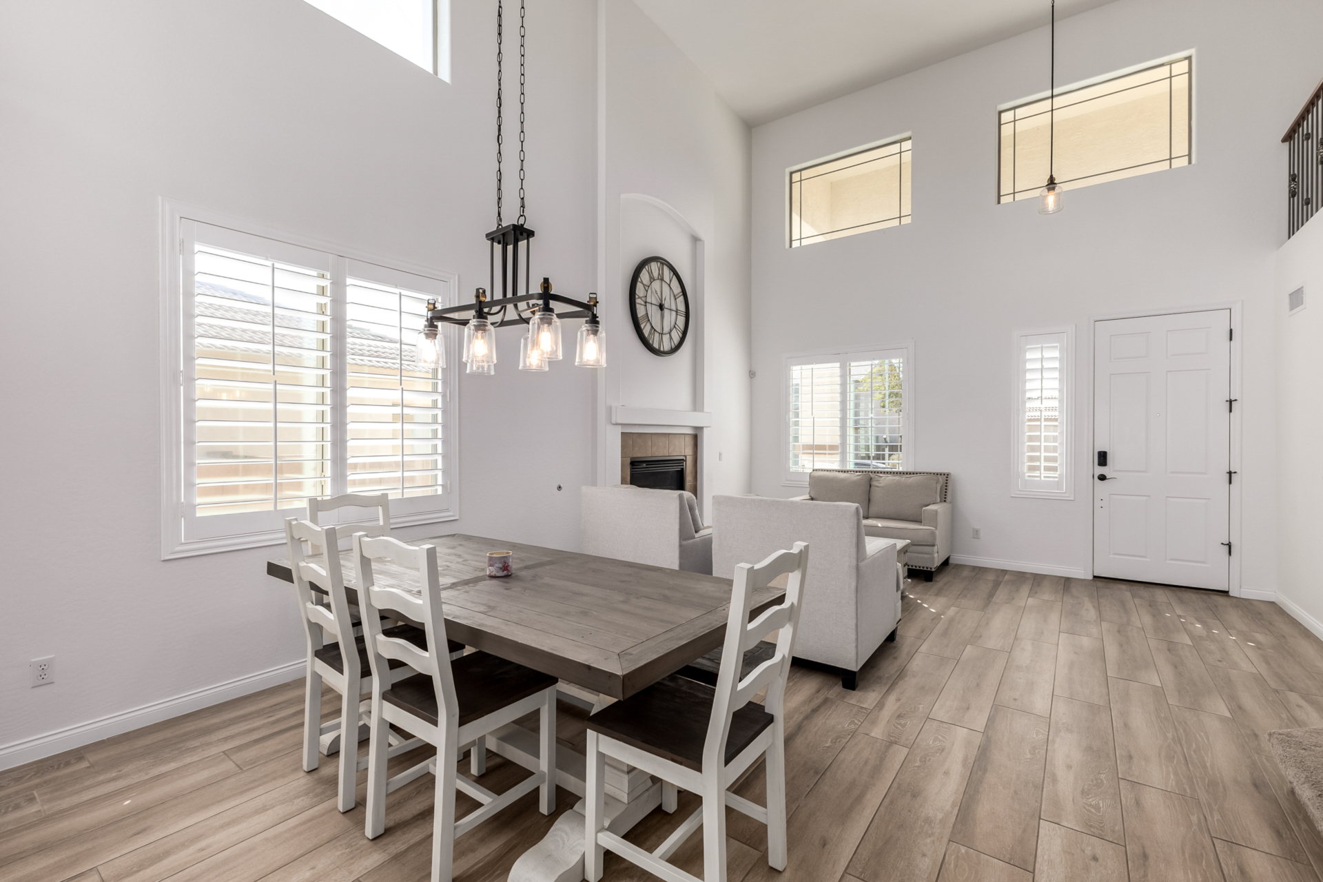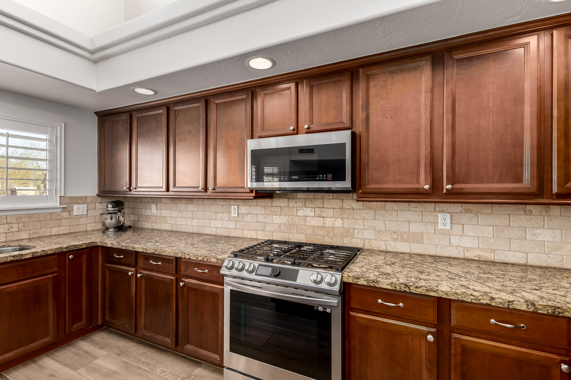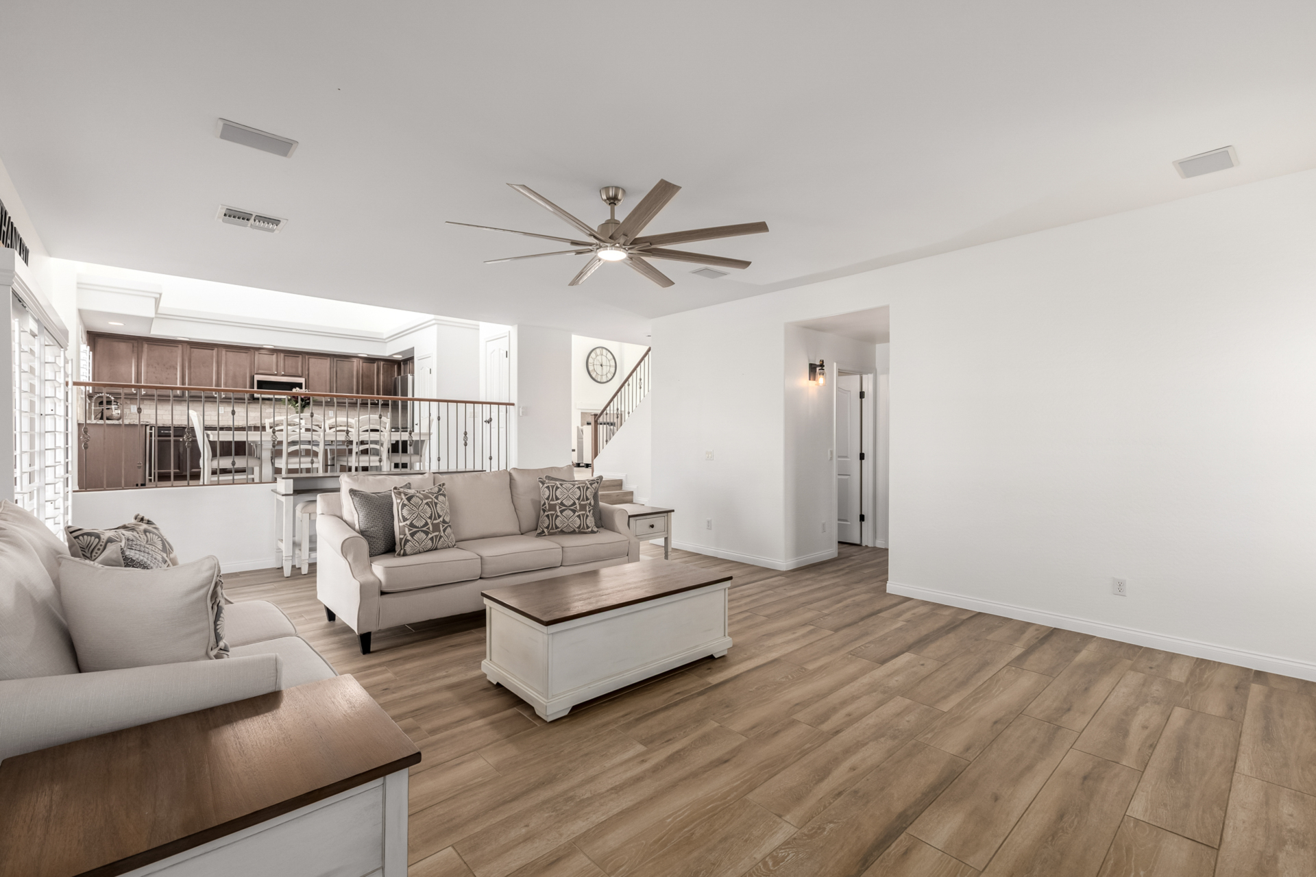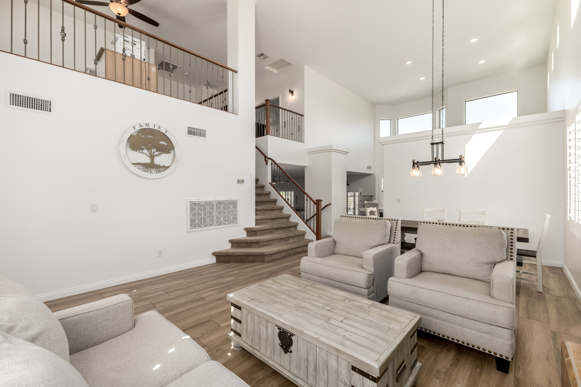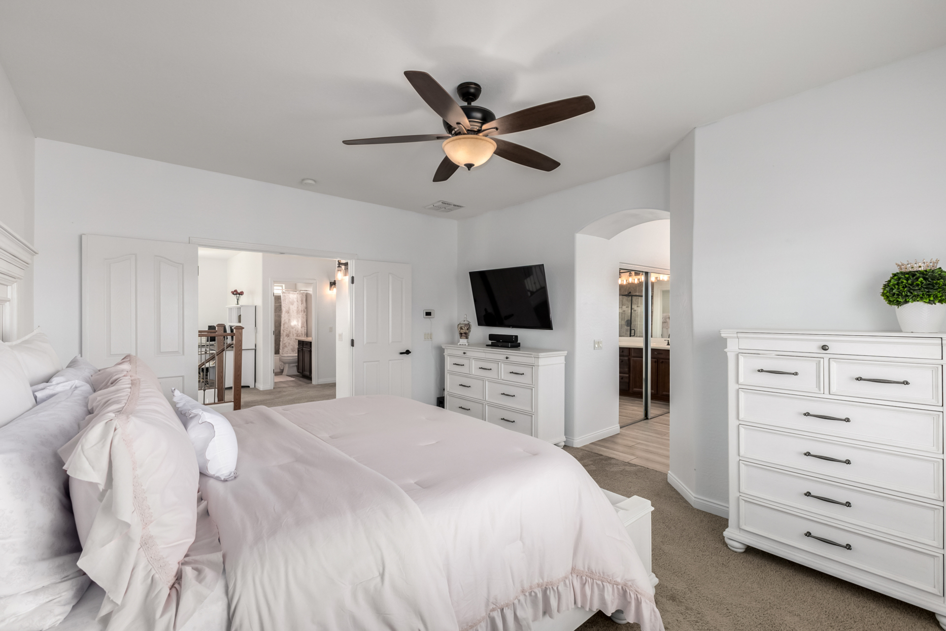 DESERT RETREAT WITH ALL THE EXTRAS! This sought-after Hacienda tri-level offers a versatile, open-concept layout featuring 4 bedrooms plus a loft and 3 full bathrooms, including a convenient downstairs bedroom and bath. Enjoy formal living and dining spaces highlighted by a cozy gas fireplace, along with an expansive great room designed for everyday living and entertaining. The 3-car garage provides ample storage and parking. The chef-inspired kitchen is equipped with granite countertops, a marbled tile backsplash, stainless steel appliances, and a charming bay window seat with built-in storage. Bathrooms have been beautifully updated with tiled surrounds, sleek glass enclosures, and oil-rubbed bronze fixtures for a refined finish.