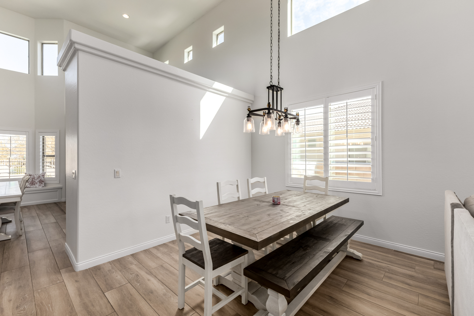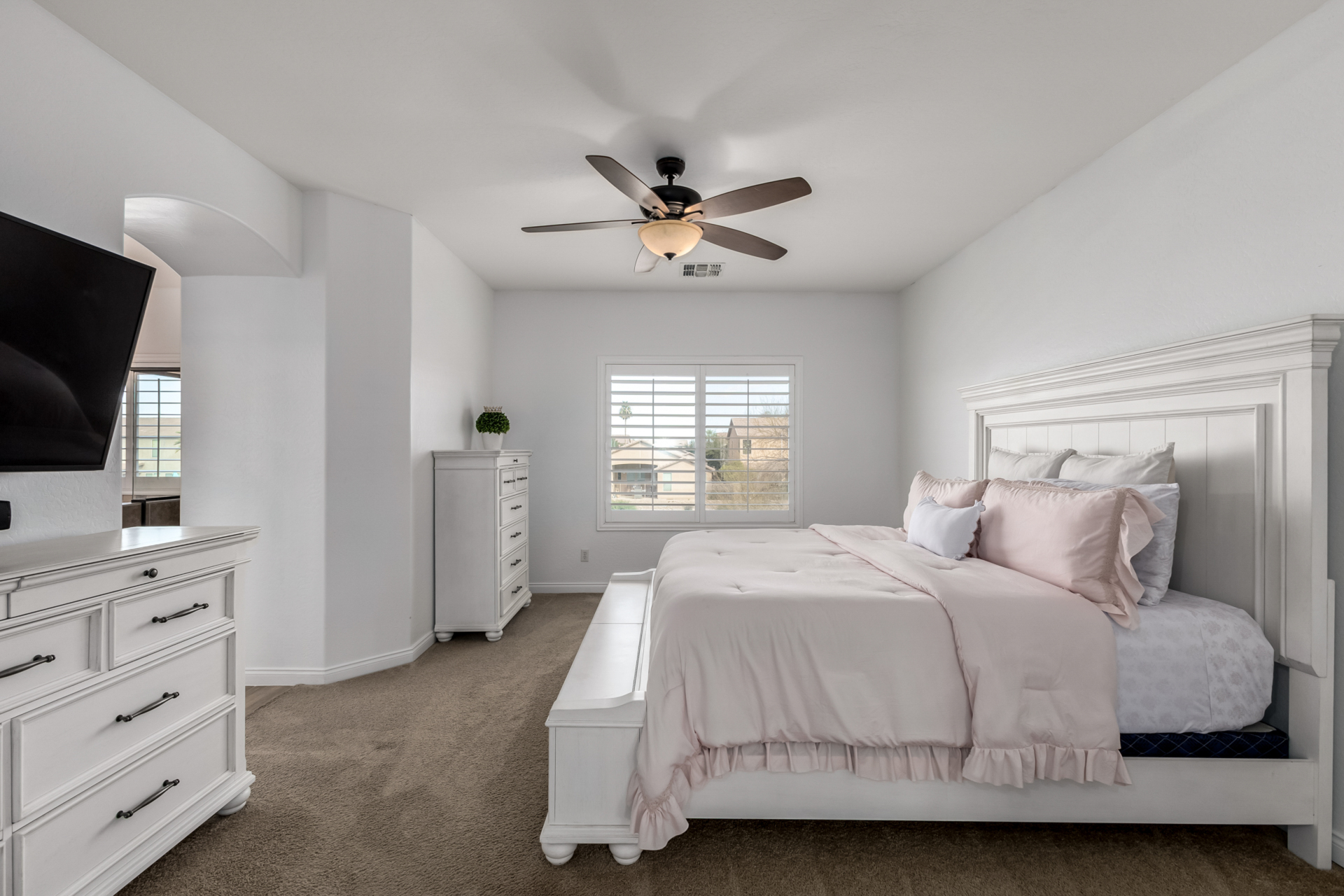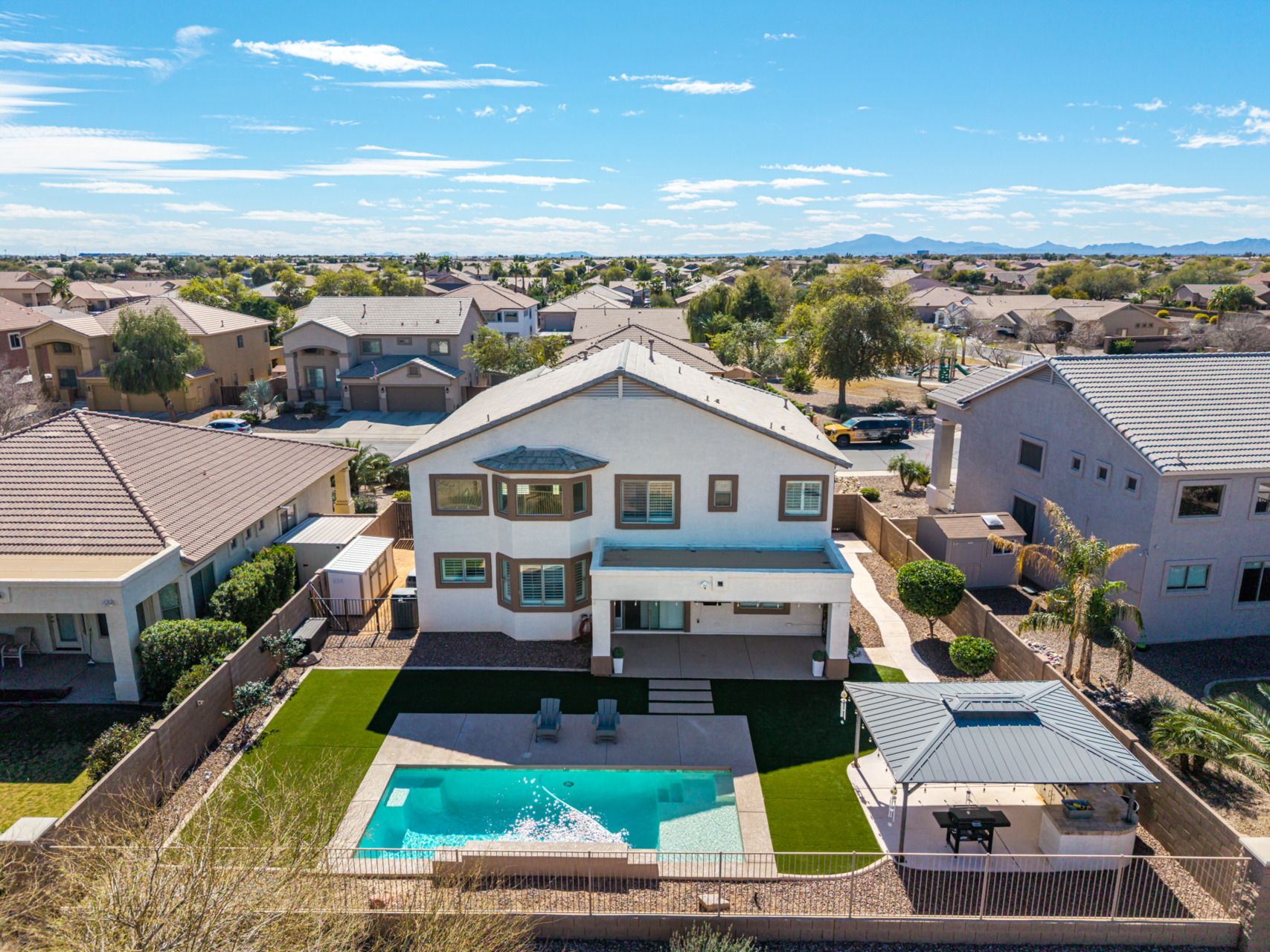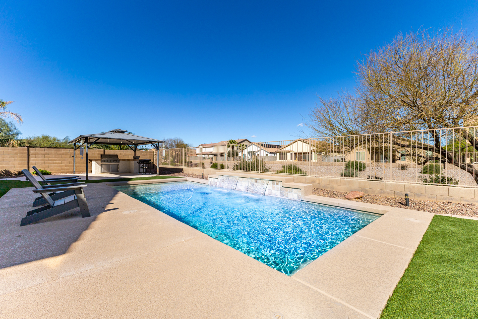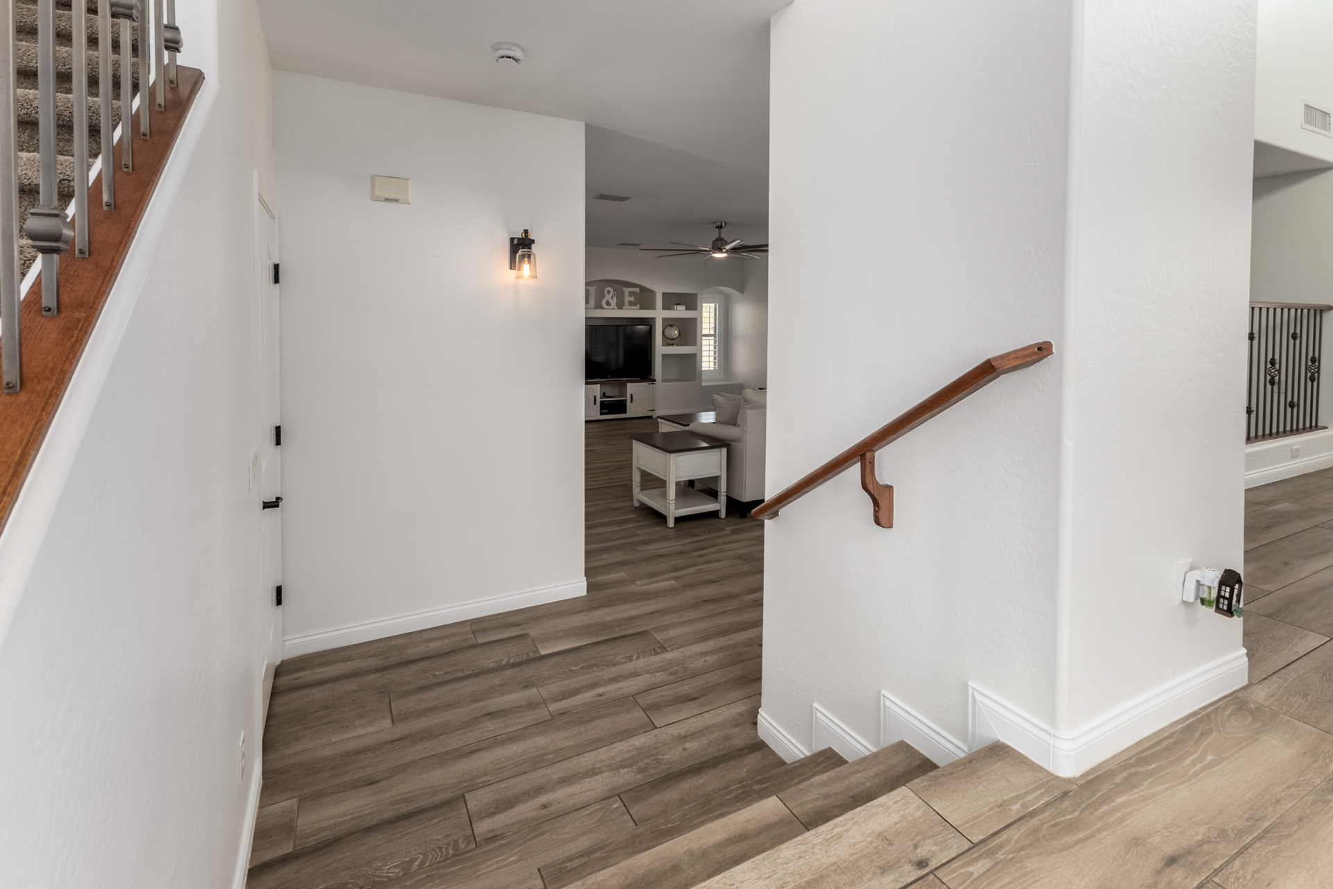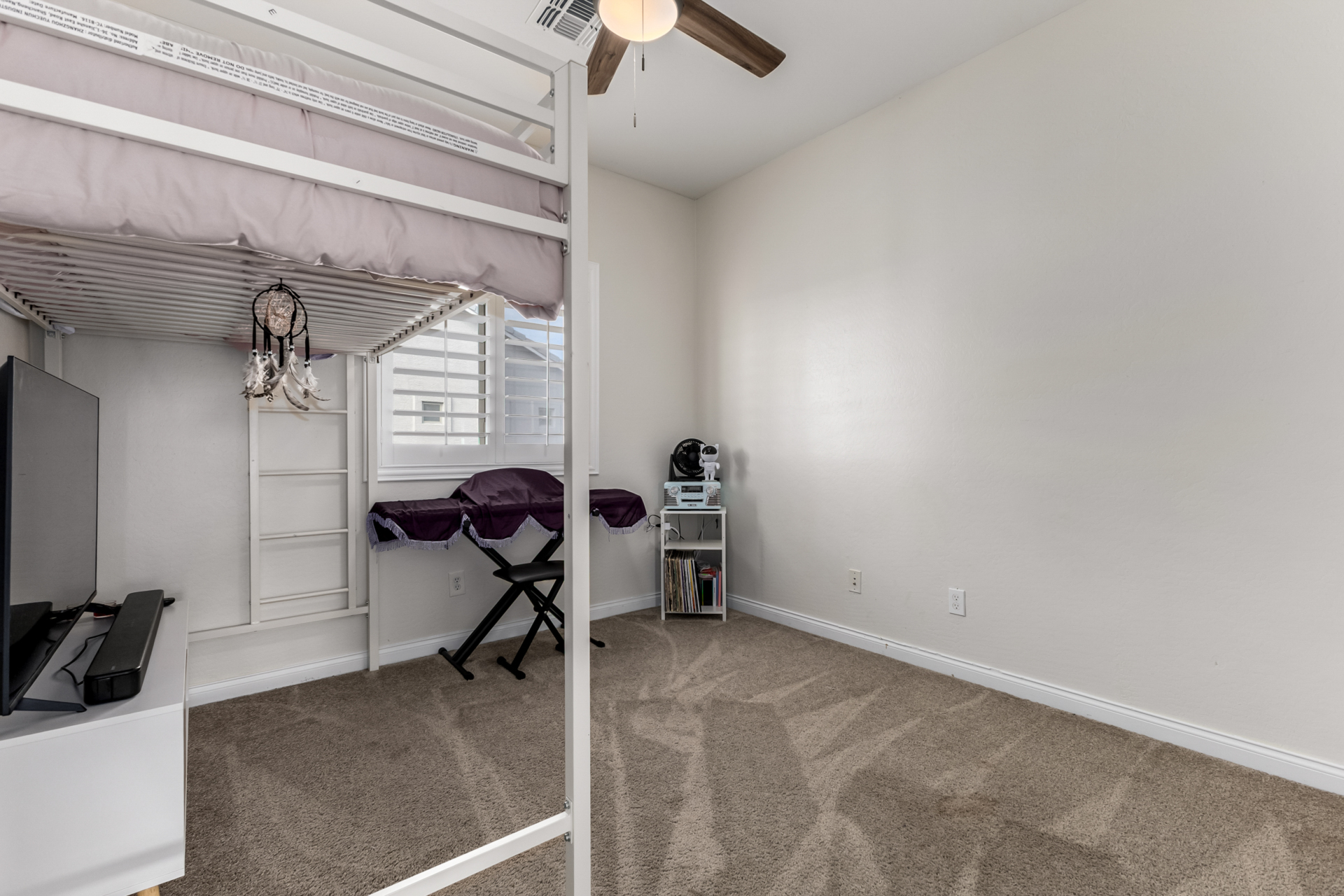 DESERT RETREAT WITH ALL THE EXTRAS! This sought-after Hacienda tri-level offers a versatile, open-concept layout featuring 4 bedrooms plus a loft and 3 full bathrooms, including a convenient downstairs bedroom and bath. Enjoy formal living and dining spaces highlighted by a cozy gas fireplace, along with an expansive great room designed for everyday living and entertaining. The 3-car garage provides ample storage and parking. The chef-inspired kitchen is equipped with granite countertops, a marbled tile backsplash, stainless steel appliances, and a charming bay window seat with built-in storage. Bathrooms have been beautifully updated with tiled surrounds, sleek glass enclosures, and oil-rubbed bronze fixtures for a refined finish.