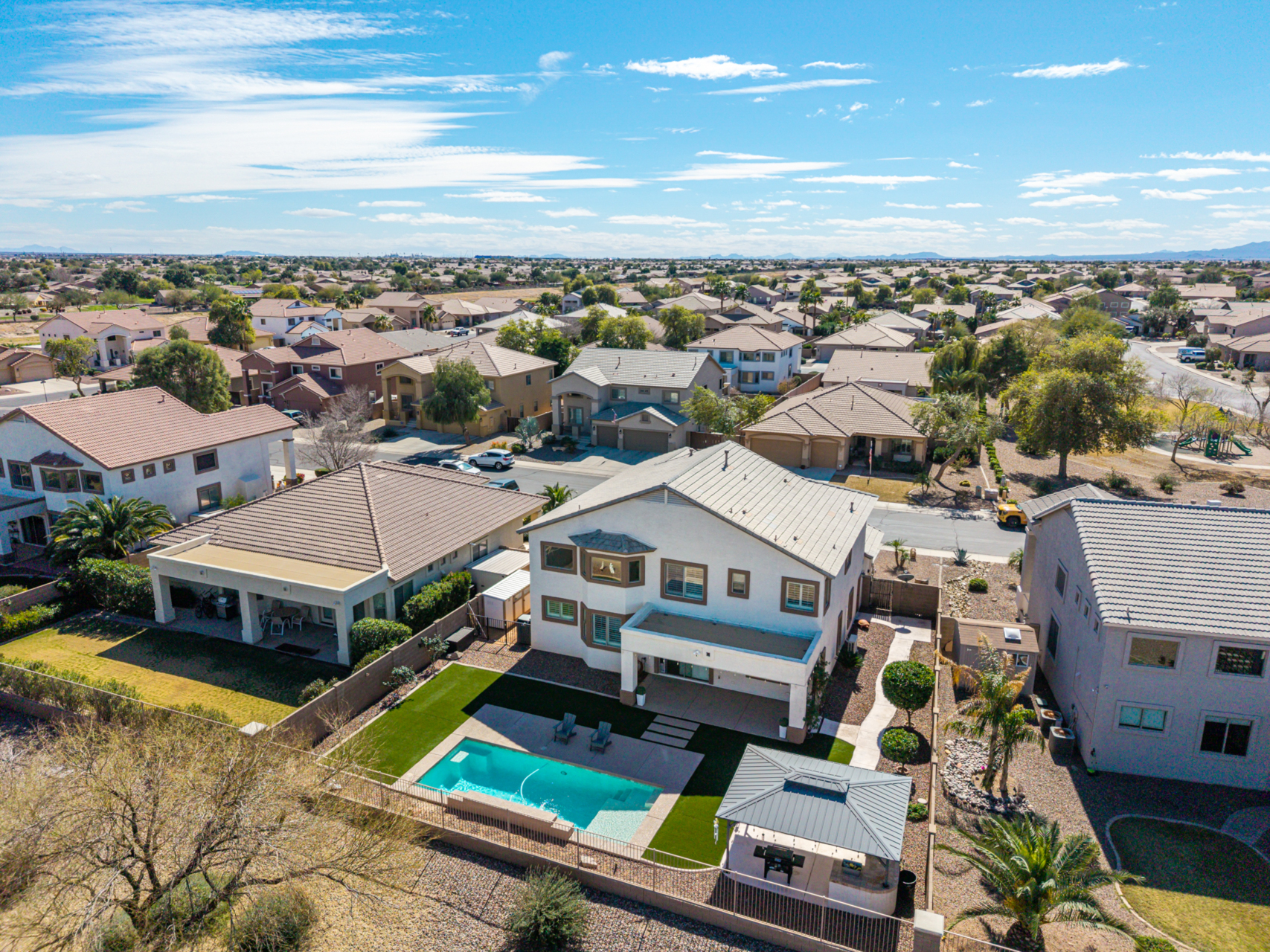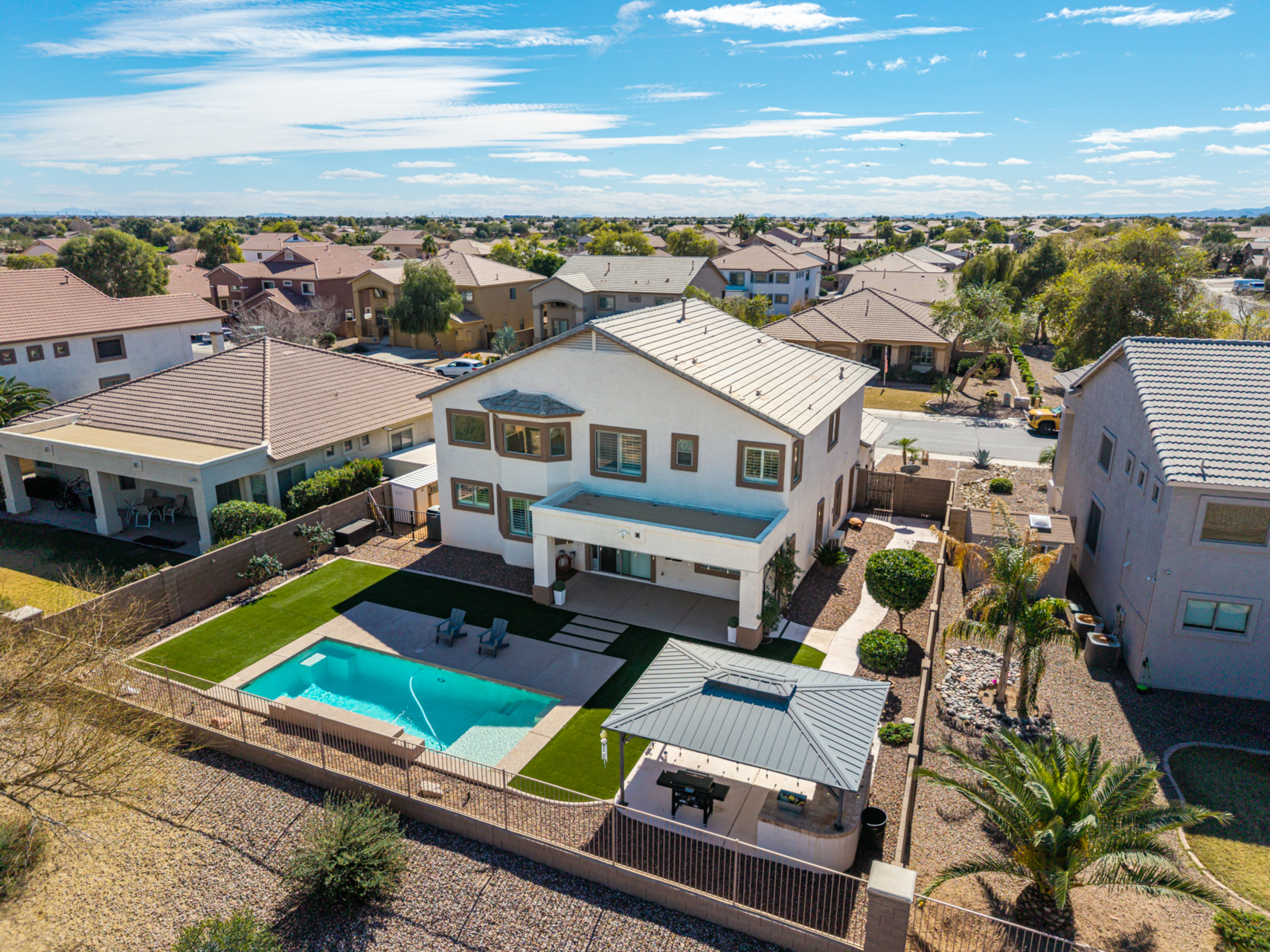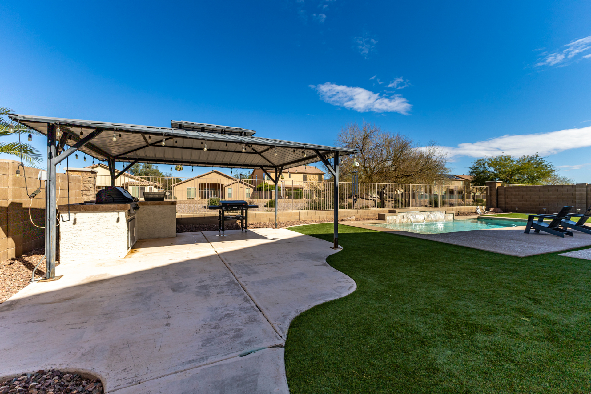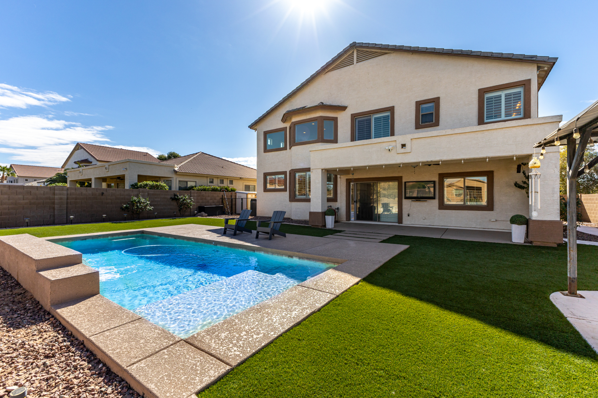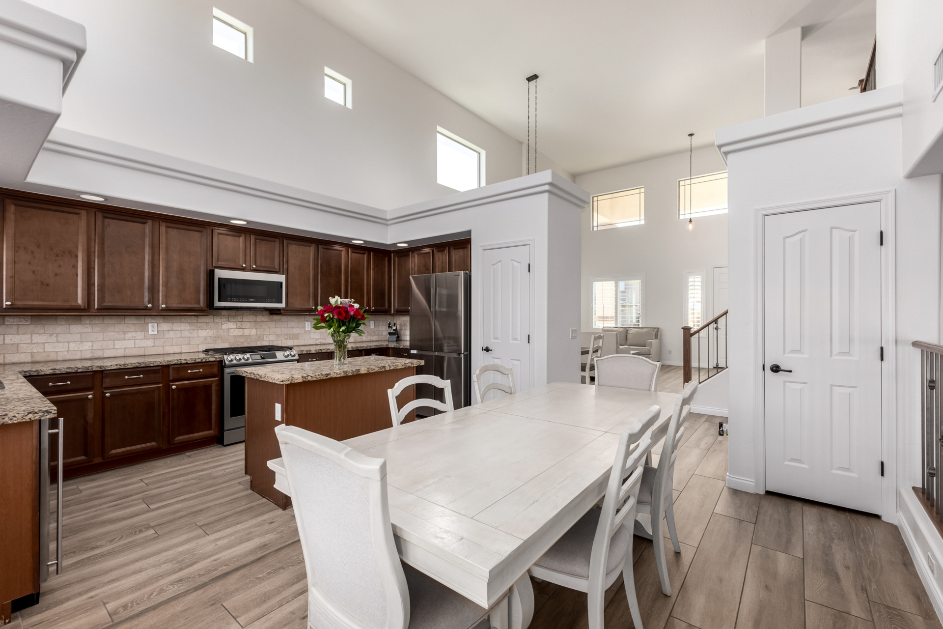DESERT RETREAT WITH ALL THE EXTRAS! This sought-after Hacienda tri-level offers a versatile, open-concept layout featuring 4 bedrooms plus a loft and 3 full bathrooms, including a convenient downstairs bedroom and bath. Enjoy formal living and dining spaces highlighted by a cozy gas fireplace, along with an expansive great room designed for everyday living and entertaining. The 3-car garage provides ample storage and parking. The chef-inspired kitchen is equipped with granite countertops, a marbled tile backsplash, stainless steel appliances, and a charming bay window seat with built-in storage. Bathrooms have been beautifully updated with tiled surrounds, sleek glass enclosures, and oil-rubbed bronze fixtures for a refined finish.