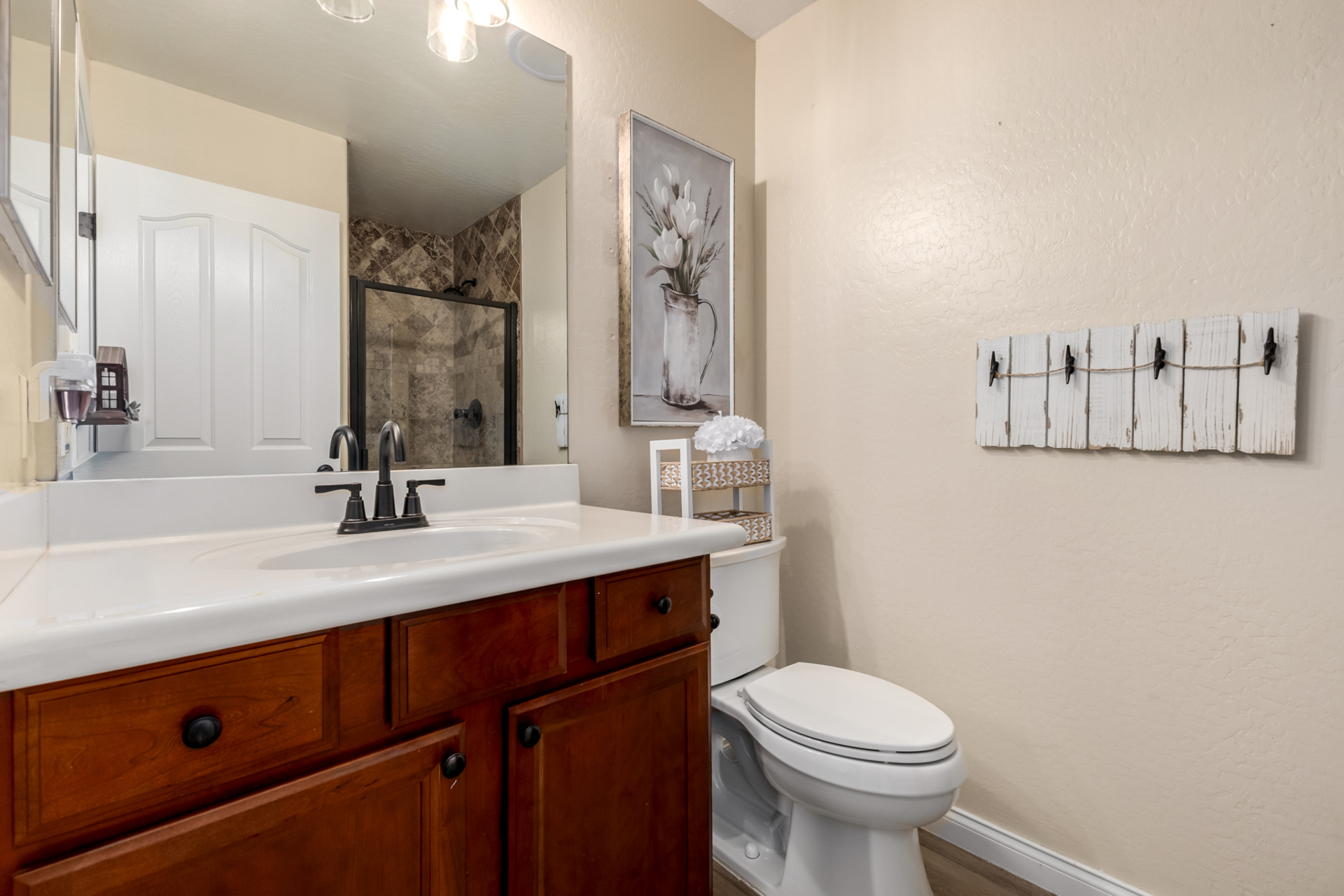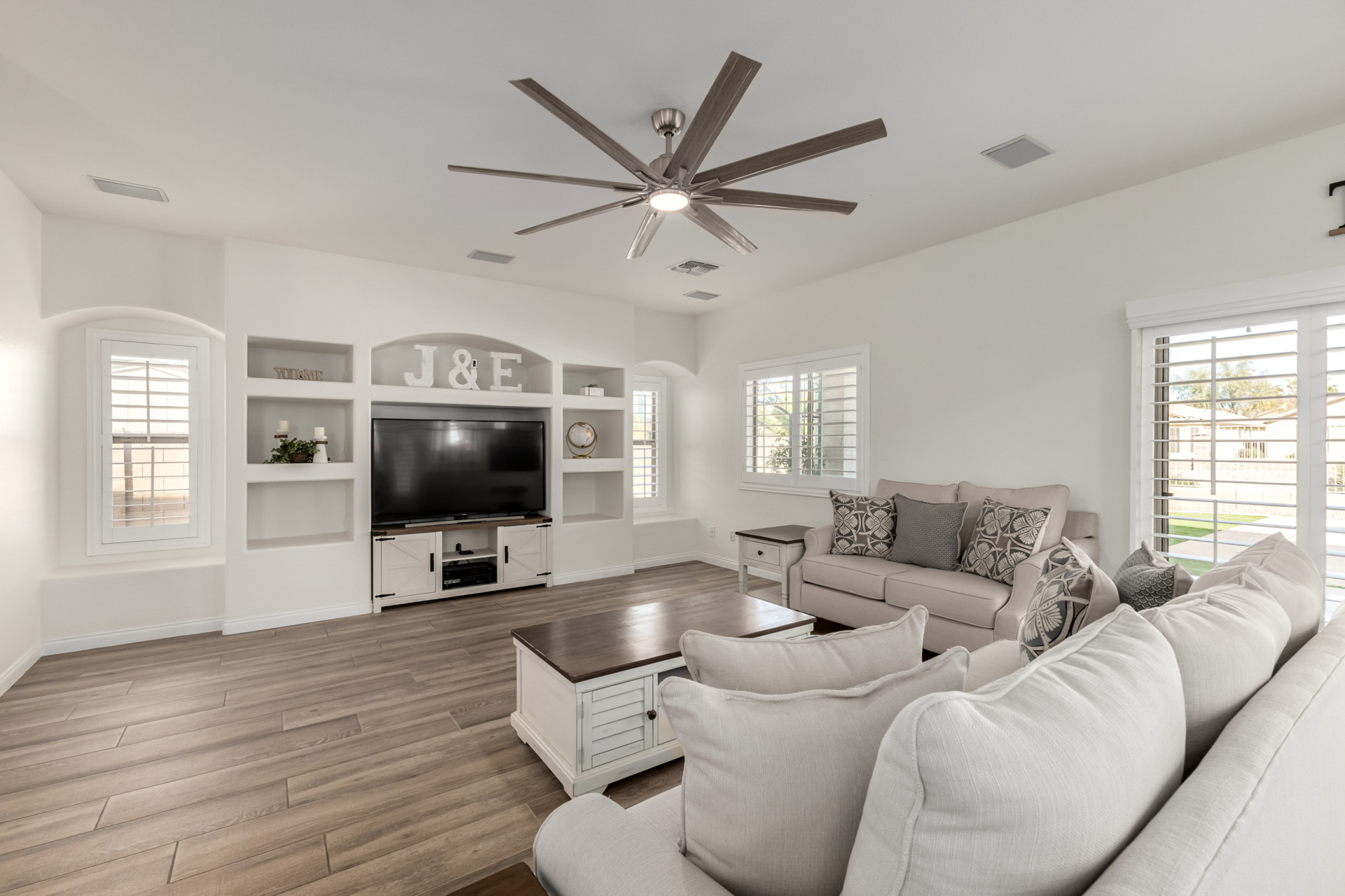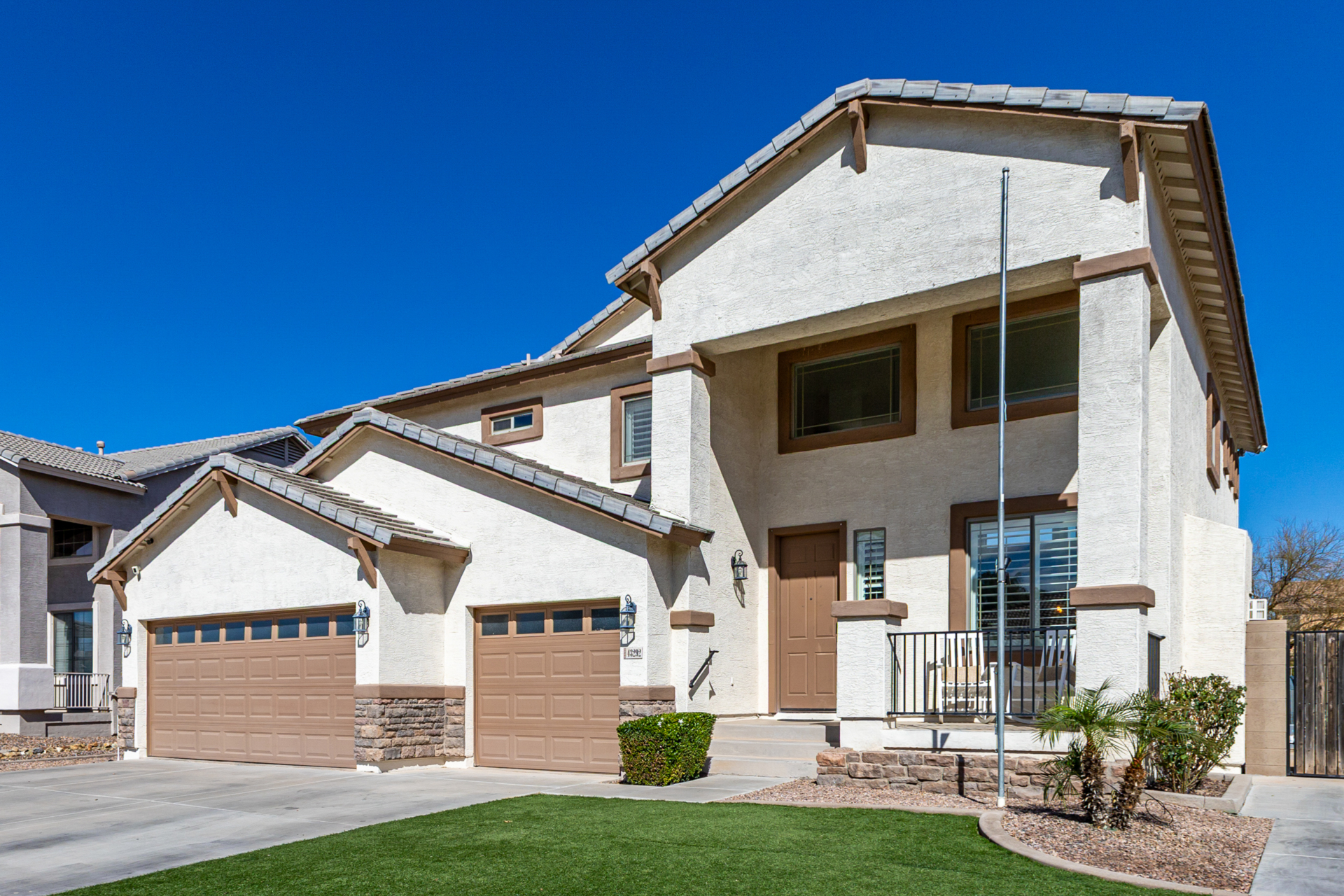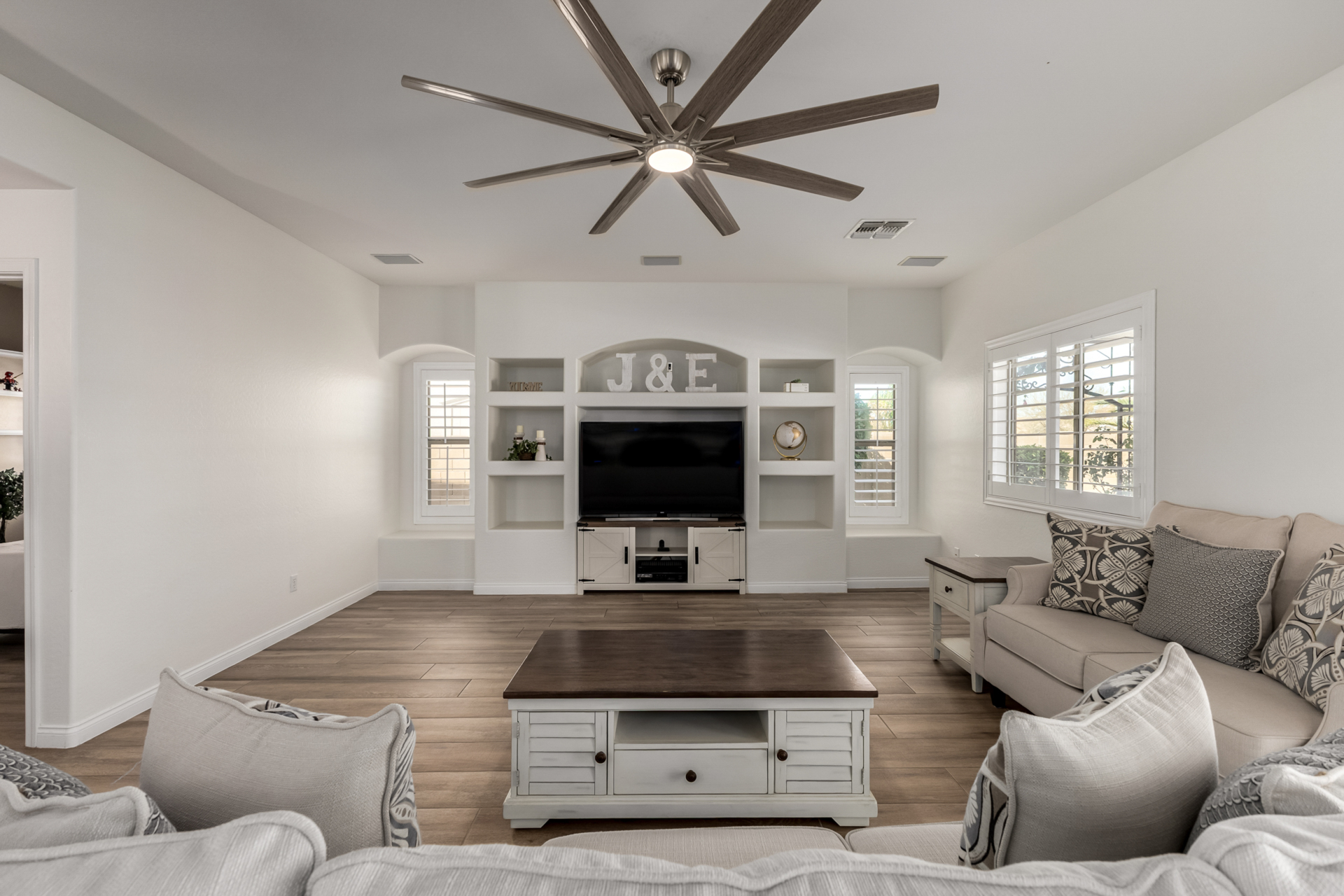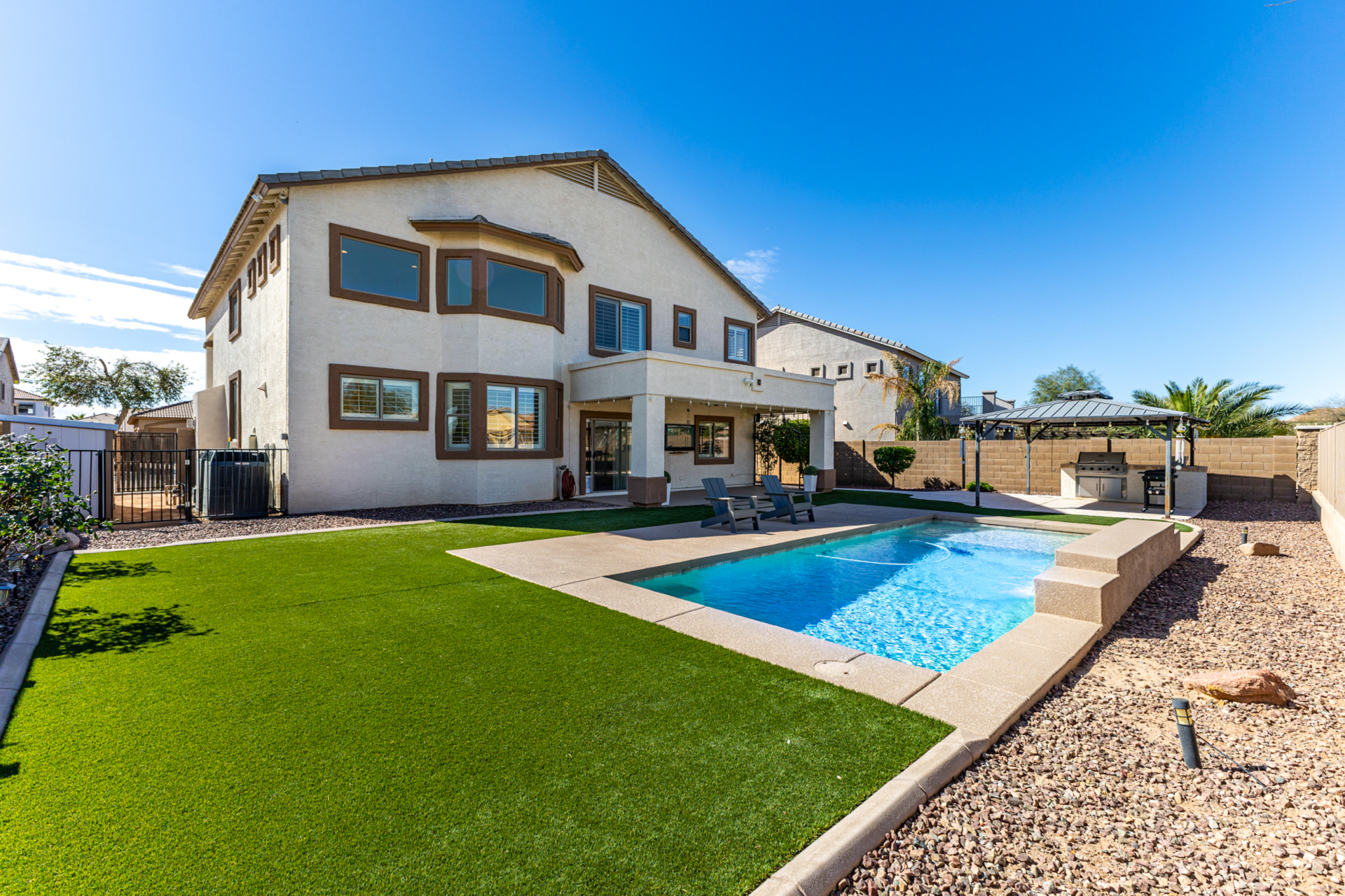 DESERT RETREAT WITH ALL THE EXTRAS! This sought-after Hacienda tri-level offers a versatile, open-concept layout featuring 4 bedrooms plus a loft and 3 full bathrooms, including a convenient downstairs bedroom and bath. Enjoy formal living and dining spaces highlighted by a cozy gas fireplace, along with an expansive great room designed for everyday living and entertaining. The 3-car garage provides ample storage and parking. The chef-inspired kitchen is equipped with granite countertops, a marbled tile backsplash, stainless steel appliances, and a charming bay window seat with built-in storage. Bathrooms have been beautifully updated with tiled surrounds, sleek glass enclosures, and oil-rubbed bronze fixtures for a refined finish.