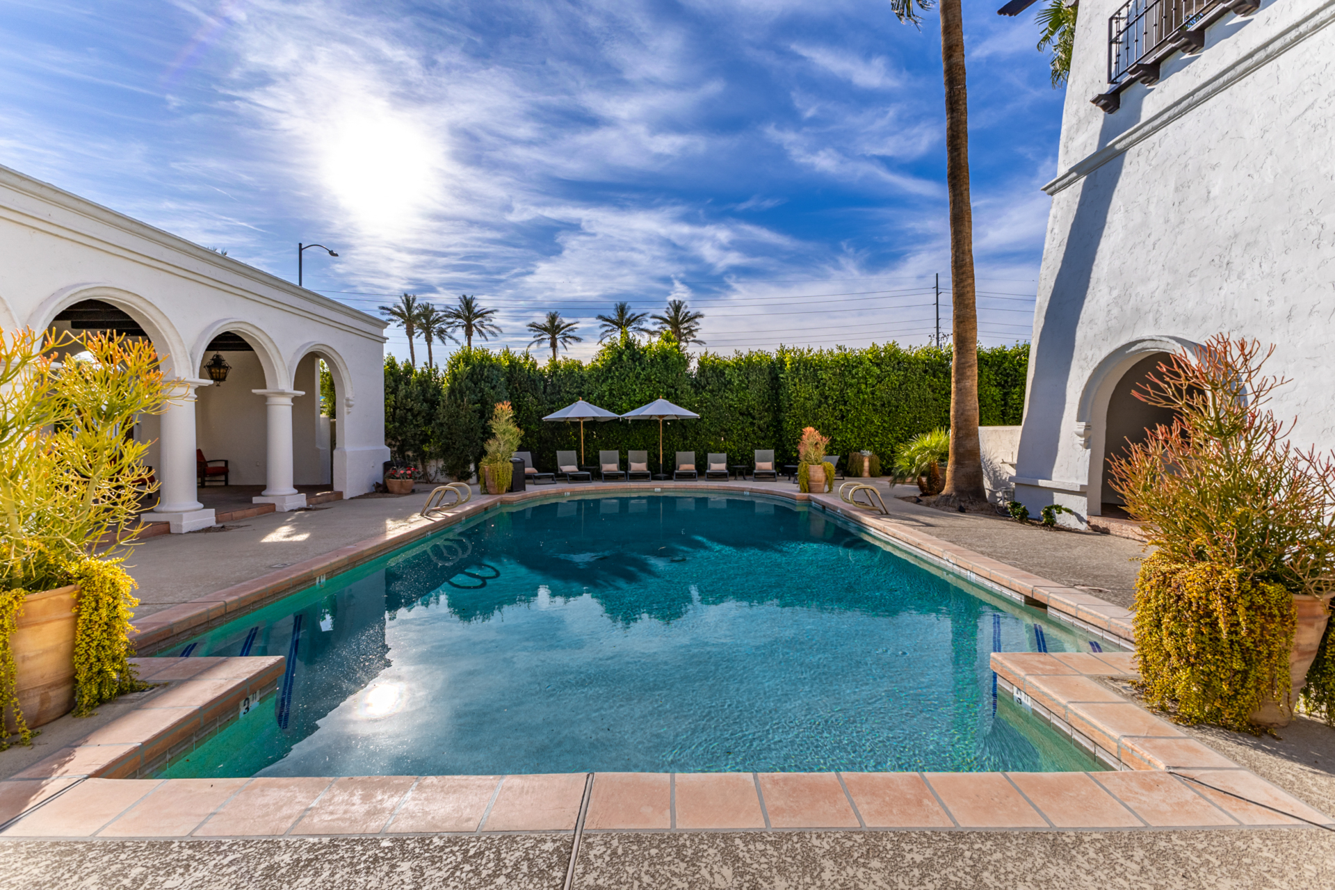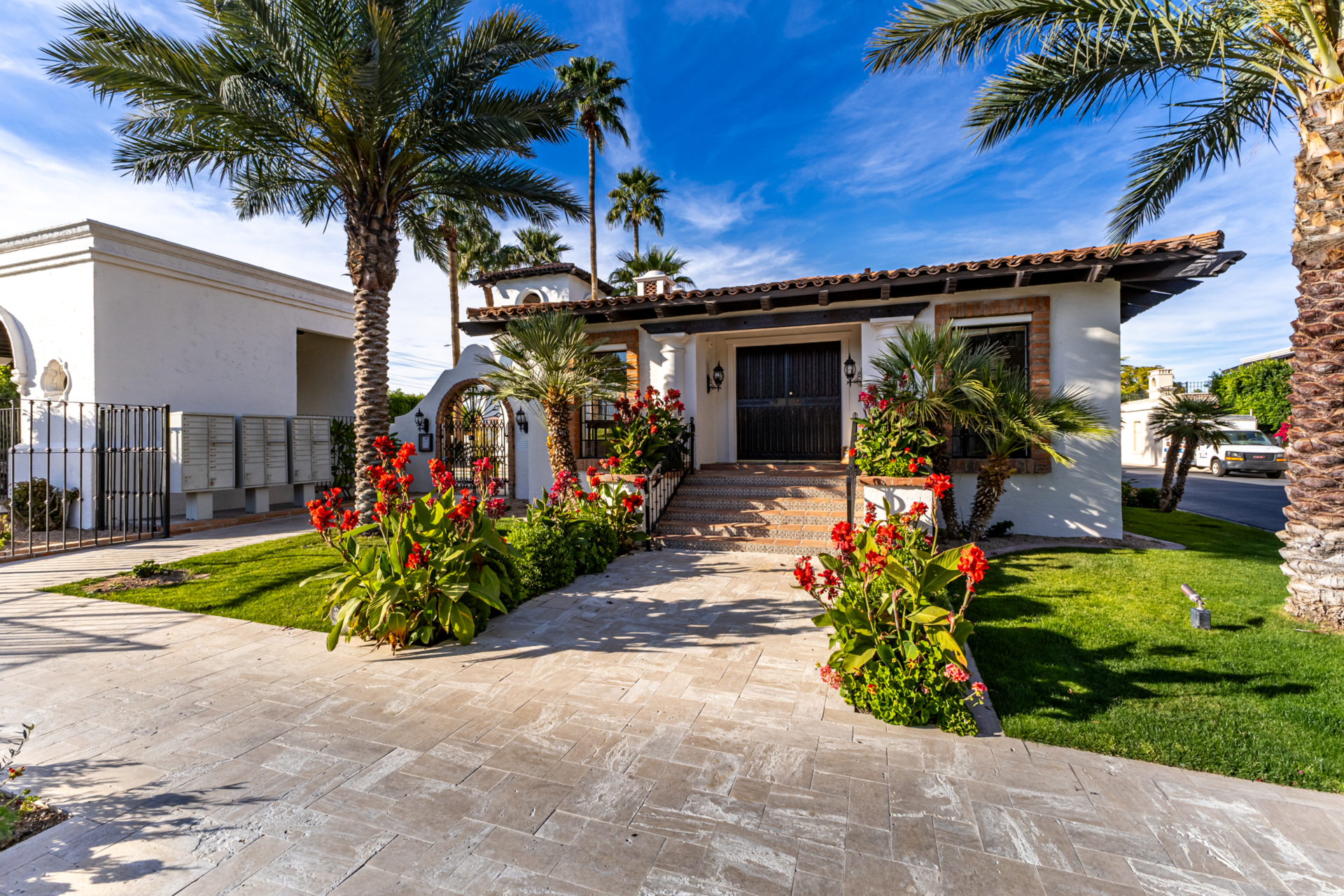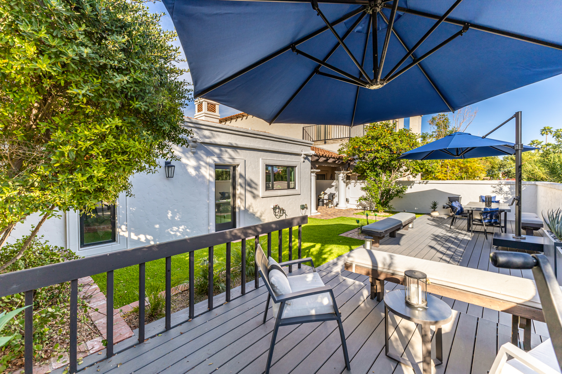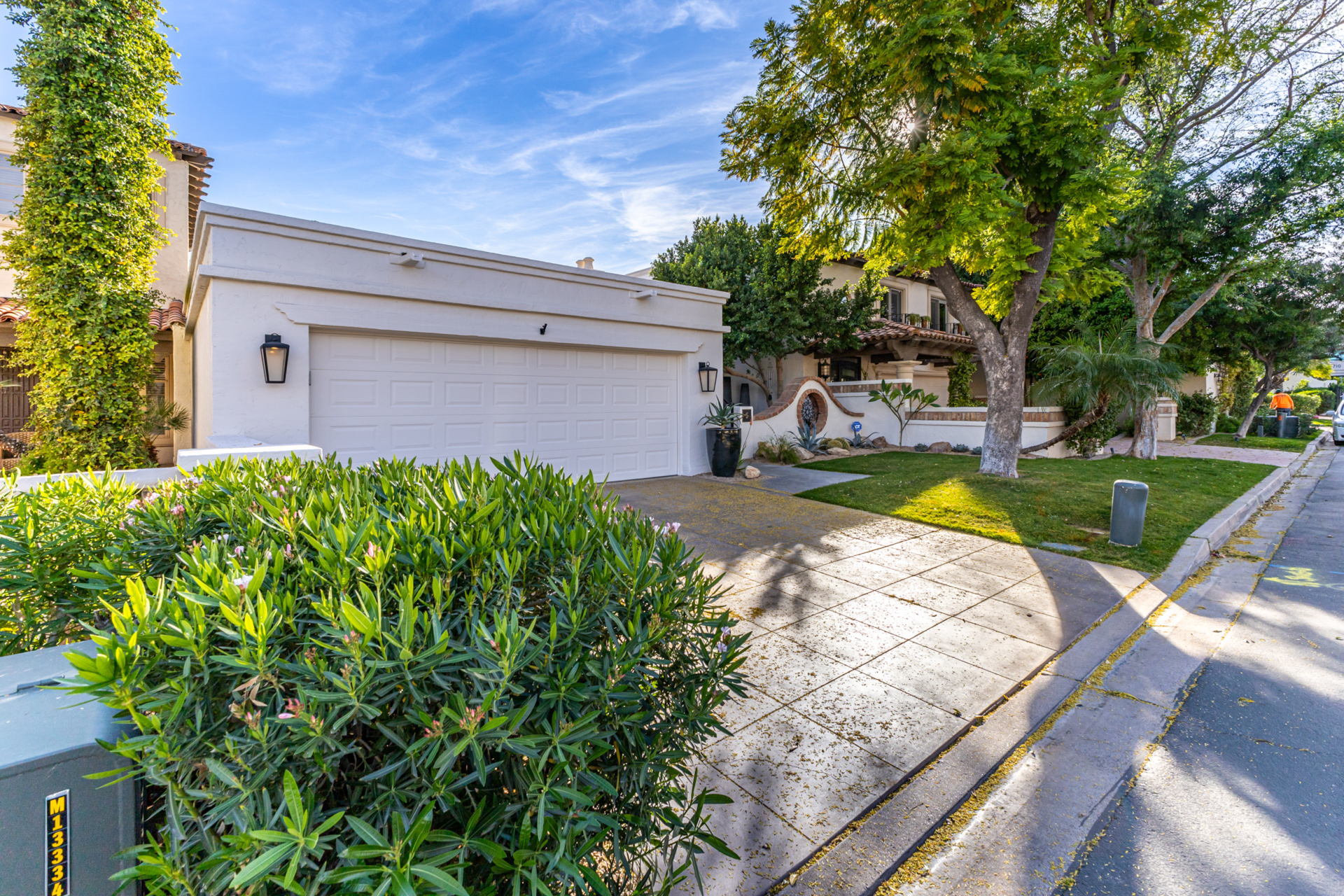 Indulge in refined elegance in this exquisite single-level townhome in the prestigious gated community of Cuernavaca. Offering 2 bedrooms plus a sophisticated den, 2 baths, and a 2-car garage, this home blends timeless design with modern comfort. Wood floors, vaulted ceilings with exposed beams, designer lighting, and a soft neutral palette create an elevated ambiance. The inviting living room features a charming fireplace. The chef-inspired kitchen showcases abundant cabinetry, quartz countertops with matching backsplash, and stainless steel appliances. The serene owner suite offers dual vanities, spa-like shower & custom walk-in closet. Secondary bedroom overlooking custom resort-like backyard complete with multiple sitting areas, lush landscape and syn lawn adds to the beauty.