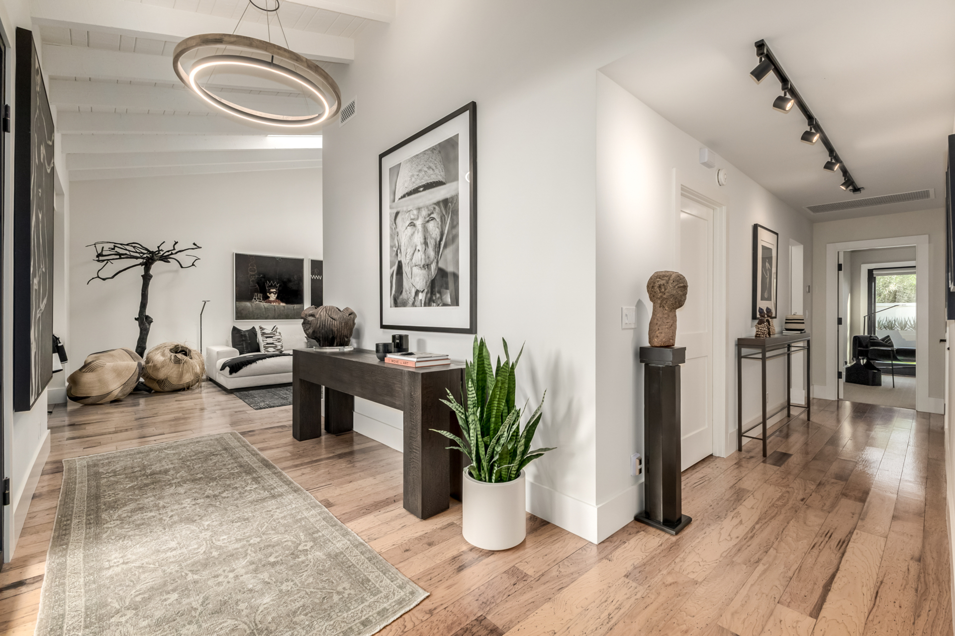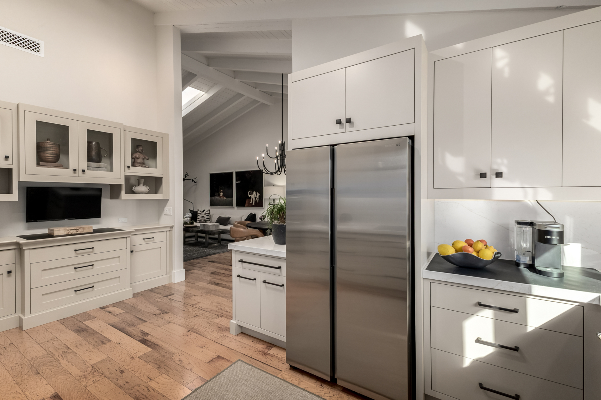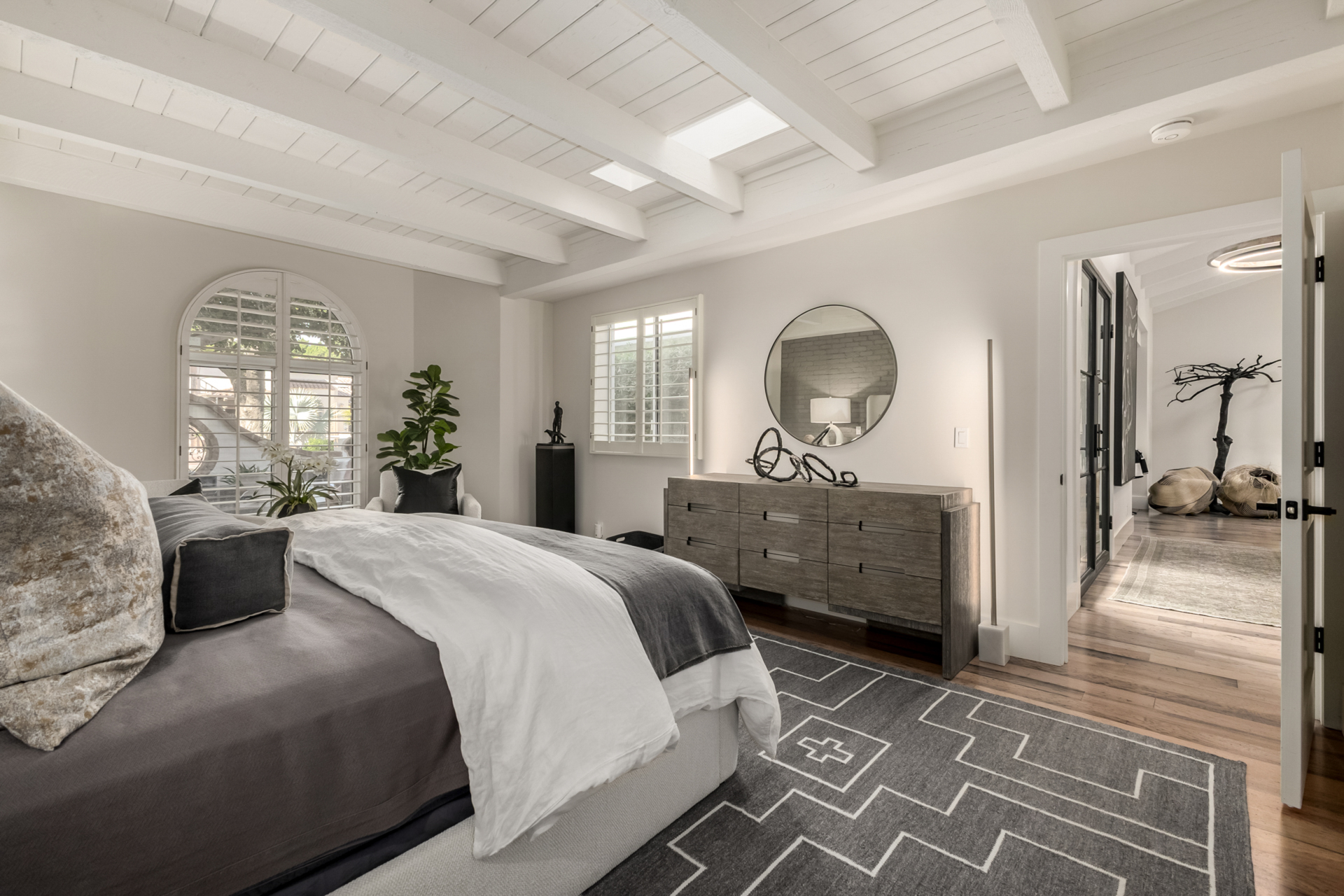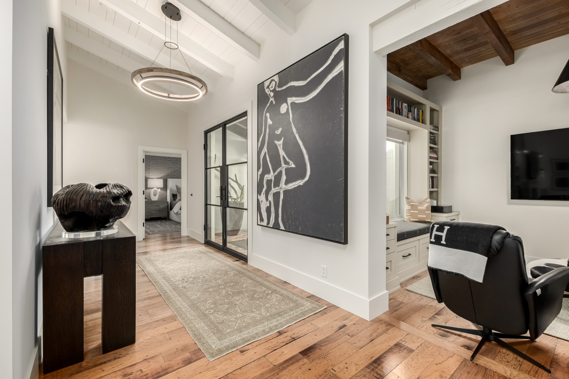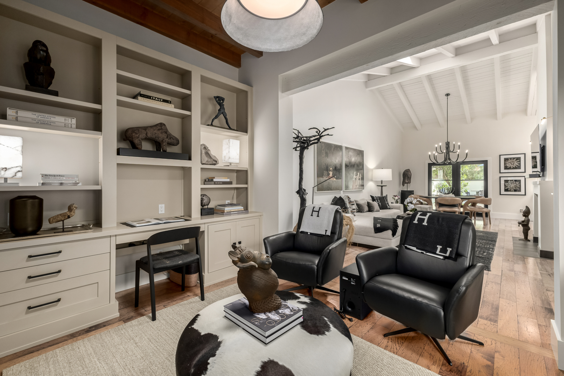 Indulge in refined elegance in this exquisite single-level townhome in the prestigious gated community of Cuernavaca. Offering 2 bedrooms plus a sophisticated den, 2 baths, and a 2-car garage, this home blends timeless design with modern comfort. Wood floors, vaulted ceilings with exposed beams, designer lighting, and a soft neutral palette create an elevated ambiance. The inviting living room features a charming fireplace. The chef-inspired kitchen showcases abundant cabinetry, quartz countertops with matching backsplash, and stainless steel appliances. The serene owner suite offers dual vanities, spa-like shower & custom walk-in closet. Secondary bedroom overlooking custom resort-like backyard complete with multiple sitting areas, lush landscape and syn lawn adds to the beauty.