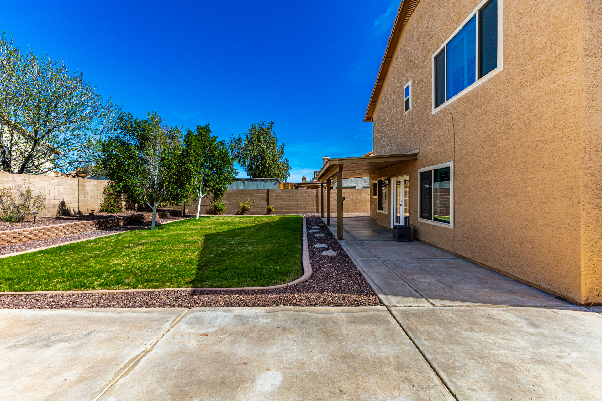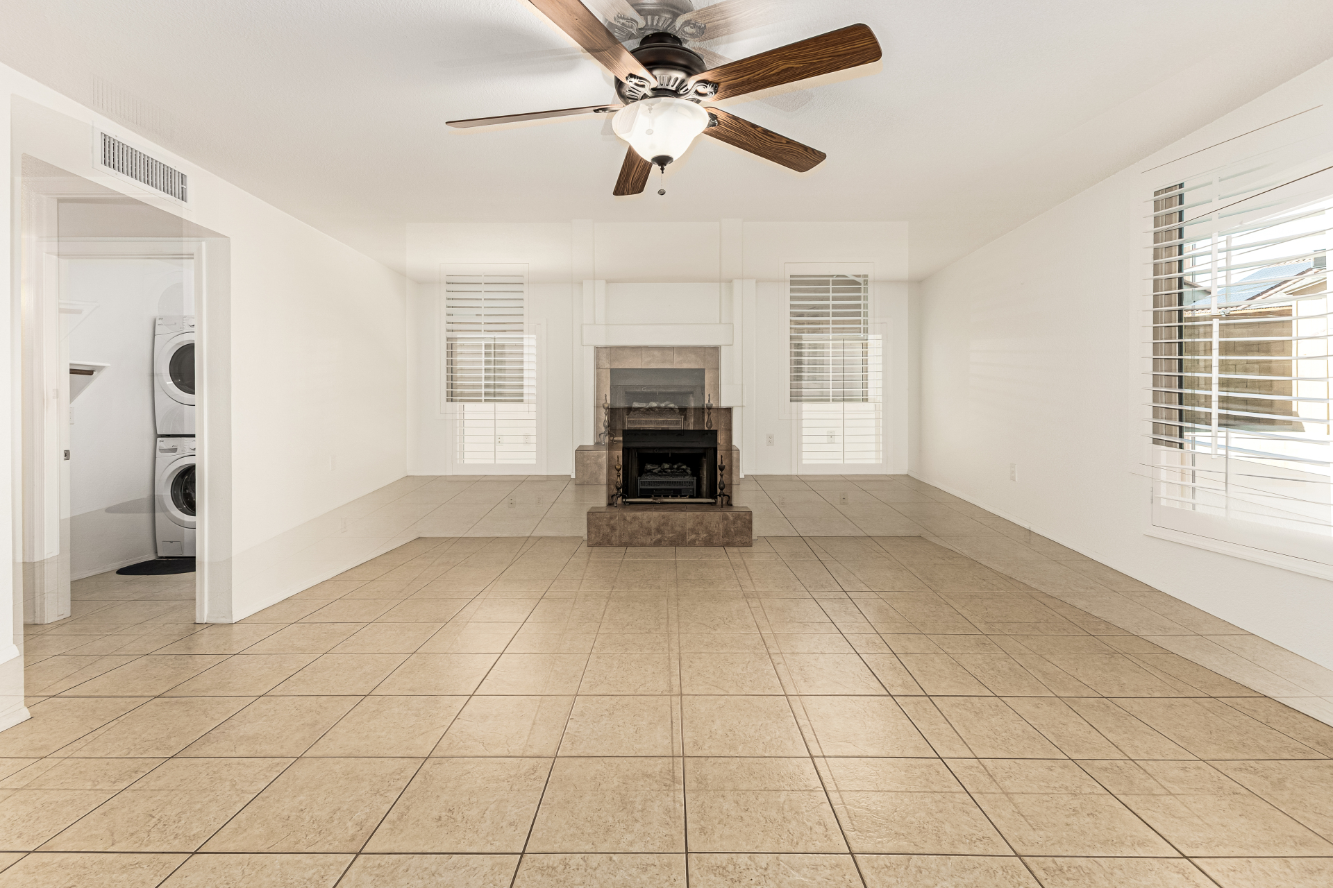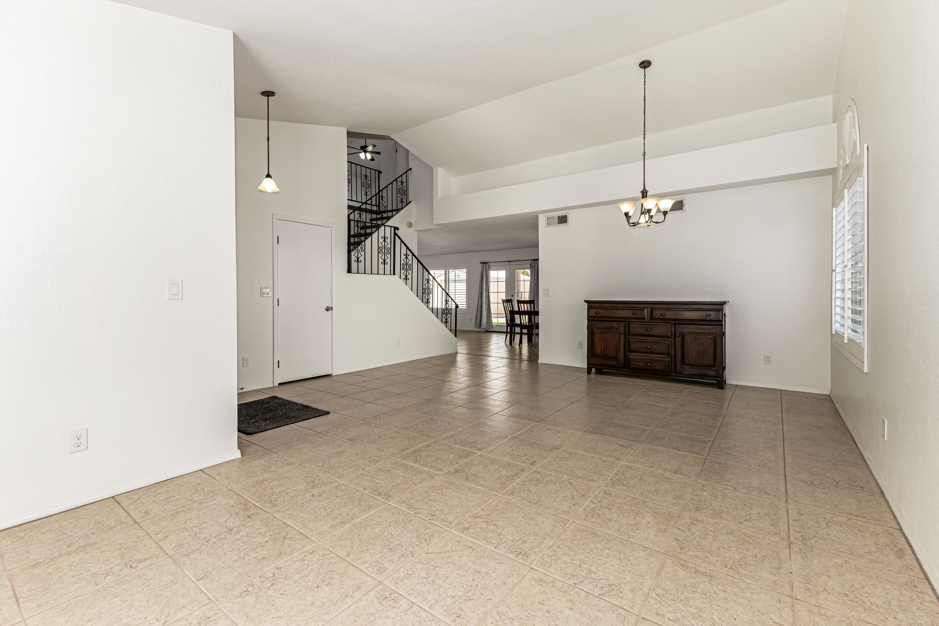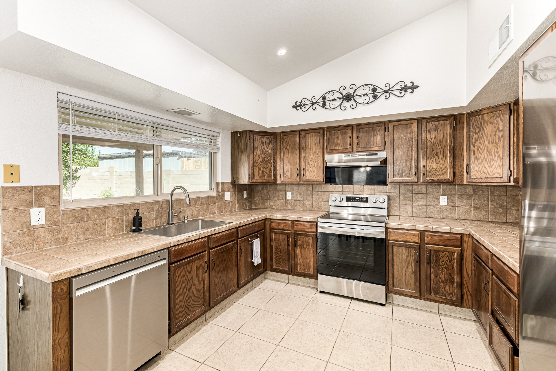 Spacious 4-bedroom, 2.5-bath home offering room to live, work, and store it all! A custom front door welcomes you into soaring vaulted ceilings, formal living and dining areas, and a cozy wood-burning fireplace. All tile downstairs for easy maintenance, with rich wood flooring in the primary suite. The primary and two additional bedrooms feature walk-in closets for generous storage. Enjoy tinted dual-pane nylon frame windows for energy efficiency, plus a newer roof and A/C units (approx. 10 years old). Outside, you'll find a covered patio, grass backyard with landscape lighting, 10' RV gate, extended concrete slab leading to a detached single-car garage, and an extra-wide 2-car garage up front--perfect for toys, tools, or a workshop setup. Solid, functional, and ready for its next chapter.