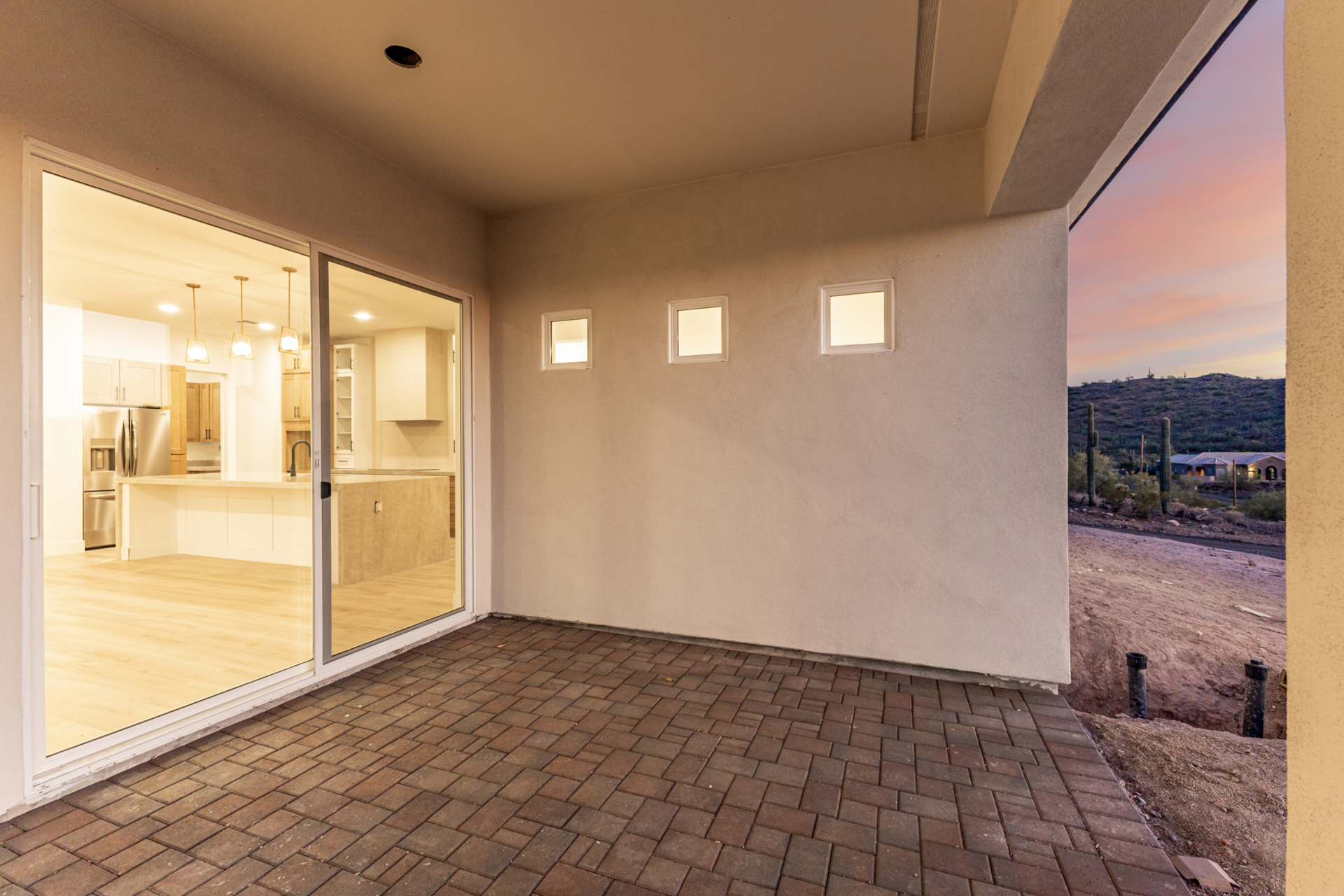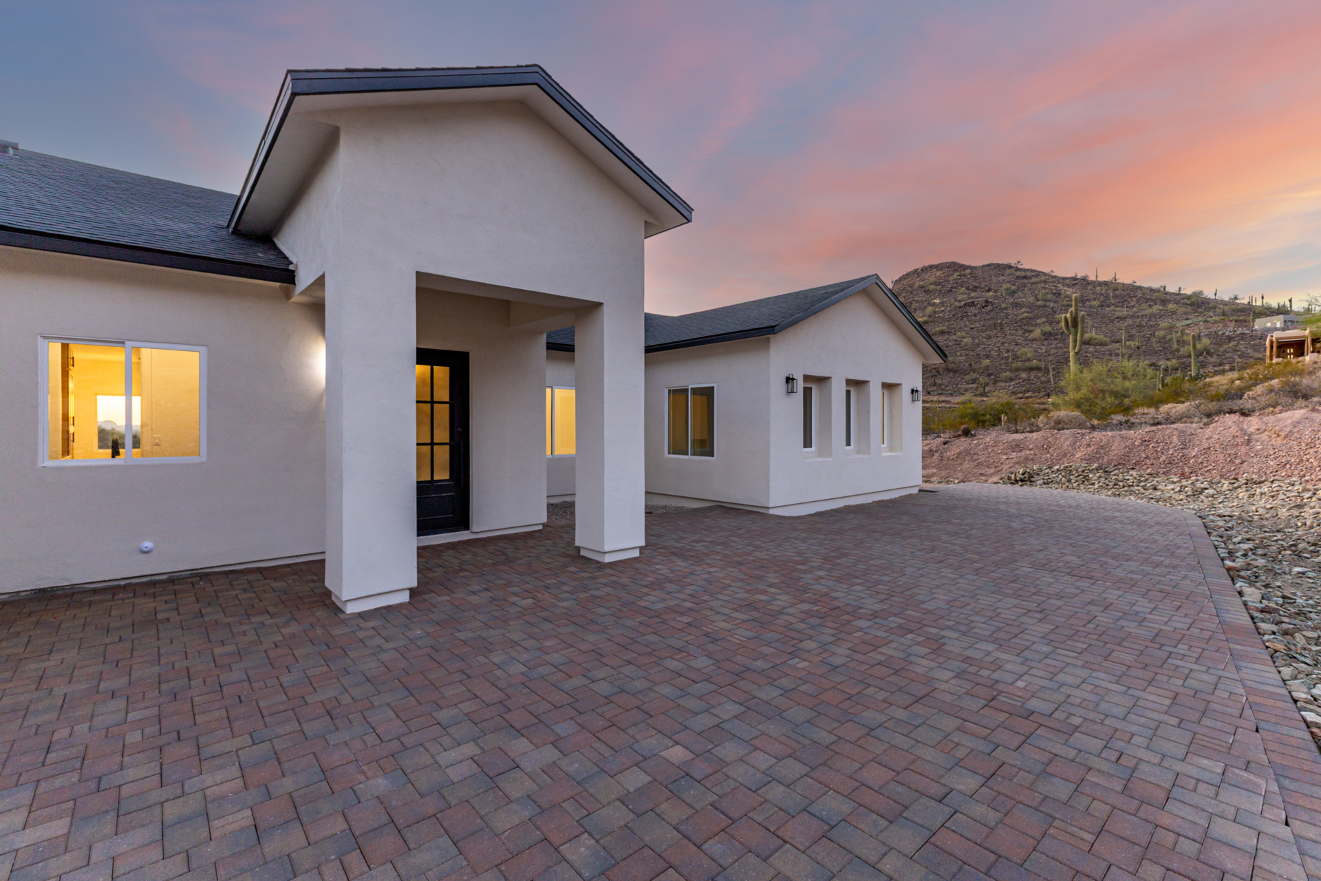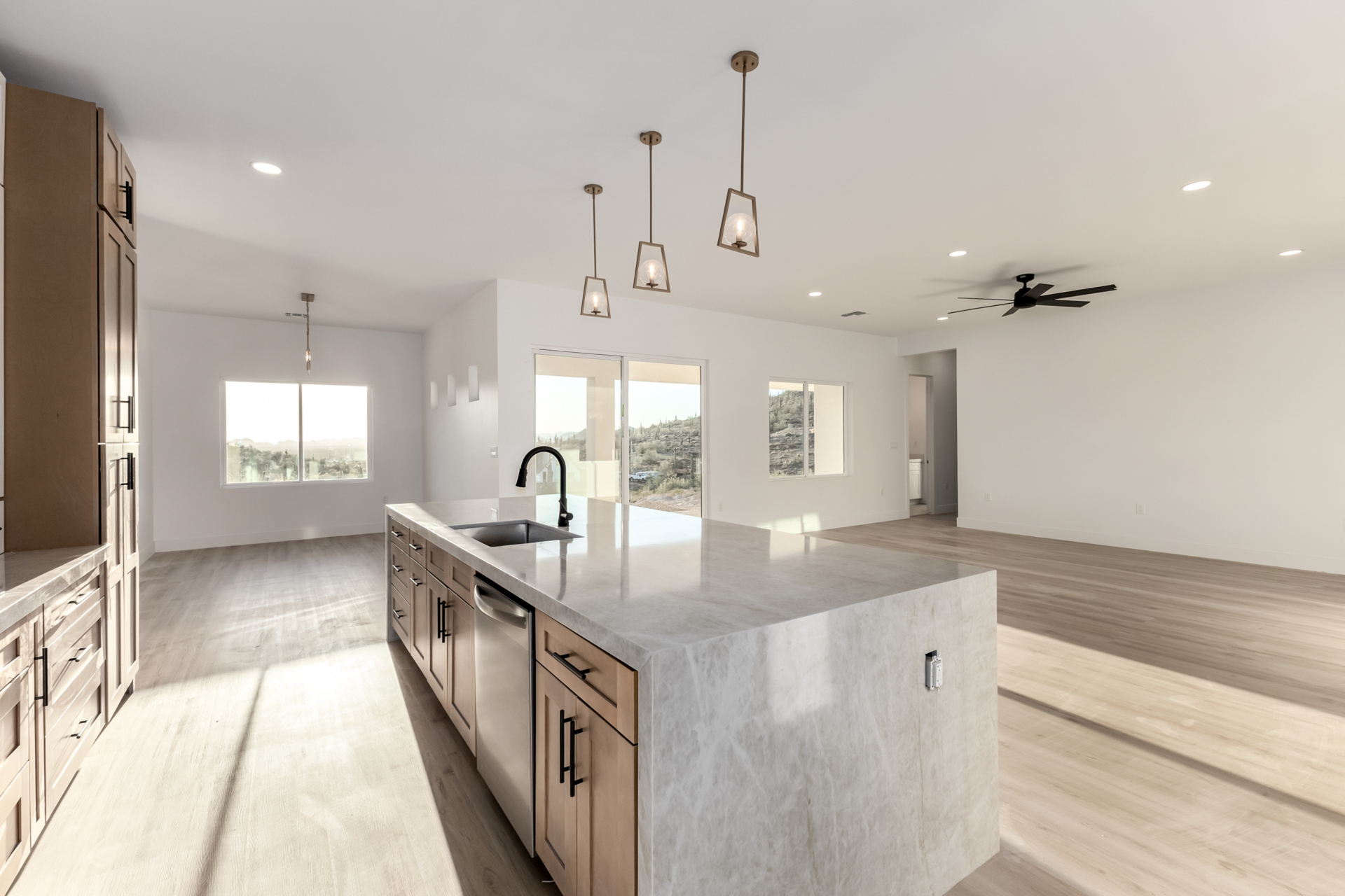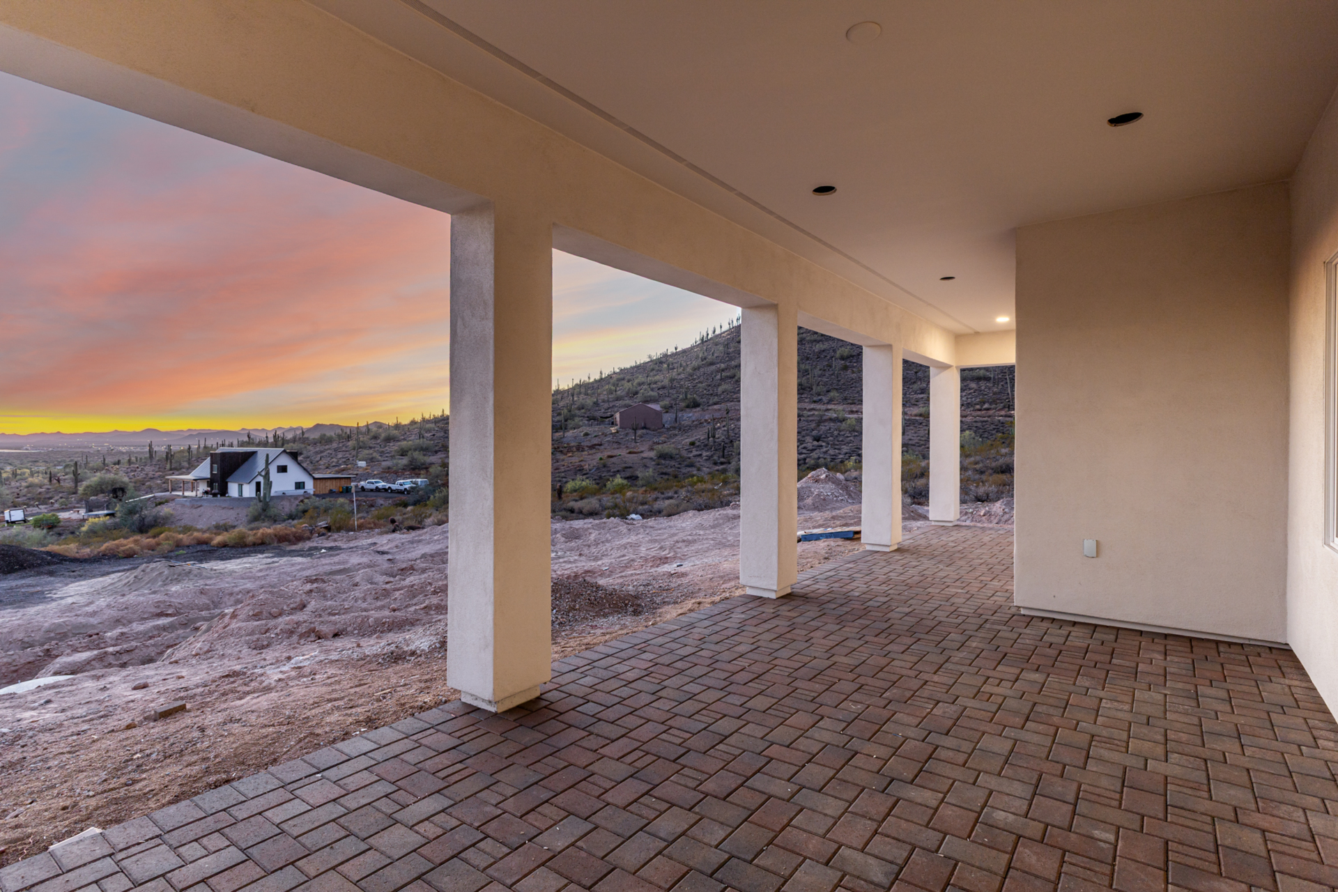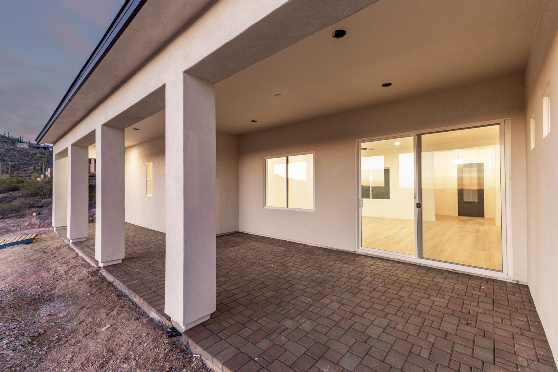 Become the proud owner of this newly constructed home on a sprawling 1.3-acre lot! Discover breathtaking mountain views, stylish pavers, a 2-car garage, and an inviting front patio. Inside, you'll love the enchanting open layout with high ceilings, a soothing palette, abundant natural light, recessed lighting, and attractive wood-look flooring. The stunning chef's kitchen boasts solid surface counters, wood shaker cabinetry, chic pendant lighting, a tile backsplash, high-end stainless steel appliances, and a large center island with a breakfast bar. The tranquil primary bedroom showcases a convenient backyard access, a lavish ensuite with double sinks, and a walk-in closet. Enjoy majestic sunsets on the covered patio, perfect for dining al fresco. Make this incredible gem yours!