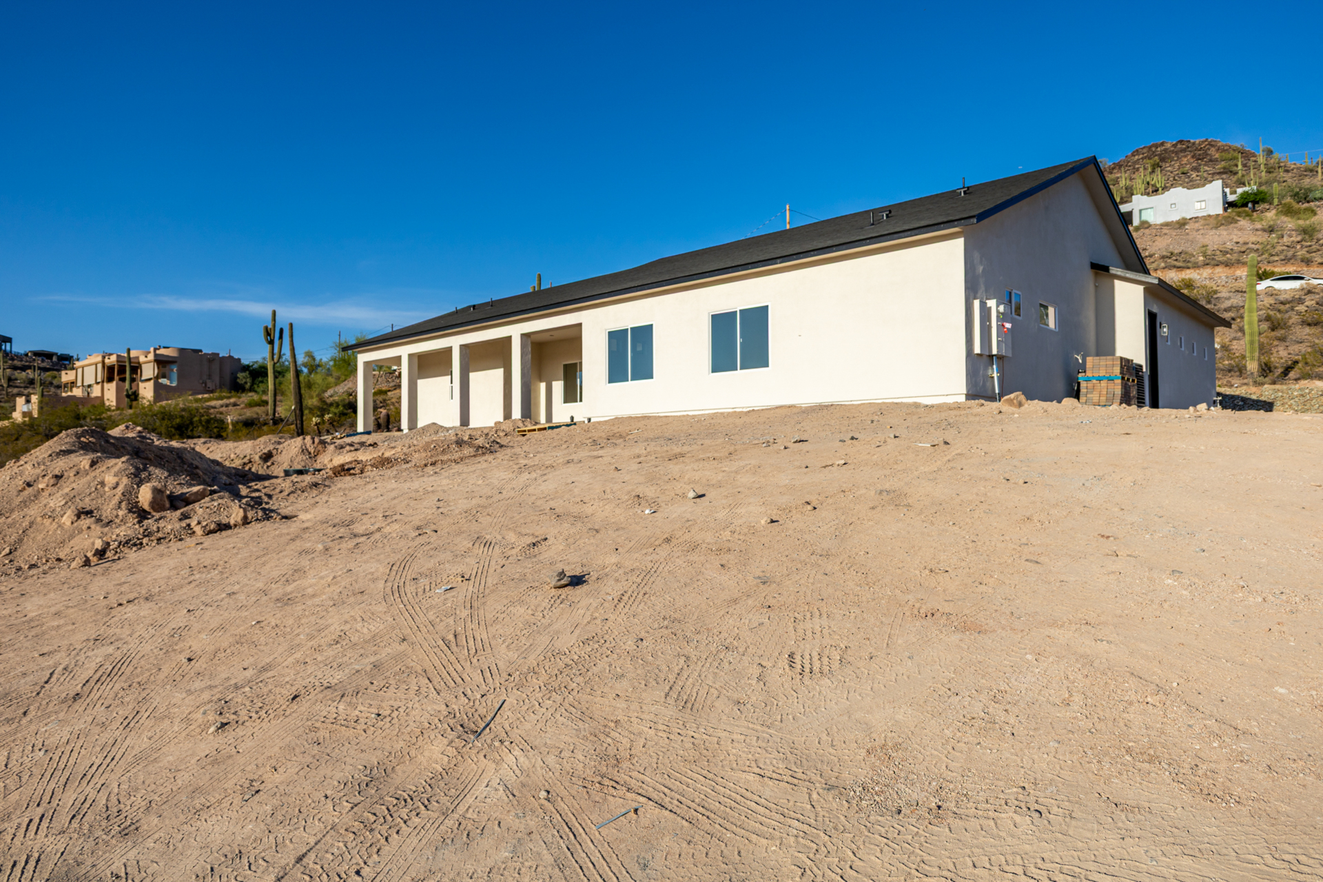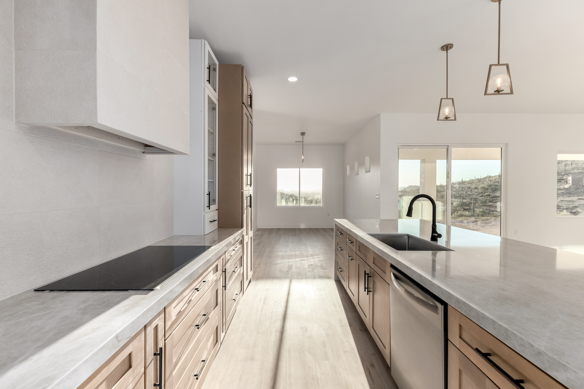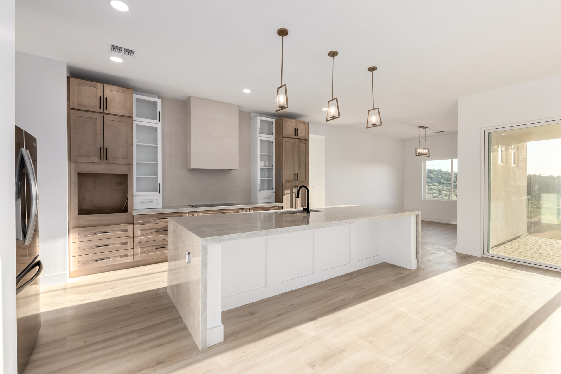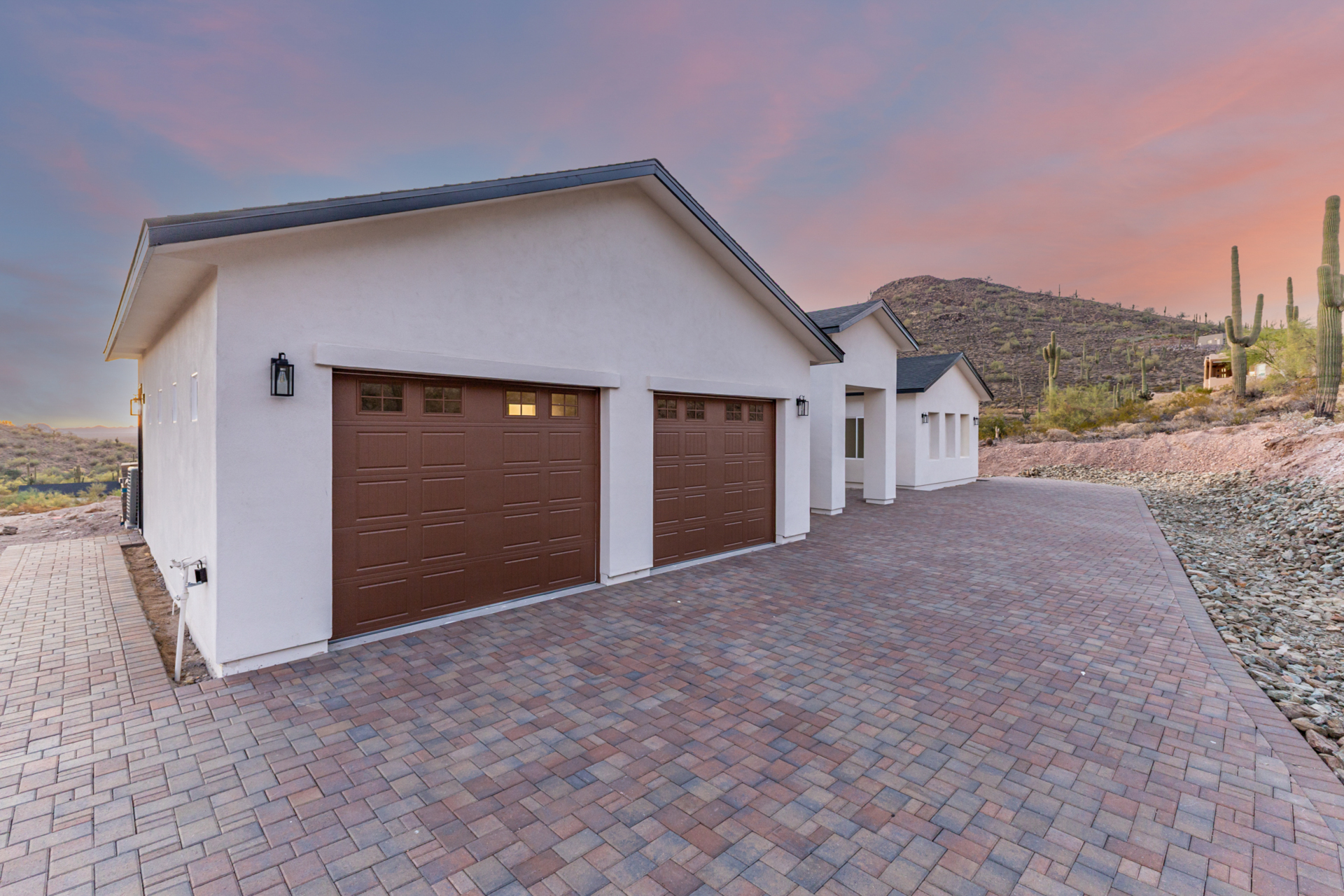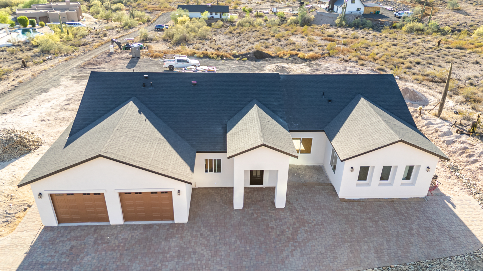 Become the proud owner of this newly constructed home on a sprawling 1.3-acre lot! Discover breathtaking mountain views, stylish pavers, a 2-car garage, and an inviting front patio. Inside, you'll love the enchanting open layout with high ceilings, a soothing palette, abundant natural light, recessed lighting, and attractive wood-look flooring. The stunning chef's kitchen boasts solid surface counters, wood shaker cabinetry, chic pendant lighting, a tile backsplash, high-end stainless steel appliances, and a large center island with a breakfast bar. The tranquil primary bedroom showcases a convenient backyard access, a lavish ensuite with double sinks, and a walk-in closet. Enjoy majestic sunsets on the covered patio, perfect for dining al fresco. Make this incredible gem yours!