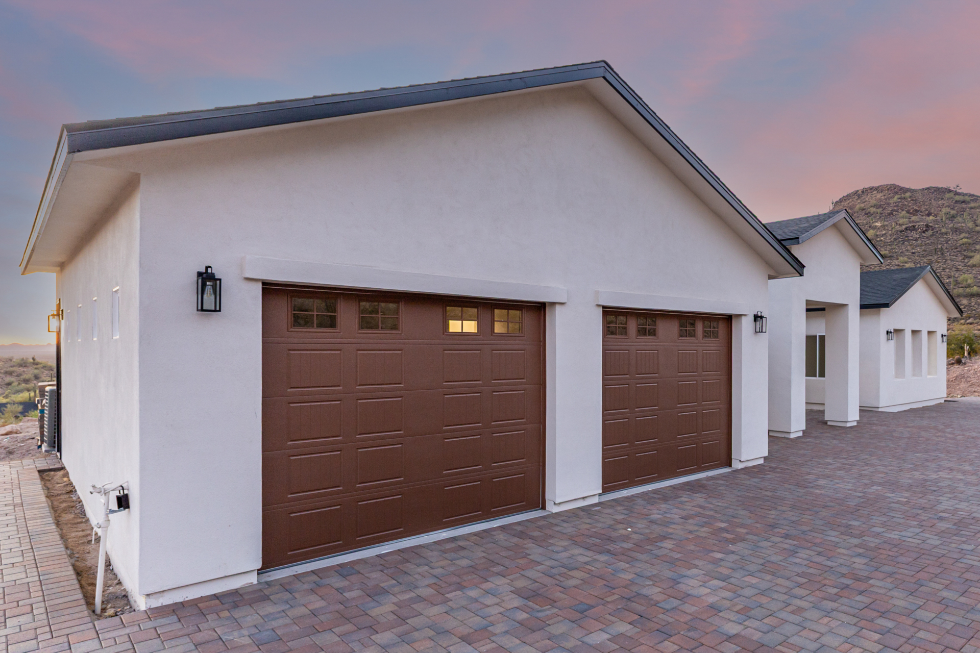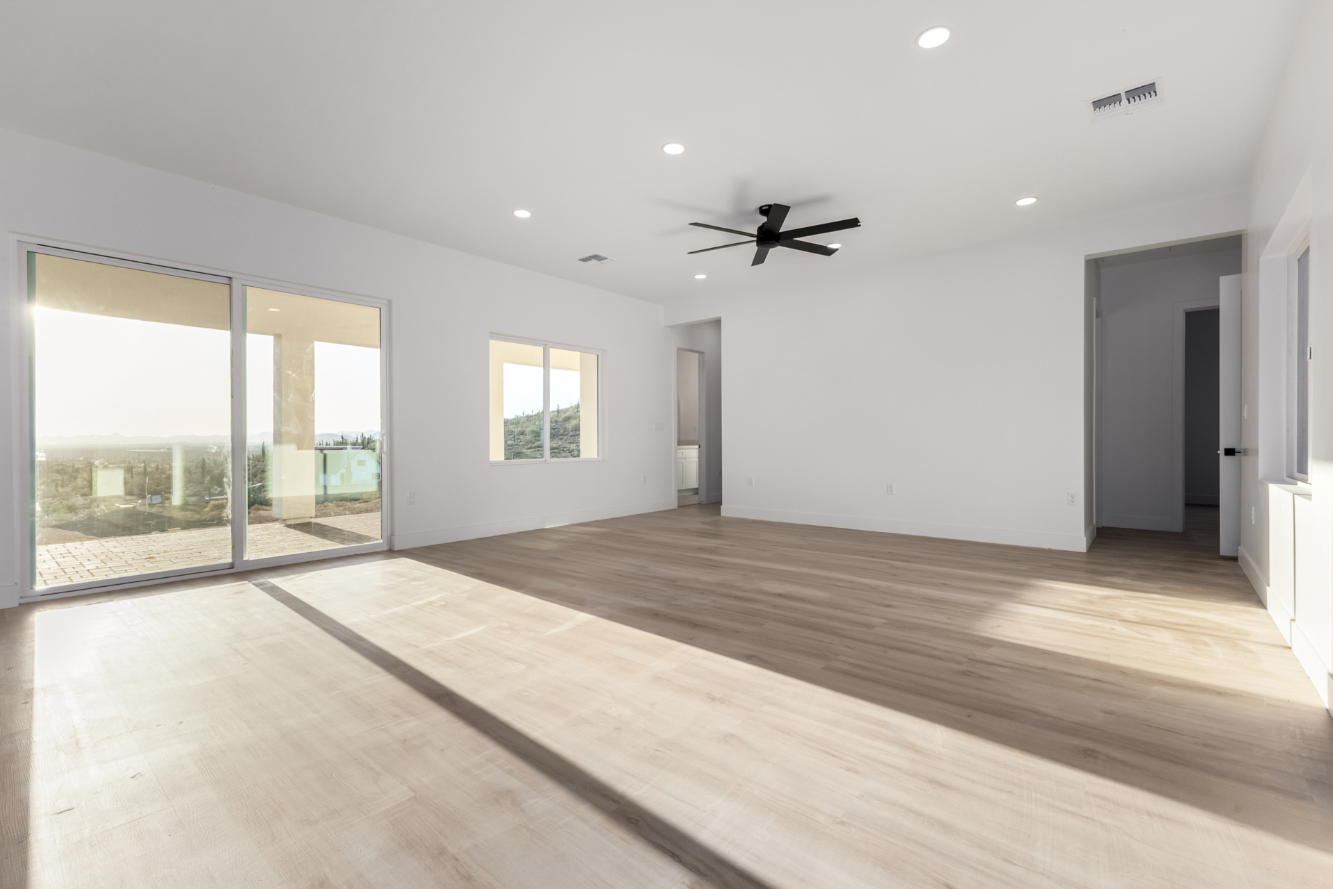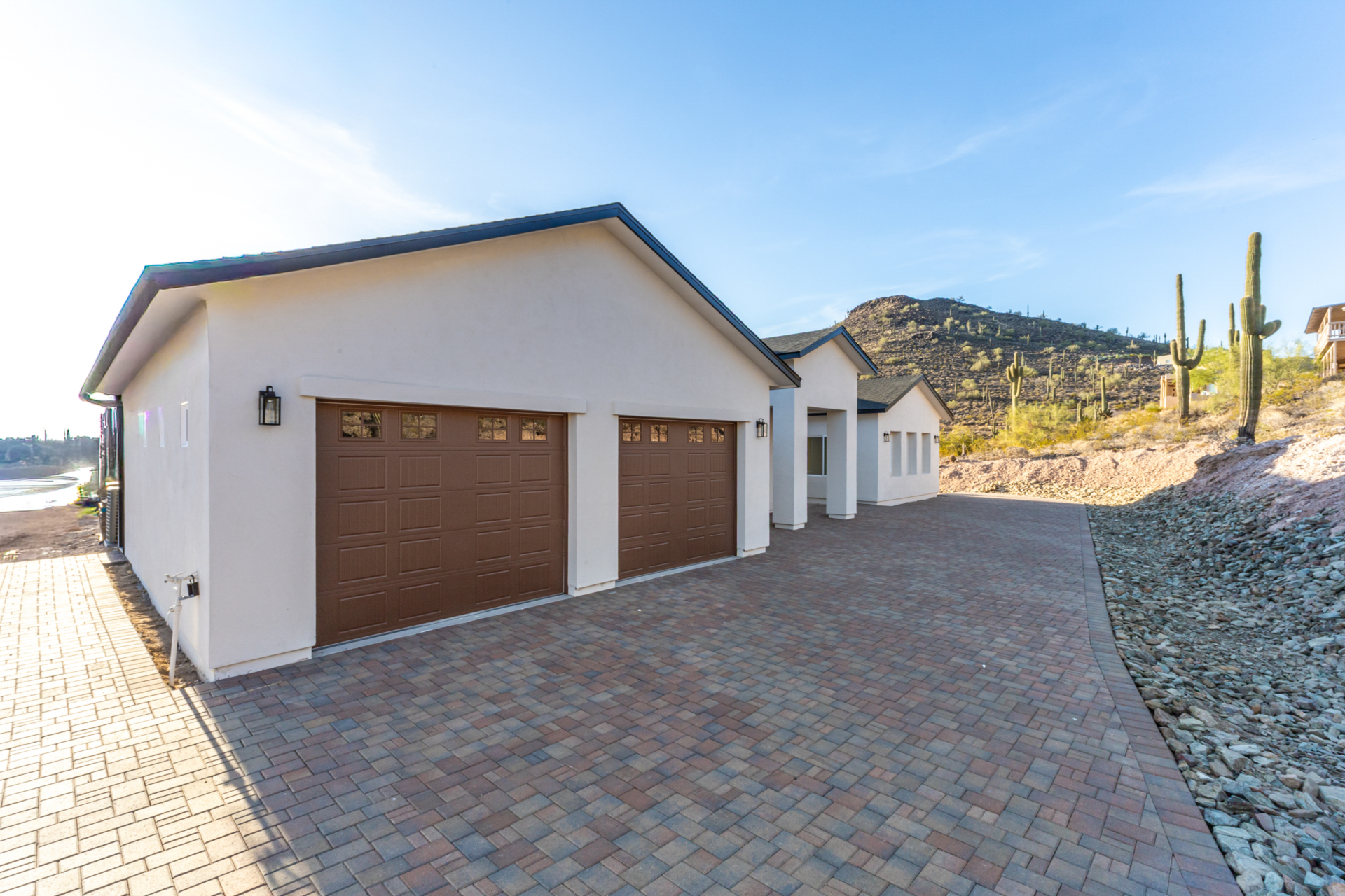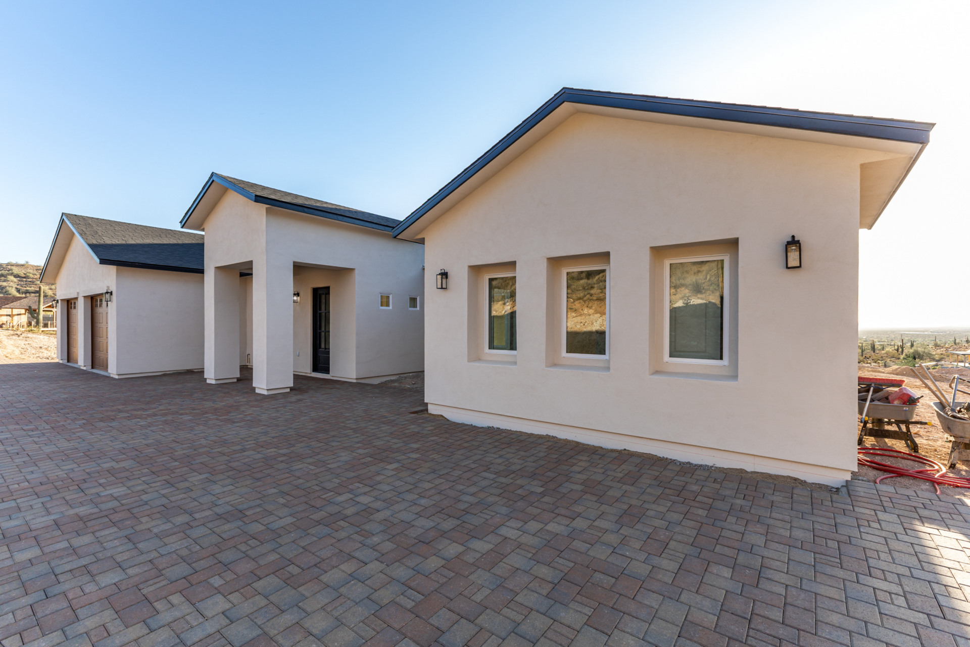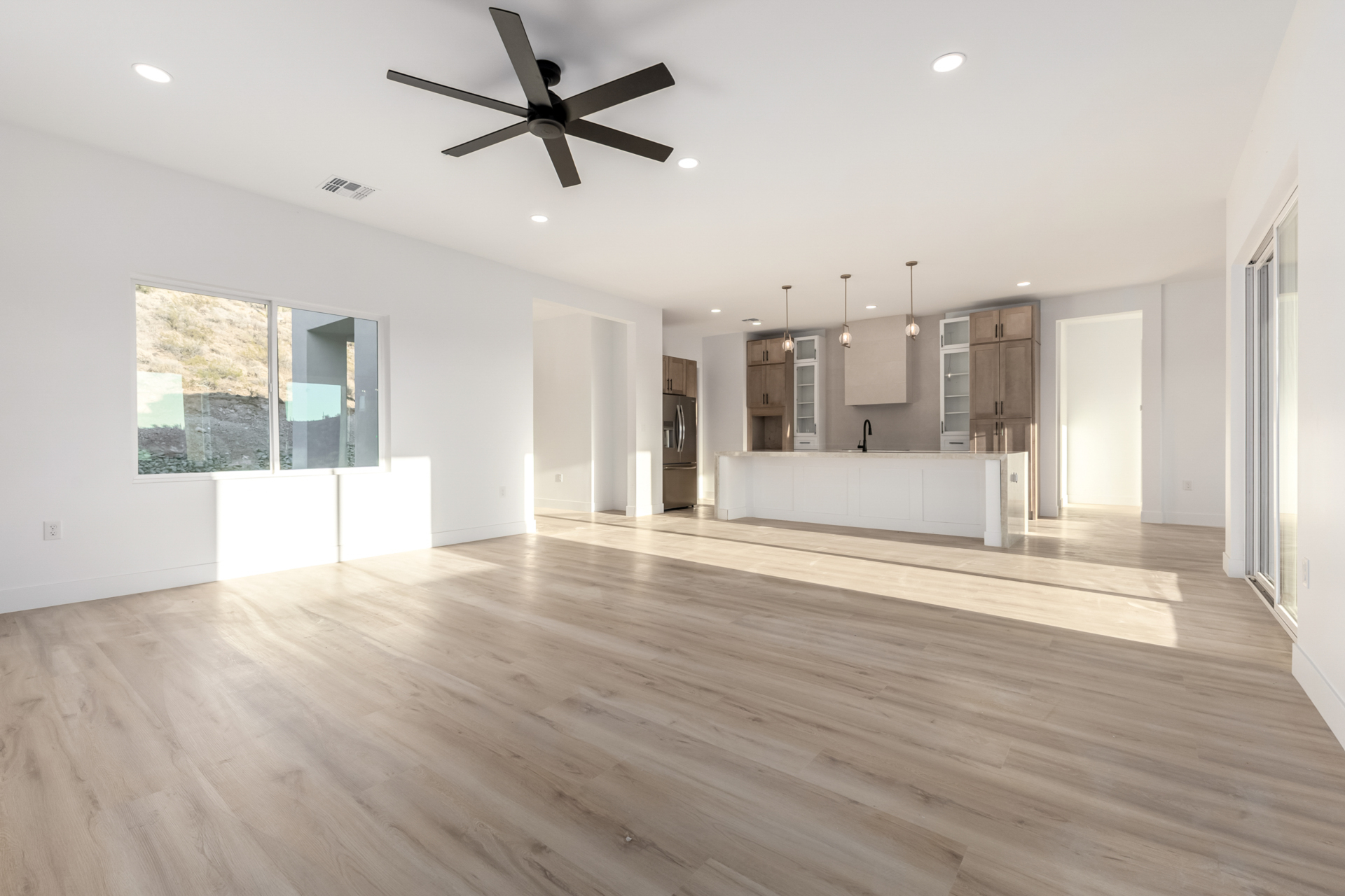 Become the proud owner of this newly constructed home on a sprawling 1.3-acre lot! Discover breathtaking mountain views, stylish pavers, a 2-car garage, and an inviting front patio. Inside, you'll love the enchanting open layout with high ceilings, a soothing palette, abundant natural light, recessed lighting, and attractive wood-look flooring. The stunning chef's kitchen boasts solid surface counters, wood shaker cabinetry, chic pendant lighting, a tile backsplash, high-end stainless steel appliances, and a large center island with a breakfast bar. The tranquil primary bedroom showcases a convenient backyard access, a lavish ensuite with double sinks, and a walk-in closet. Enjoy majestic sunsets on the covered patio, perfect for dining al fresco. Make this incredible gem yours!