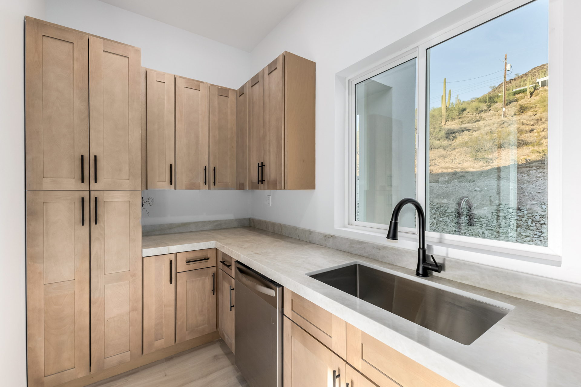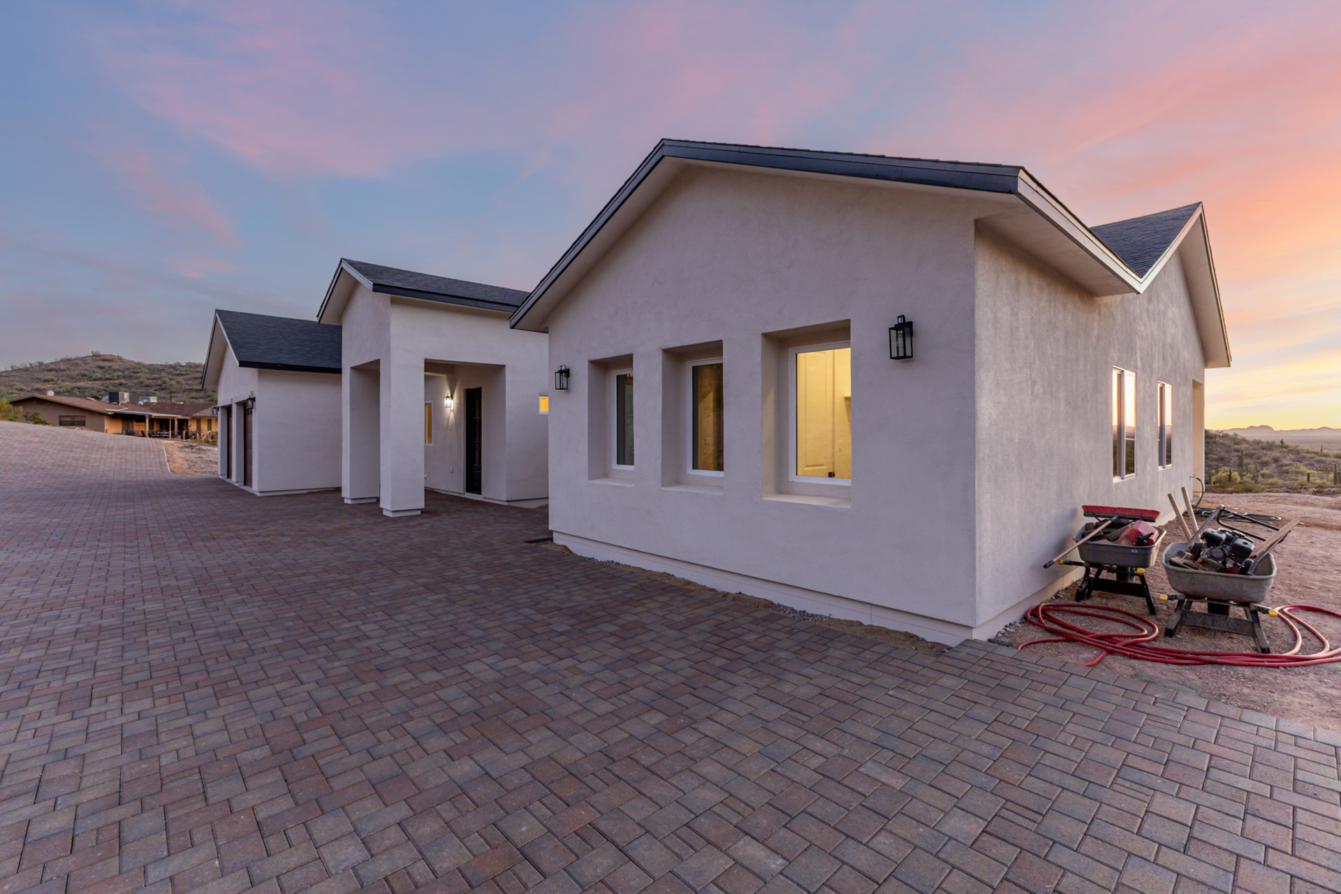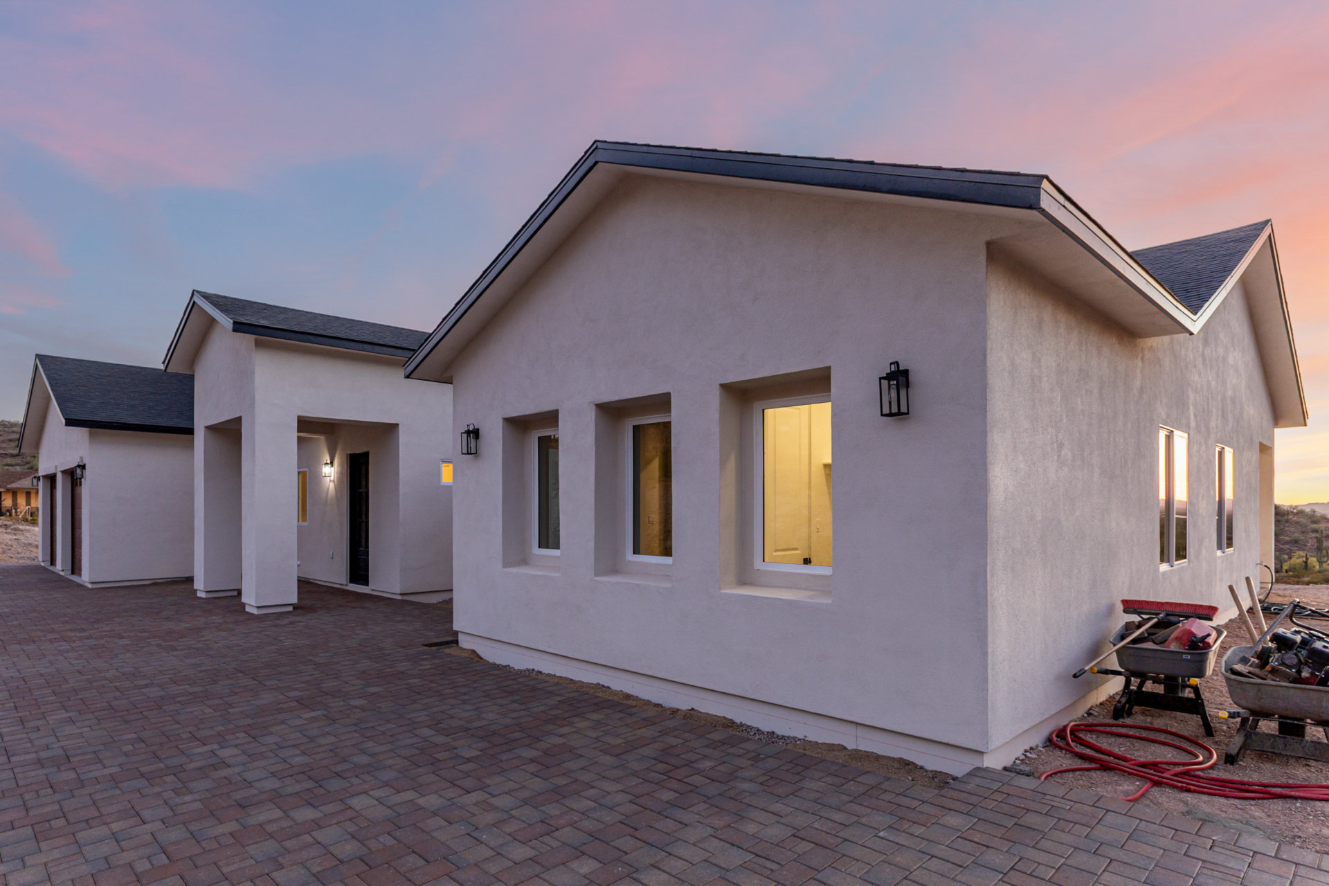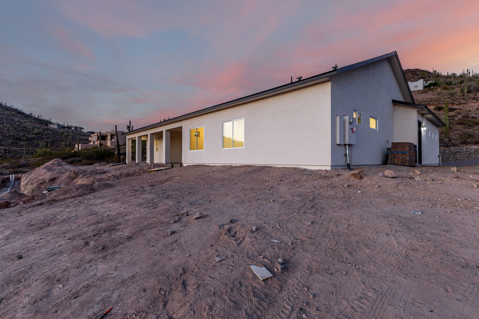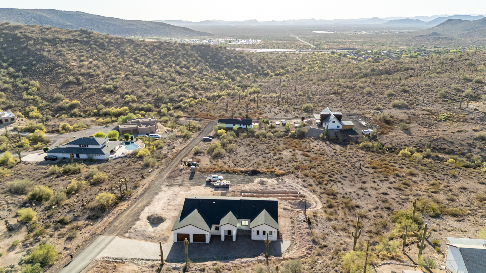Become the proud owner of this newly constructed home on a sprawling 1.3-acre lot! Discover breathtaking mountain views, stylish pavers, a 2-car garage, and an inviting front patio. Inside, you'll love the enchanting open layout with high ceilings, a soothing palette, abundant natural light, recessed lighting, and attractive wood-look flooring. The stunning chef's kitchen boasts solid surface counters, wood shaker cabinetry, chic pendant lighting, a tile backsplash, high-end stainless steel appliances, and a large center island with a breakfast bar. The tranquil primary bedroom showcases a convenient backyard access, a lavish ensuite with double sinks, and a walk-in closet. Enjoy majestic sunsets on the covered patio, perfect for dining al fresco. Make this incredible gem yours!