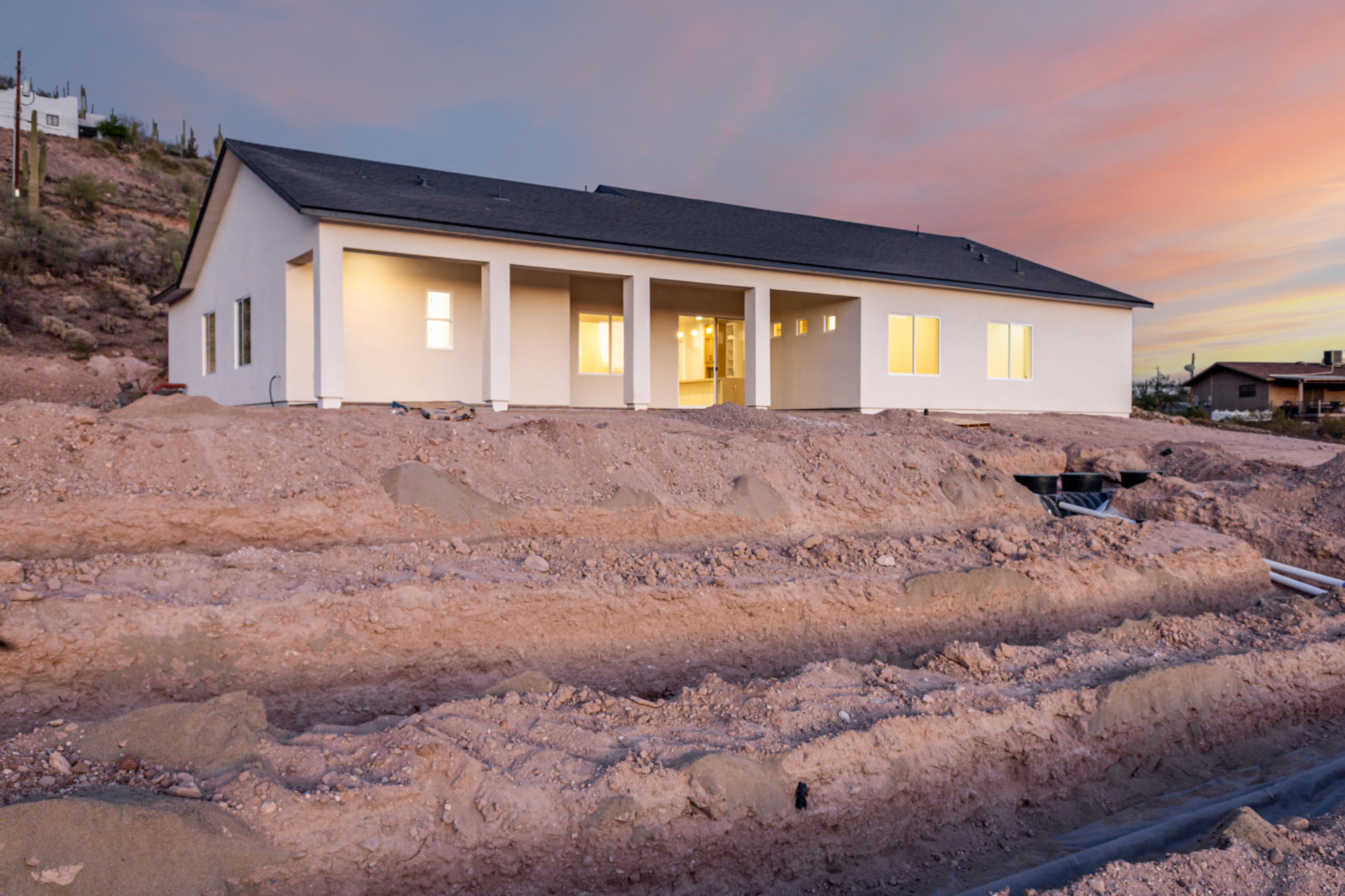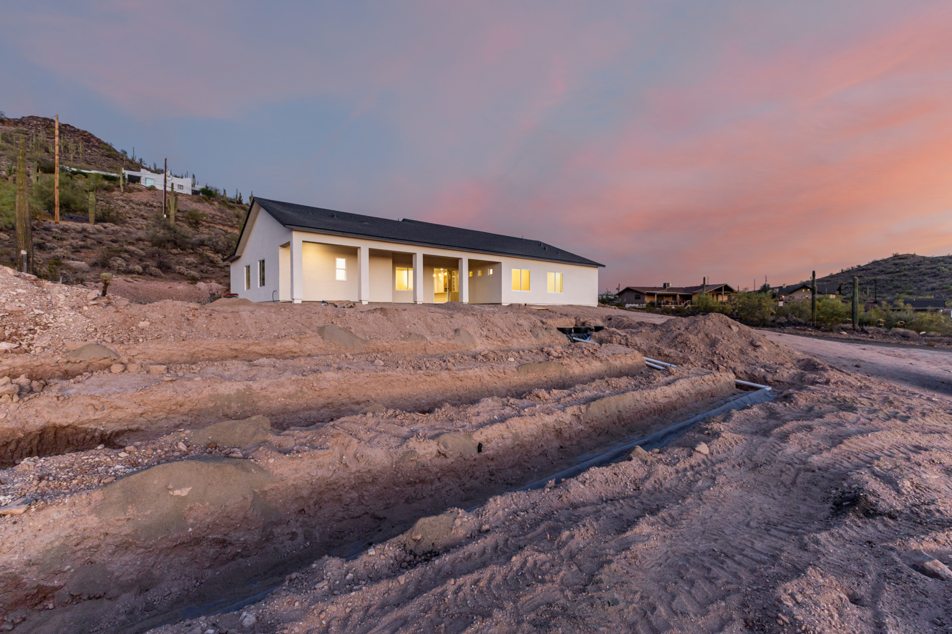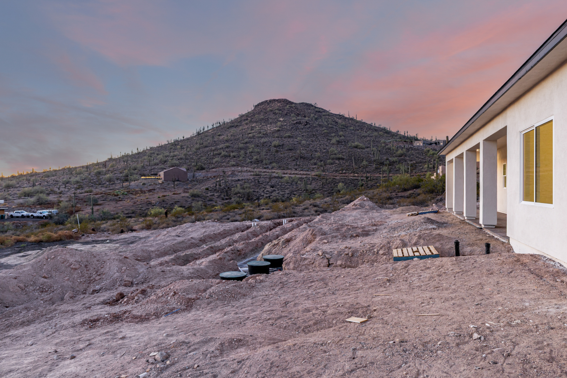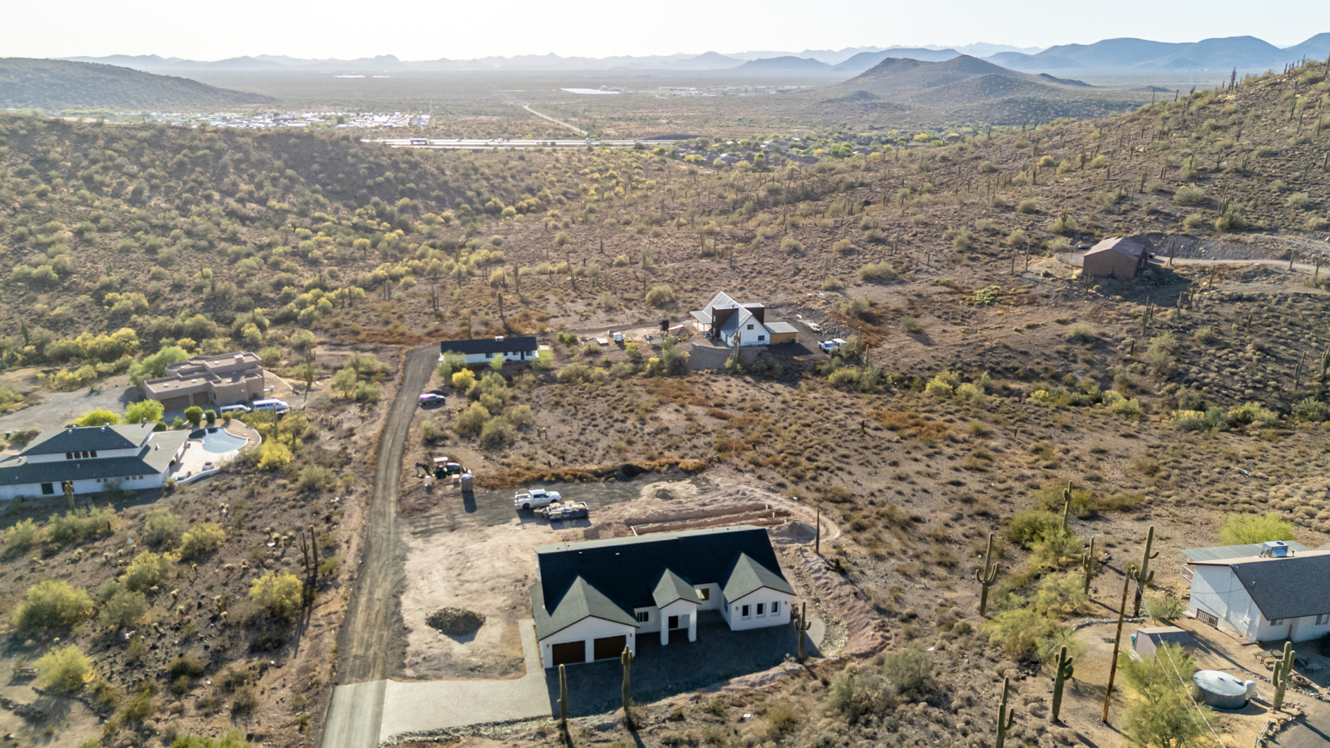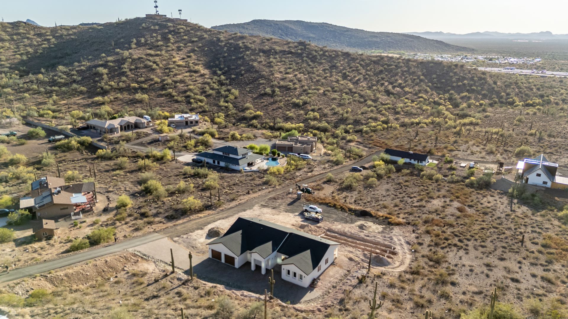 Become the proud owner of this newly constructed home on a sprawling 1.3-acre lot! Discover breathtaking mountain views, stylish pavers, a 2-car garage, and an inviting front patio. Inside, you'll love the enchanting open layout with high ceilings, a soothing palette, abundant natural light, recessed lighting, and attractive wood-look flooring. The stunning chef's kitchen boasts solid surface counters, wood shaker cabinetry, chic pendant lighting, a tile backsplash, high-end stainless steel appliances, and a large center island with a breakfast bar. The tranquil primary bedroom showcases a convenient backyard access, a lavish ensuite with double sinks, and a walk-in closet. Enjoy majestic sunsets on the covered patio, perfect for dining al fresco. Make this incredible gem yours!