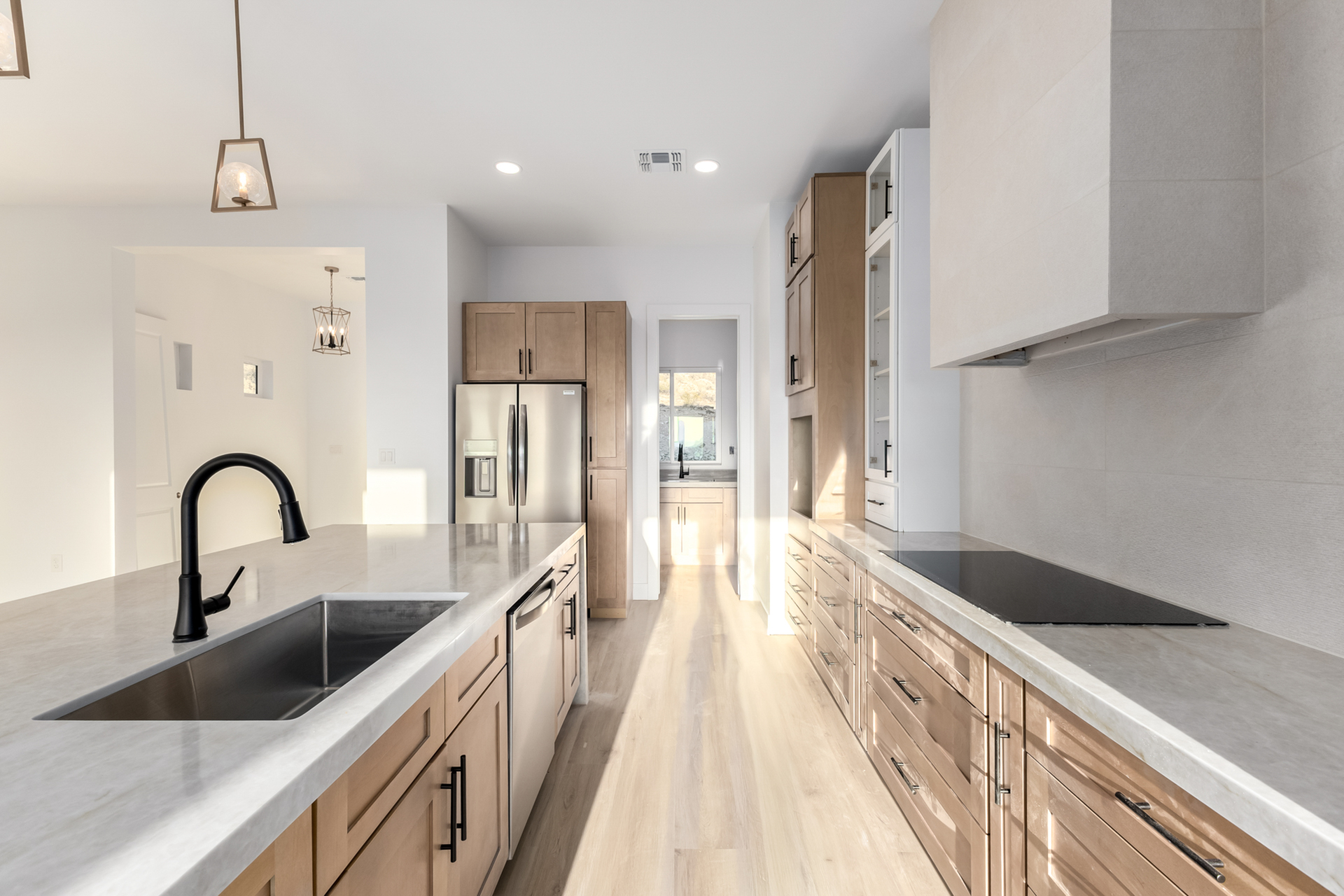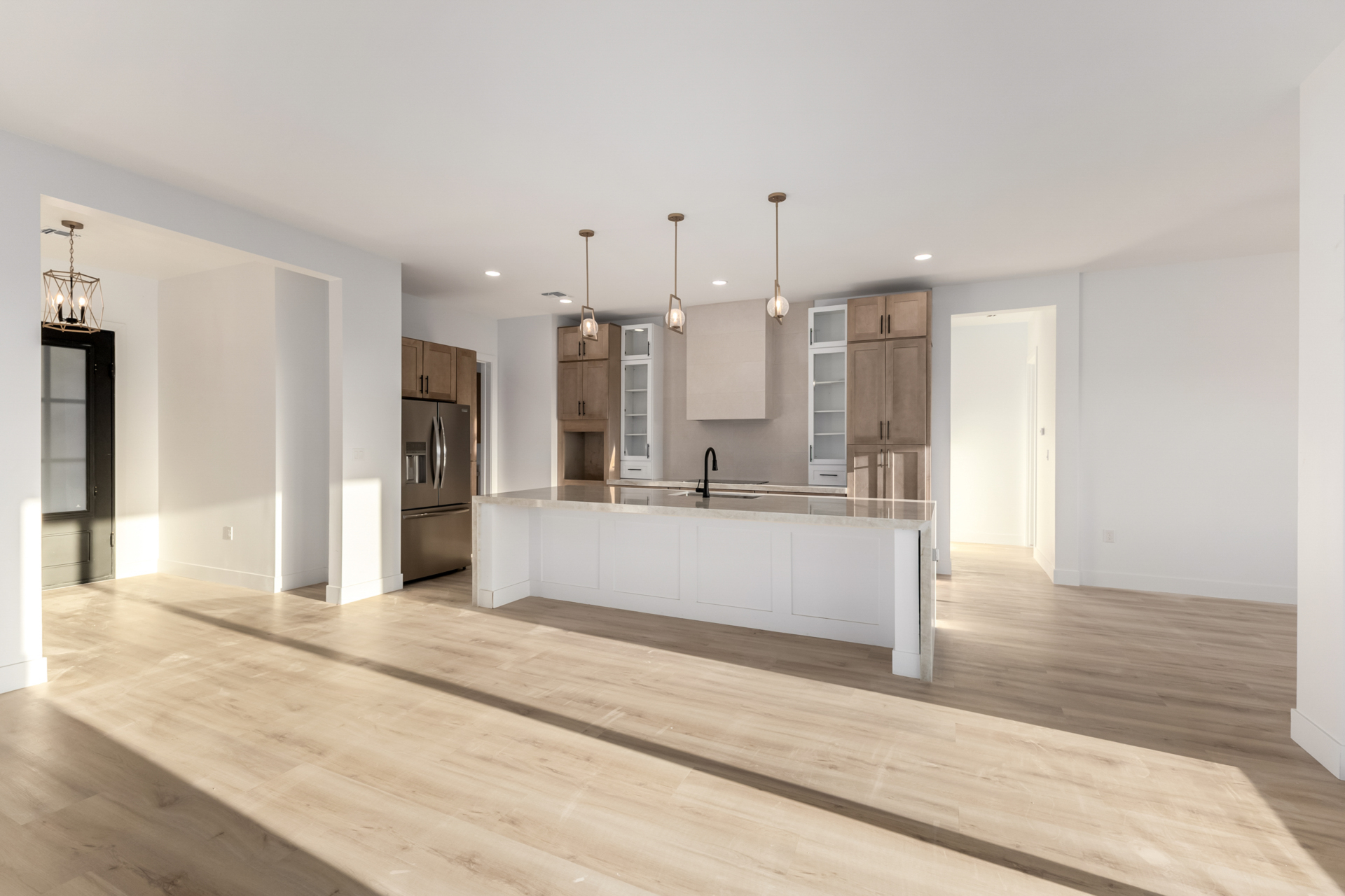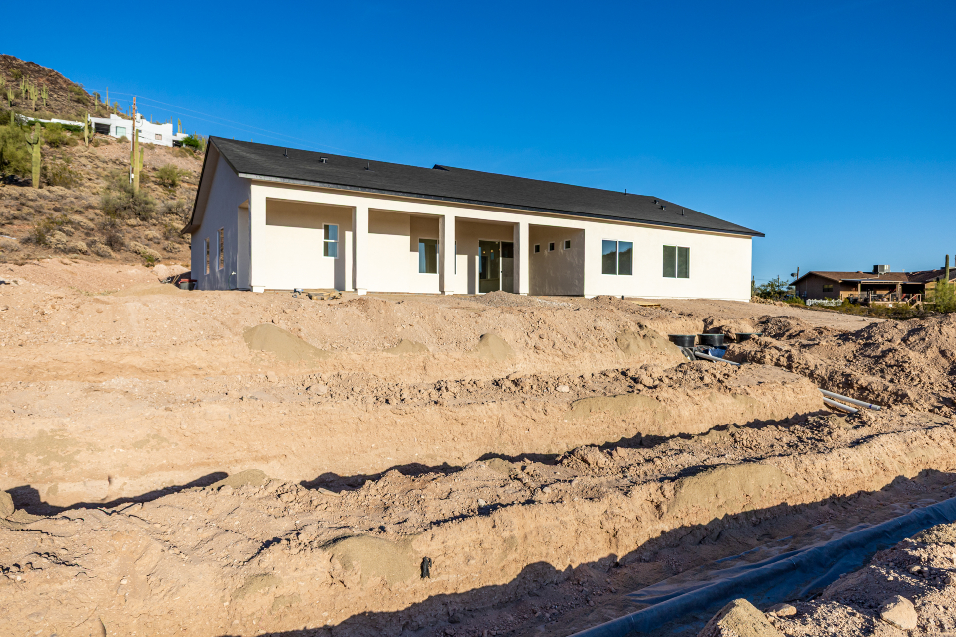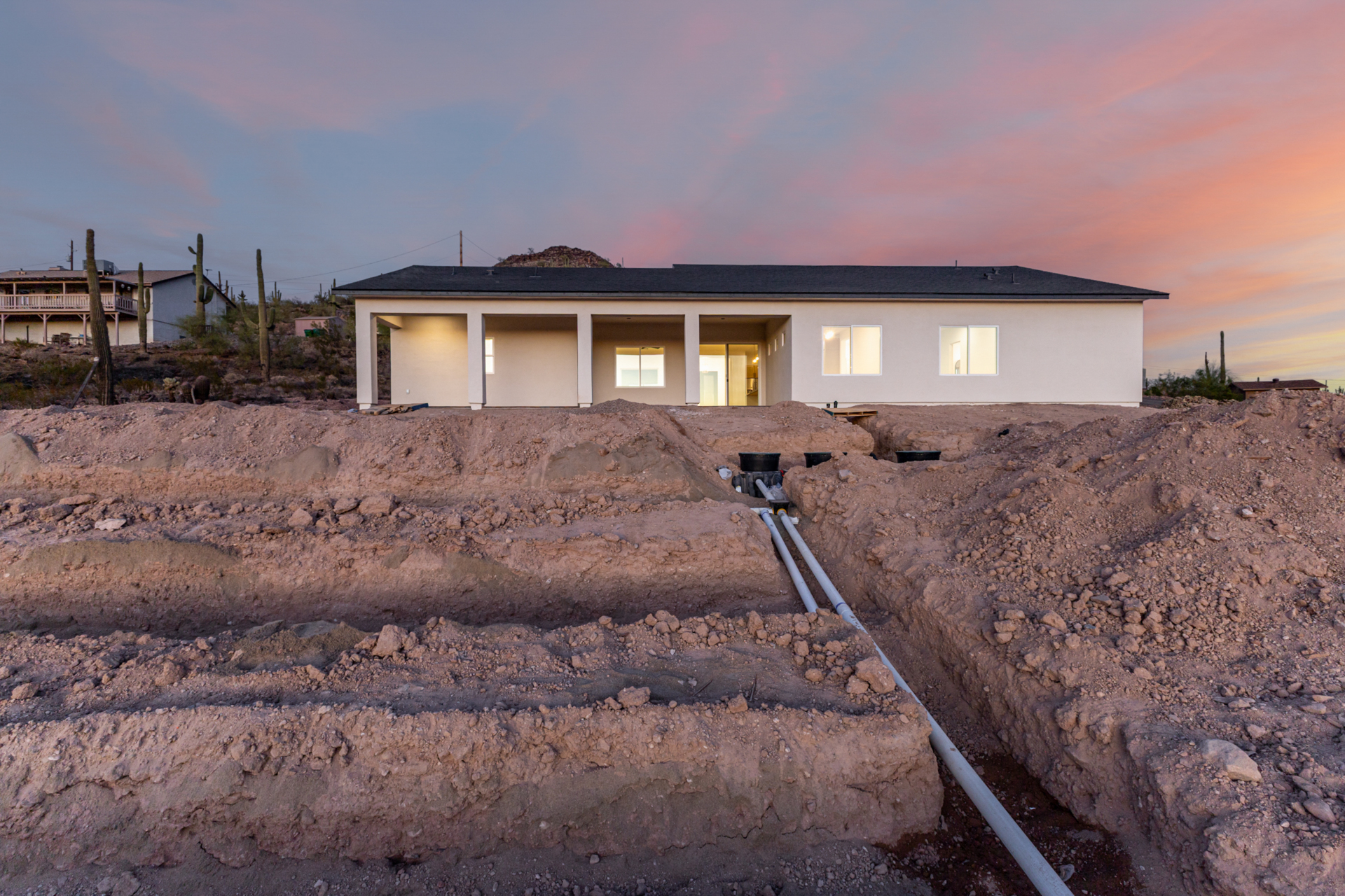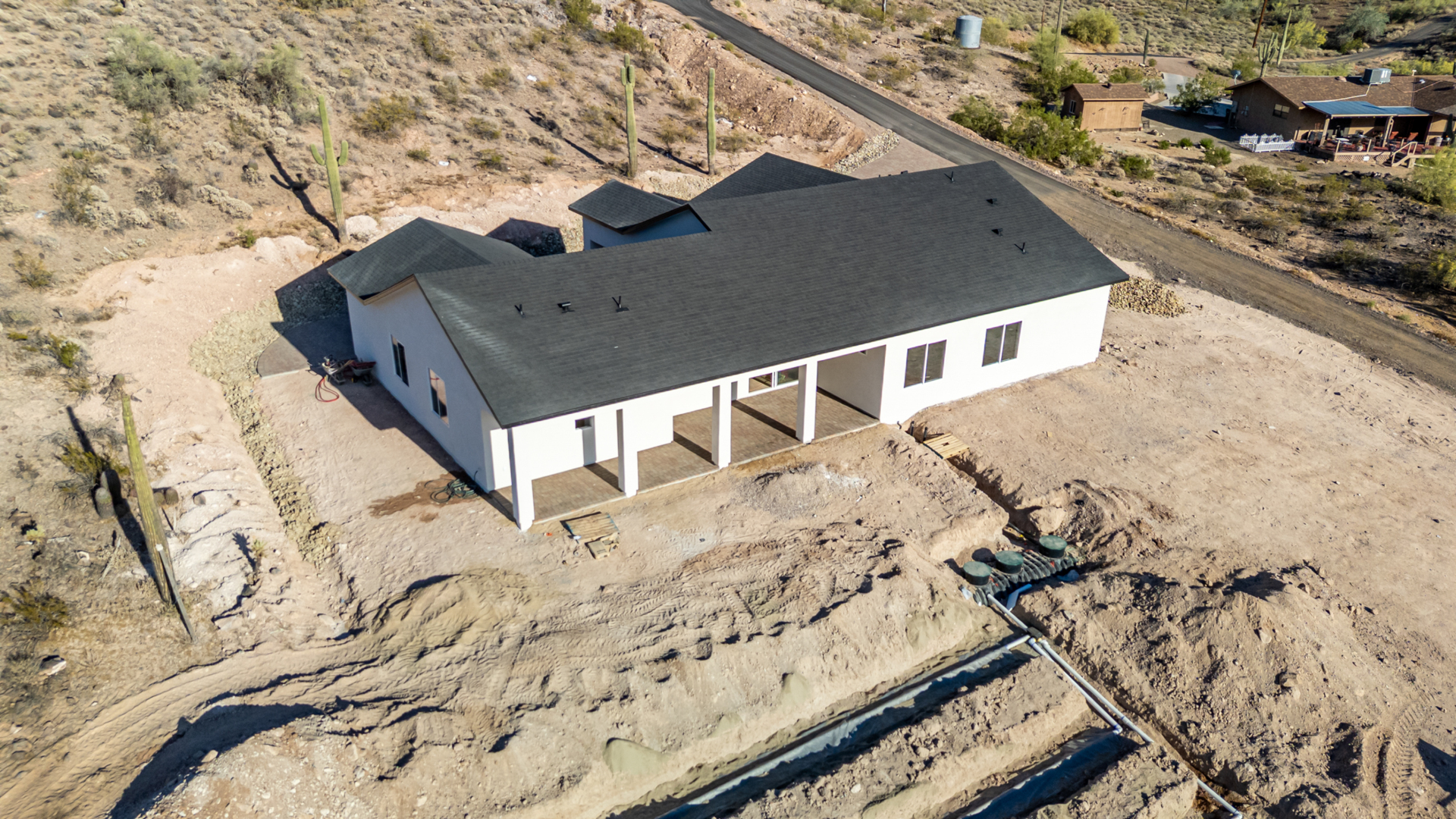 Become the proud owner of this newly constructed home on a sprawling 1.3-acre lot! Discover breathtaking mountain views, stylish pavers, a 2-car garage, and an inviting front patio. Inside, you'll love the enchanting open layout with high ceilings, a soothing palette, abundant natural light, recessed lighting, and attractive wood-look flooring. The stunning chef's kitchen boasts solid surface counters, wood shaker cabinetry, chic pendant lighting, a tile backsplash, high-end stainless steel appliances, and a large center island with a breakfast bar. The tranquil primary bedroom showcases a convenient backyard access, a lavish ensuite with double sinks, and a walk-in closet. Enjoy majestic sunsets on the covered patio, perfect for dining al fresco. Make this incredible gem yours!