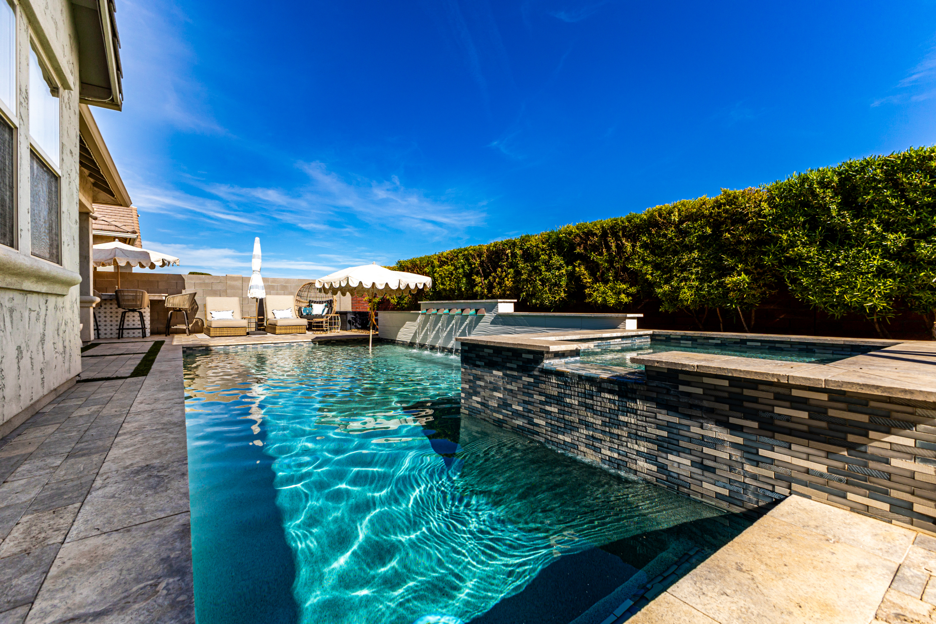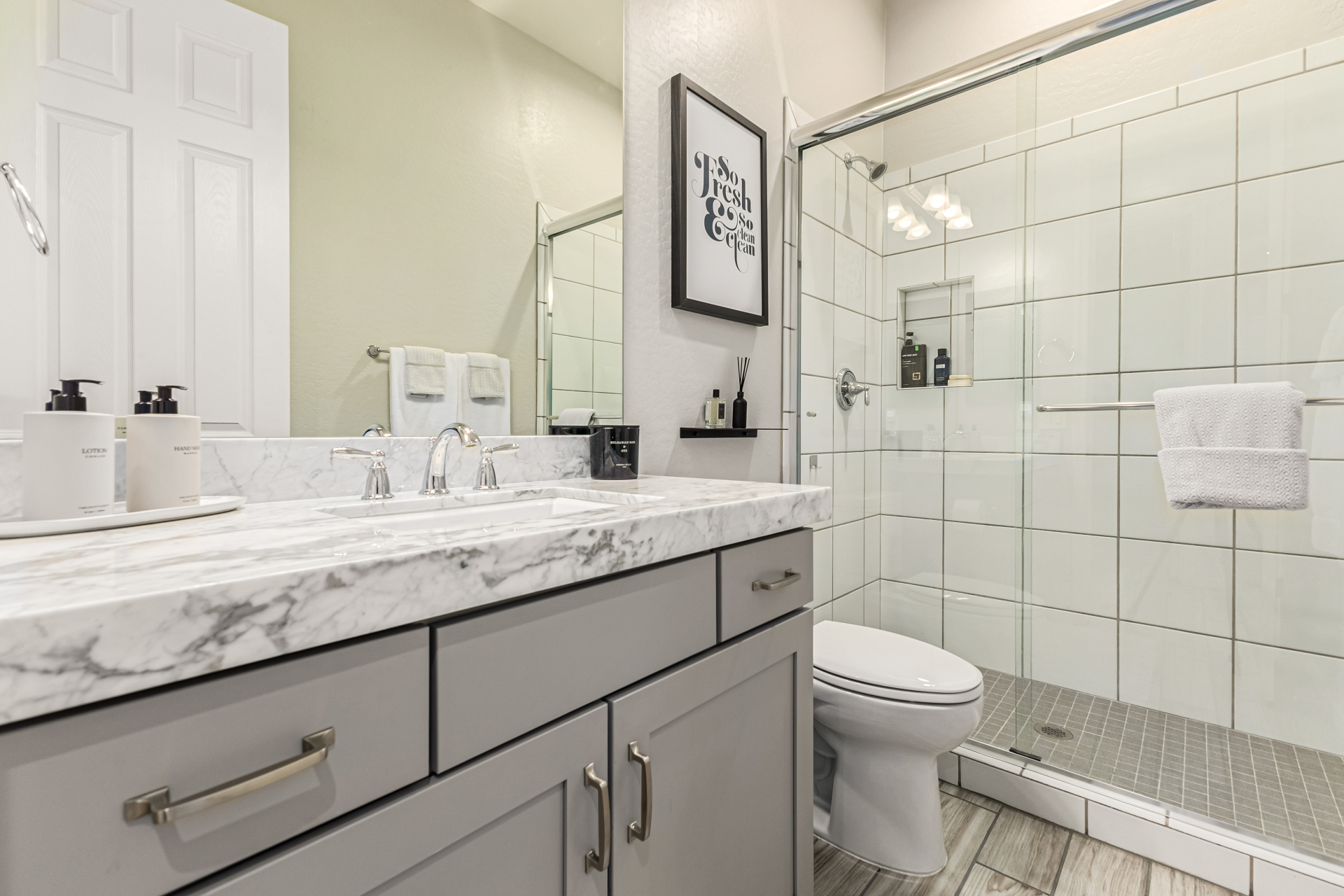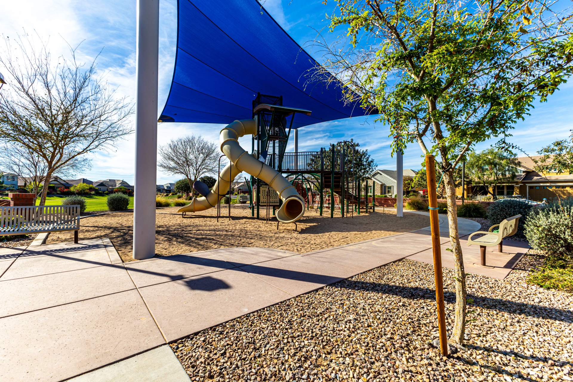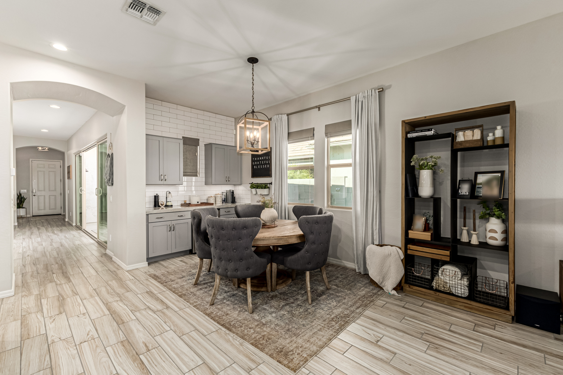 Modern luxury meets resort-style living in this stunning Gilbert home! Amazing single level plan features 4 beds+ den & 3.5 baths! Neutral tile floors & new carpet in bedrooms. The kitchen features an oversized island, gorgeous granite, gas cooktop, Insta-hot water, new dishwasher, custom cabinetry, coffee bar & beverage fridge. You'll love the family room with electric FP, surround sound speakers & views of the pool. The primary suite offers a fully updated spa-like bath w/ new counters, tiled shower w/ 3 shower heads & updated fixtures. Marble counters in guest baths. Enjoy a backyard oasis with a pool & spa (added in 2022), travertine decking & built-in gas BBQ--perfect for Arizona entertaining. Don't miss the putting green, patio misters, tankless water heater & overhead garage racks.