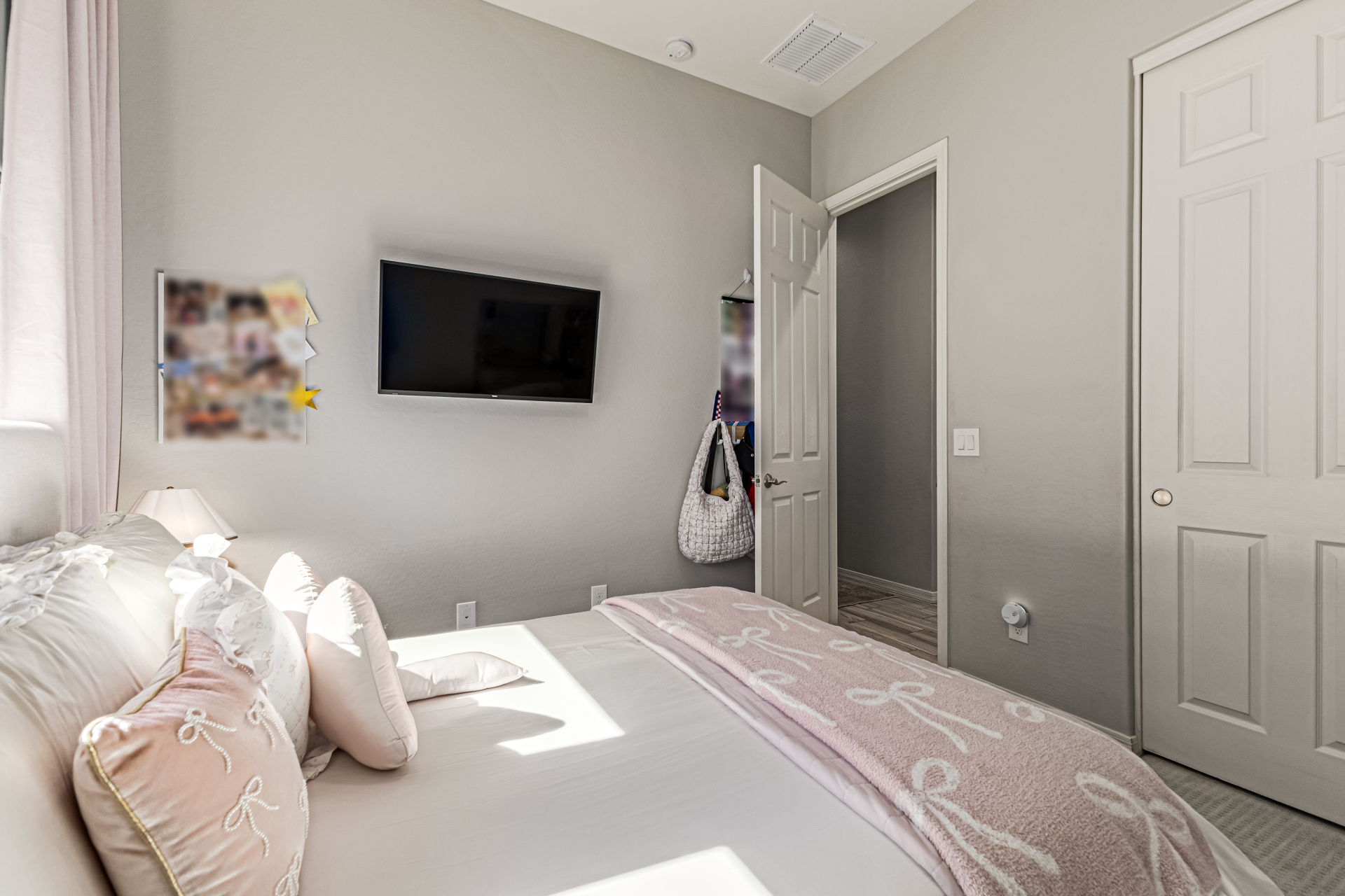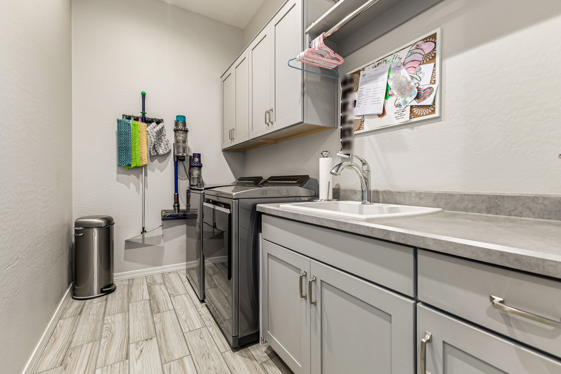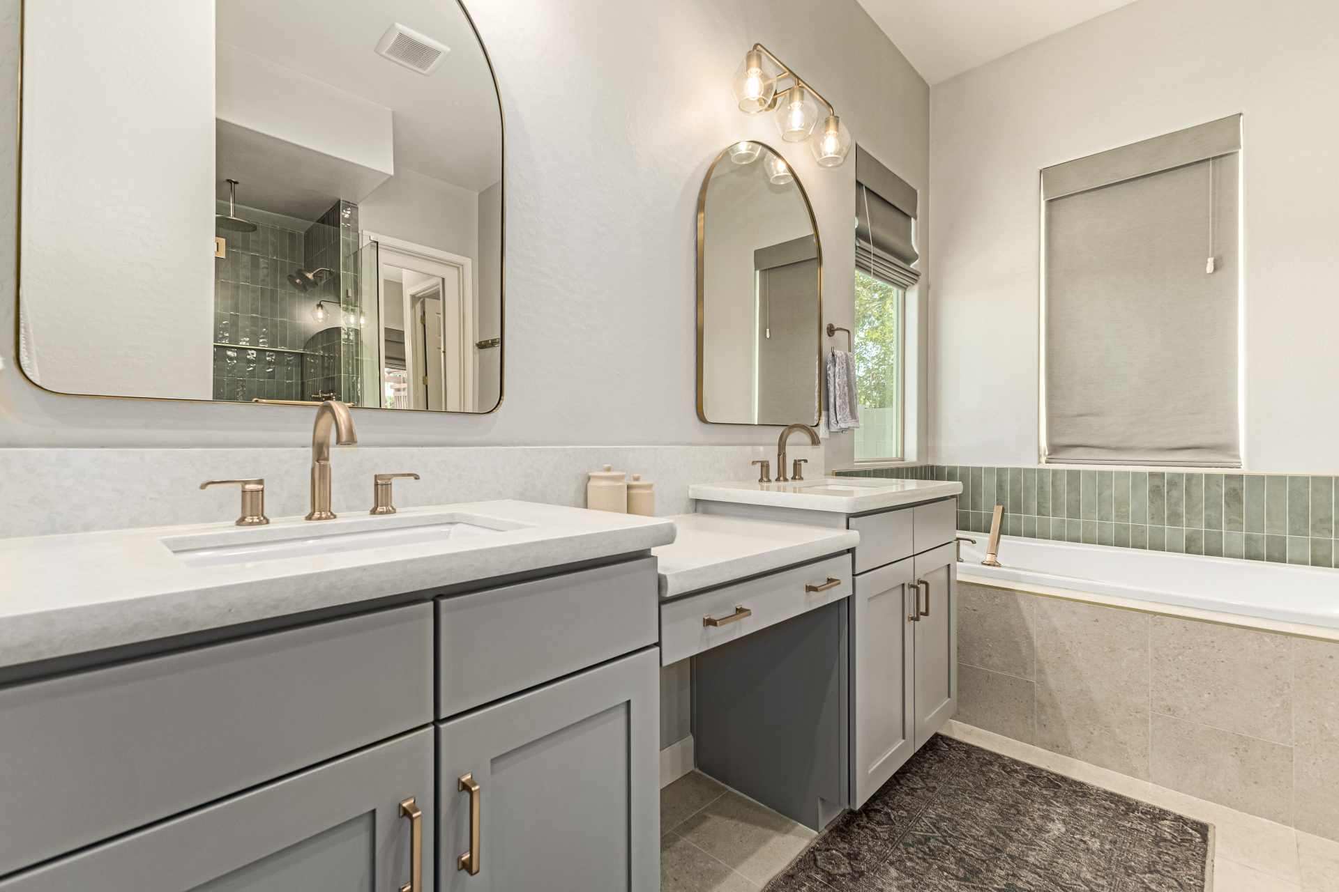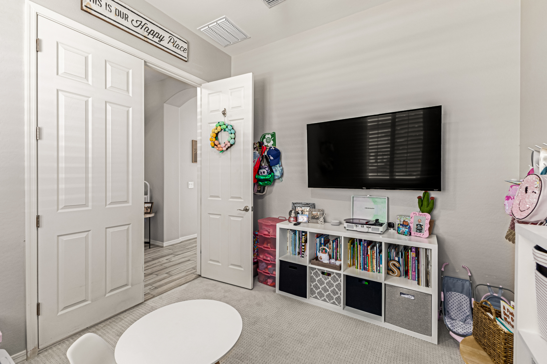 Modern luxury meets resort-style living in this stunning Gilbert home! Amazing single level plan features 4 beds+ den & 3.5 baths! Neutral tile floors & new carpet in bedrooms. The kitchen features an oversized island, gorgeous granite, gas cooktop, Insta-hot water, new dishwasher, custom cabinetry, coffee bar & beverage fridge. You'll love the family room with electric FP, surround sound speakers & views of the pool. The primary suite offers a fully updated spa-like bath w/ new counters, tiled shower w/ 3 shower heads & updated fixtures. Marble counters in guest baths. Enjoy a backyard oasis with a pool & spa (added in 2022), travertine decking & built-in gas BBQ--perfect for Arizona entertaining. Don't miss the putting green, patio misters, tankless water heater & overhead garage racks.