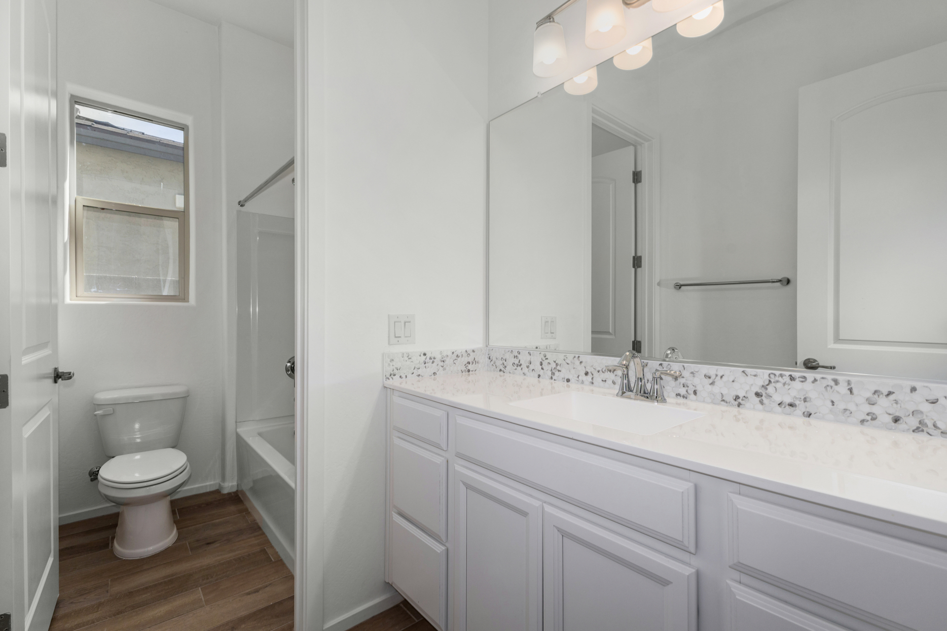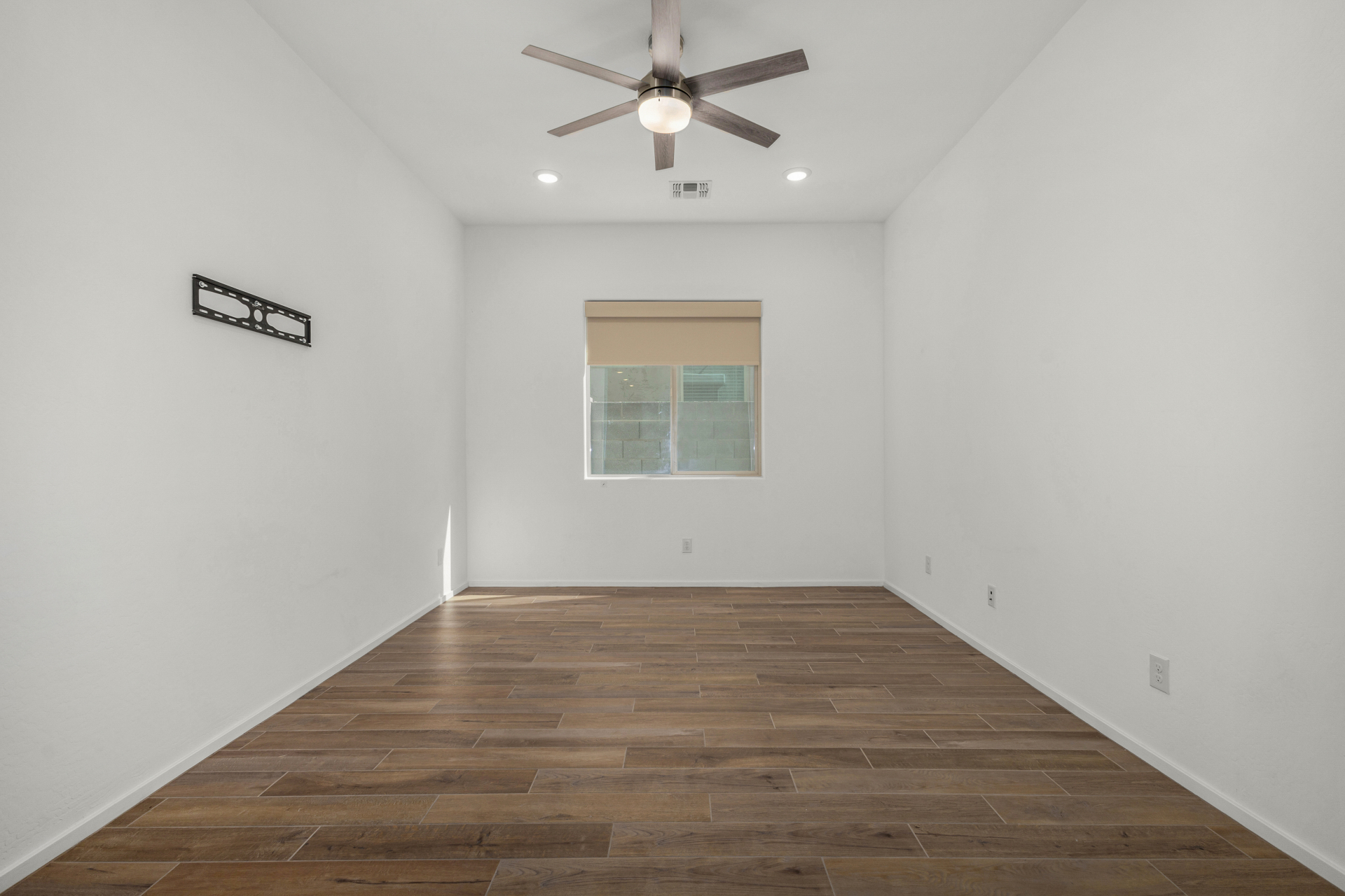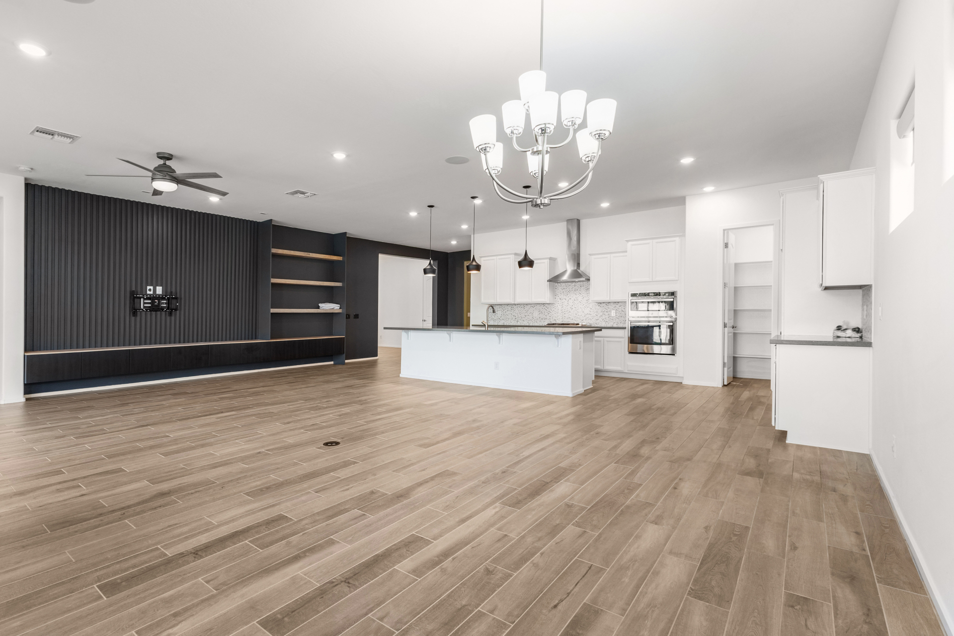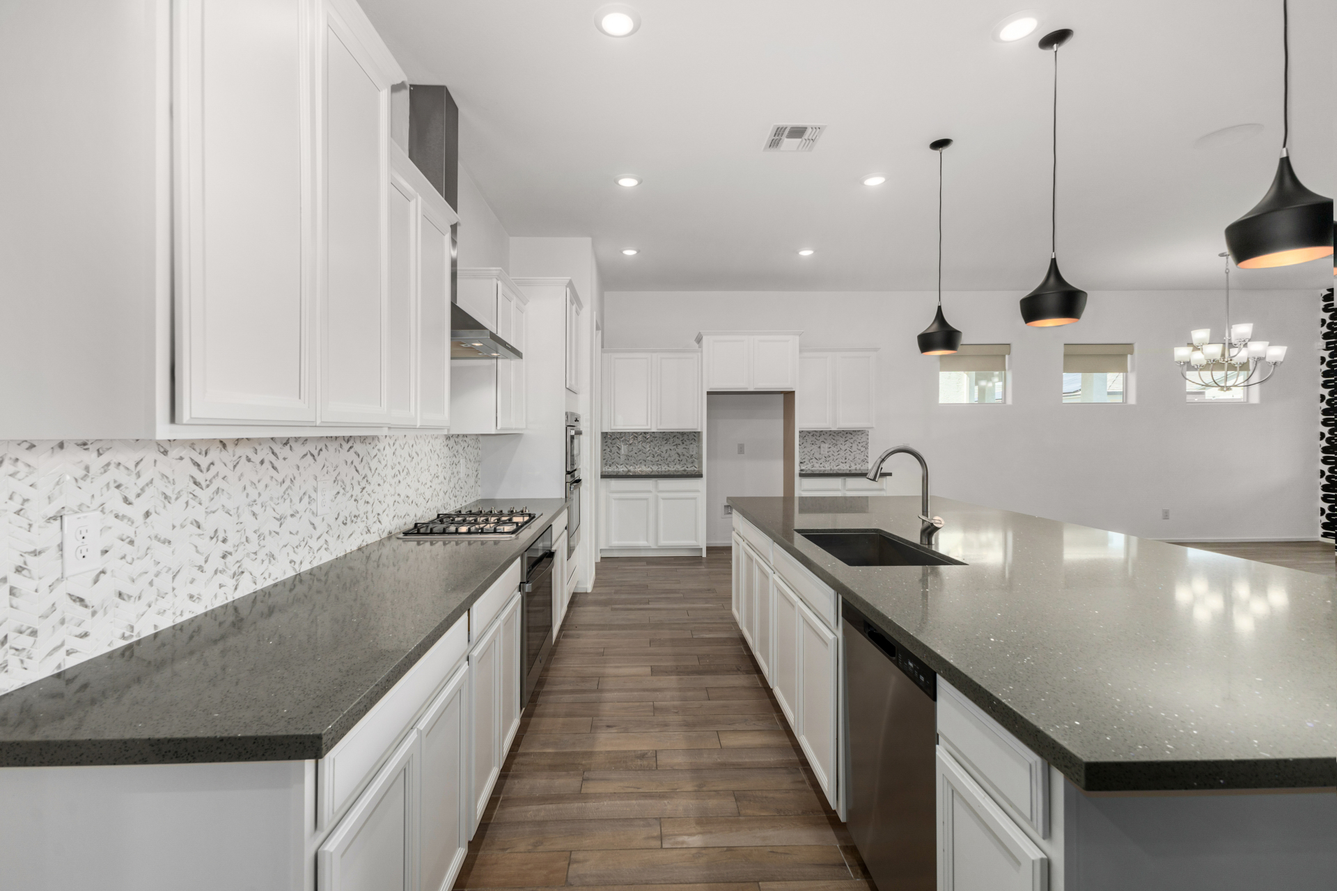 Home, sweet home! This stunning 4-bedroom residence welcomes you with a manicured landscape and a 2-car garage. The interior features a spacious and open layout with wood-look flooring, contemporary lighting, and stylish neutral colors. Whip up your signature dishes in the impeccable culinary space, displaying ample cabinetry, granite countertops, tile backsplash, a pantry, SS appliances & an island with a breakfast bar, for those casual conversations and quick bites. Get a good night's rest in the main suite, boasting a practical walk-in closet and a bathroom for privacy. The den is perfect for a creative space or a home office. Out back, you'll have ample space for entertainment and relaxation, complete with a covered patio, pavers, a gazebo, and artificial grass. Truly a must-see!