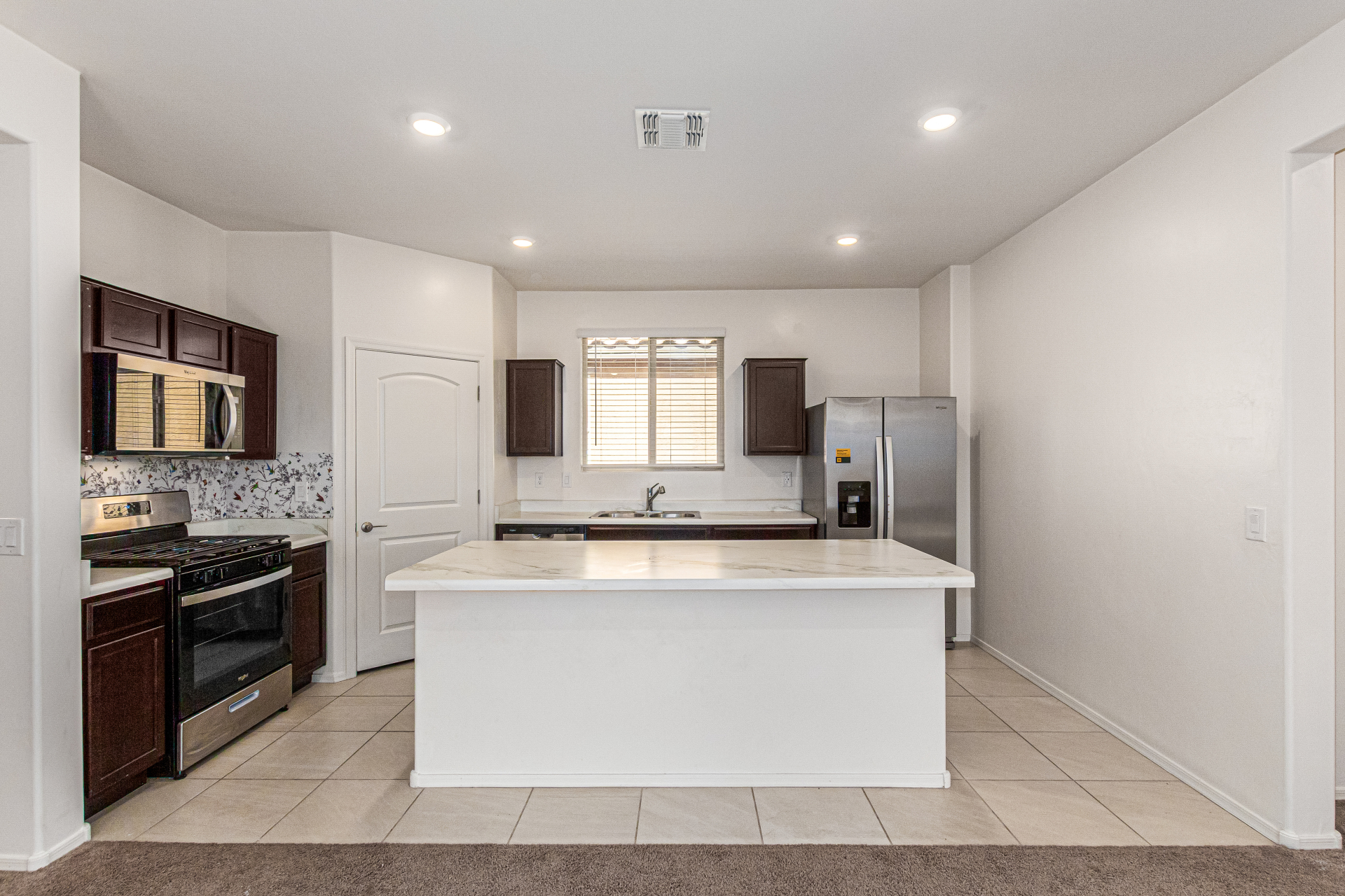 Check out this adorable 3-bedroom home! Resting on a desirable corner lot, this gem boasts a charming curb appeal, a manicured landscape, and a 2-car garage. Inside, you'll find an open floor plan perfect for entertaining and relaxation, showcasing soft carpeting underfoot, tile in all the right places, abundant natural light, and neutral paint that complements any decor choice. The impeccable kitchen is complete with recessed lighting, mocha cabinets, plenty of counter space, stainless steel appliances, and an island with a breakfast bar, for those casual conversations and quick meals. The main bedroom promises a good night's sleep and hosts a practical walk-in closet for all your belongings and a full bathroom with double sinks. Out back, you'll have a cozy covered patio ideal for morning coffee, ample sitting space, perfect for gatherings, and artificial grass. Hurry up, this one won't last!