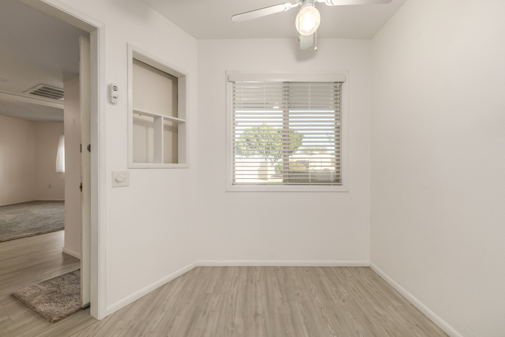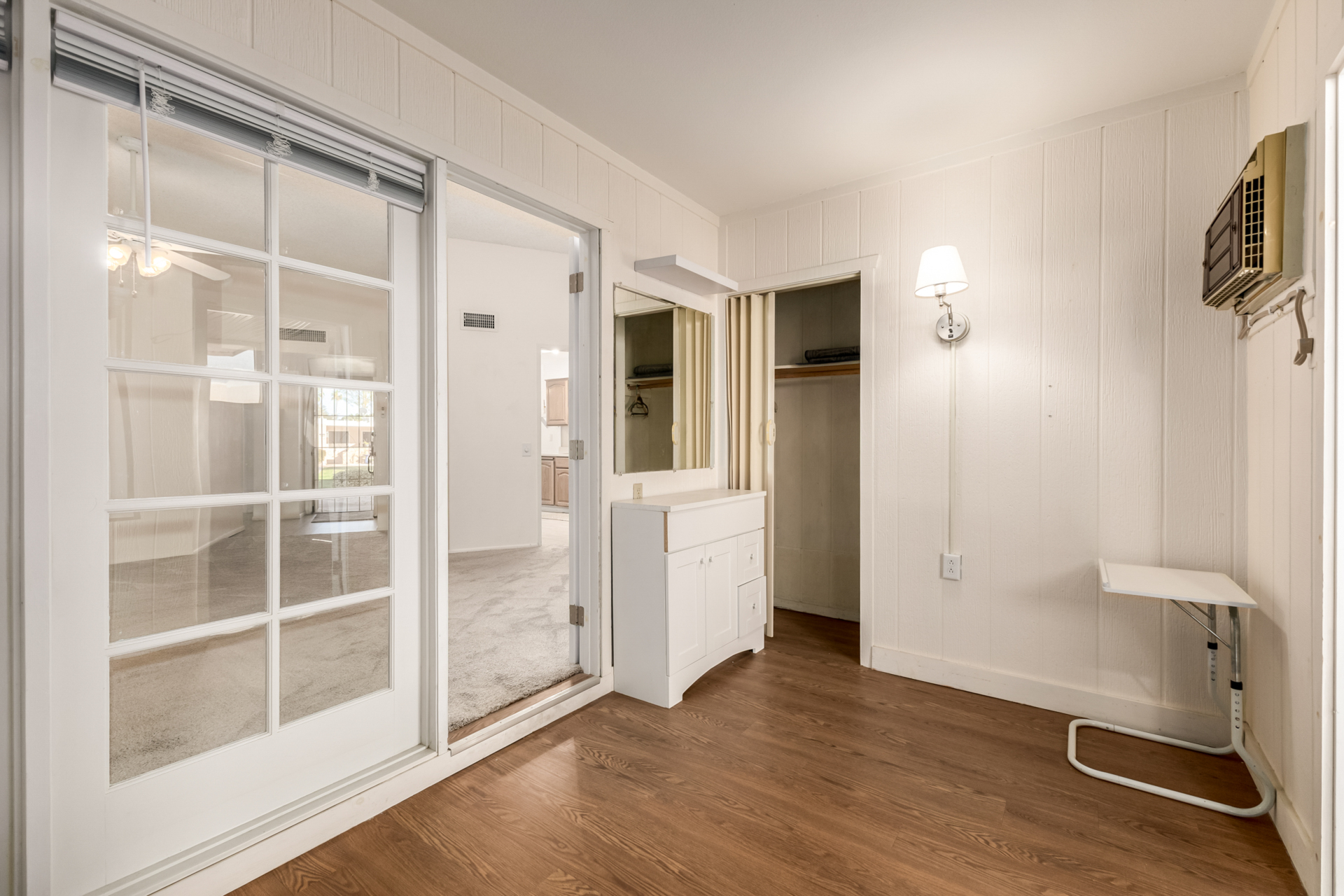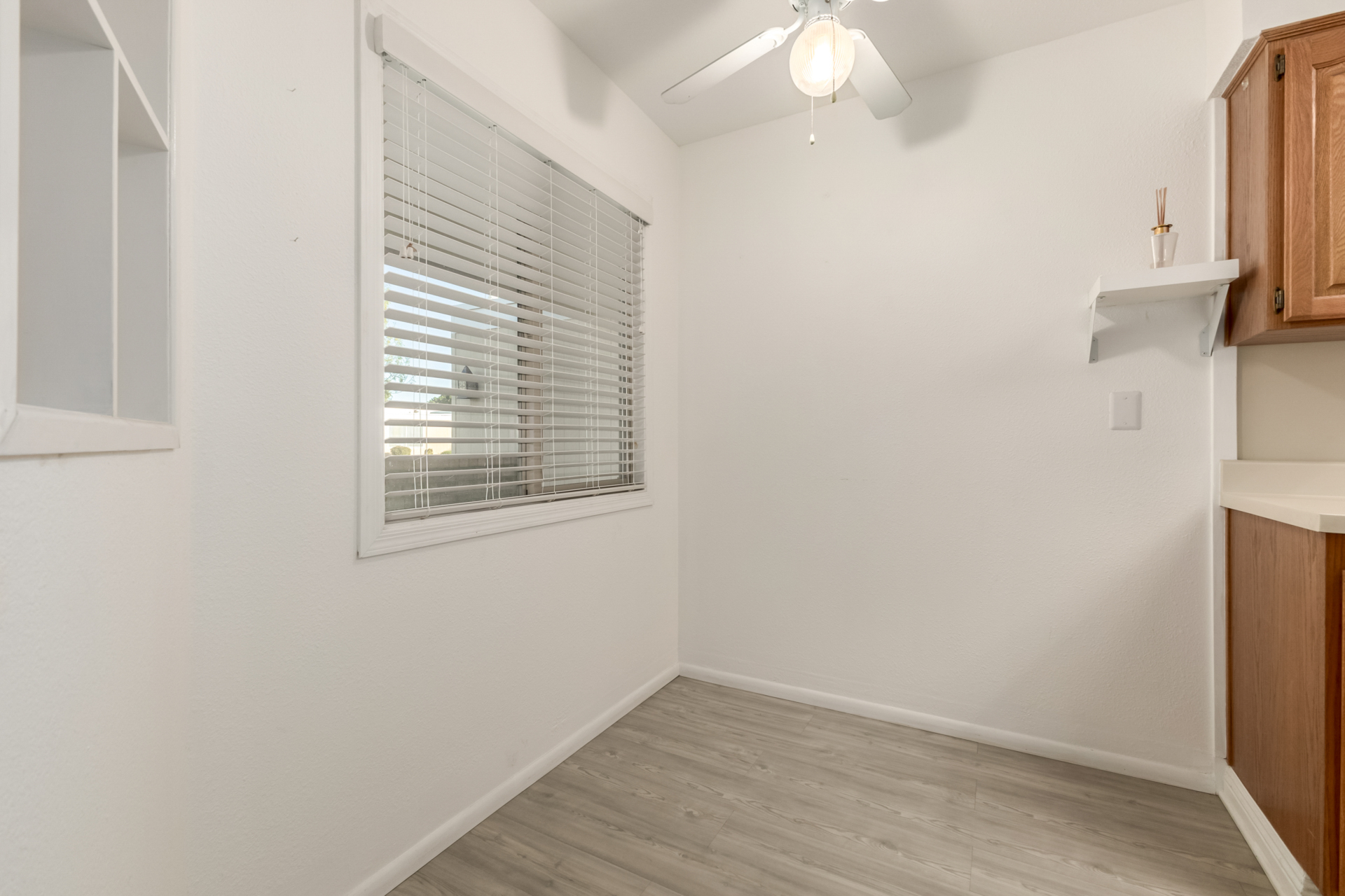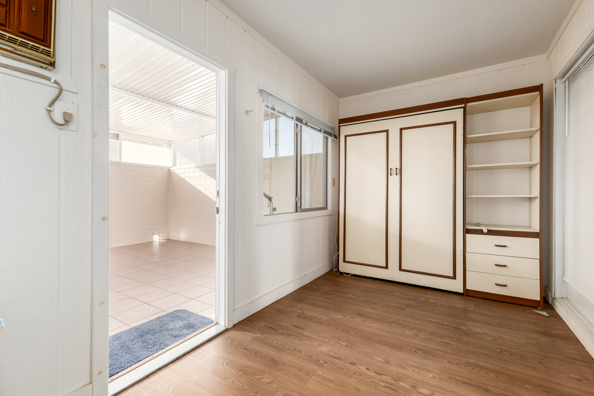 A charming 2 bed, 1 bath townhome in Sun City is now for sale! Featuring a sizeable front yard and a 1 car garage, this end-unit gem is sure to be the one for you! Inside you will find a large dining & living area w/high ceilings, perfect for entertaining. Elegant wood-look flooring, soft carpet in all the right places, skylights, and neutral palette throughout! The kitchen comes equipped w/ample cabinetry, plenty of counter space, built-in appliances, a pantry, track lighting, and a breakfast nook. Double doors open up to the primary suite, showcasing a walk-in closet for all your belongings. Lastly, the large covered patio is the perfect place for spending a relaxing summer evening! What are you waiting for? Don't miss out!