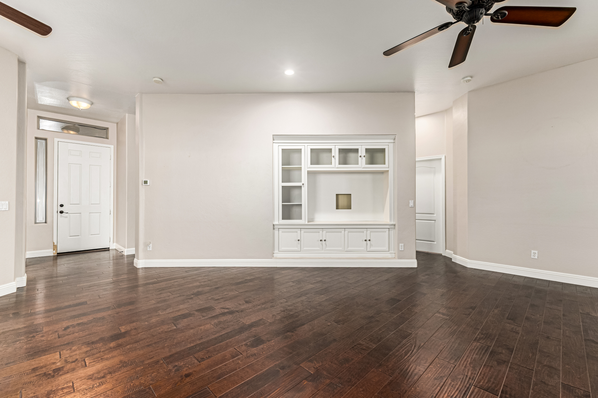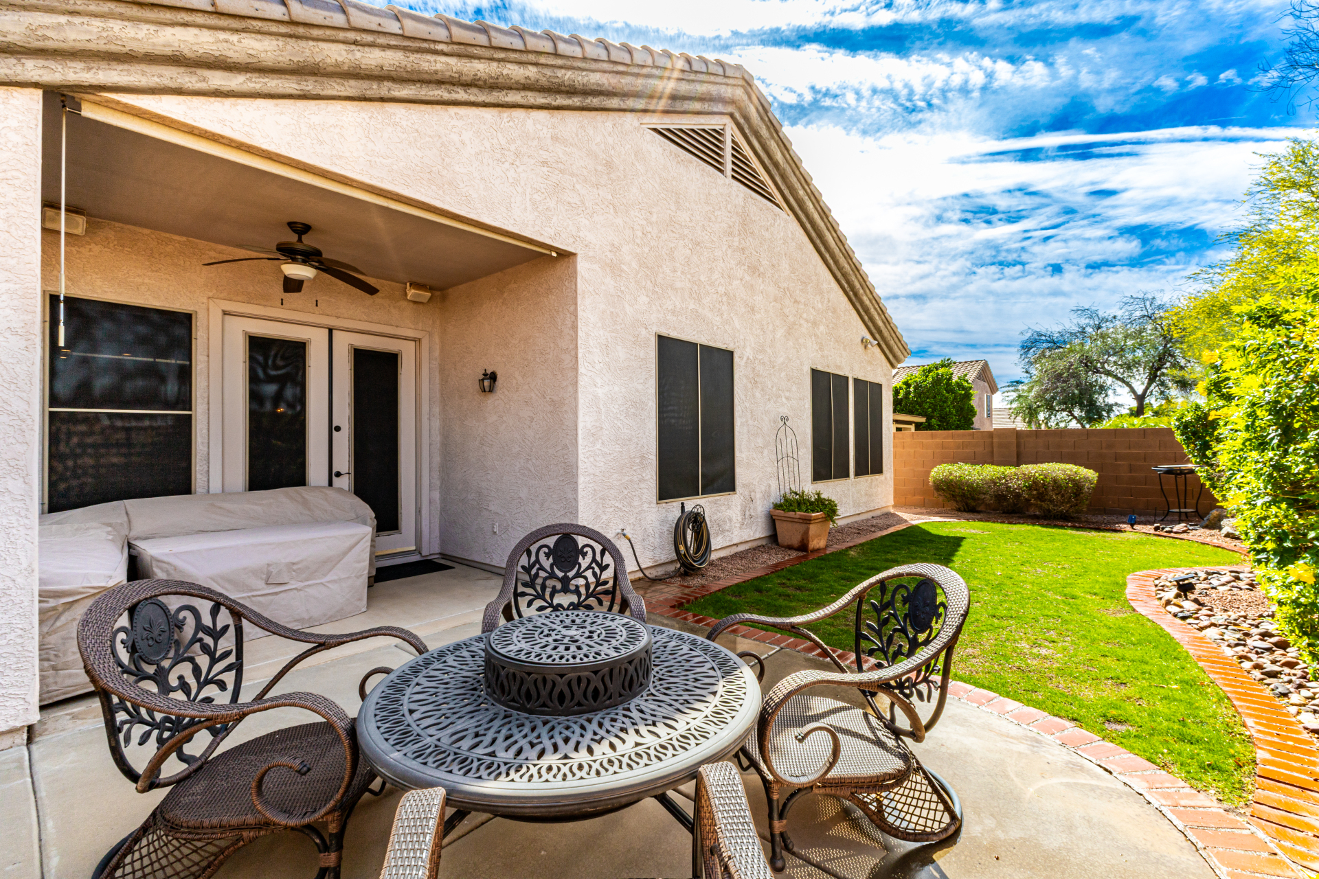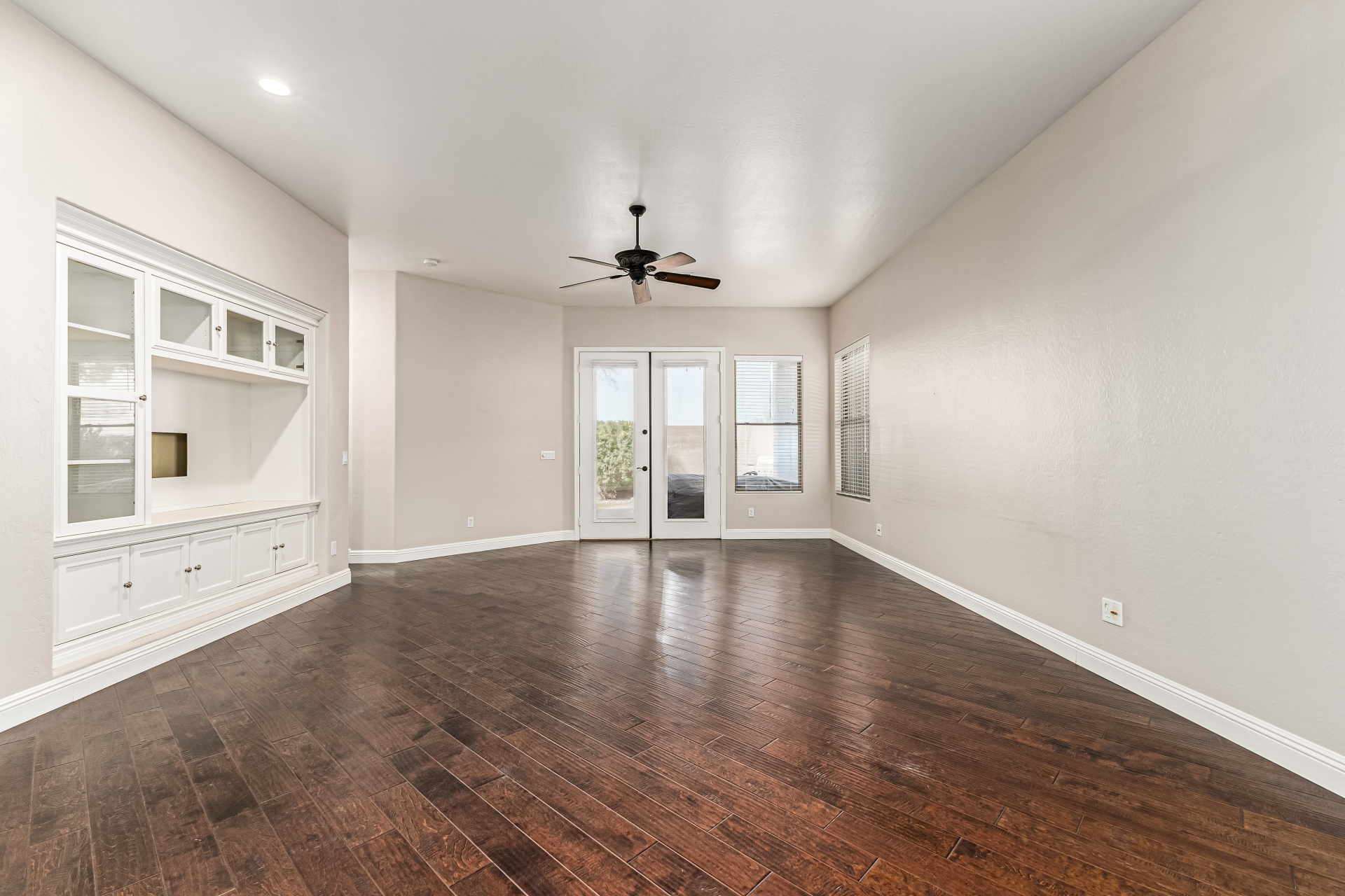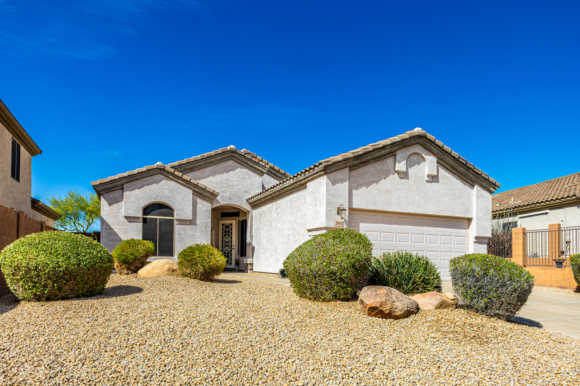 This gorgeous single-story home awaits you in Eagle Highlands! Explore the bright and airy living areas featuring elegant hardwood floors, baseboard molding, a built-in entertainment center in the living room, and a soothing palette that makes you want to stay. Prepare delicious meals in the impeccable kitchen, equipped with ample cabinets adorned with crown molding, tile backsplash & a spacious peninsula with built-in appliances. The main bedroom is a true retreat, offering a walk-in closet for effortless organization, a bathroom with double sinks and a separate shower & tub, and a sizable sitting room, perfect for entertaining & relaxation. The backyard hosts a covered patio, perfect for enjoying a refreshing drink, and a serene landscape with grass. What's not to love? Make it yours!