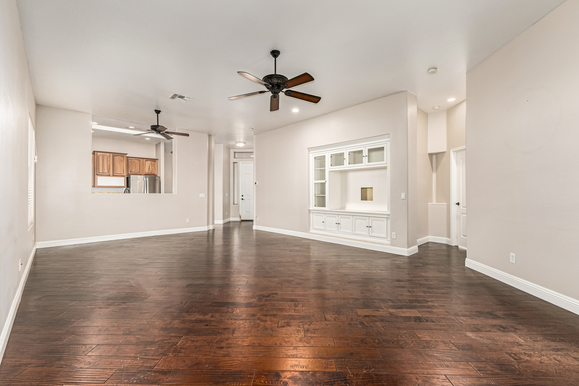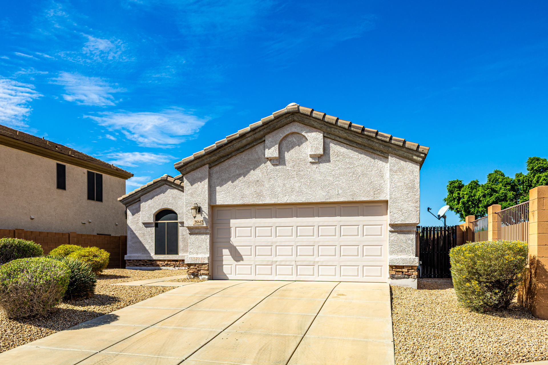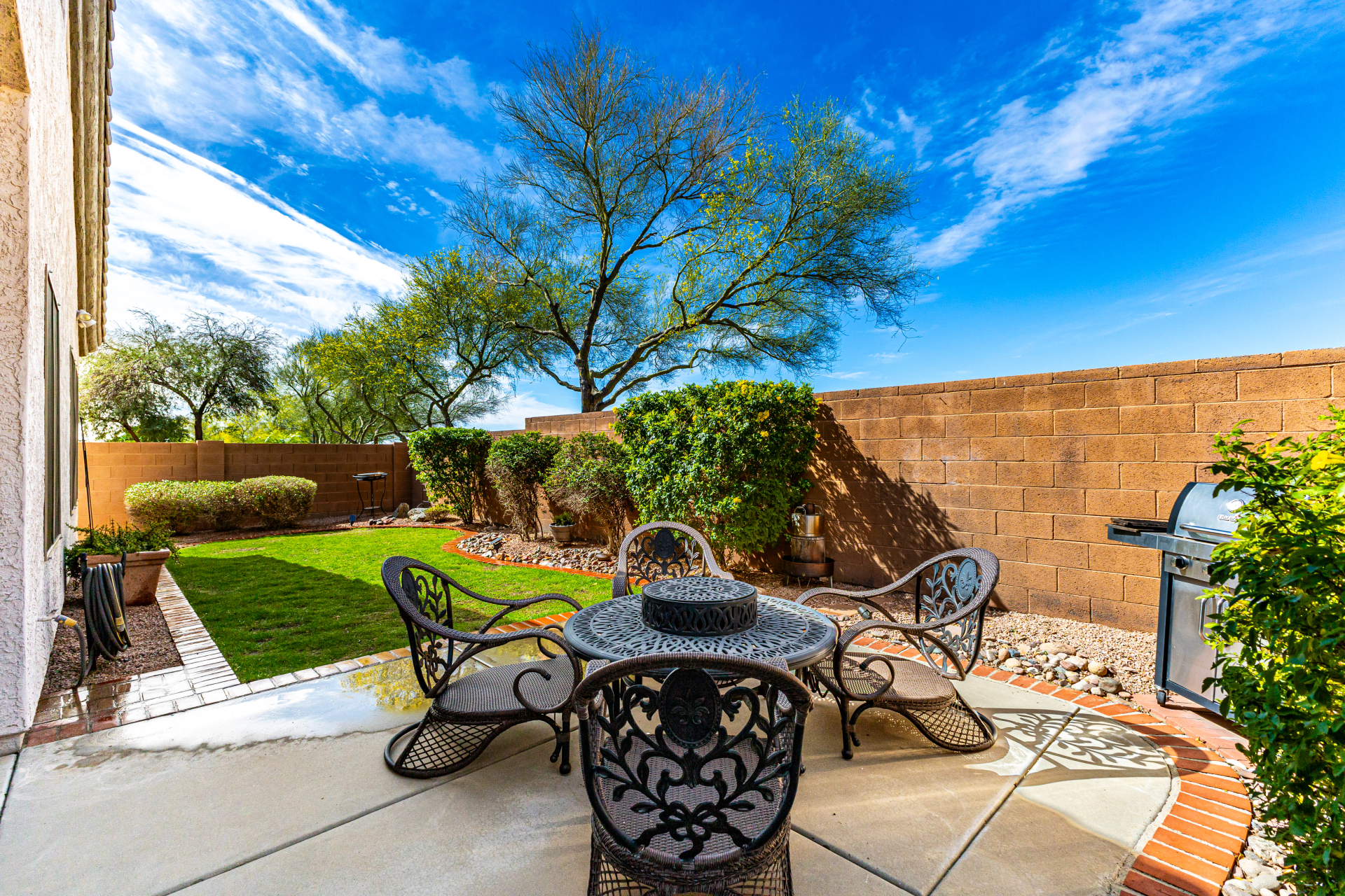 This gorgeous single-story home awaits you in Eagle Highlands! Explore the bright and airy living areas featuring elegant hardwood floors, baseboard molding, a built-in entertainment center in the living room, and a soothing palette that makes you want to stay. Prepare delicious meals in the impeccable kitchen, equipped with ample cabinets adorned with crown molding, tile backsplash & a spacious peninsula with built-in appliances. The main bedroom is a true retreat, offering a walk-in closet for effortless organization, a bathroom with double sinks and a separate shower & tub, and a sizable sitting room, perfect for entertaining & relaxation. The backyard hosts a covered patio, perfect for enjoying a refreshing drink, and a serene landscape with grass. What's not to love? Make it yours!