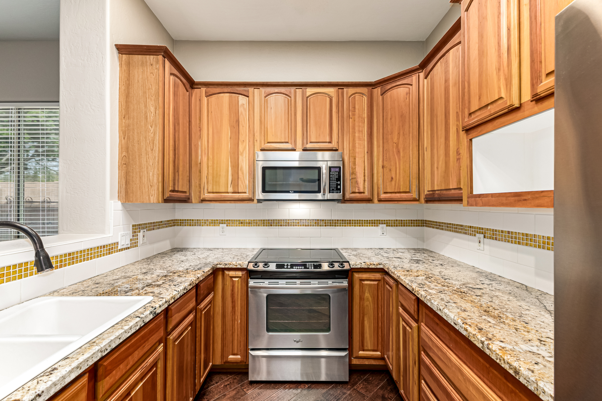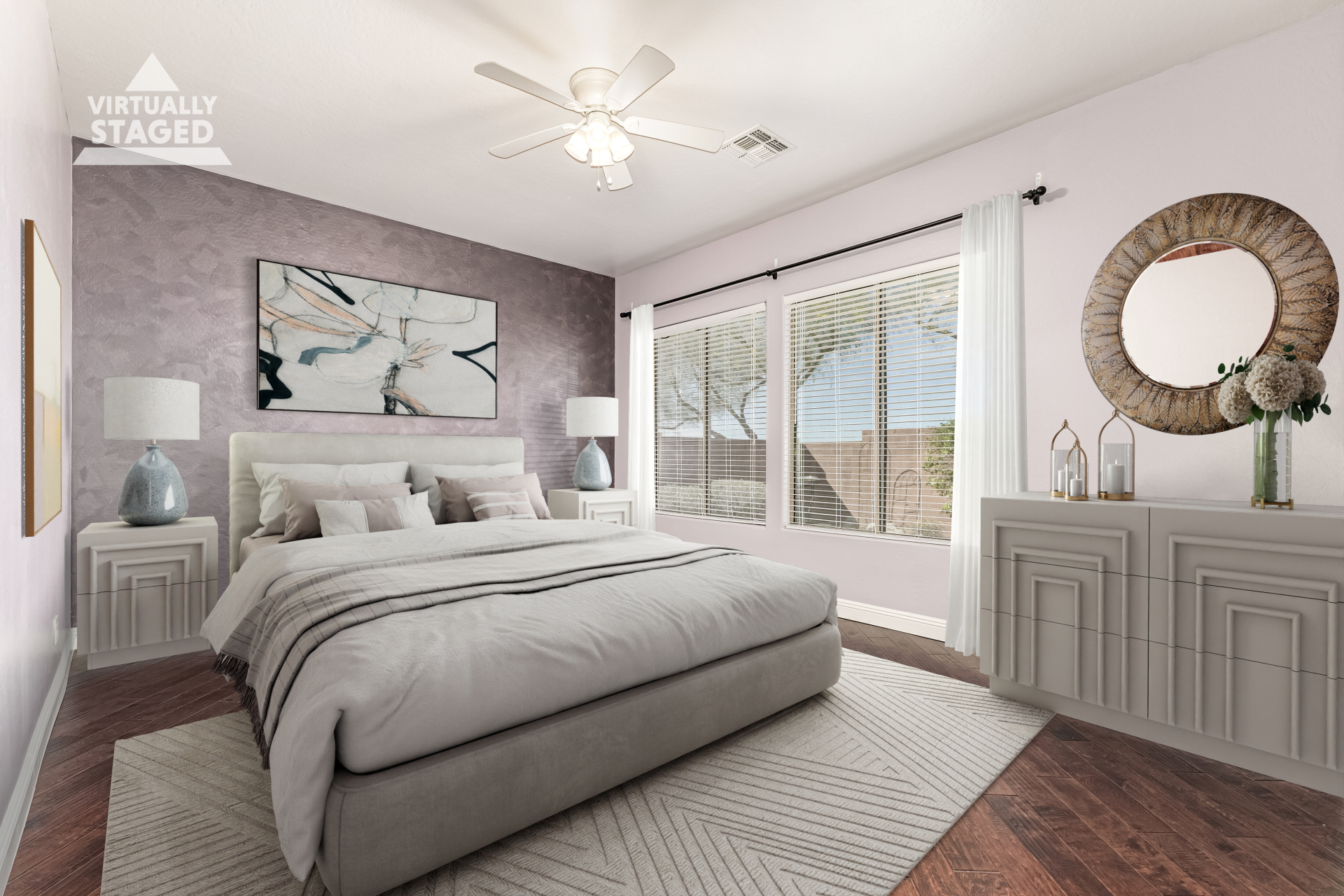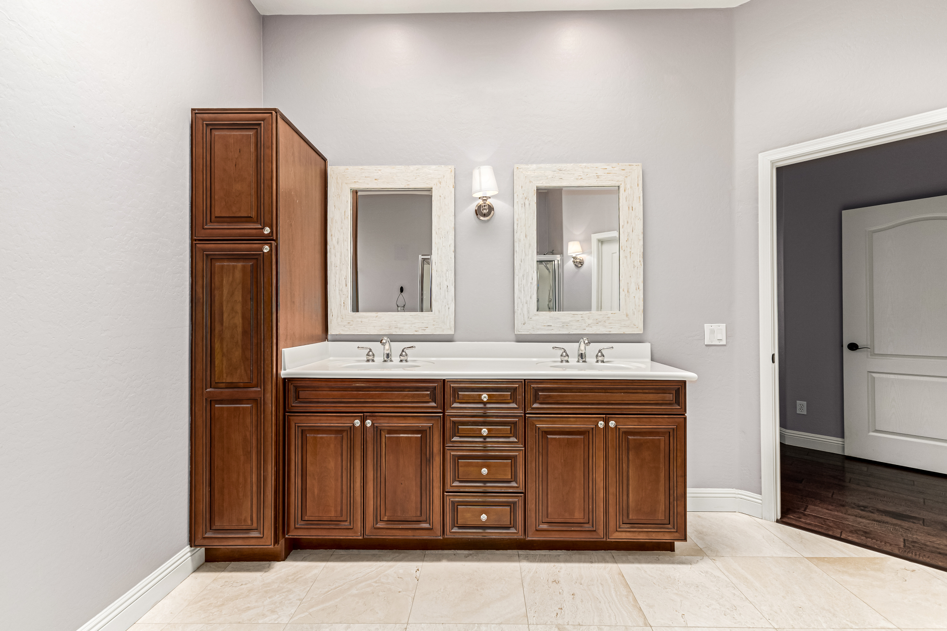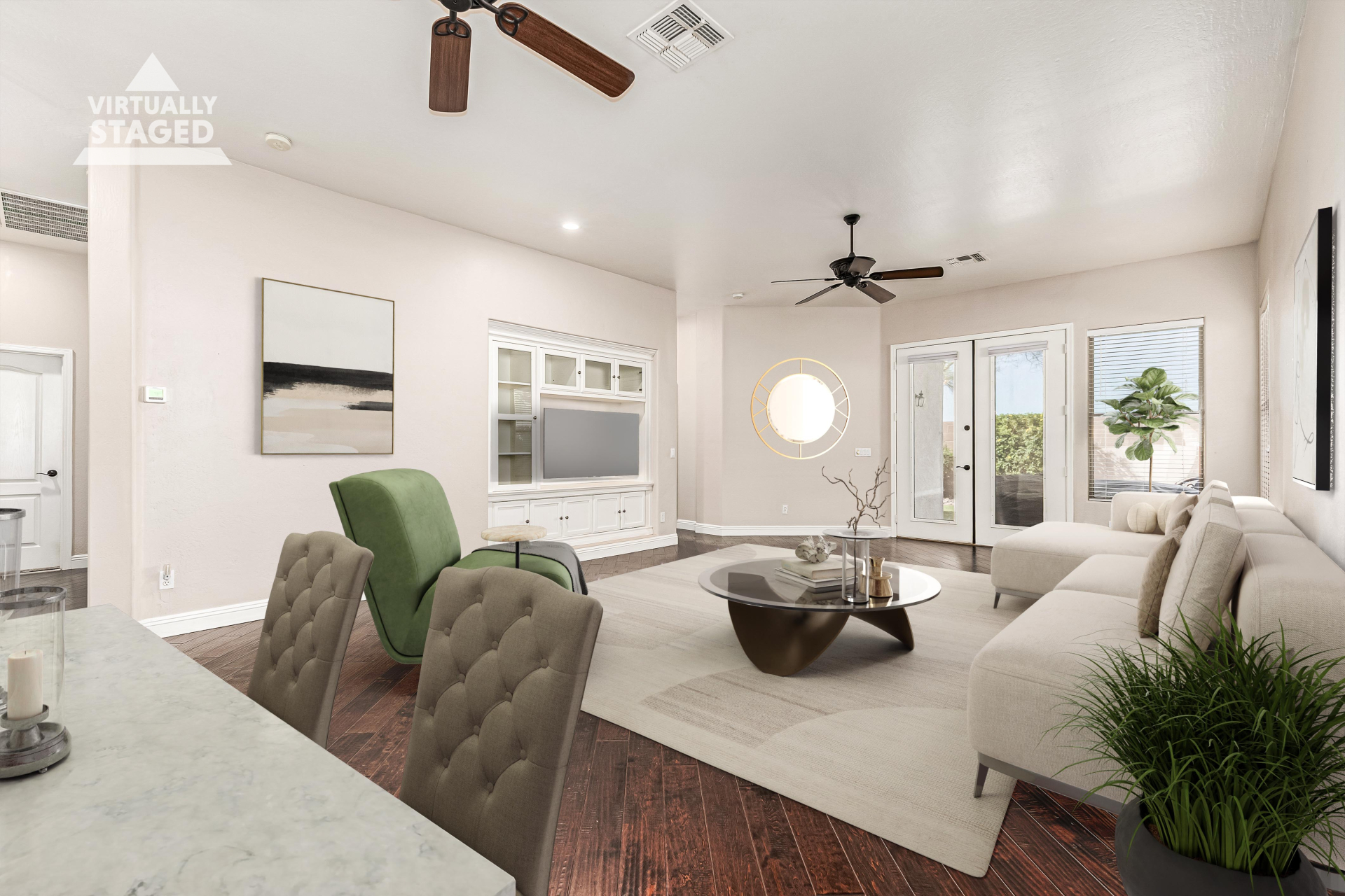 This gorgeous single-story home awaits you in Eagle Highlands! Explore the bright and airy living areas featuring elegant hardwood floors, baseboard molding, a built-in entertainment center in the living room, and a soothing palette that makes you want to stay. Prepare delicious meals in the impeccable kitchen, equipped with ample cabinets adorned with crown molding, tile backsplash & a spacious peninsula with built-in appliances. The main bedroom is a true retreat, offering a walk-in closet for effortless organization, a bathroom with double sinks and a separate shower & tub, and a sizable sitting room, perfect for entertaining & relaxation. The backyard hosts a covered patio, perfect for enjoying a refreshing drink, and a serene landscape with grass. What's not to love? Make it yours!