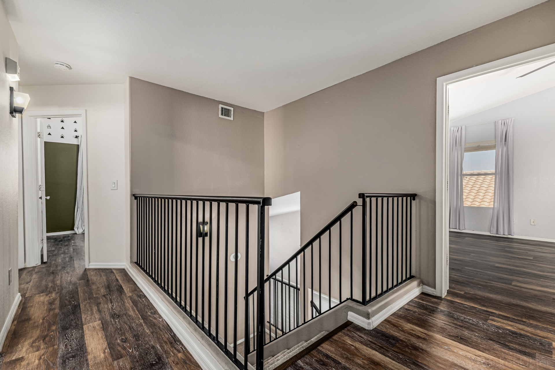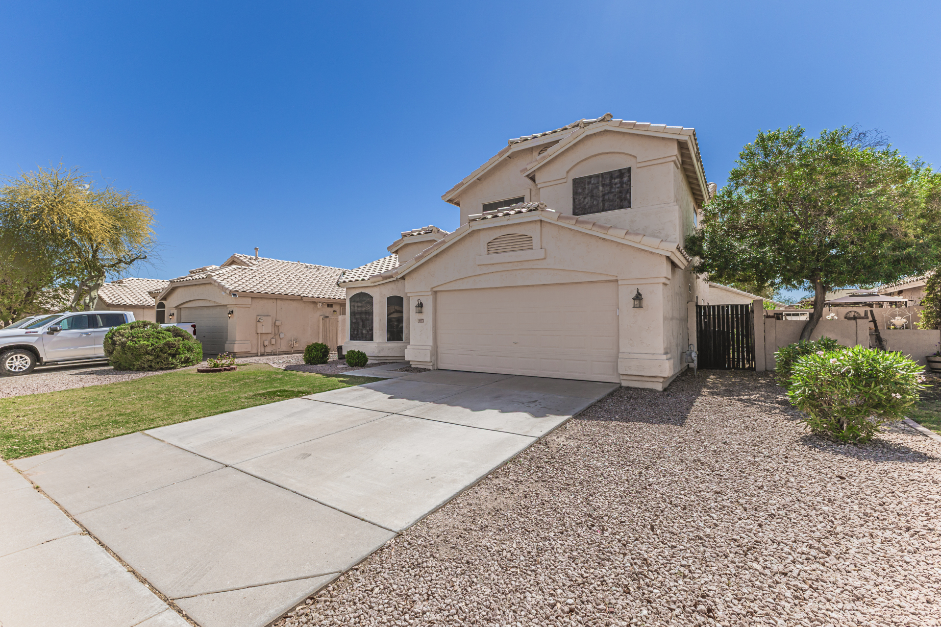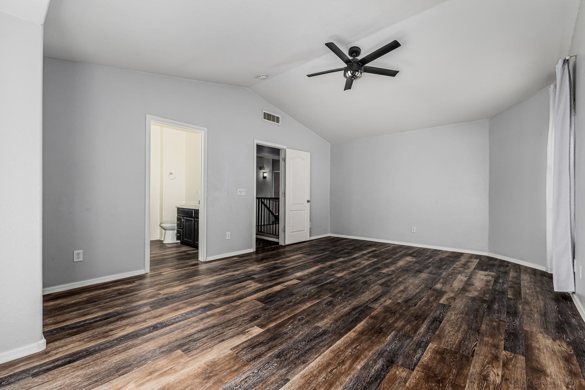 white cabinets, quartz counters, a center island with a breakfast bar, and a cozy breakfast nook. Head upstairs to find a large main bedroom, offering a private