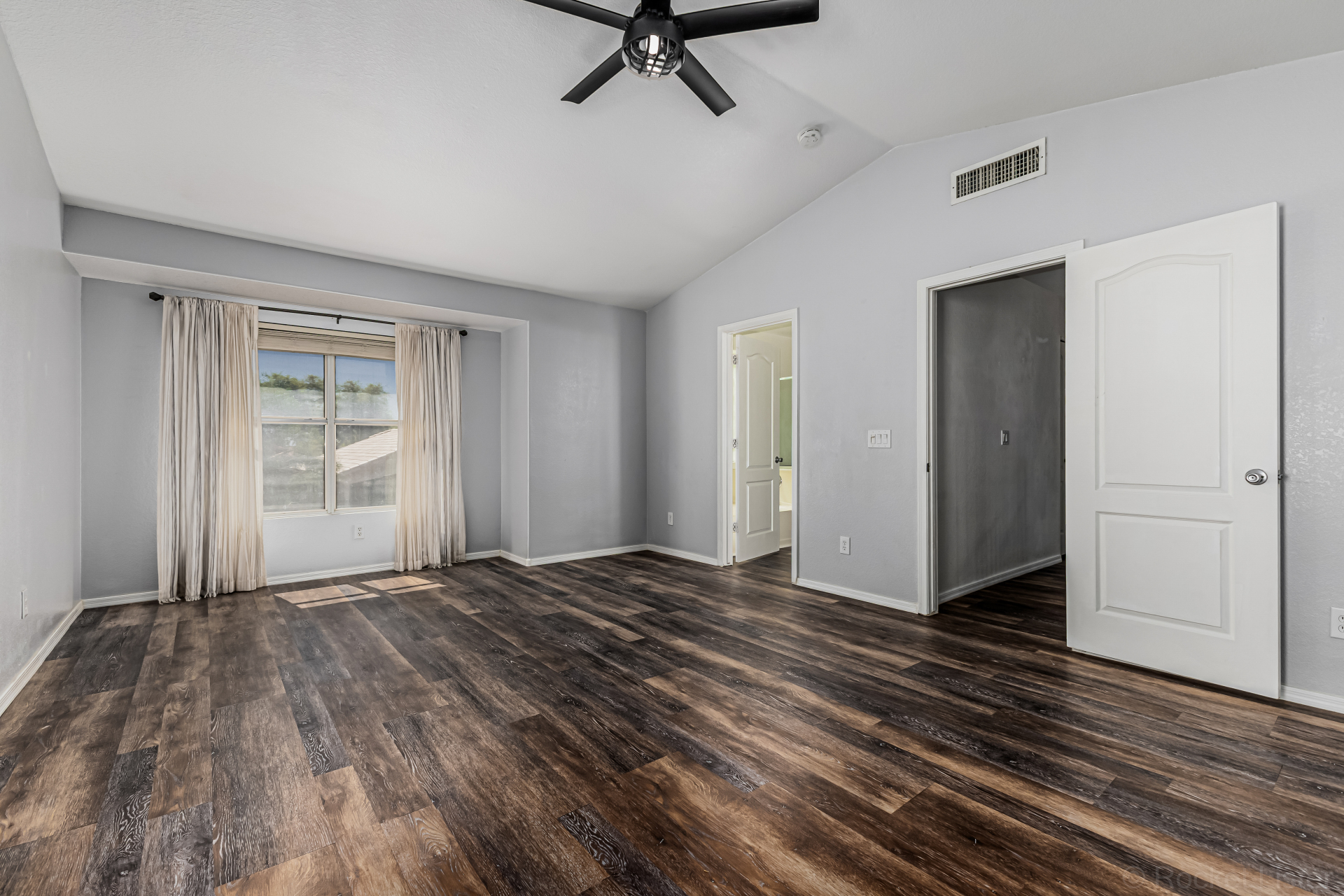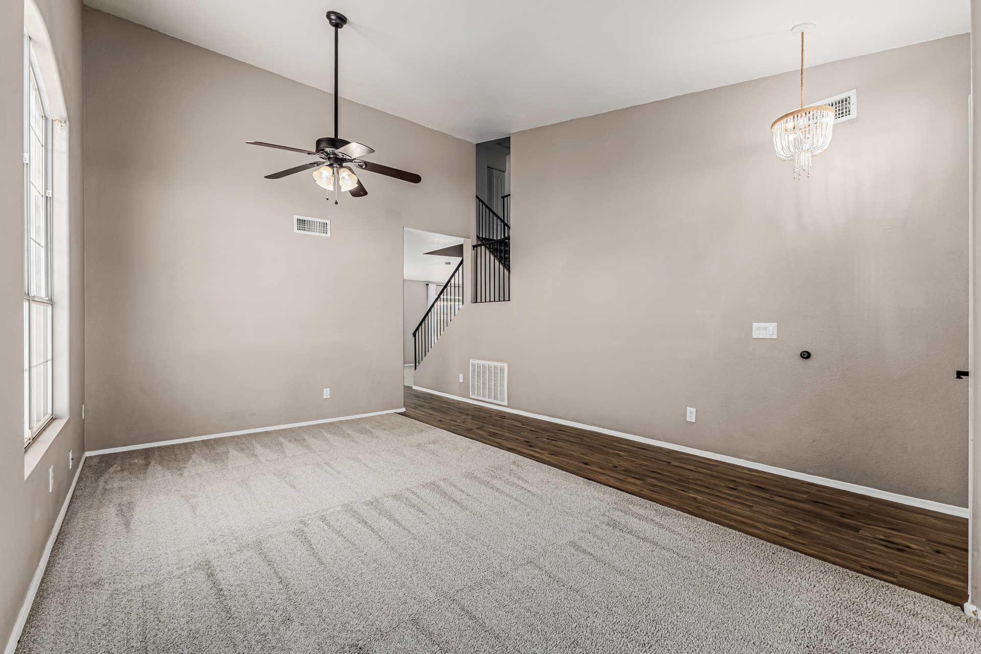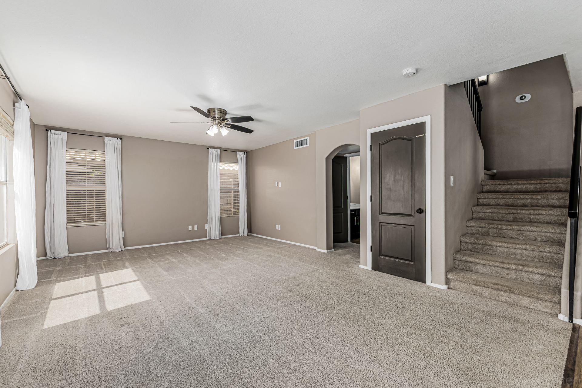 look & carpet flooring, along with vaulted ceilings that enhance the airy feel. Seamlessly connected living & dining areas and the desirable great room are perfect