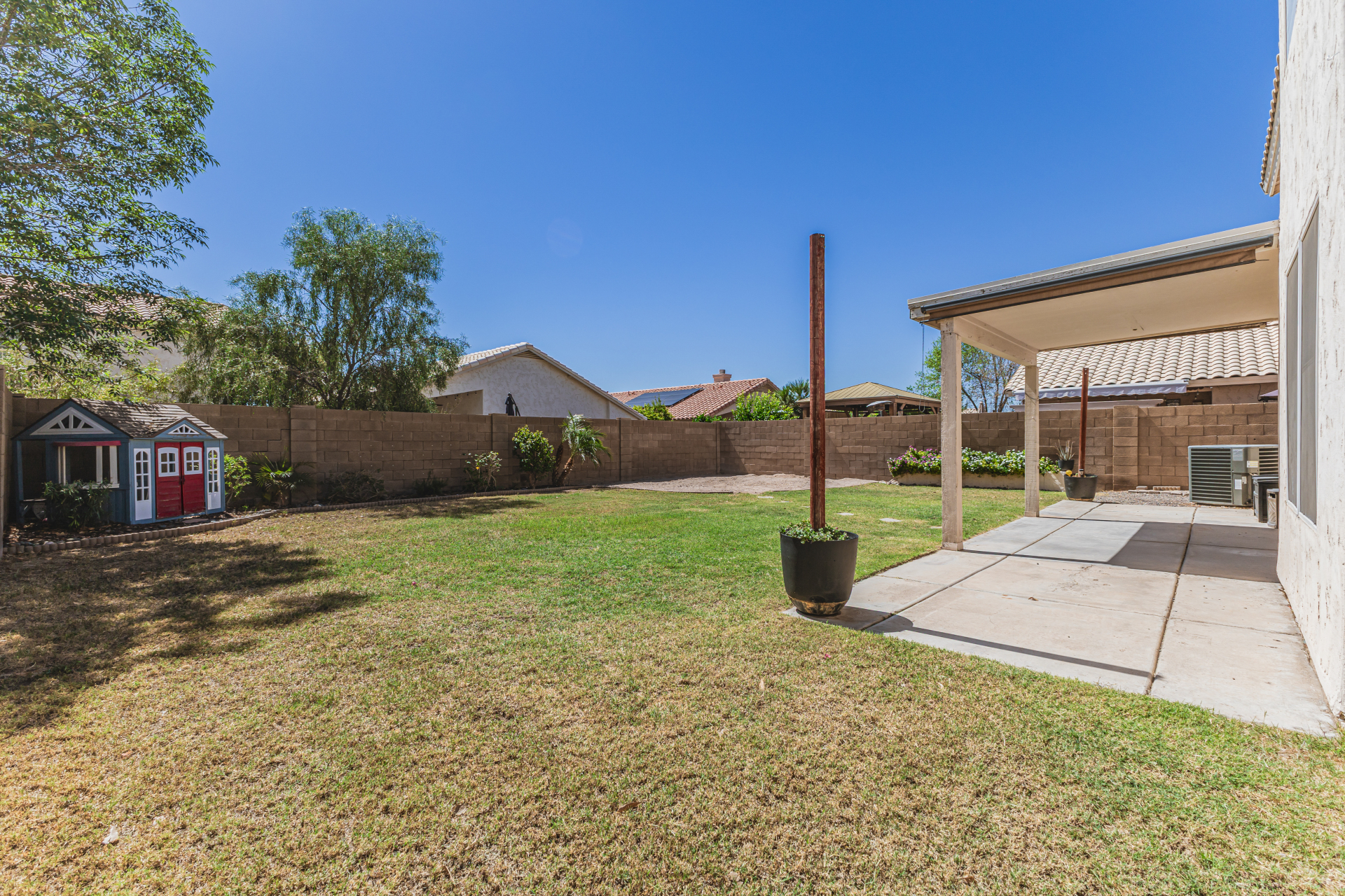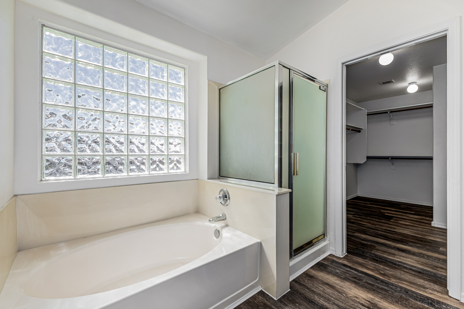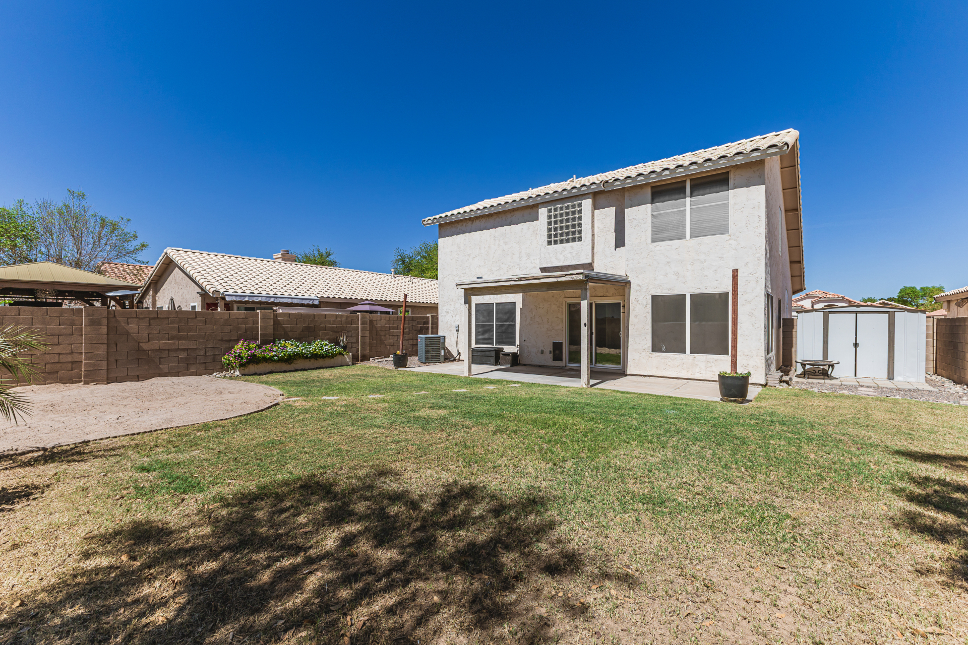 bathroom with a soaking tub and a walk-in closet. Spacious backyard includes a covered patio and storage shed. Hurry! This turn-key gem is the one for you!
