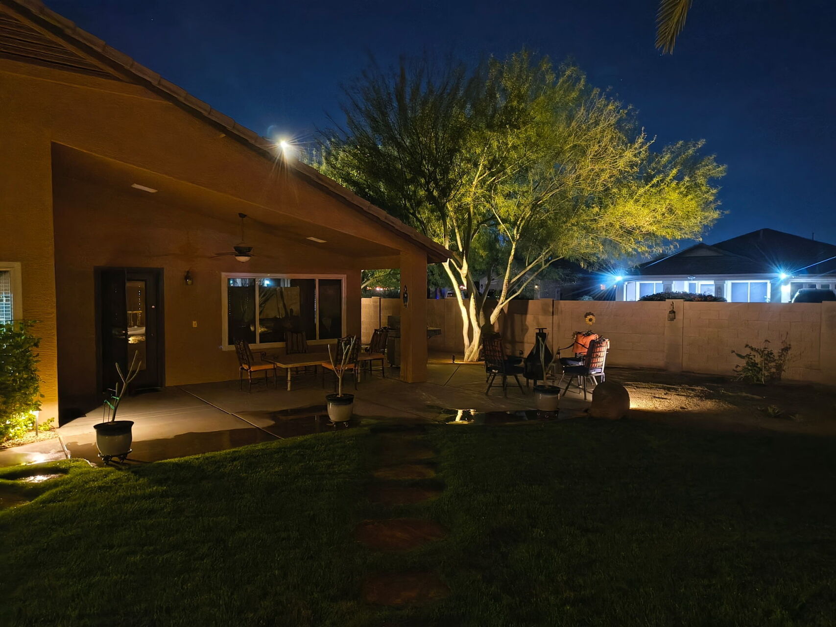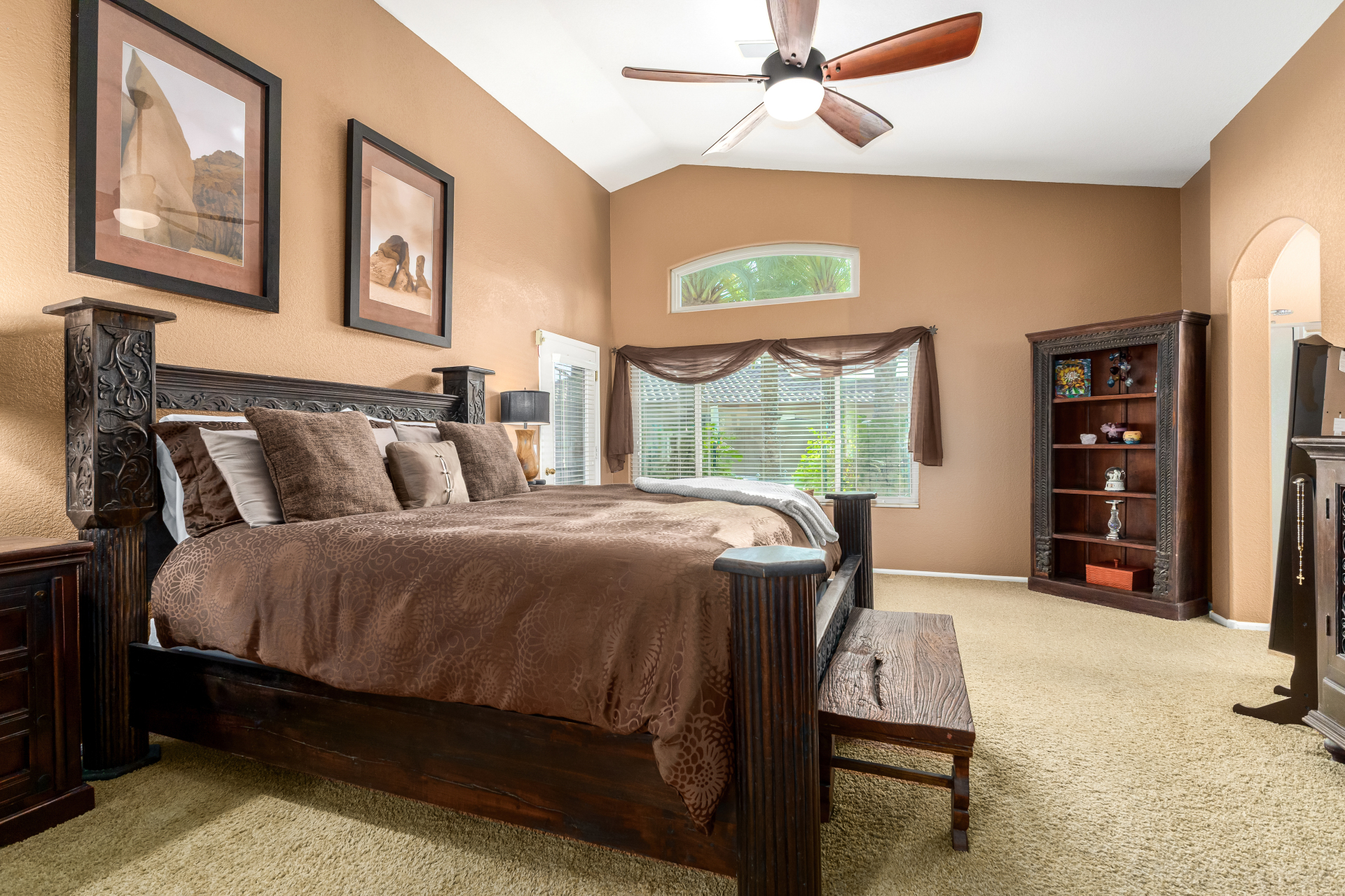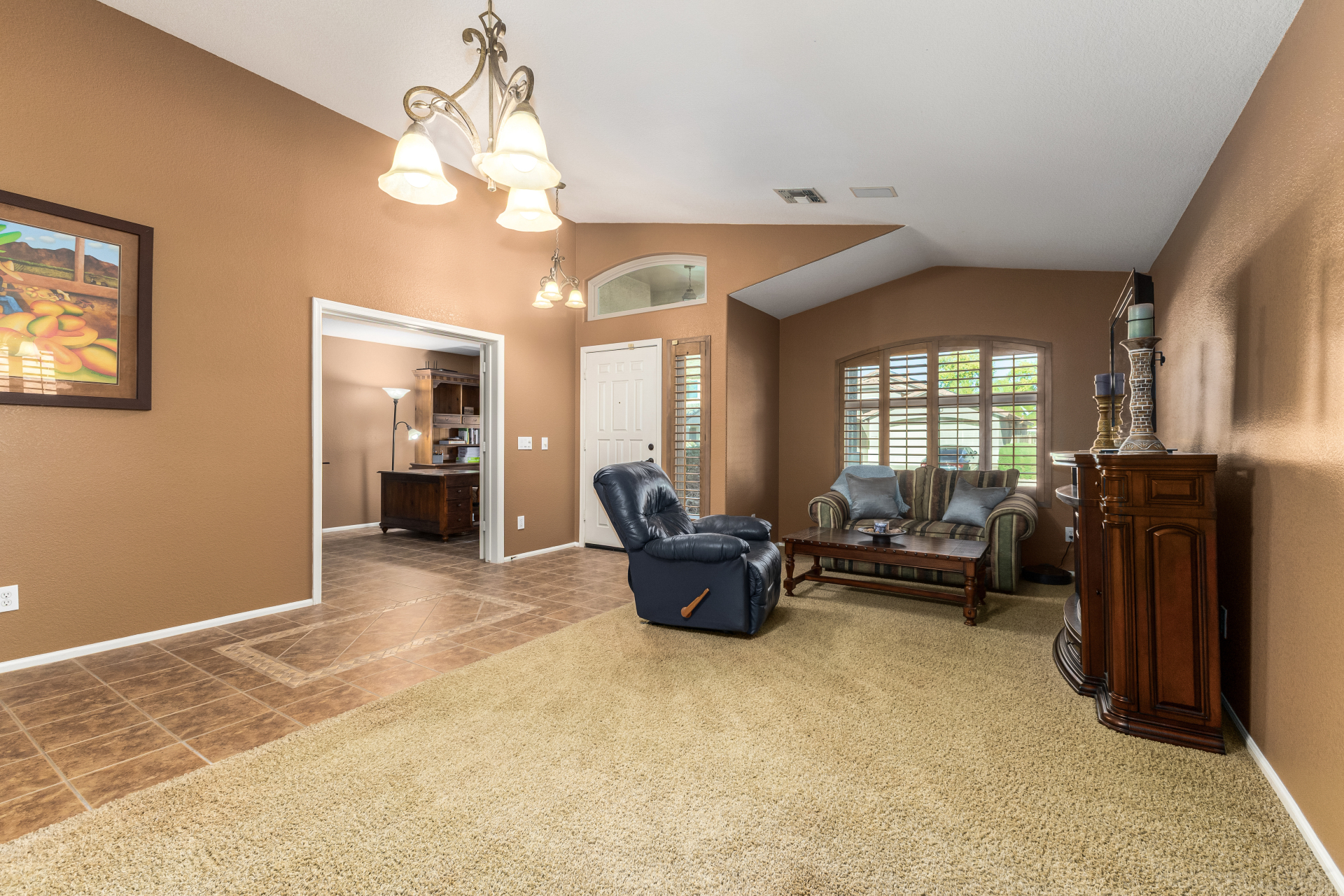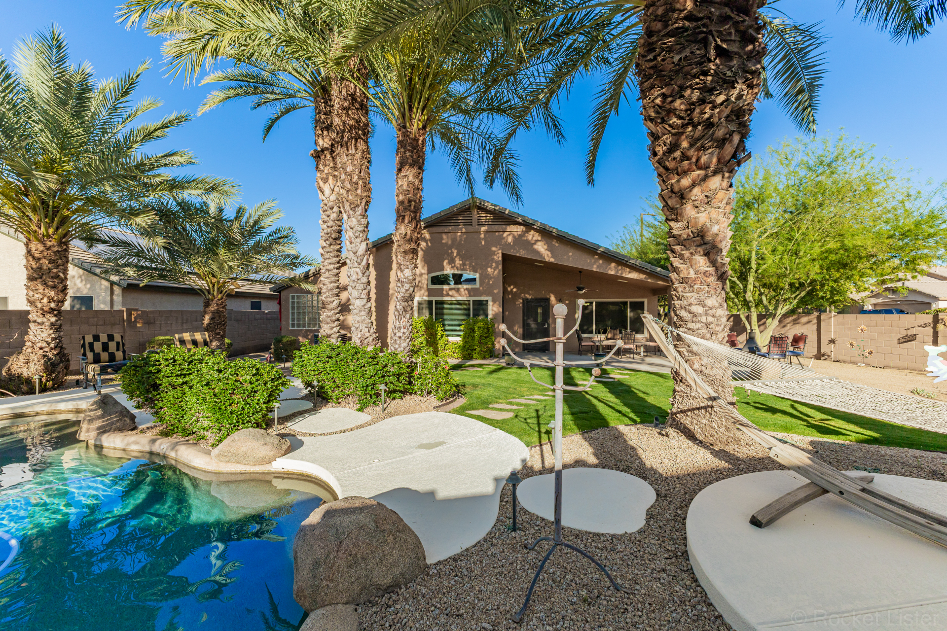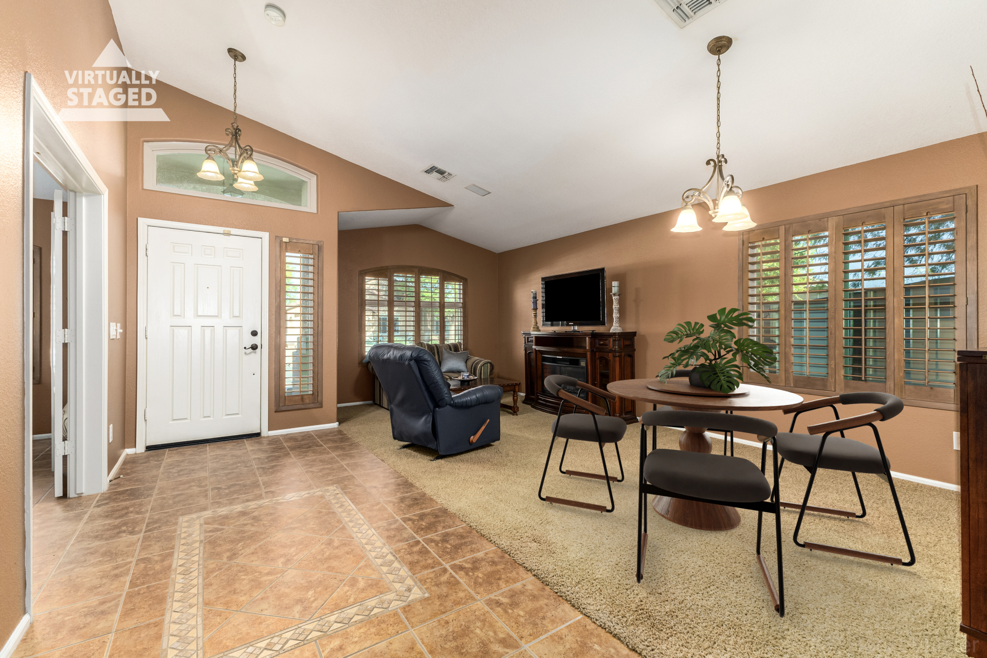 WELCOME HOME! THIS BEAUTIFUL, 3BDRM, PLUS DEN/OFFICE VIBRANT HOME FEATURES BRAND-NEW, LOW-E WINDOWS W/TRANSFERABLE WARRANTY, SOLAR SYSTEM OWNED, PLANTATION WOOD BLINDS IN FORMAL ROOMS & DEN/OFFICE, WOOD BLINDS T/O THE REST OF HOME. VAULTED CEILINGS & FRESHLY PAINTED INTERIOR T/O. COZY FIREPLACE IN FAMILY ROOM W/ BUILT-IN LIGHTED NICHES & SURROUND SOUND T/O THE HOME AND EXTENDED BACK PATIO. PRIMARY RETREAT HAS A PRIVATE EXIT THAT LEADS TO THE BACKYARD OASIS, WHICH BOOSTS THE BEAUTIFUL AROMA OF THE JASMINE PLANTS. THIS BACKYARD IS DESIGNED FOR ENTERTAINING AND ENJOYING OUR BEAUTIFUL AZ SUNSETS. THIS AMAZING HOME IS SITUATED ON A LARGE, WELL-MAINTAINED CORNER LOT. GARAGE IS PRE-PLUMBED FOR SINK. ALL APPLIANCES CONVEY INCLUDING REFRIGERATOR IN LAUNDRY RM. MUST SEE TO APPRECIATE.