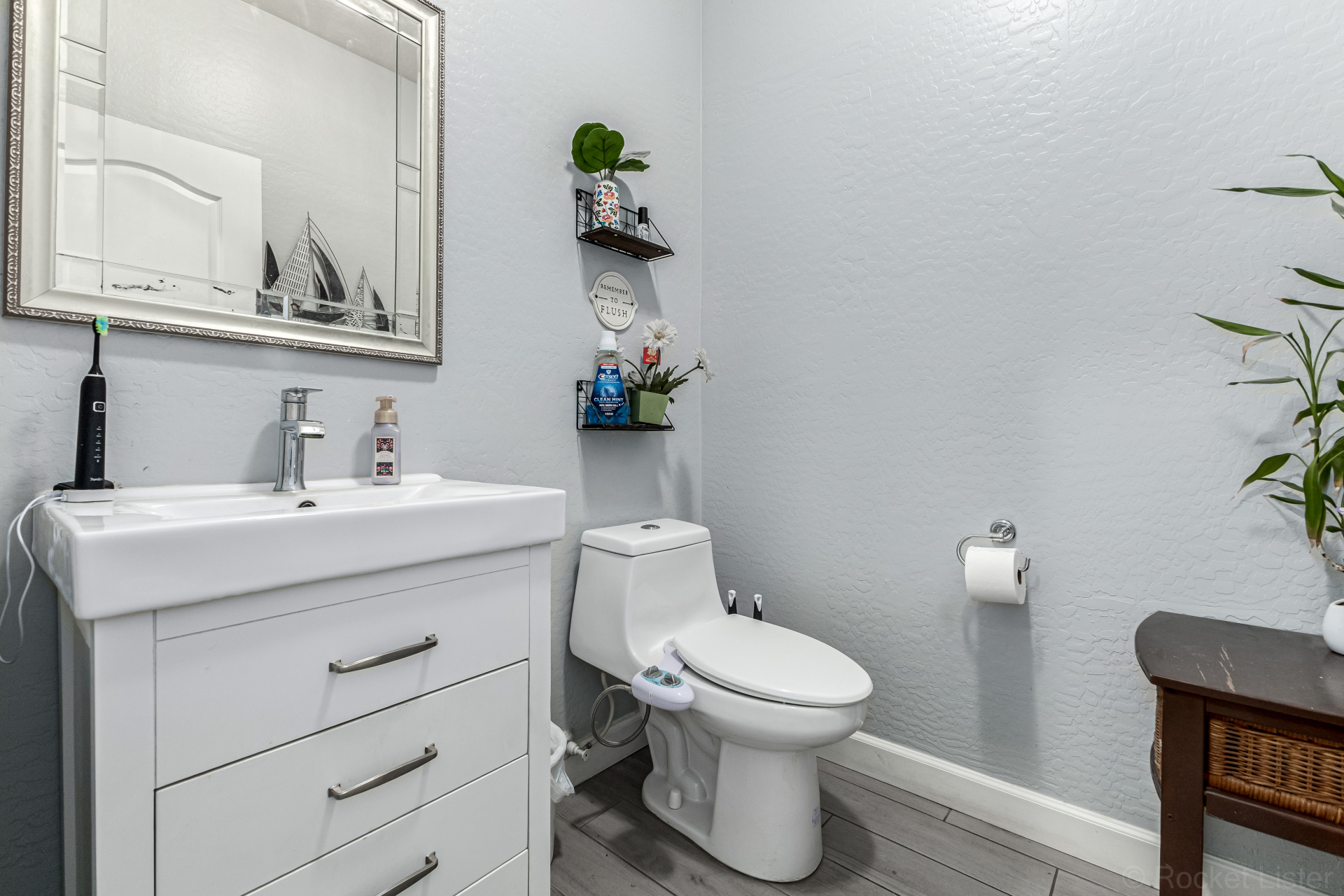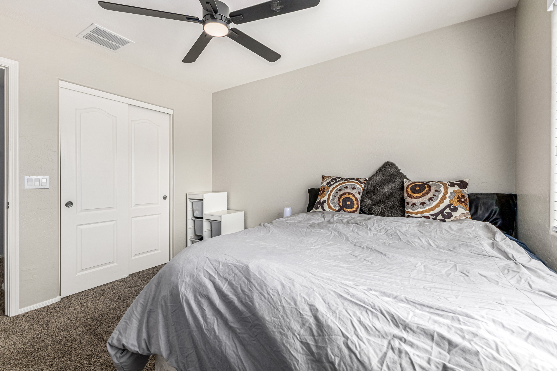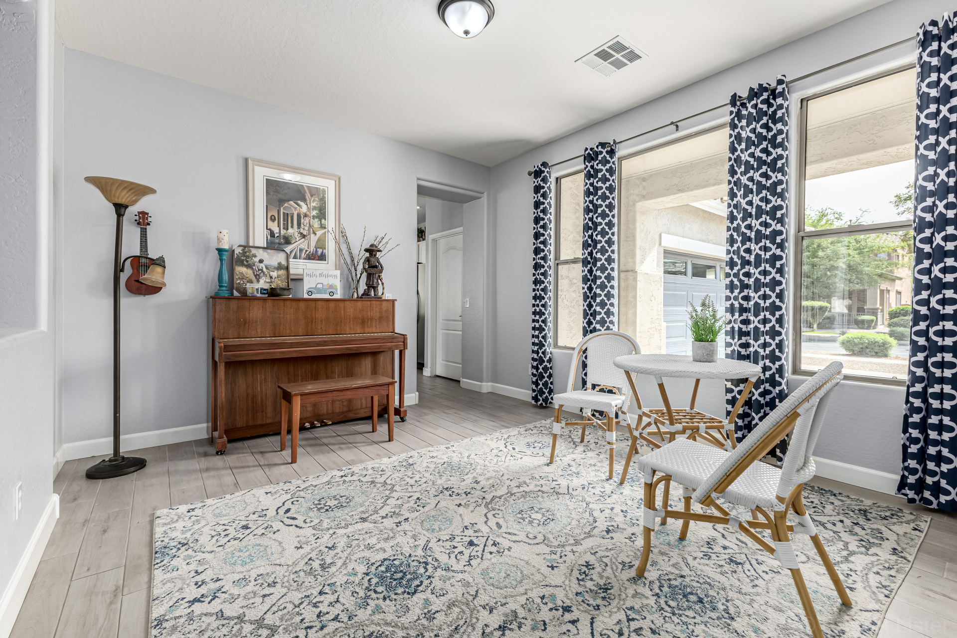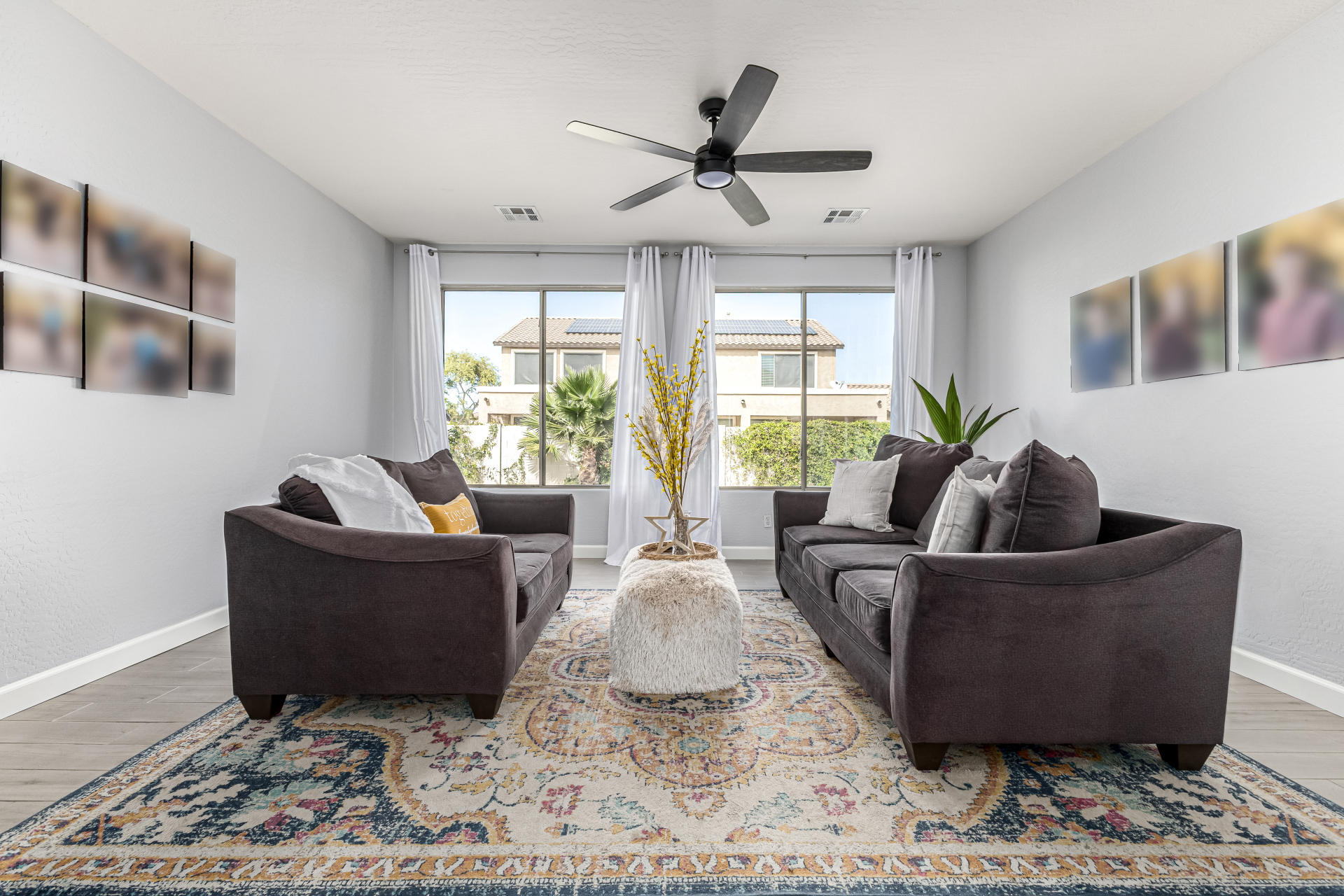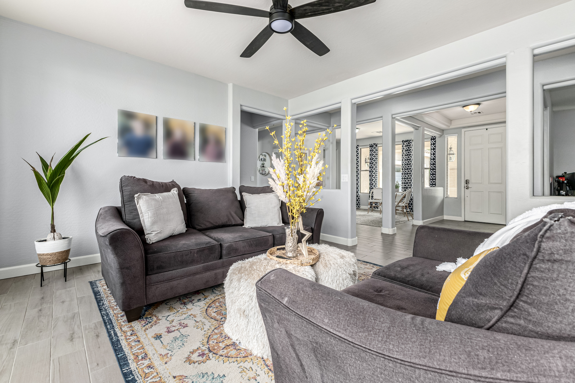 Secondary bathroom has also been fully renovated with new cabinetry, double sinks, quartz counters & beautiful white cabinets, delivering both comfort & modern appeal*Additional interior highlights include fresh paint, stylish plank-tile flooring, updated window coverings & new ceiling fans.