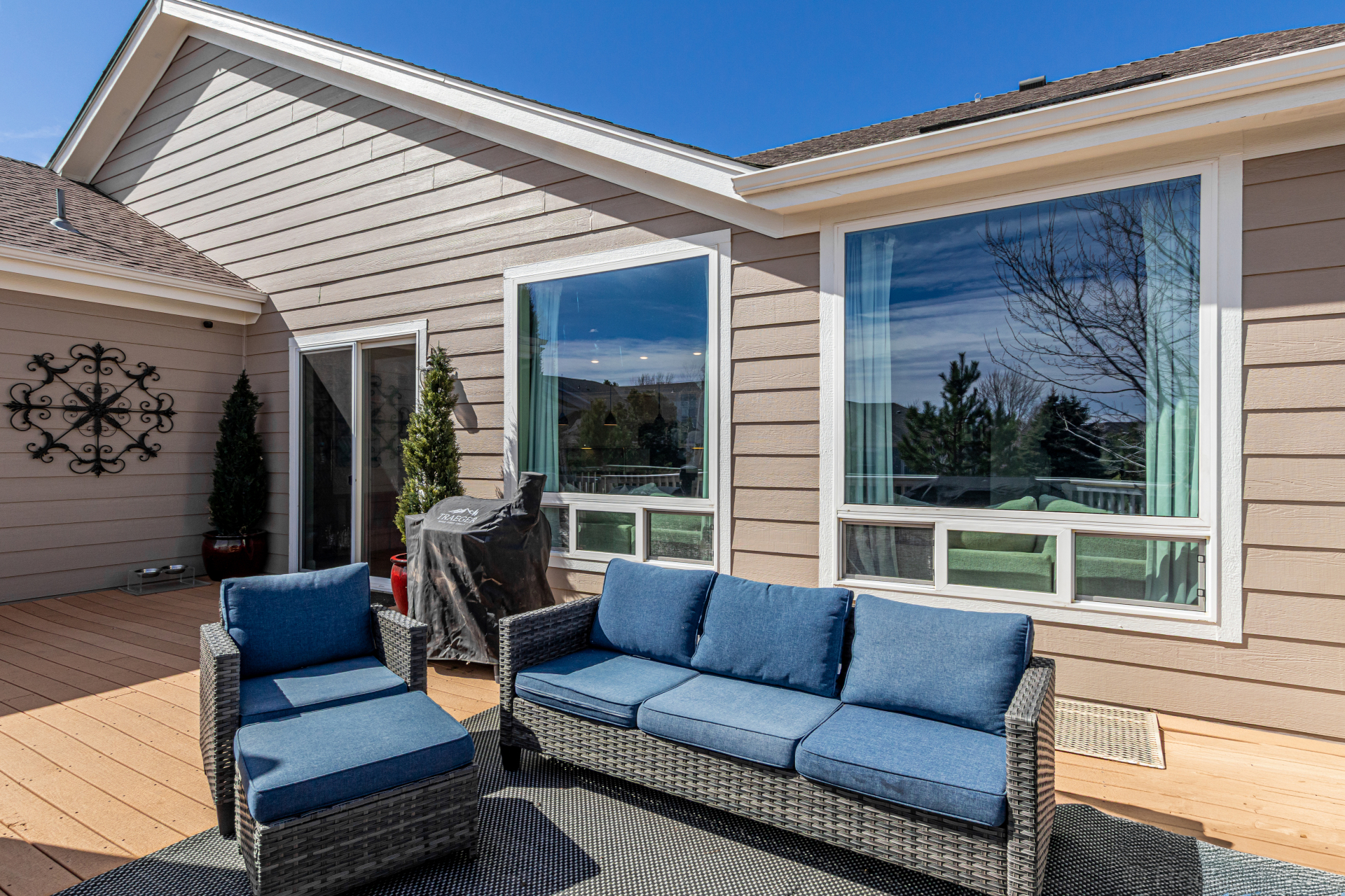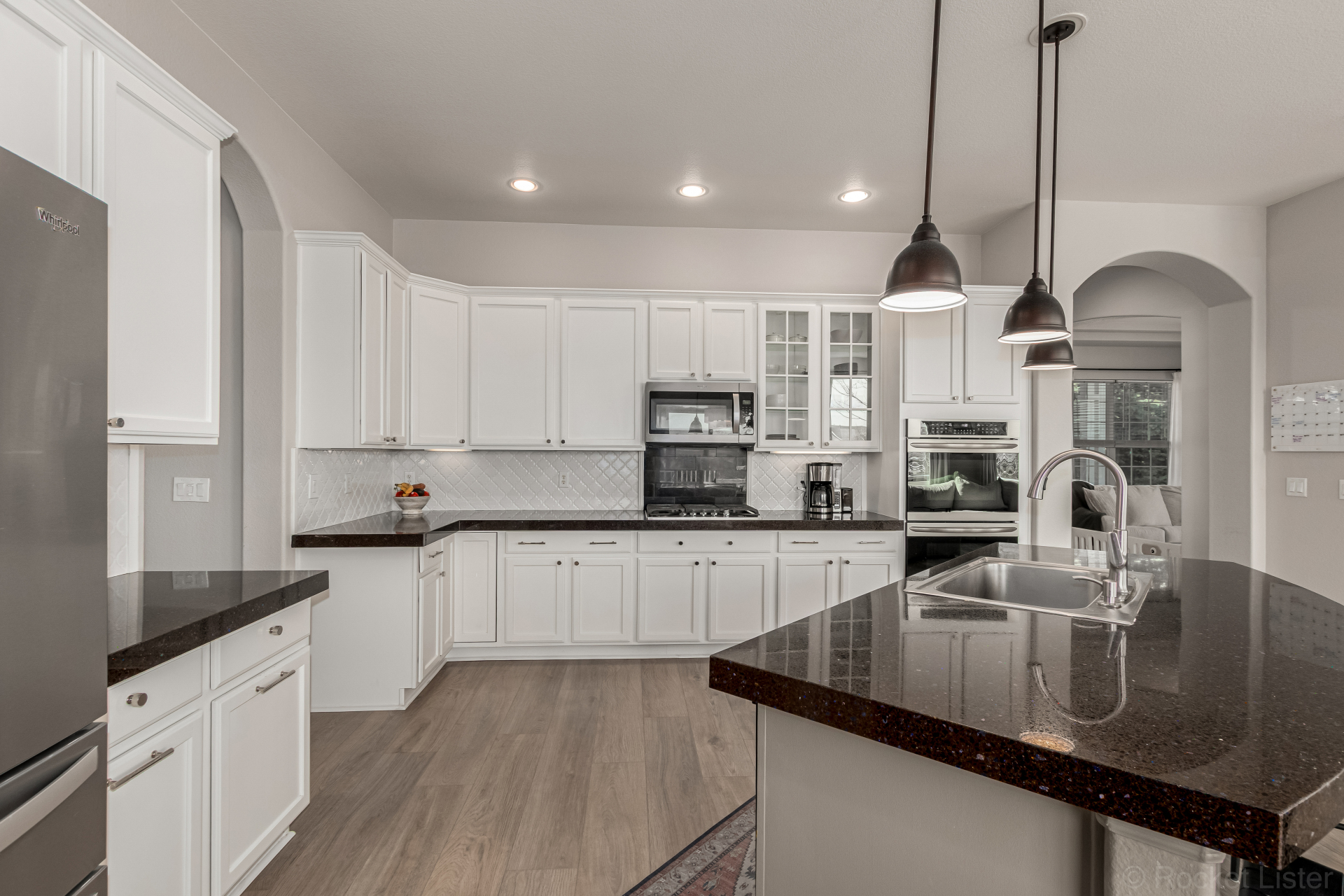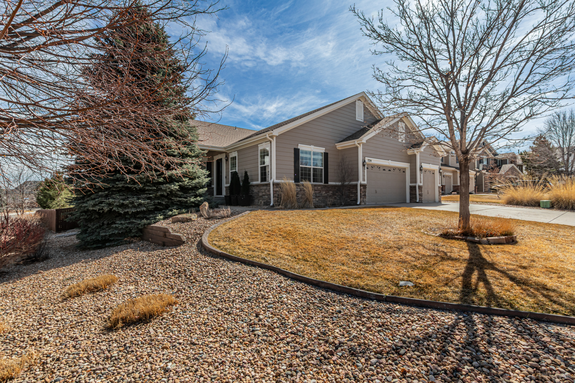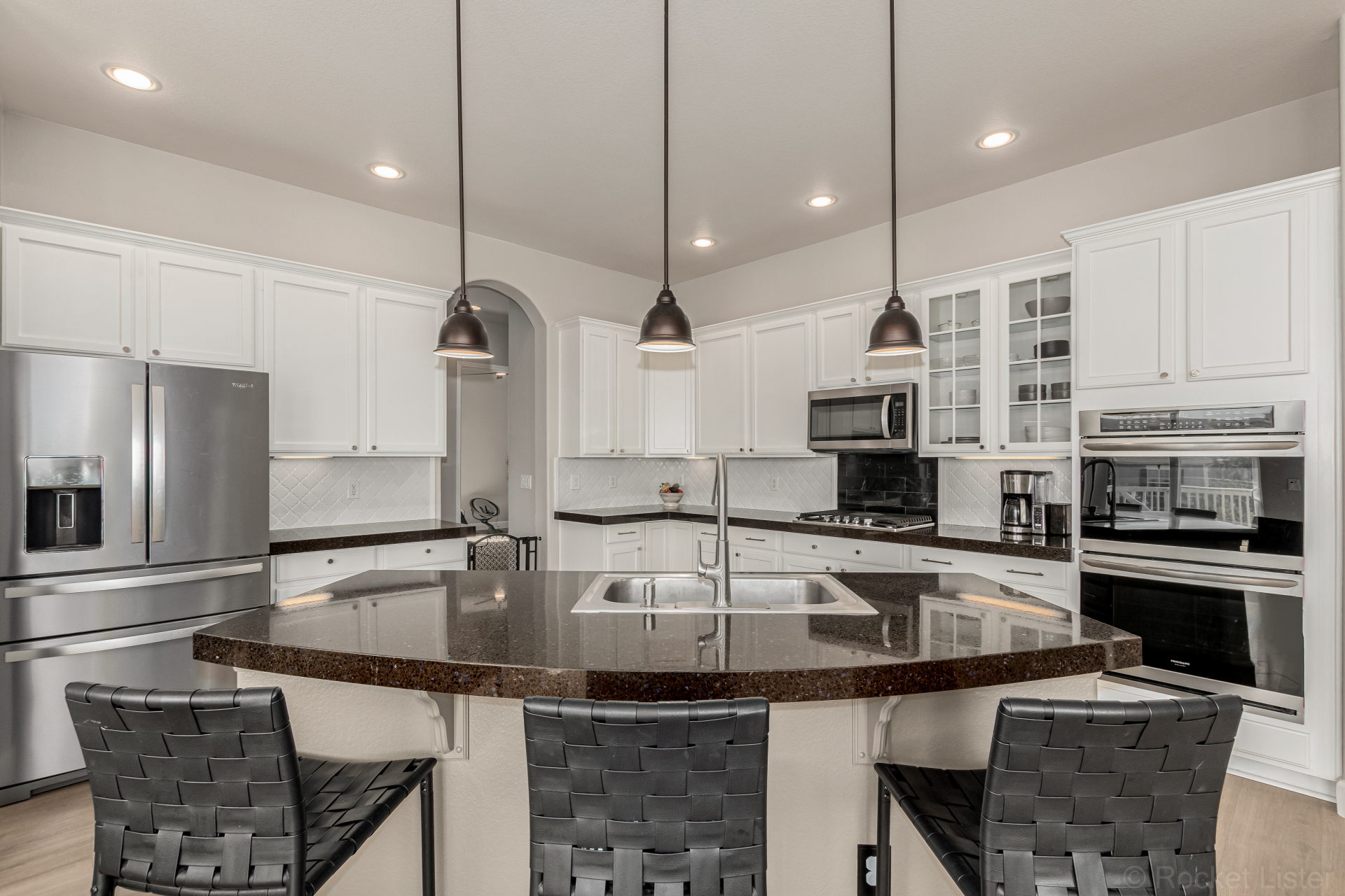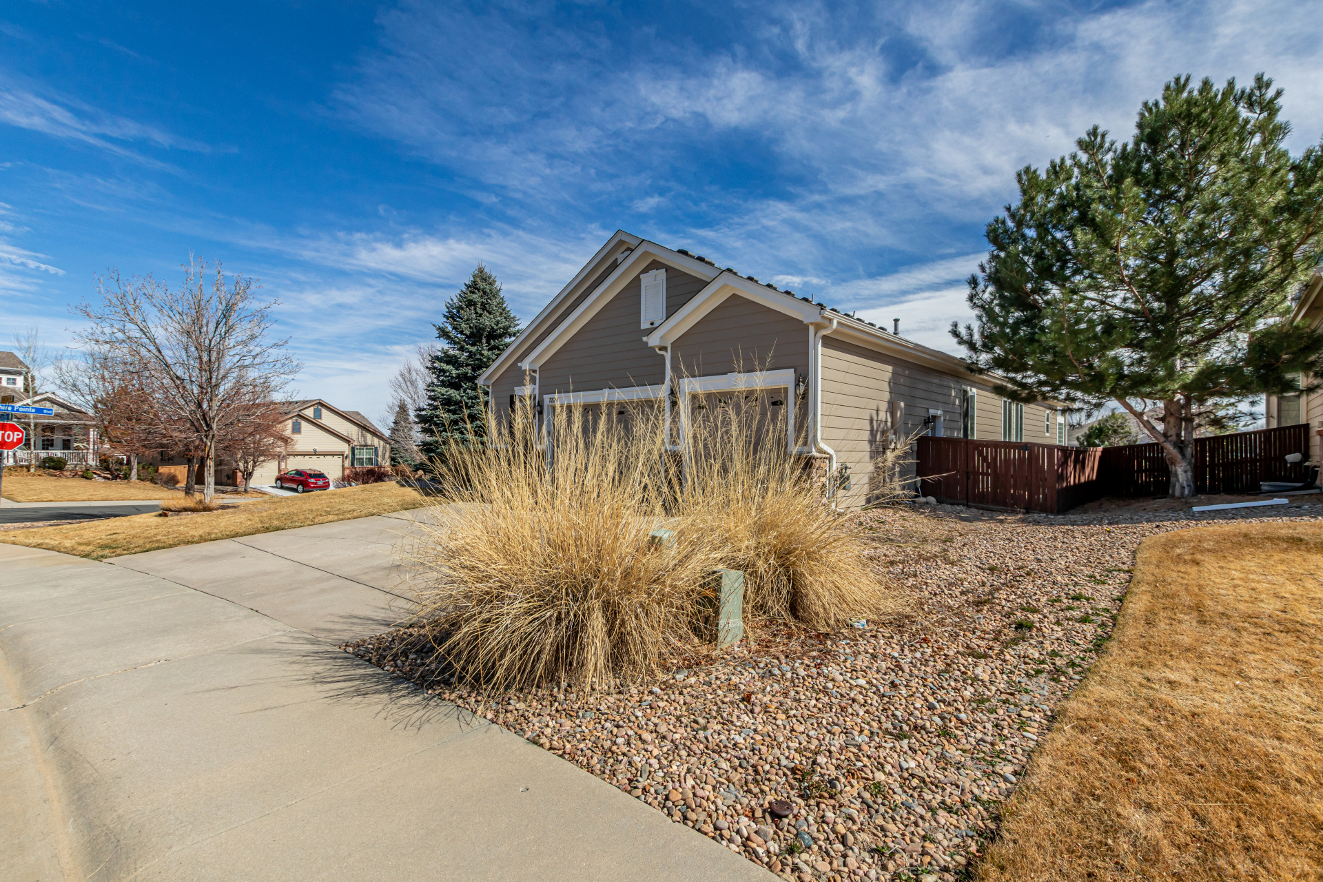 Great home perfectly positioned on the corner lot of a quiet cul-de-sac with no neighbors behind! Charming curb appeal highlighted by stone accents & a 3-car garage. The bright & inviting interior features neutral paint, thick baseboards, & thoughtfully designed living spaces throughout, such as a formal dining room with an electric fireplace & a living room with an additional fireplace for relaxing evenings. A spacious den + a dedicated office with French doors provide plenty of flexible space for work, hobbies, or quiet retreats! A convenient powder room adds extra functionality for guests. The gourmet kitchen impresses with granite counters, SS appliances, popular white cabinetry, a stylish tile backsplash, & a center island for meal prep and casual dining at the breakfast bar. Luminous main bedroom has private outdoor access, a sunny bay window, & an immaculate ensuite boasting a dual-sink vanity, a freestanding tub, a tiled shower, & a generous walk-in closet. The fully fenced backyard offers a cozy deck.