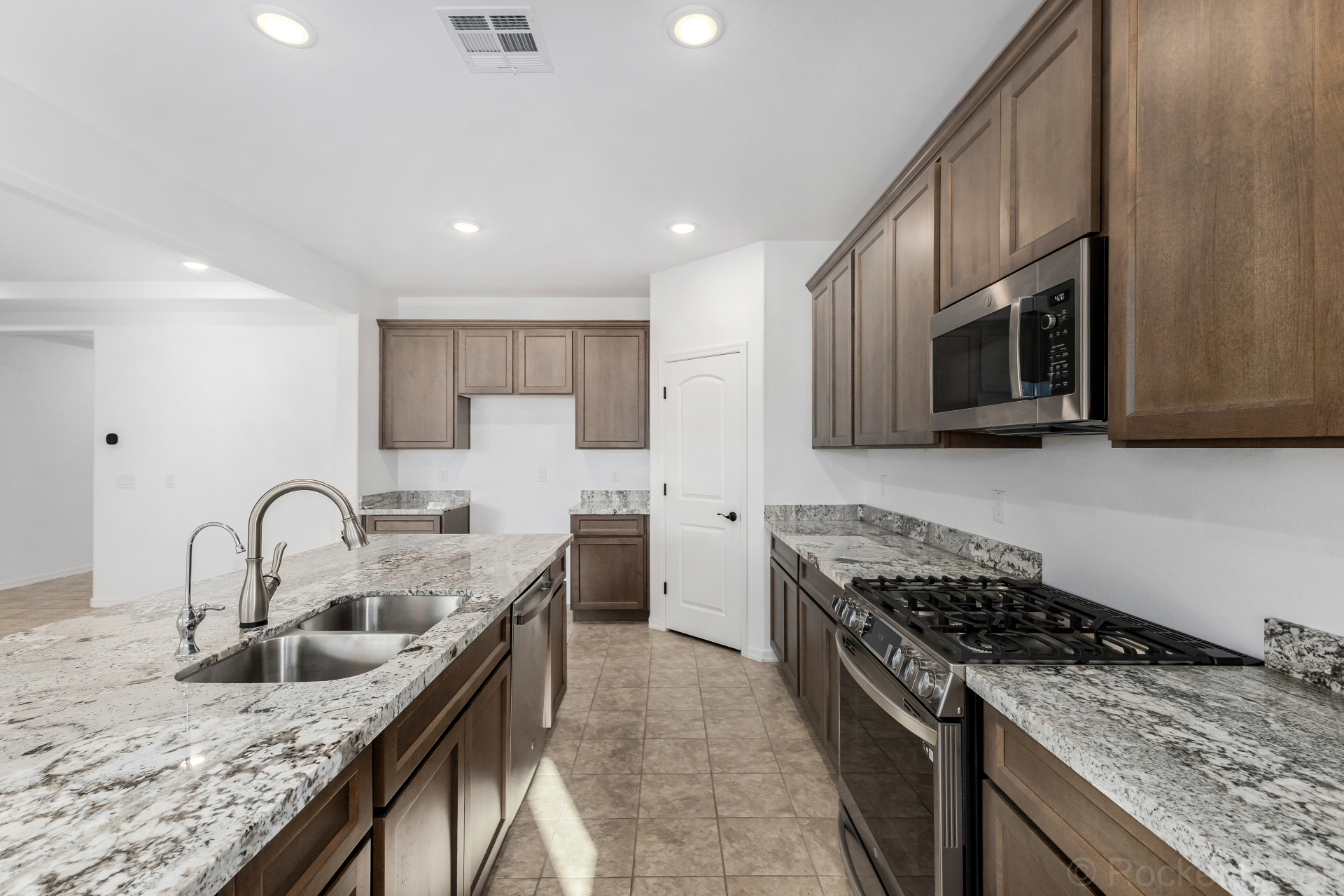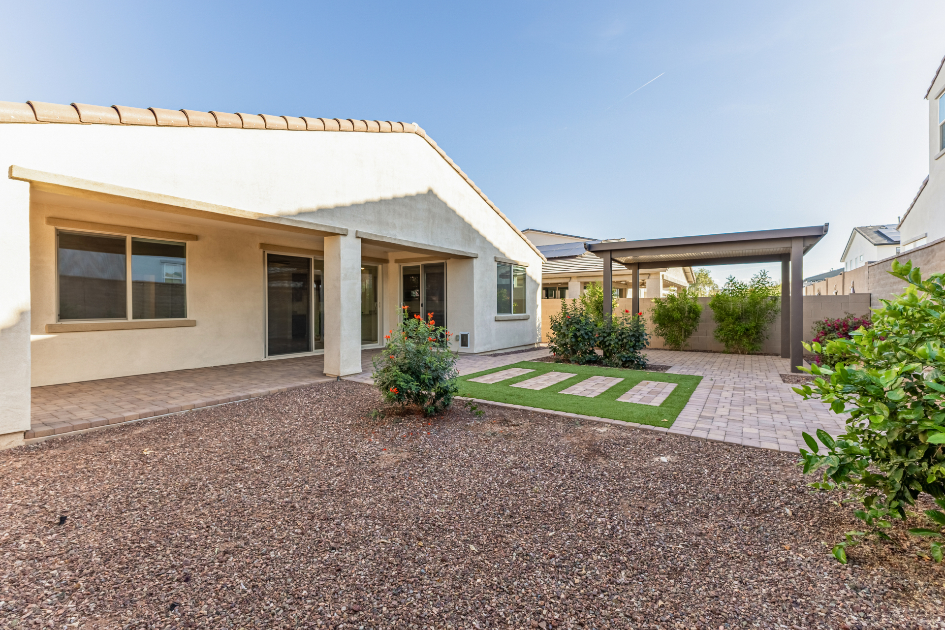 Home, sweet home! This fantastic 3 bed, 3 bath residence in Verrado is looking for its new owners! Nestled on a premium corner lot & featuring a no-fuss landscape, 2 car garage, and a welcoming front porch. Inside you will find a spacious open concept w/durable tile flooring and neutral palette, perfect for entertaining. The fabulous kitchen is equipped w/everything the aspiring chef needs, wood cabinetry w/crown moulding, a pantry, granite counters, SS appliances, recessed lighting, and an island w/a breakfast bar. The primary bedroom boasts soft carpet, a walk-in closet, and a private bath w/dual vanities for added convenience. Also including a large backyard w/a covered patio, a lovely gazebo, paver seating areas, and artificial turf, this home simply has it all! Don't miss out!