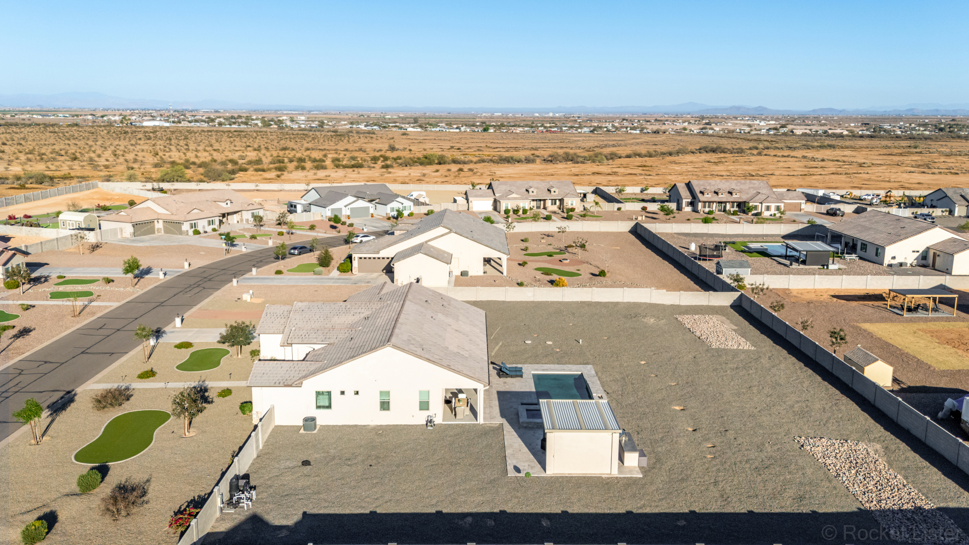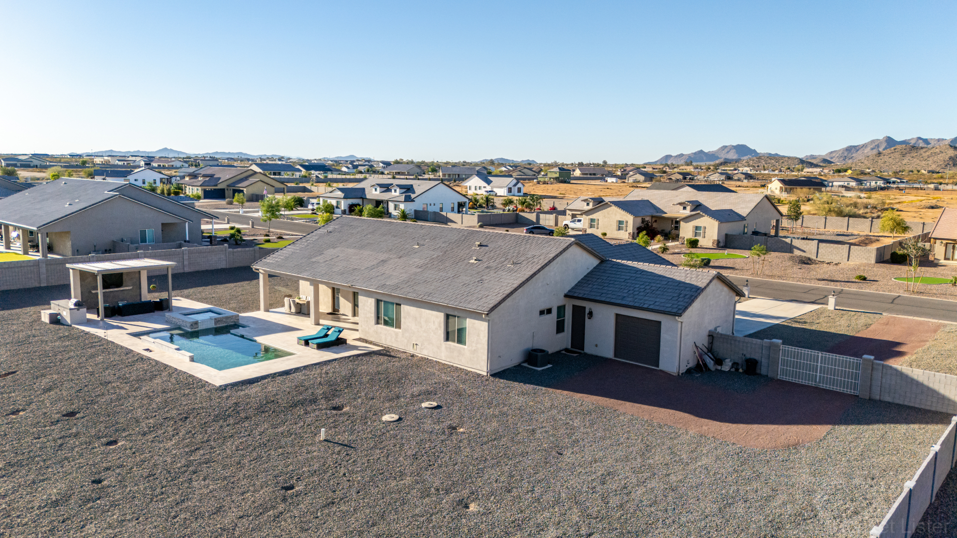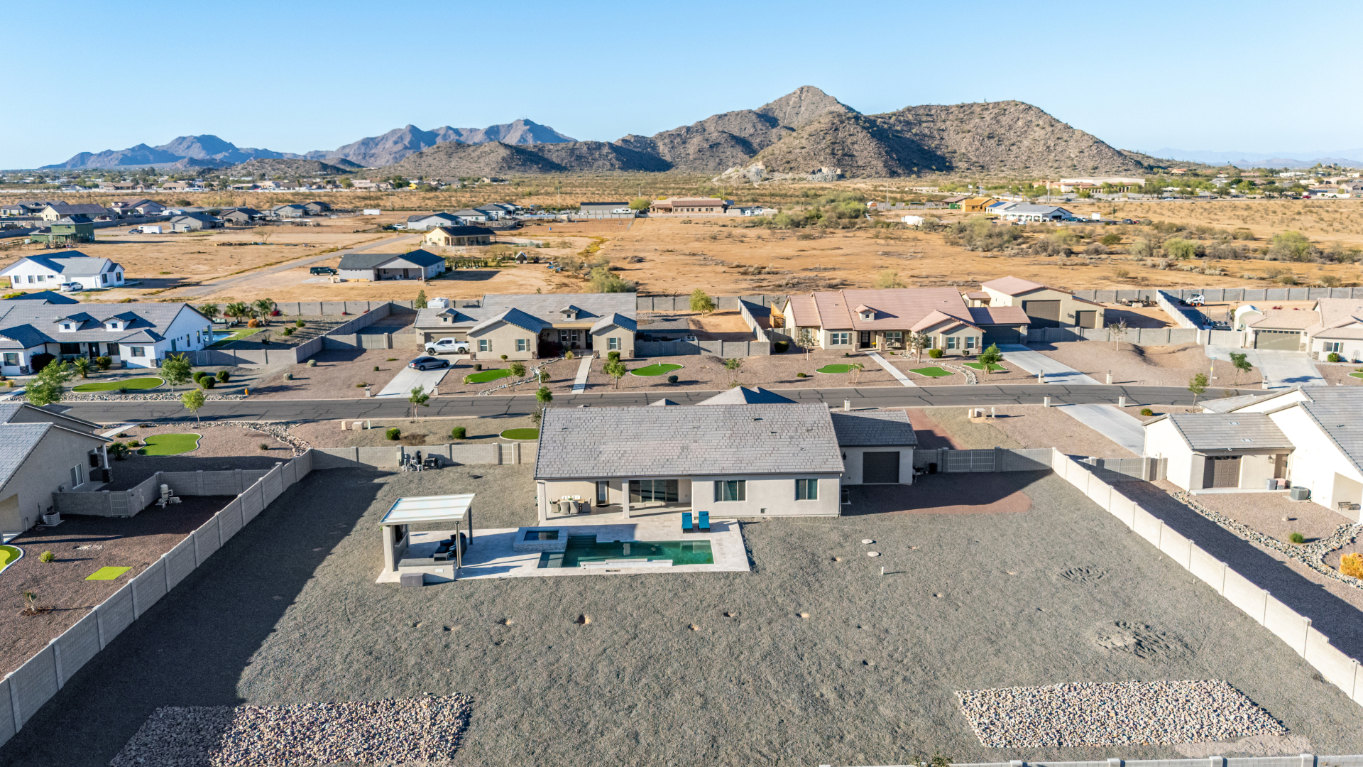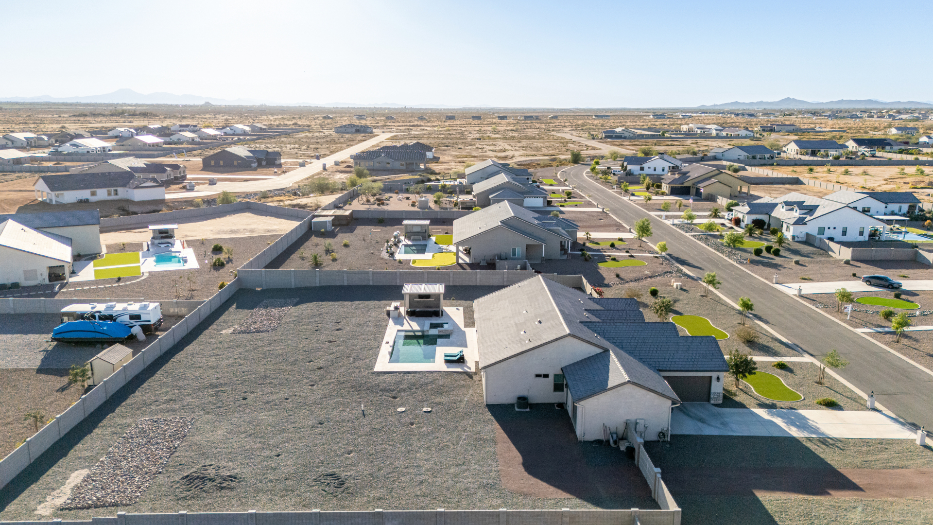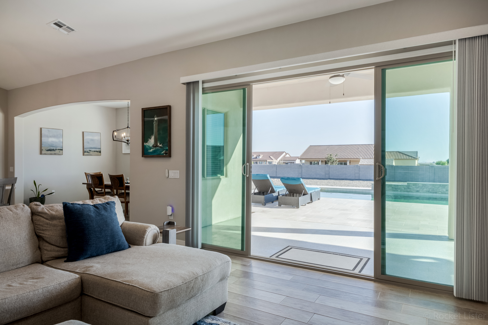 Look no further! This fantastic 4 bed, 3 bath property in Arroyo Verde is the one you've been looking for! Great curb appeal, 4 garage spaces, an RV gate, and a huge front yard w/artificial turf are just the beginning. Come inside to discover a spacious dining & living areas w/vaulted ceilings, wood-look tile flooring, modern light fixtures, and a neutral palette. The luxurious kitchen is comprised of ample cabinetry w/crown moulding, a walk-in pantry, granite counters, tile backsplash, stainless steel appliances, and an island w/a breakfast bar. You'll love the primary bedroom, boasting direct outdoor access, a walk-in closet, and a lavish bath w/dual sinks. Lastly, the expansive backyard includes a covered patio, a lovely gazebo w/a built-in BBQ, and a refreshing pool/spa combo! Act NOW!