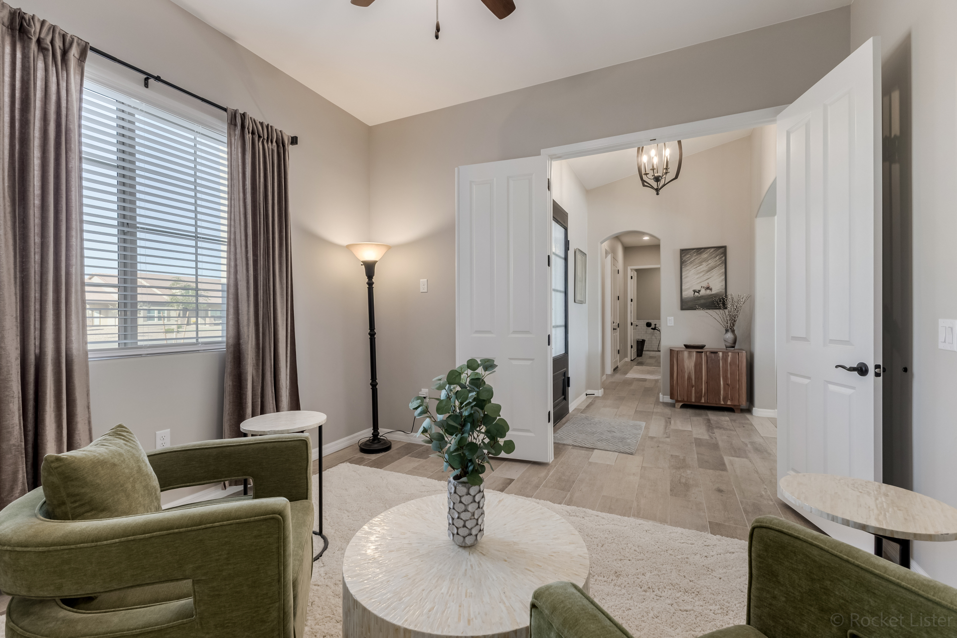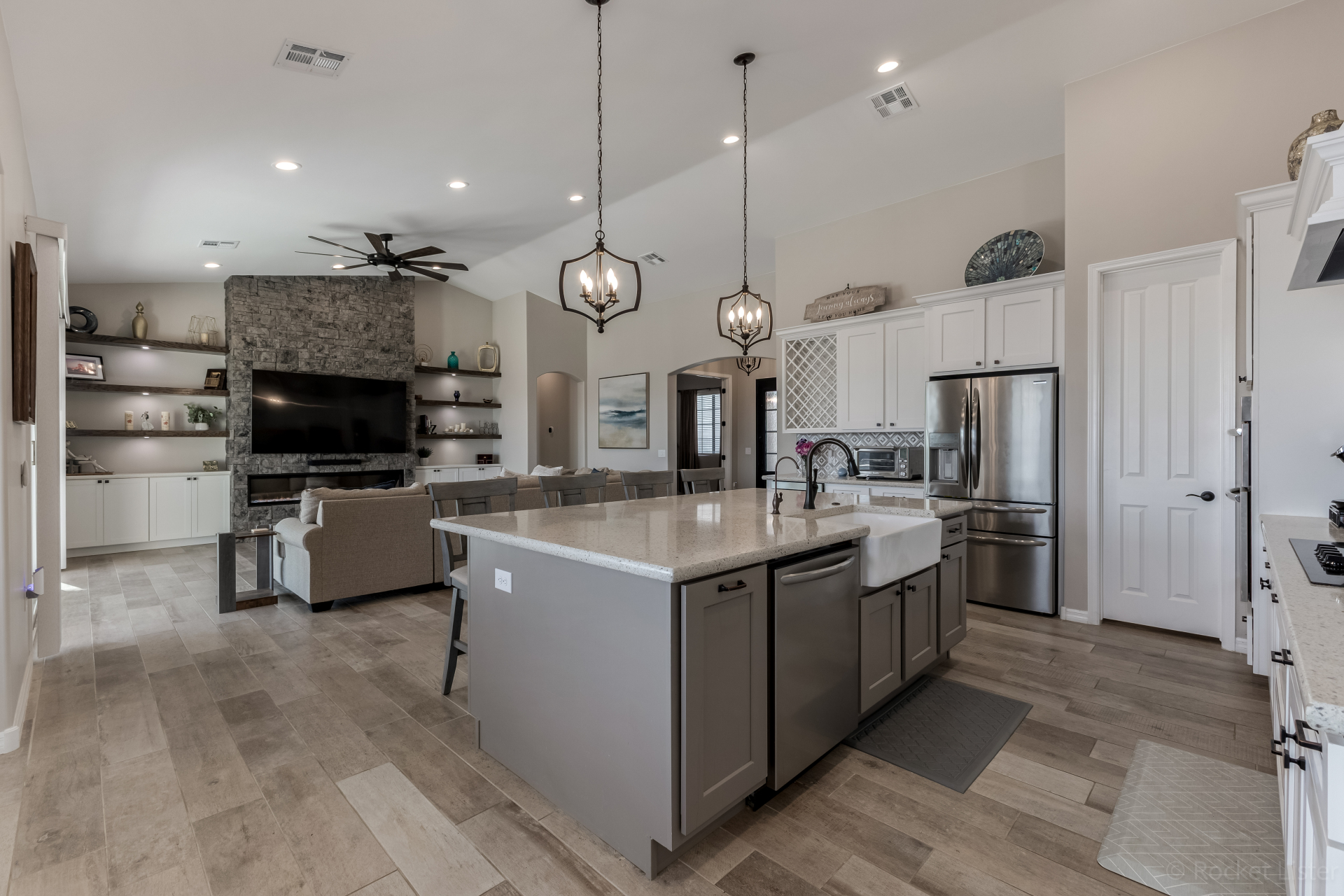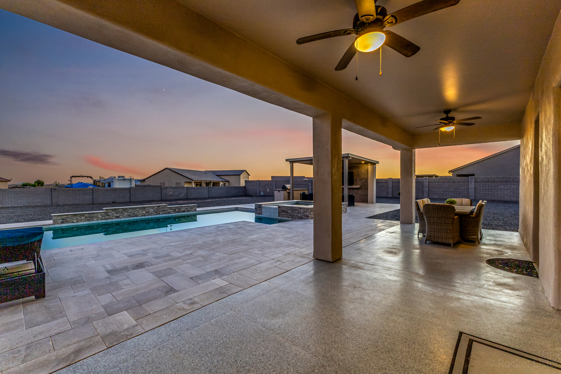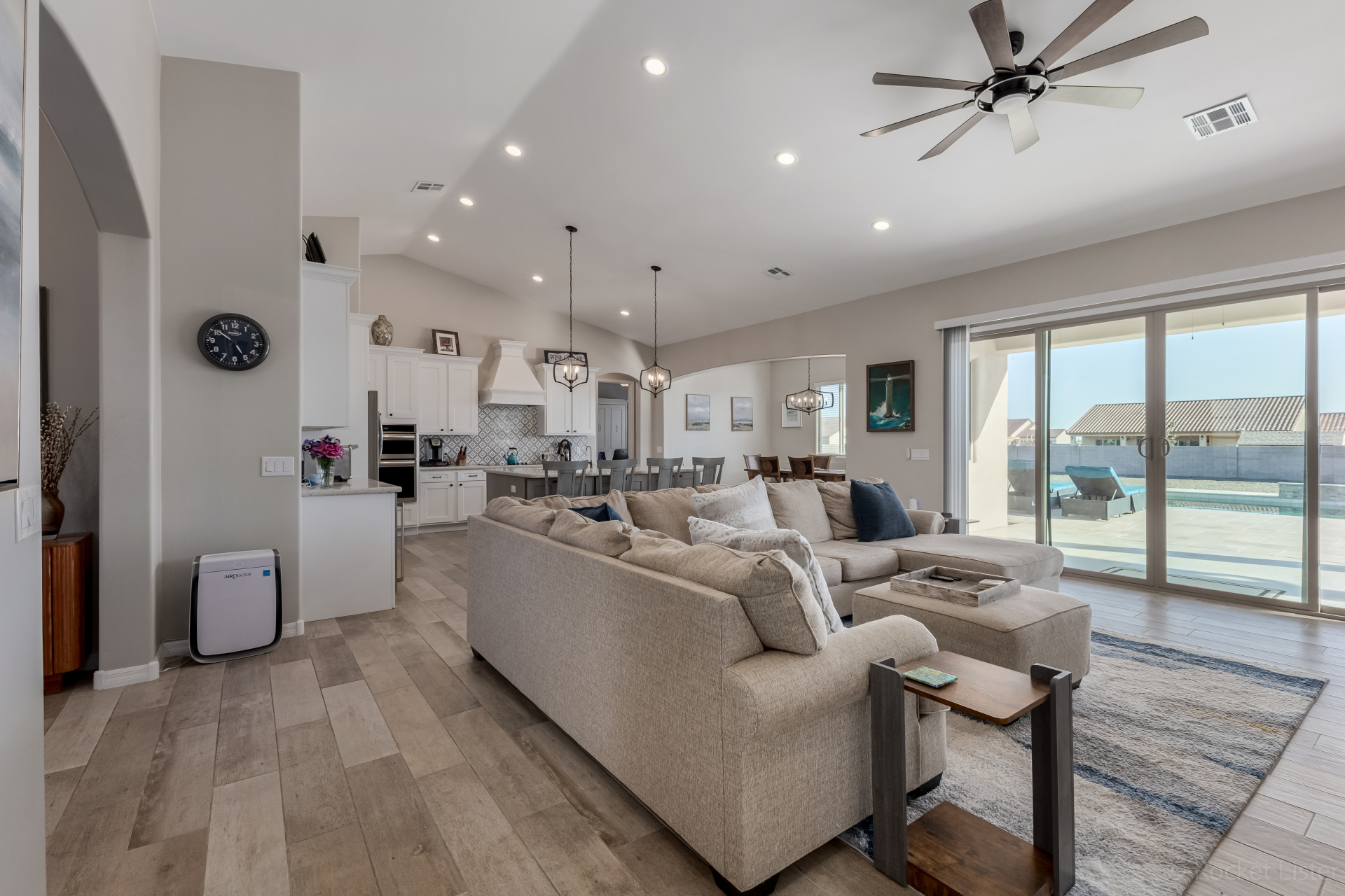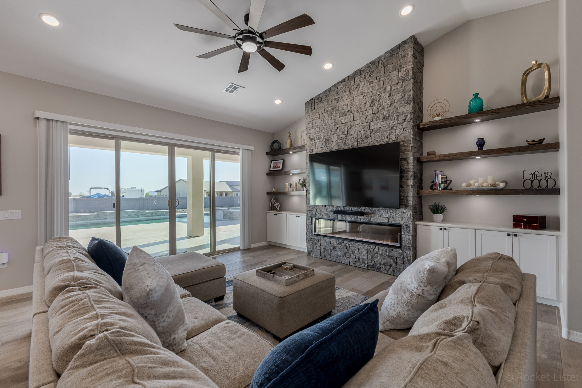 Look no further! This fantastic 4 bed, 3 bath property in Arroyo Verde is the one you've been looking for! Great curb appeal, 4 garage spaces, an RV gate, and a huge front yard w/artificial turf are just the beginning. Come inside to discover a spacious dining & living areas w/vaulted ceilings, wood-look tile flooring, modern light fixtures, and a neutral palette. The luxurious kitchen is comprised of ample cabinetry w/crown moulding, a walk-in pantry, granite counters, tile backsplash, stainless steel appliances, and an island w/a breakfast bar. You'll love the primary bedroom, boasting direct outdoor access, a walk-in closet, and a lavish bath w/dual sinks. Lastly, the expansive backyard includes a covered patio, a lovely gazebo w/a built-in BBQ, and a refreshing pool/spa combo! Act NOW!