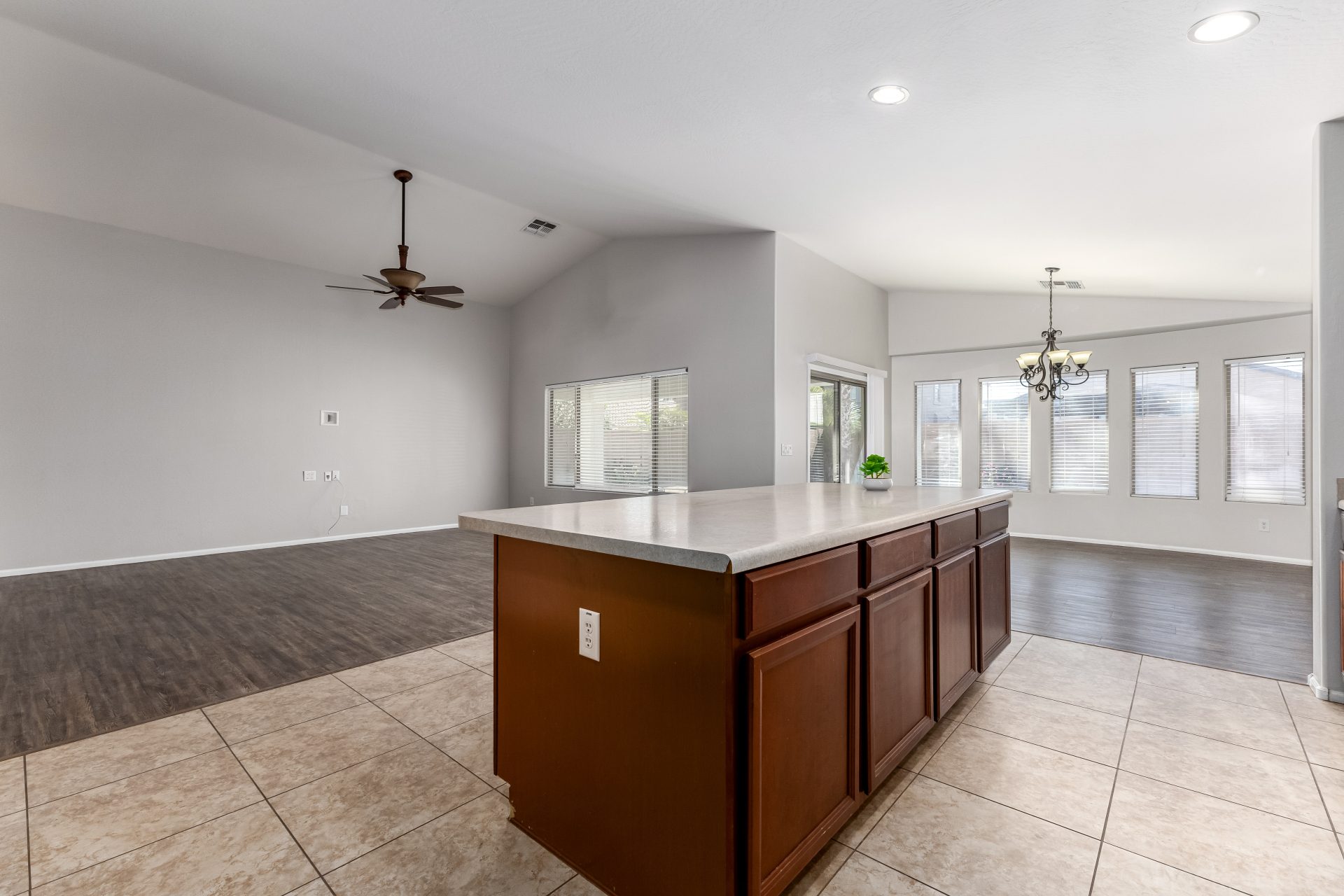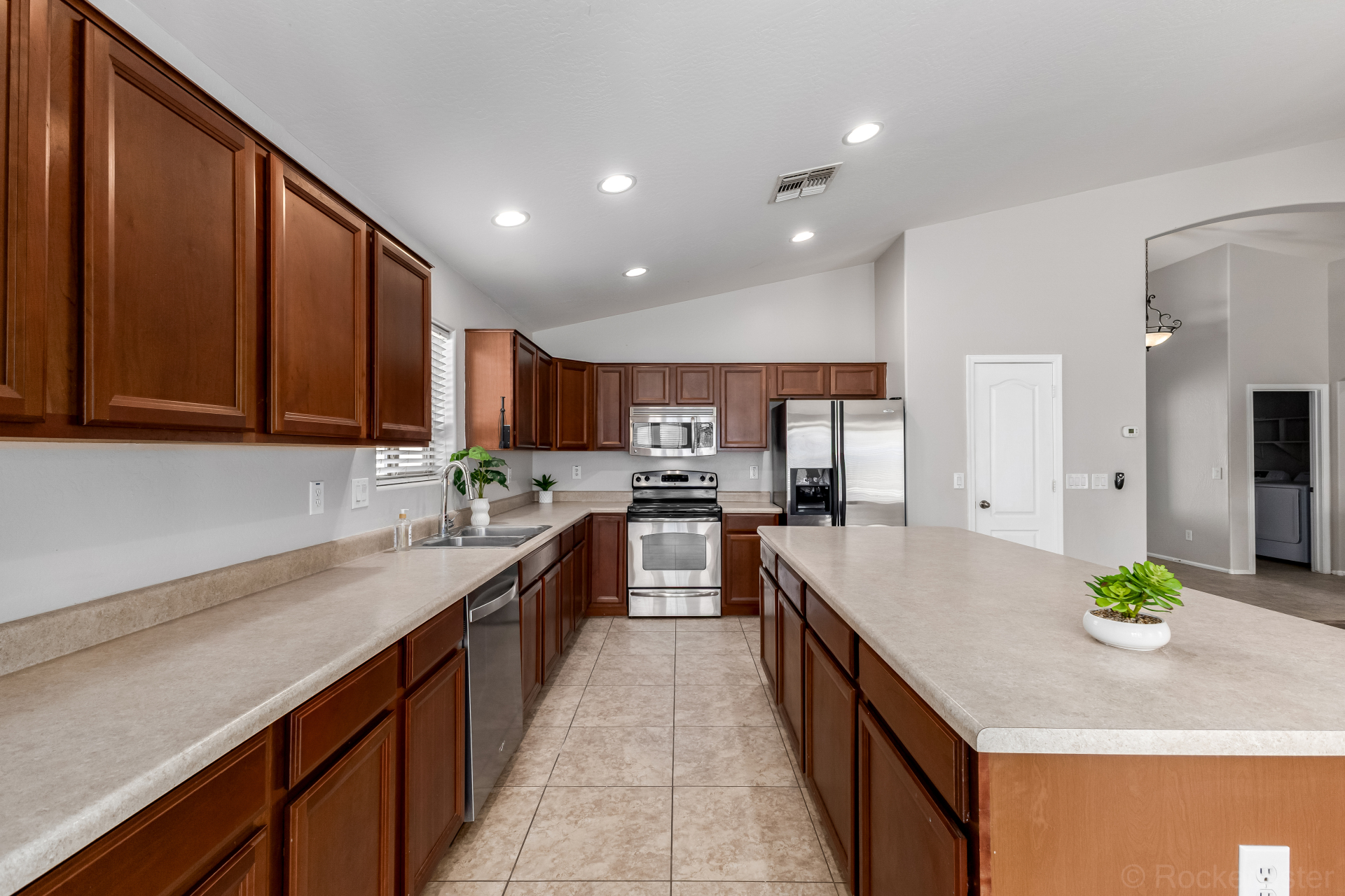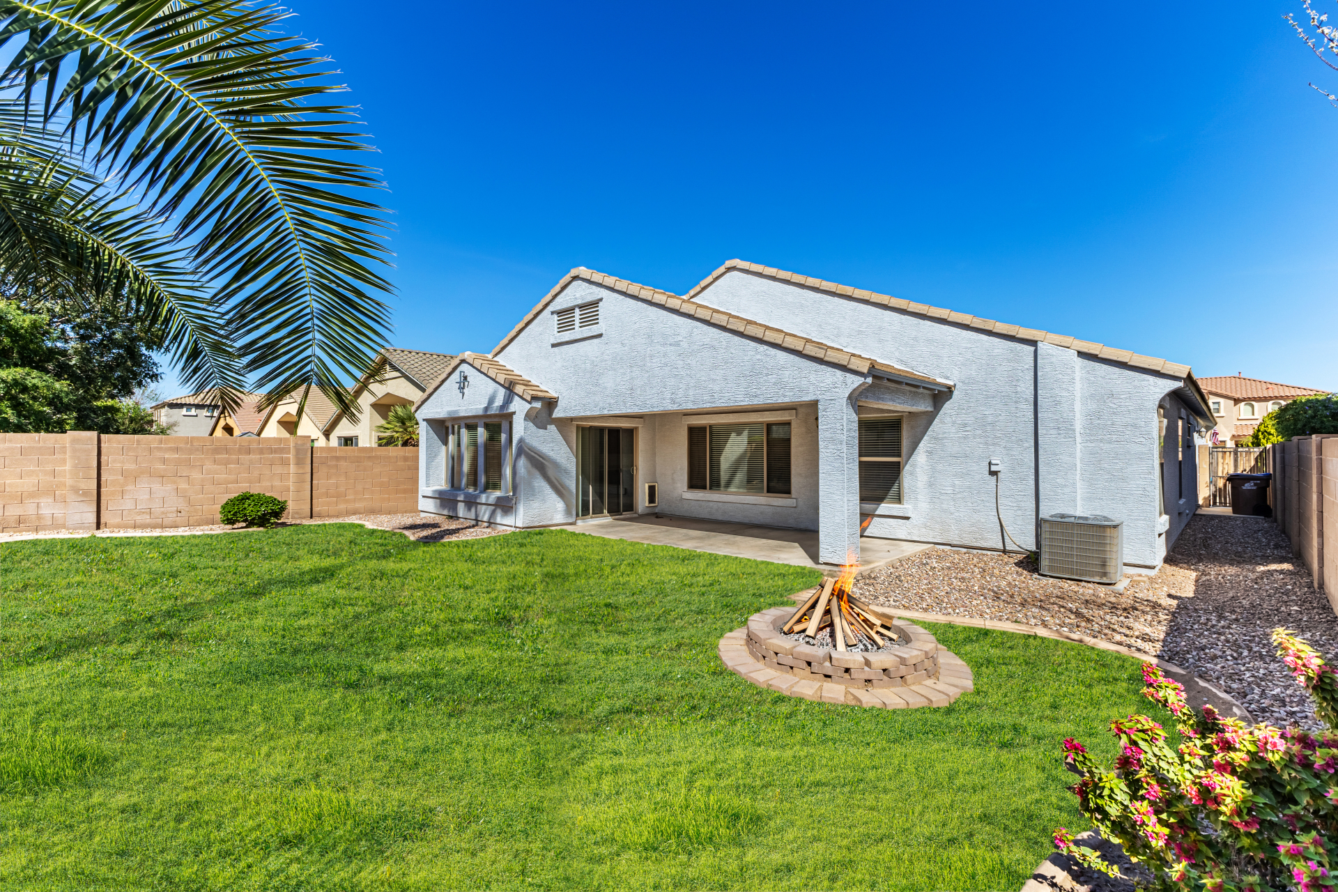 This lovely 4-bedroom, 2-bath residence in Pecan Creek South is the one for you! Fall in love with the captivating great room with soaring vaulted ceilings, a soothing palette, blinds, and attractive wood-look flooring. Cook delicious meals in the well-appointed kitchen, equipped with ample wood cabinetry, recessed lighting, stainless steel appliances, a walk-in pantry, and an island with a breakfast bar for casual meals. The primary bedroom showcases an ensuite with double sinks and a walk-in closet for an organized wardrobe. Imagine enchanting moments with loved ones in the charming backyard, complete with a covered patio, lush natural turf, and a warm fire pit for evenings under the stars. Don't miss out on this fantastic opportunity!