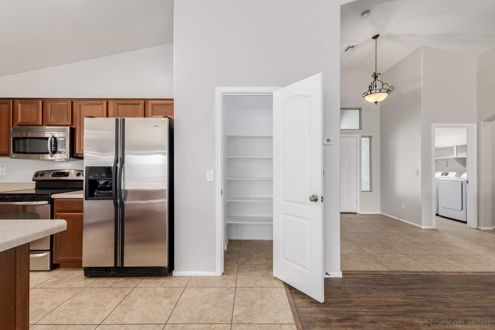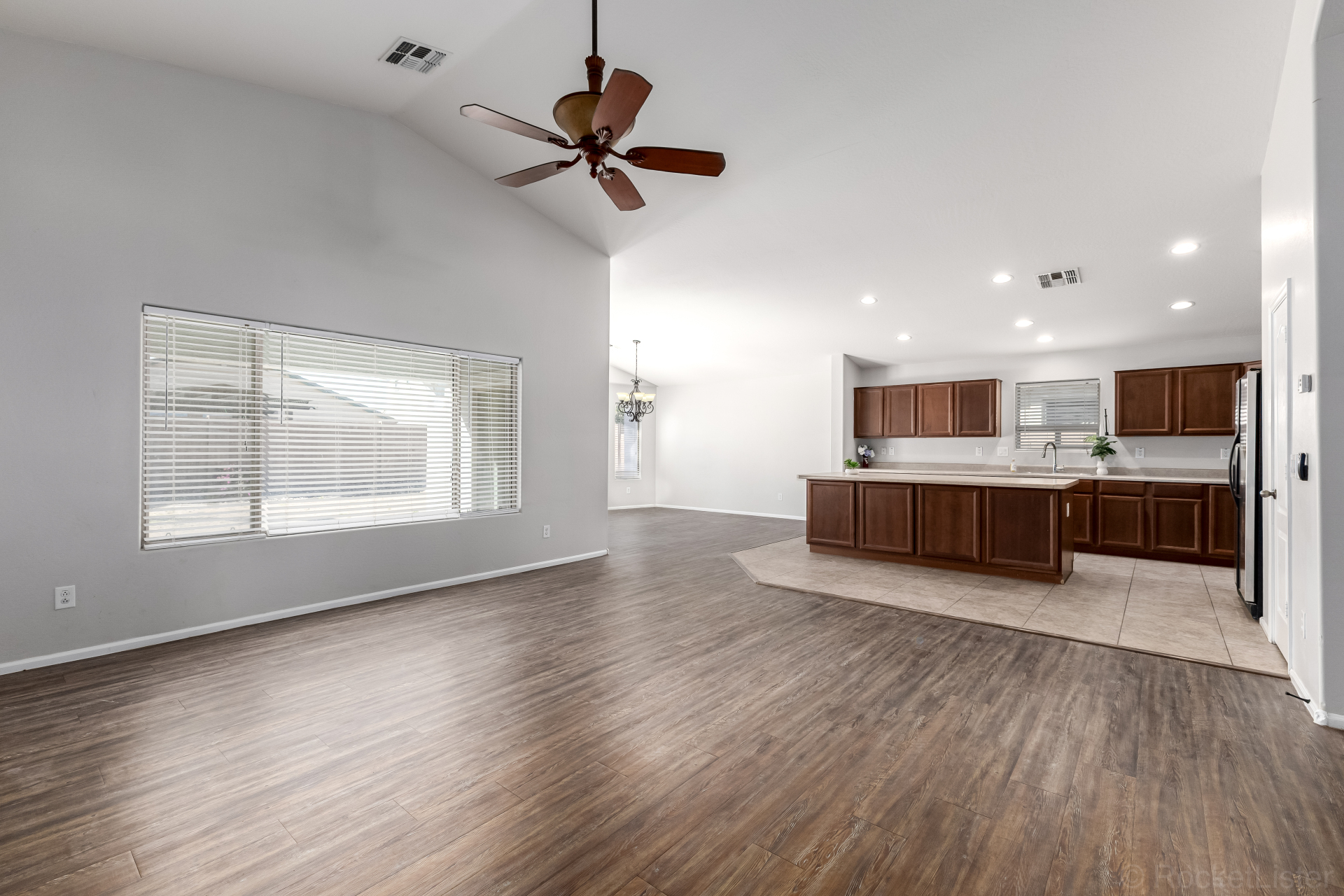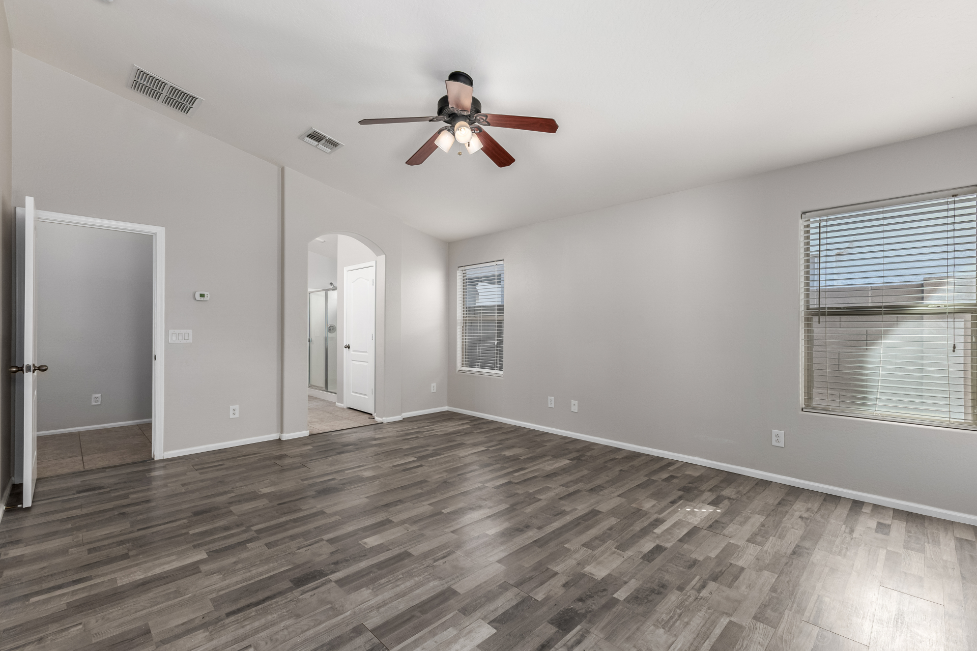 This lovely 4-bedroom, 2-bath residence in Pecan Creek South is the one for you! Fall in love with the captivating great room with soaring vaulted ceilings, a soothing palette, blinds, and attractive wood-look flooring. Cook delicious meals in the well-appointed kitchen, equipped with ample wood cabinetry, recessed lighting, stainless steel appliances, a walk-in pantry, and an island with a breakfast bar for casual meals. The primary bedroom showcases an ensuite with double sinks and a walk-in closet for an organized wardrobe. Imagine enchanting moments with loved ones in the charming backyard, complete with a covered patio, lush natural turf, and a warm fire pit for evenings under the stars. Don't miss out on this fantastic opportunity!