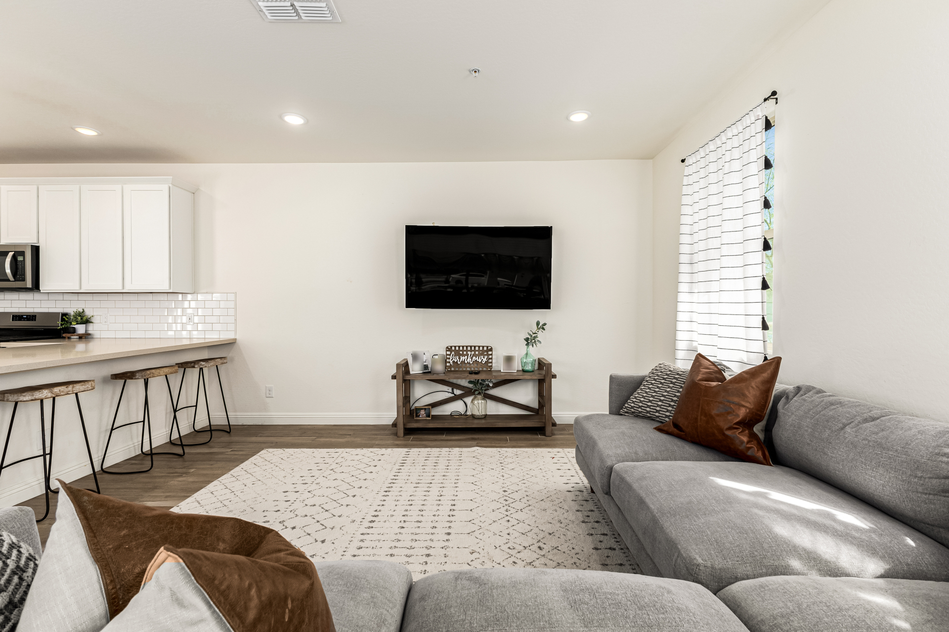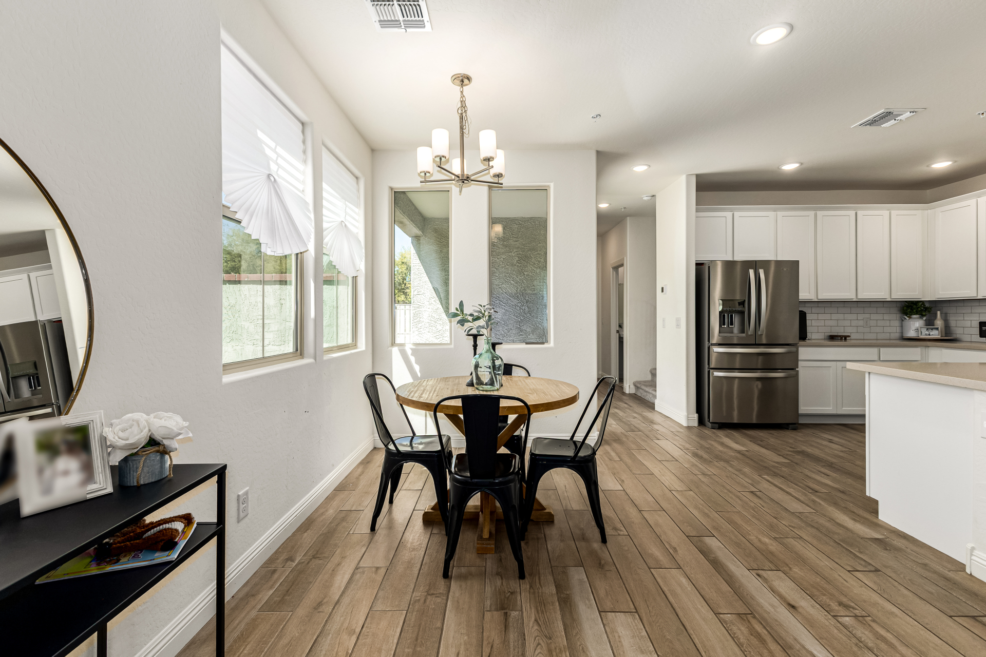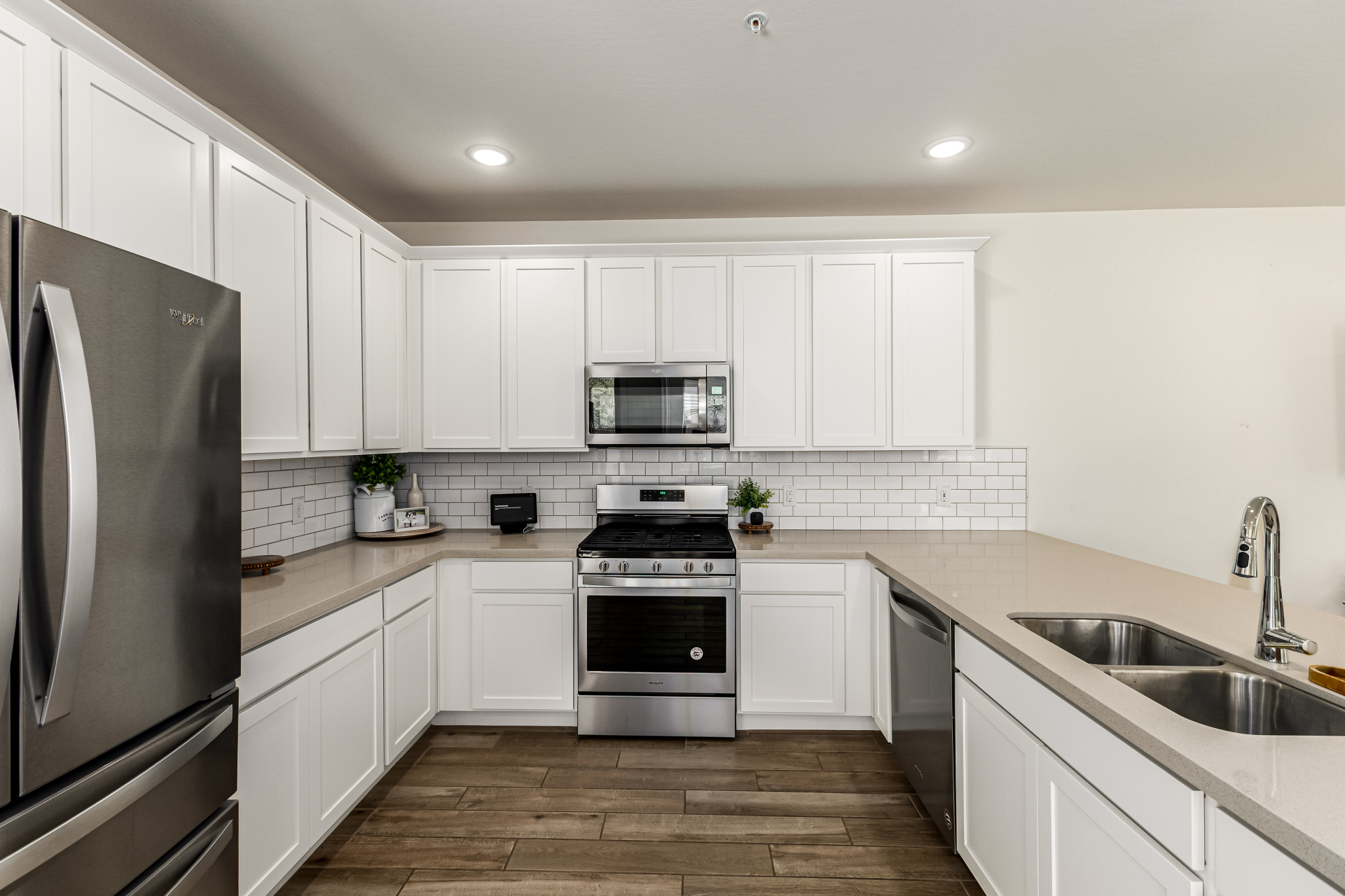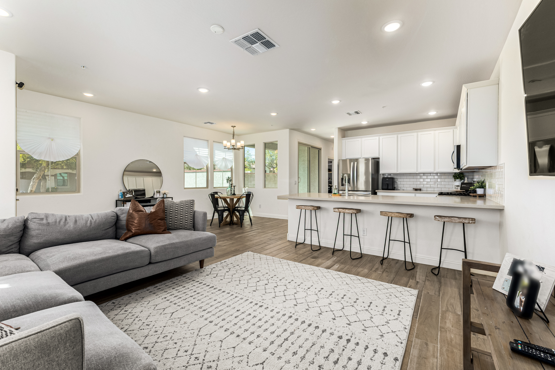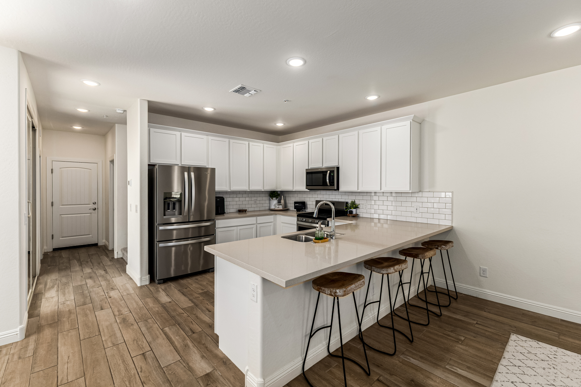 Welcome to the desirable Verrado, where this charming home awaits you! Nestled on a corner lot, it offers 3 beds, 2 baths + powder room, and a 2-car garage. Enter to find a seamlessly flowing open layout, perfect for everyday living & entertaining! Natural light filled the inviting interior, complemented by a neutral palette, recessed lighting, wood-look tile flooring downstairs, and soft carpet on the upper level. The impressive kitchen boasts SS appliances, quartz counters, subway tile backsplash, white shaker cabinets, a pantry, and a peninsula w/breakfast bar. All bedrooms await upstairs, along with a versatile loft! The large main bedroom has an ensuite with dual sinks & a walk-in closet. The private yard, with a covered patio, is the ideal spot to relax or enjoy BBQ! Make this yours!