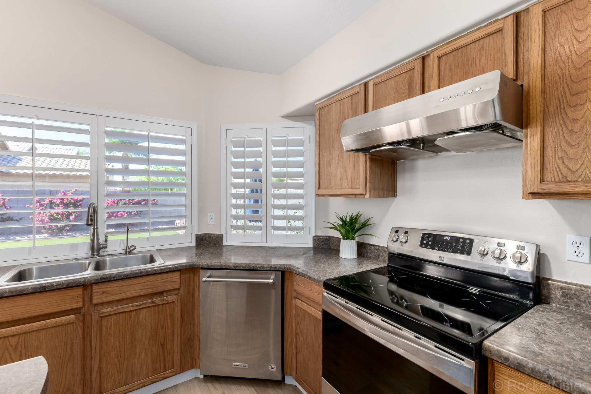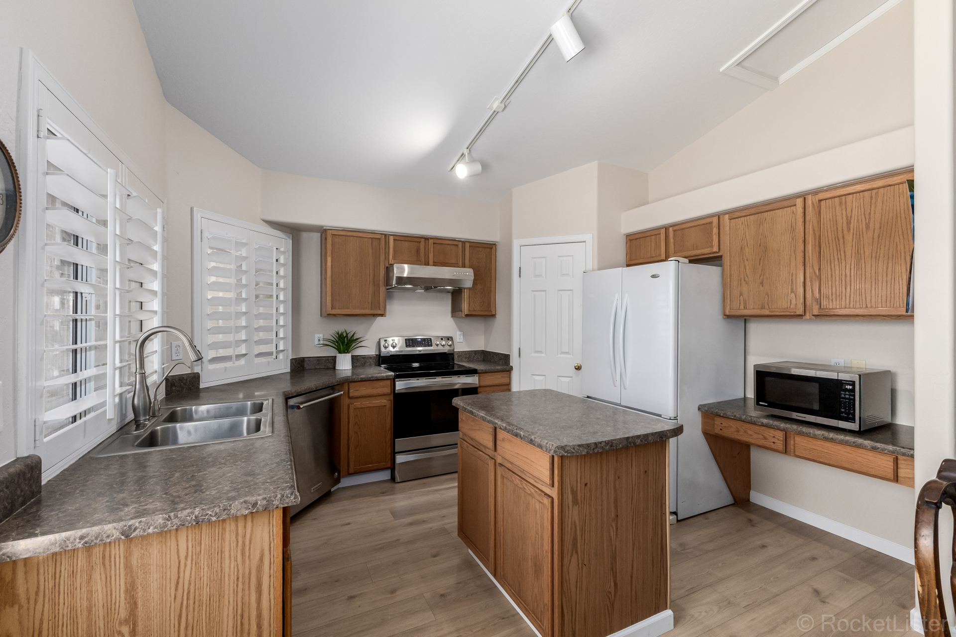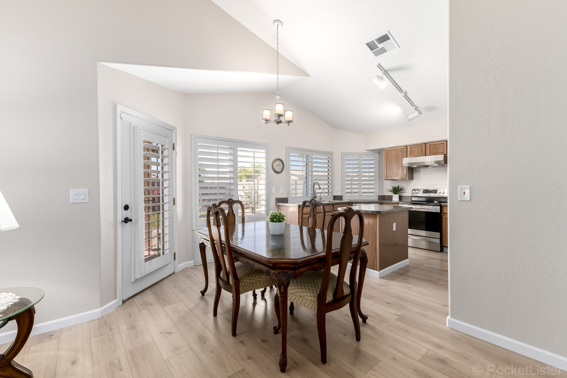 Bright and beautifully updated, this move-in ready home features a spacious layout with expansive ceilings & abundant natural light. Fresh neutral tones, new interior paint, & luxury plank flooring create a modern, inviting feel, while plantation shutters add timeless charm throughout. The kitchen boasts a center island, walk-in pantry, & stainless steel appliances. The versatile downstairs bonus room offers flexible living space for an office, playroom, guest space, or 2nd family room! Upstairs, enjoy a spacious primary suite plus two secondary bedrooms. Situated on a large corner lot with covered patio & low-maintenance artificial turf; perfect for relaxing or entertaining. No unexpected expenses here: Brand new roof, 2023 hot water heater & newer AC! Just move in and enjoy!