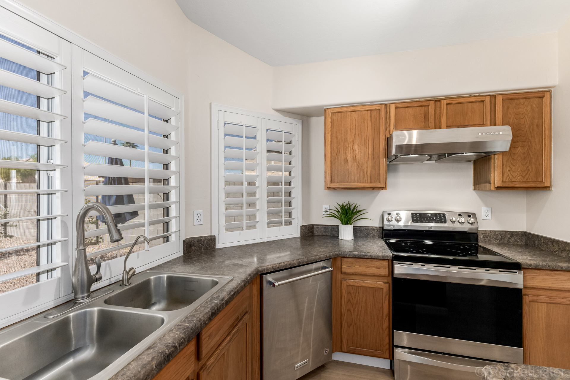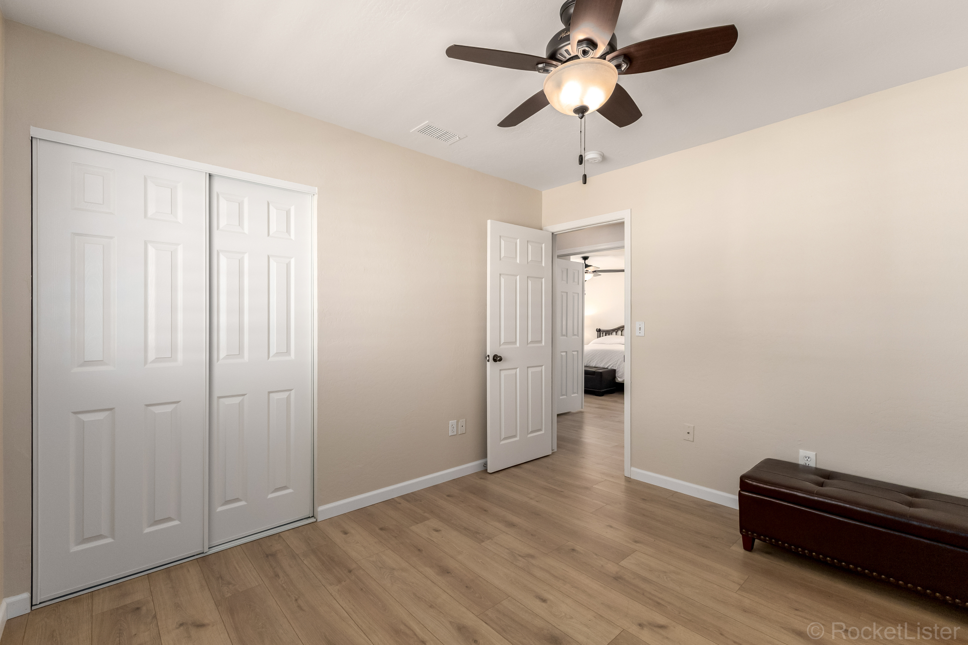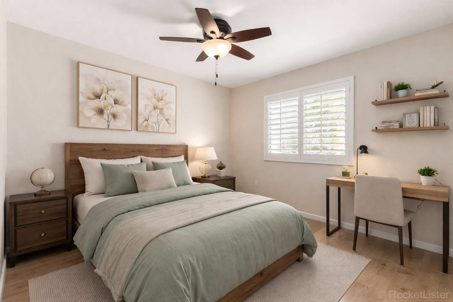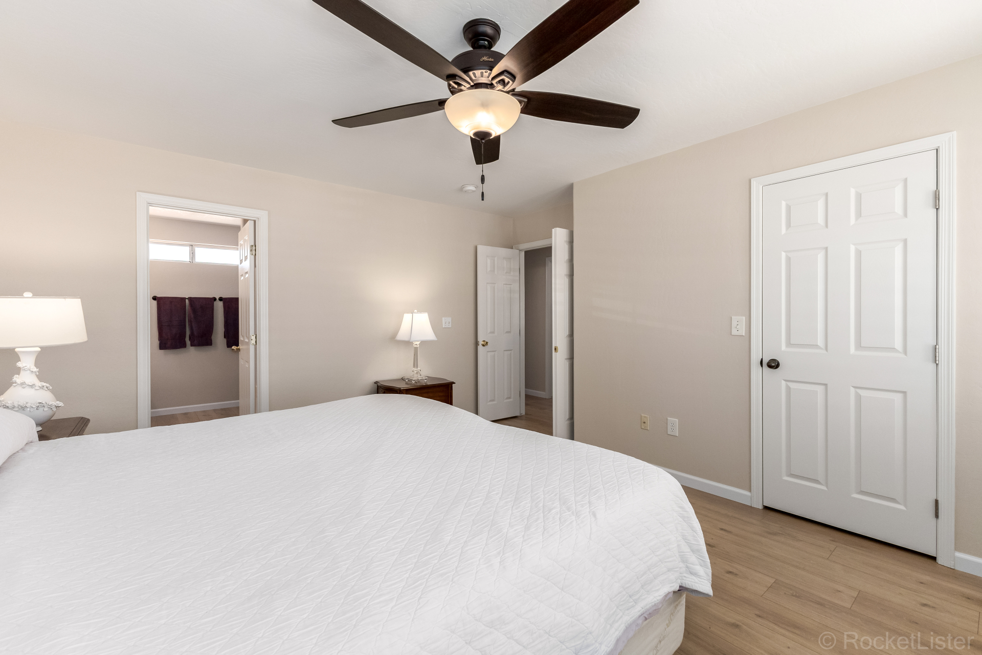 Bright and beautifully updated, this move-in ready home features a spacious layout with expansive ceilings & abundant natural light. Fresh neutral tones, new interior paint, & luxury plank flooring create a modern, inviting feel, while plantation shutters add timeless charm throughout. The kitchen boasts a center island, walk-in pantry, & stainless steel appliances. The versatile downstairs bonus room offers flexible living space for an office, playroom, guest space, or 2nd family room! Upstairs, enjoy a spacious primary suite plus two secondary bedrooms. Situated on a large corner lot with covered patio & low-maintenance artificial turf; perfect for relaxing or entertaining. No unexpected expenses here: Brand new roof, 2023 hot water heater & newer AC! Just move in and enjoy!