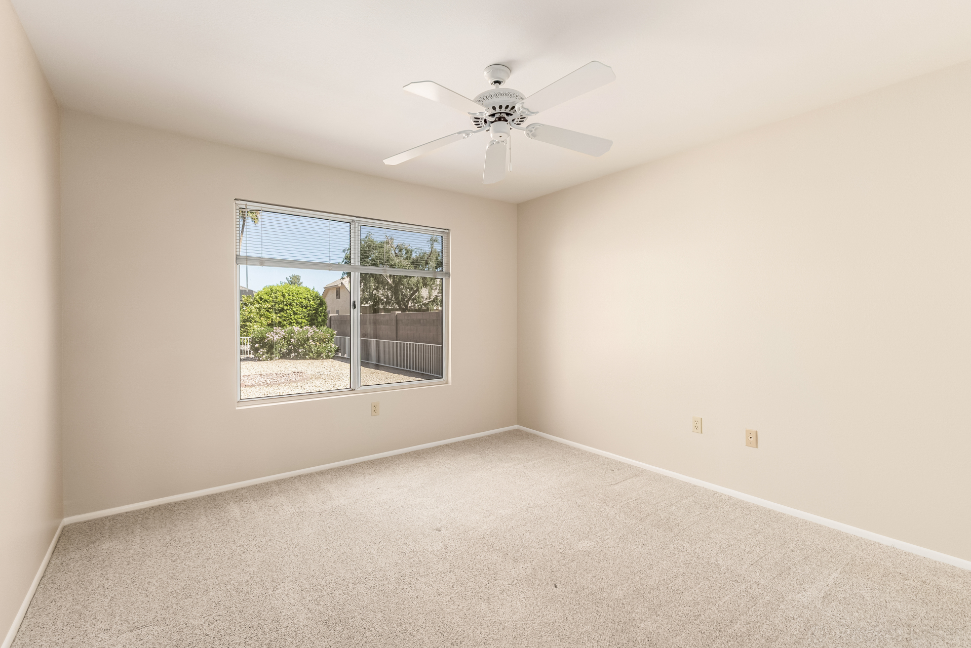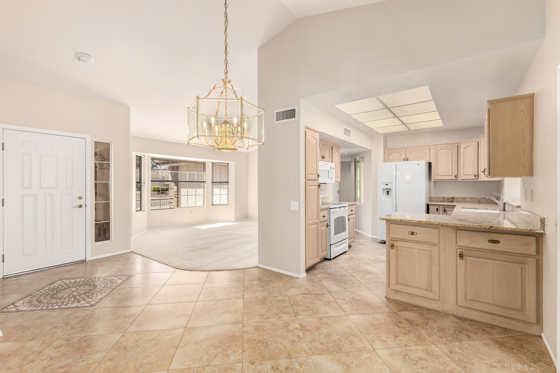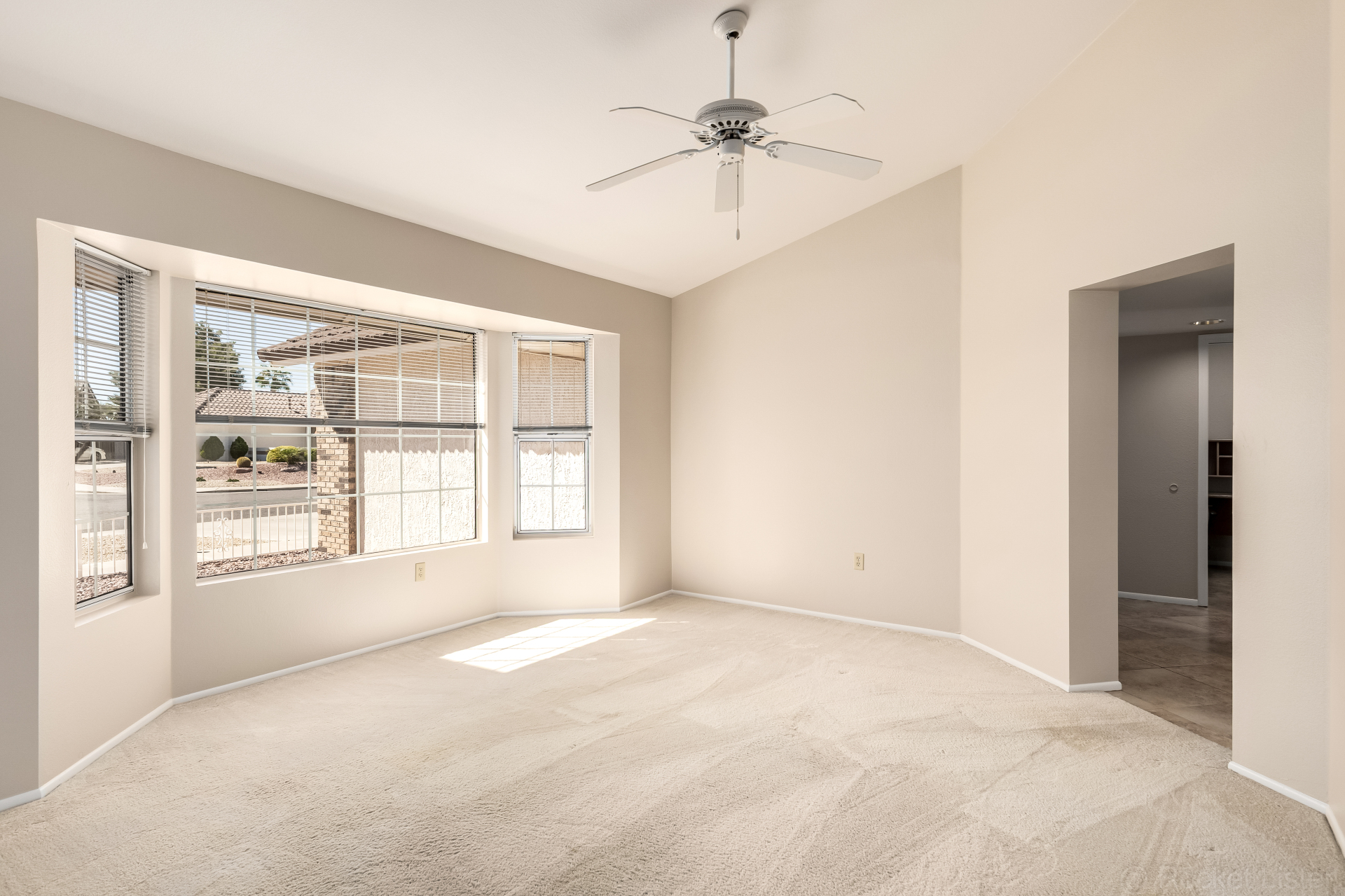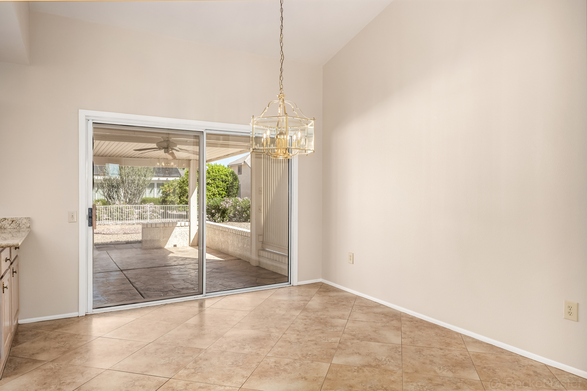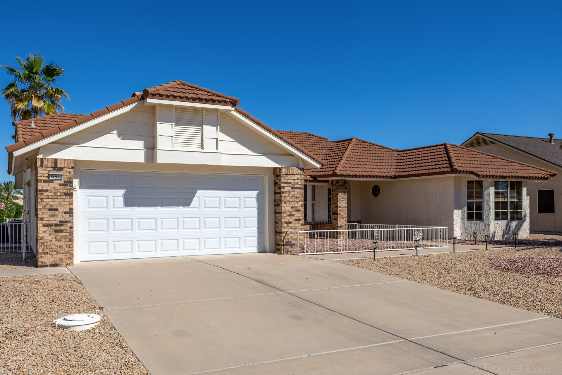 Discover all the charm of this adorable single-story home in the sought-after Sun City West! Inside, you'll find inviting living spaces filled with natural light, displaying soft carpeting, tile in high-traffic areas, vaulted ceilings that make it feel even more spacious, and neutral paint. Whip up feasts and quick bites in the well-appointed kitchen, complete with ample cabinetry, granite countertops, and built-in appliances. Relax in the main retreat, offering a bathroom with dual sinks and a practical walk-in closet. The 2-car garage boasts attached cabinets for added storage and hosts the laundry area for convenience. The backyard includes a covered patio with flagstone flooring, perfect for entertaining, and ample seating space with a serene landscape. Truly a must-see!