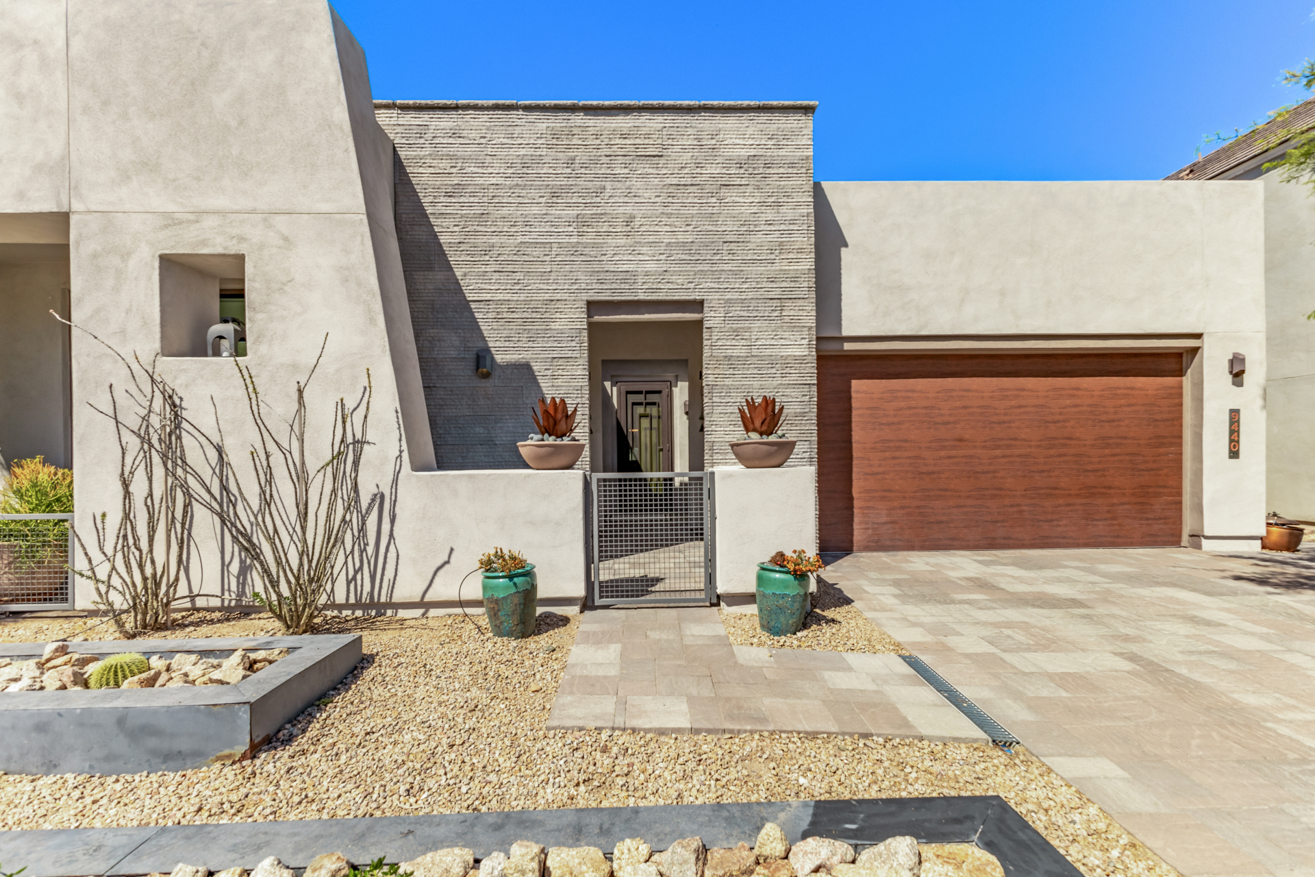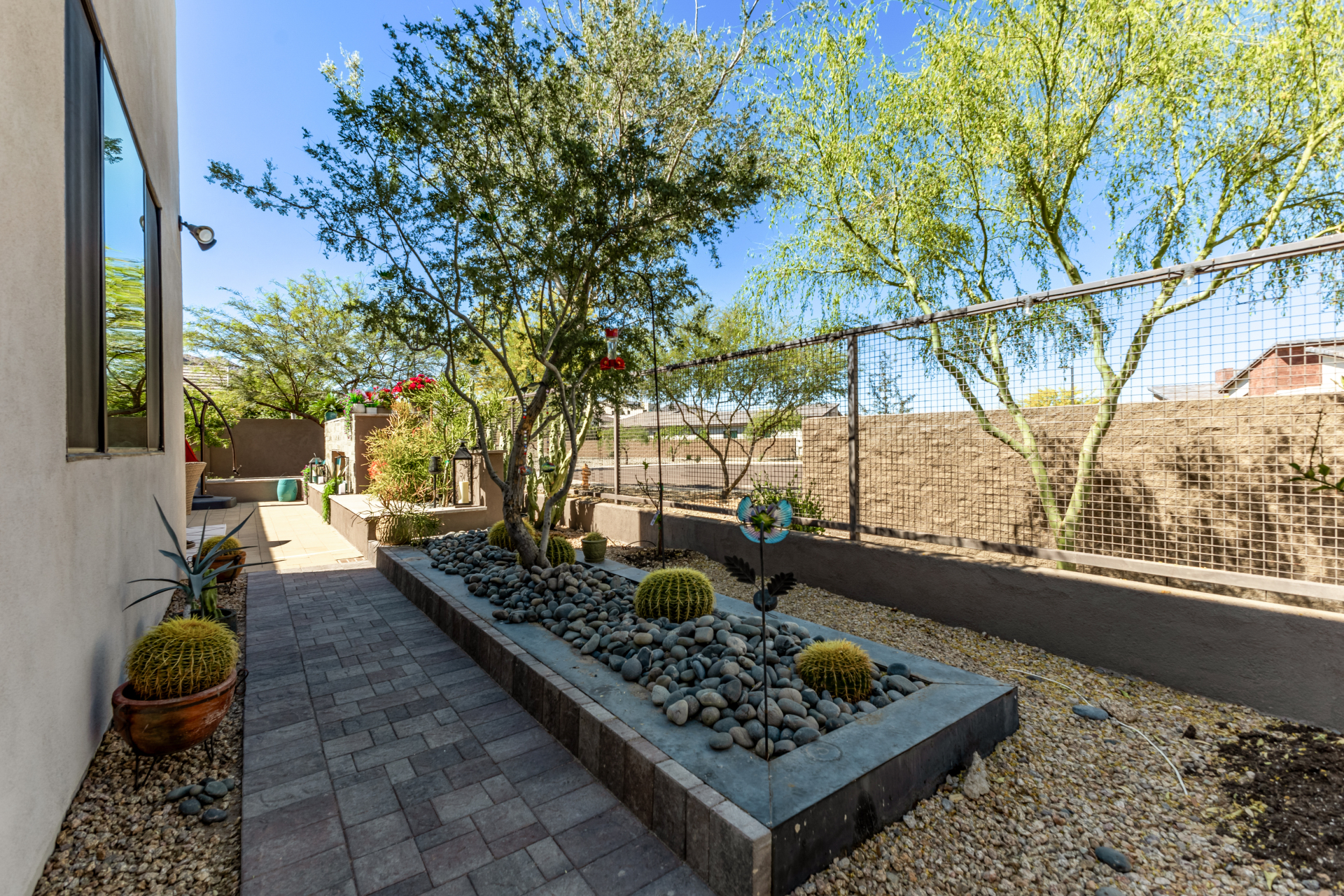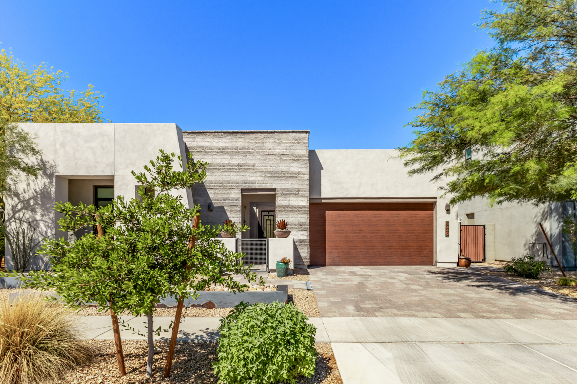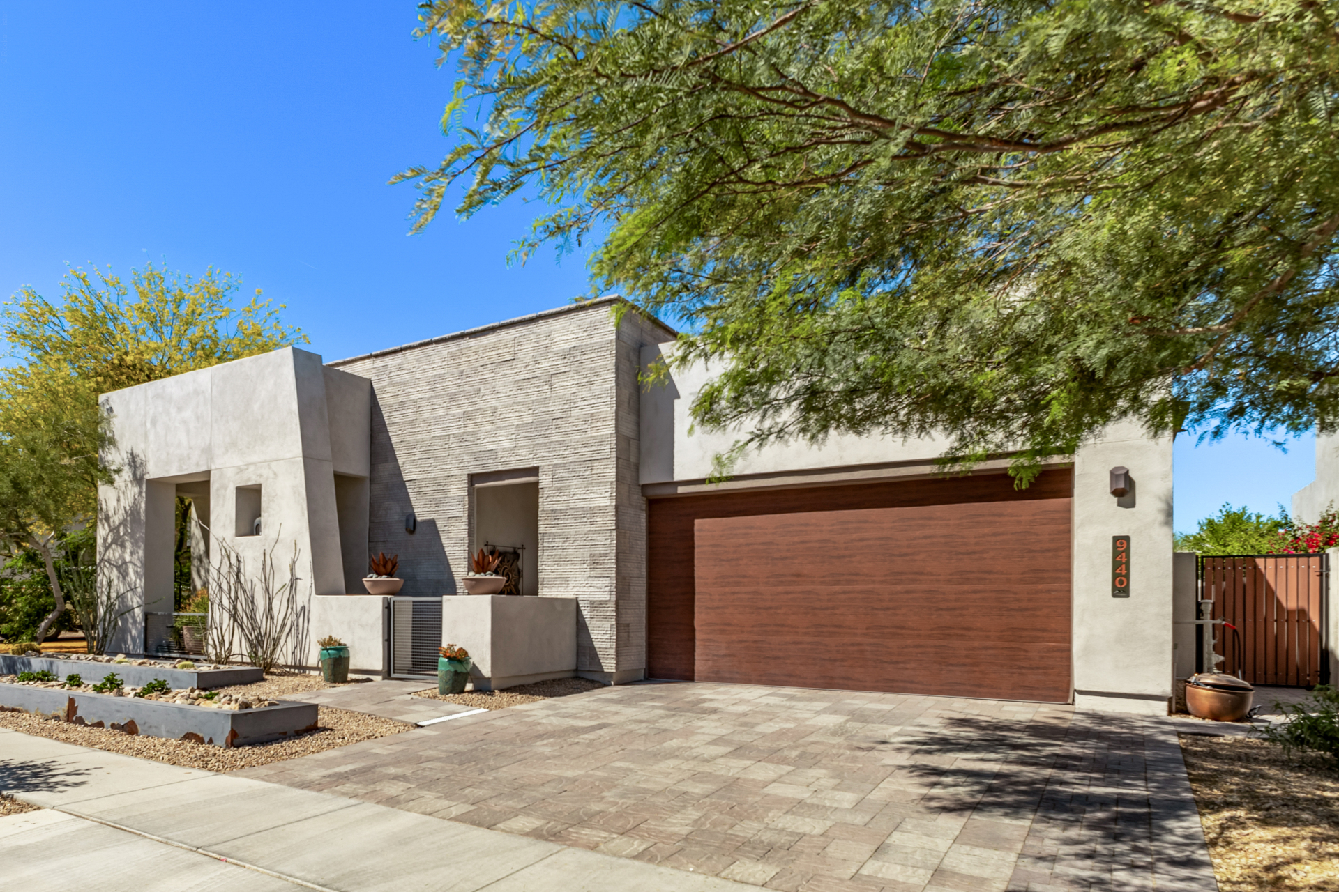 This spacious single-story former model home, designed by Bobby Berk, offers over $165K in upgrades with upscale finishes throughout. The gourmet kitchen features GE Café gas appliances, a 5-burner cooktop, double ovens, built-in ice machine, upgraded pantry, stainless side-by-side refrigerator, and quartz countertops. Enjoy indoor-outdoor living with a 12' multi-slider and wood-look tile throughout. Highlights include dark wood cabinetry, custom office with built-ins, generation suite with kitchenette, window treatments, whole-house sound system, water softener, garage cabinets with epoxy floors, and a landscaped backyard with mist system, fireplace, and built-in BBQ. Near South Mountain, Downtown, and Sky Harbor--don't miss your chance to make this sunning home yours!