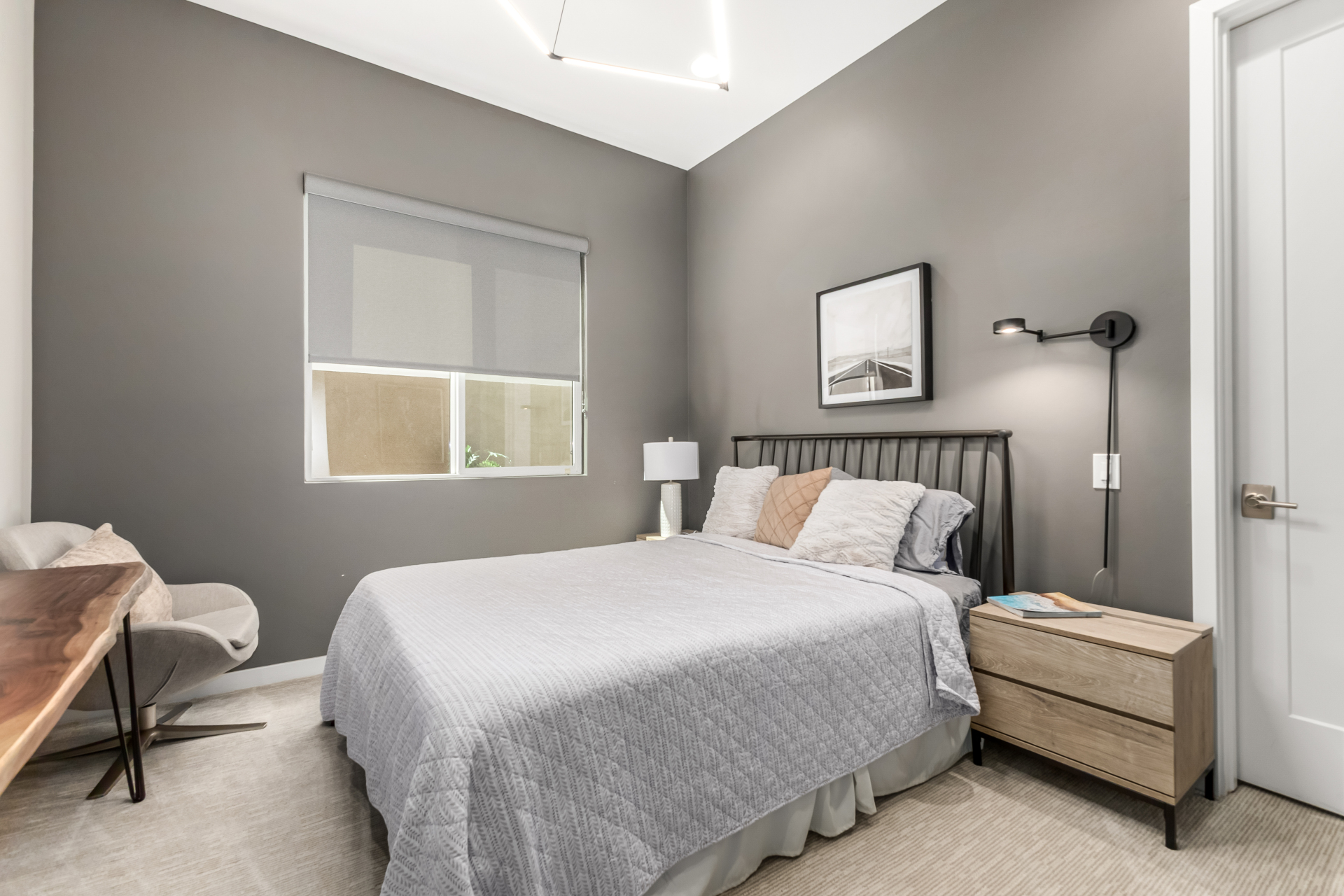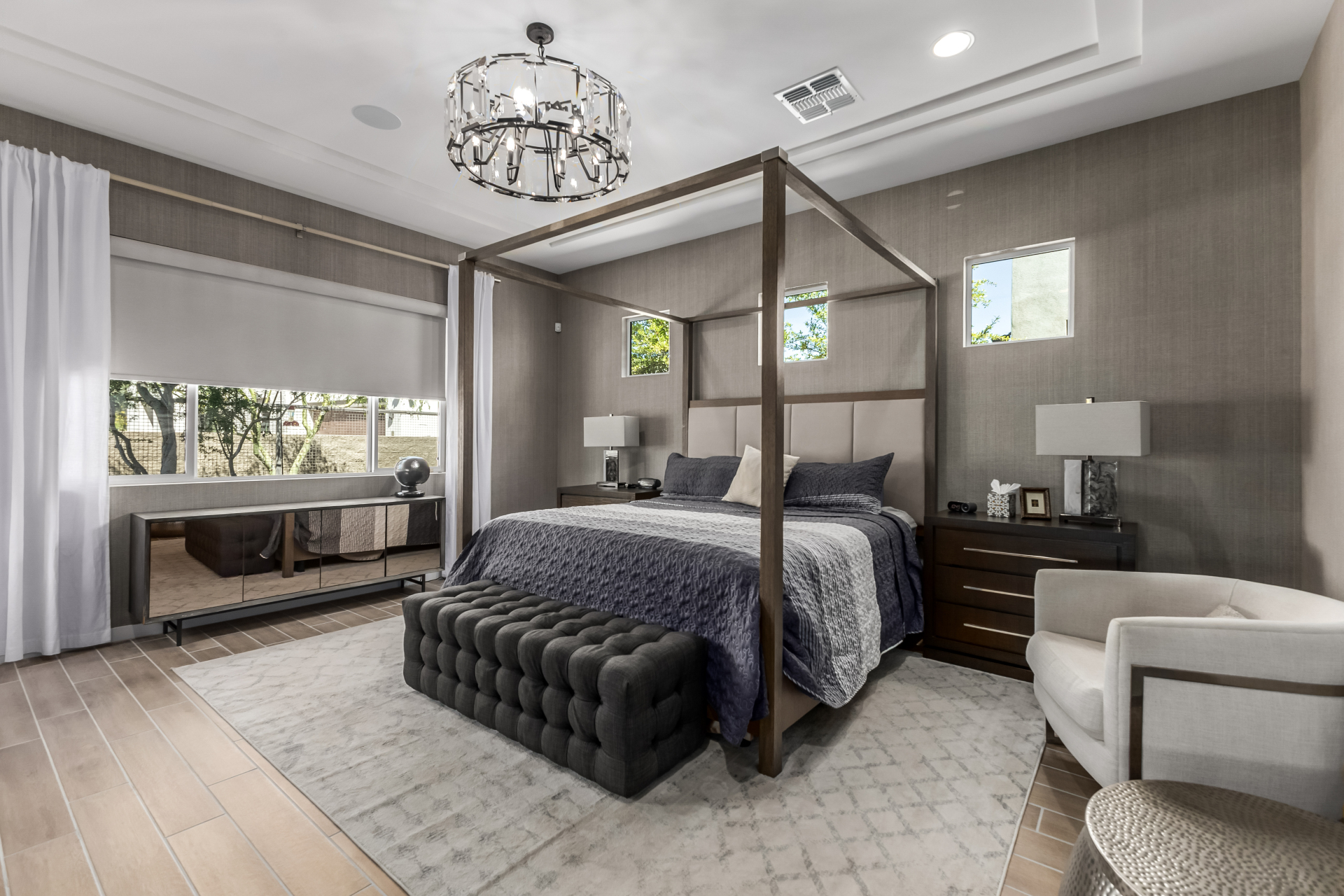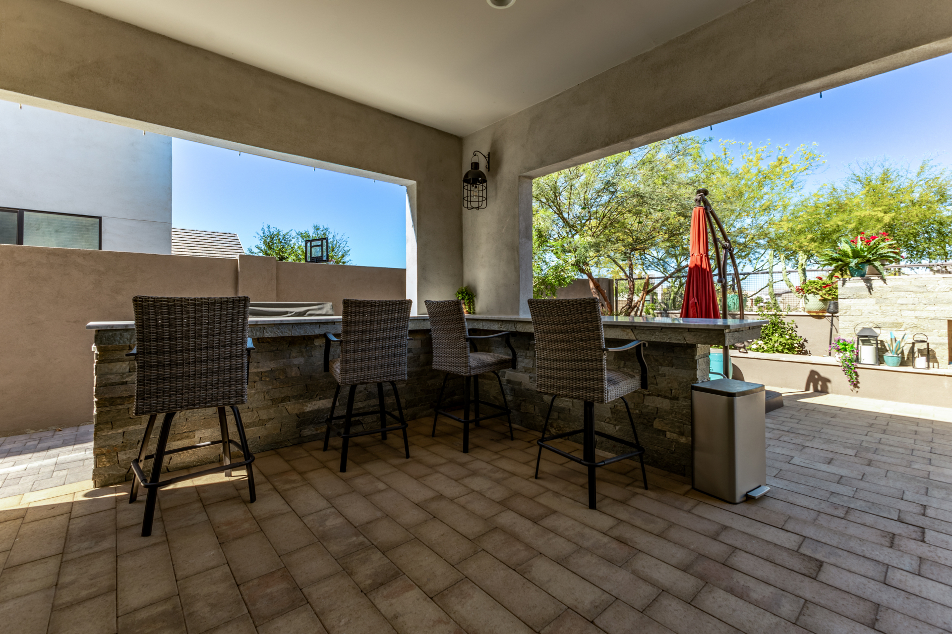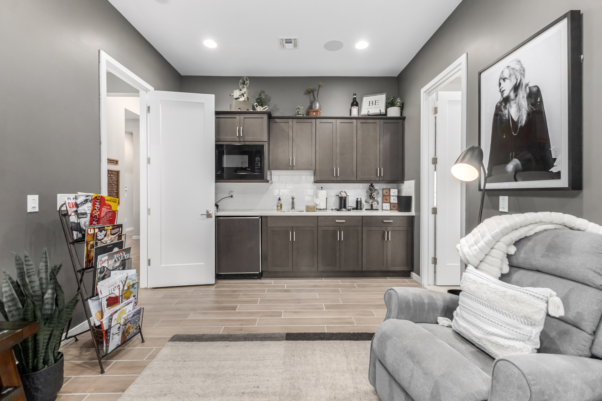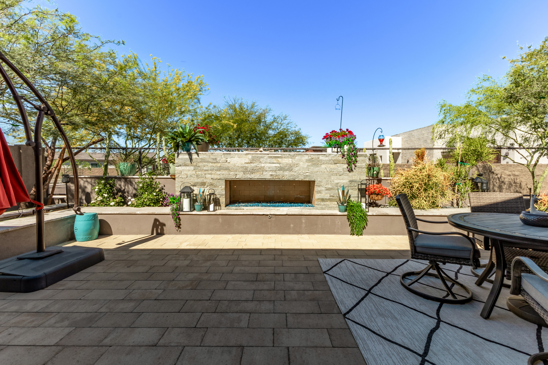 This spacious single-story former model home, designed by Bobby Berk, offers over $165K in upgrades with upscale finishes throughout. The gourmet kitchen features GE Café gas appliances, a 5-burner cooktop, double ovens, built-in ice machine, upgraded pantry, stainless side-by-side refrigerator, and quartz countertops. Enjoy indoor-outdoor living with a 12' multi-slider and wood-look tile throughout. Highlights include dark wood cabinetry, custom office with built-ins, generation suite with kitchenette, window treatments, whole-house sound system, water softener, garage cabinets with epoxy floors, and a landscaped backyard with mist system, fireplace, and built-in BBQ. Near South Mountain, Downtown, and Sky Harbor--don't miss your chance to make this sunning home yours!
