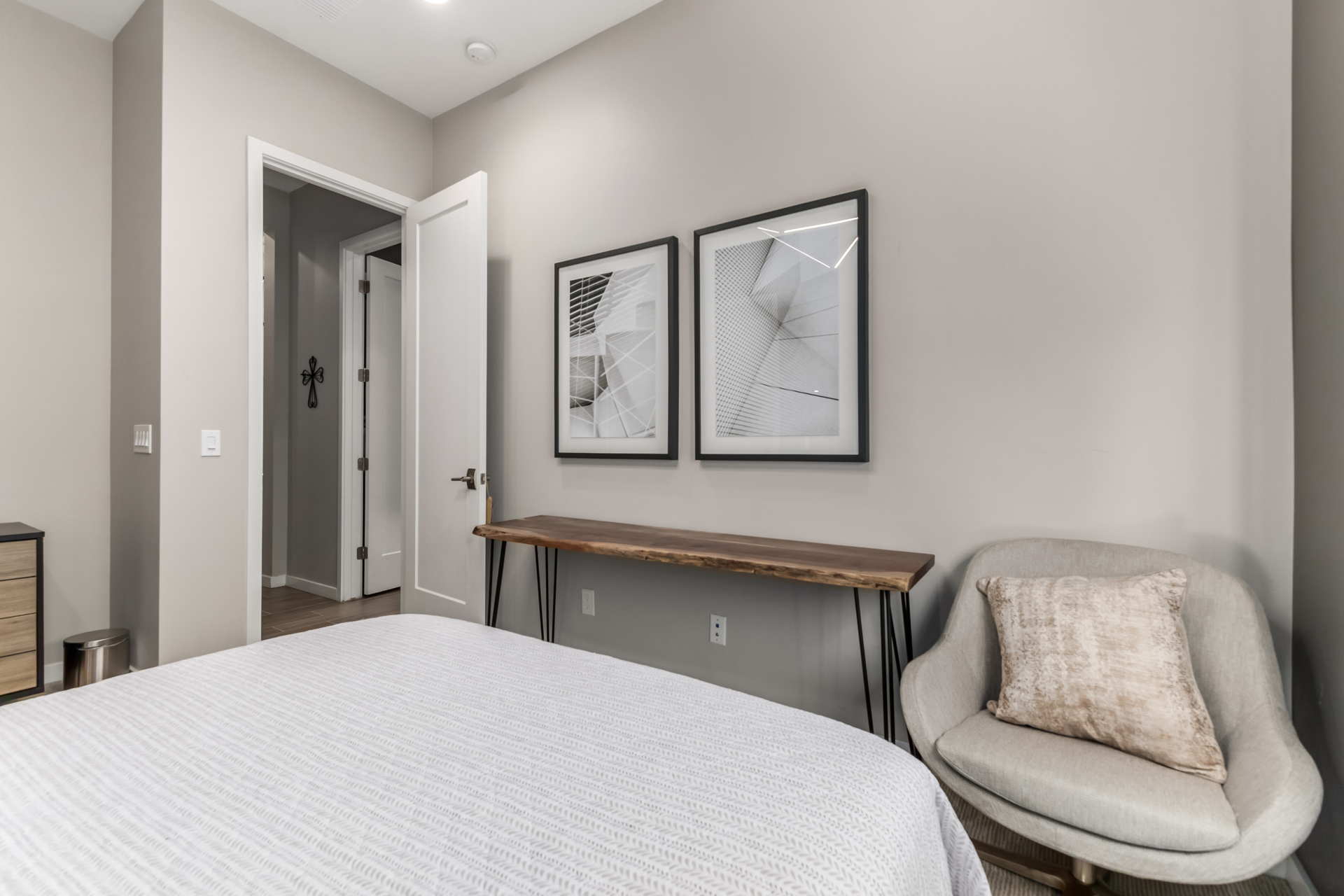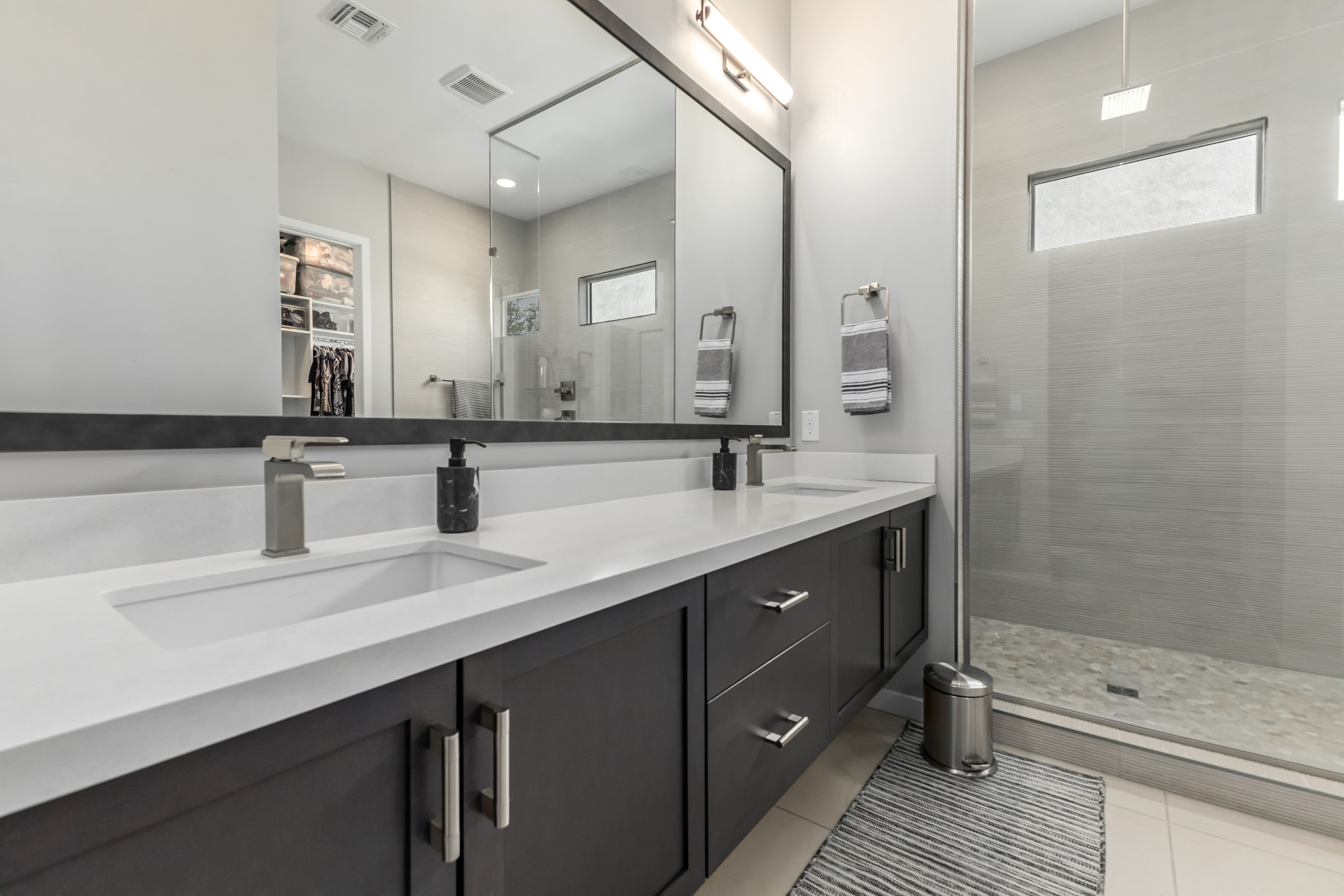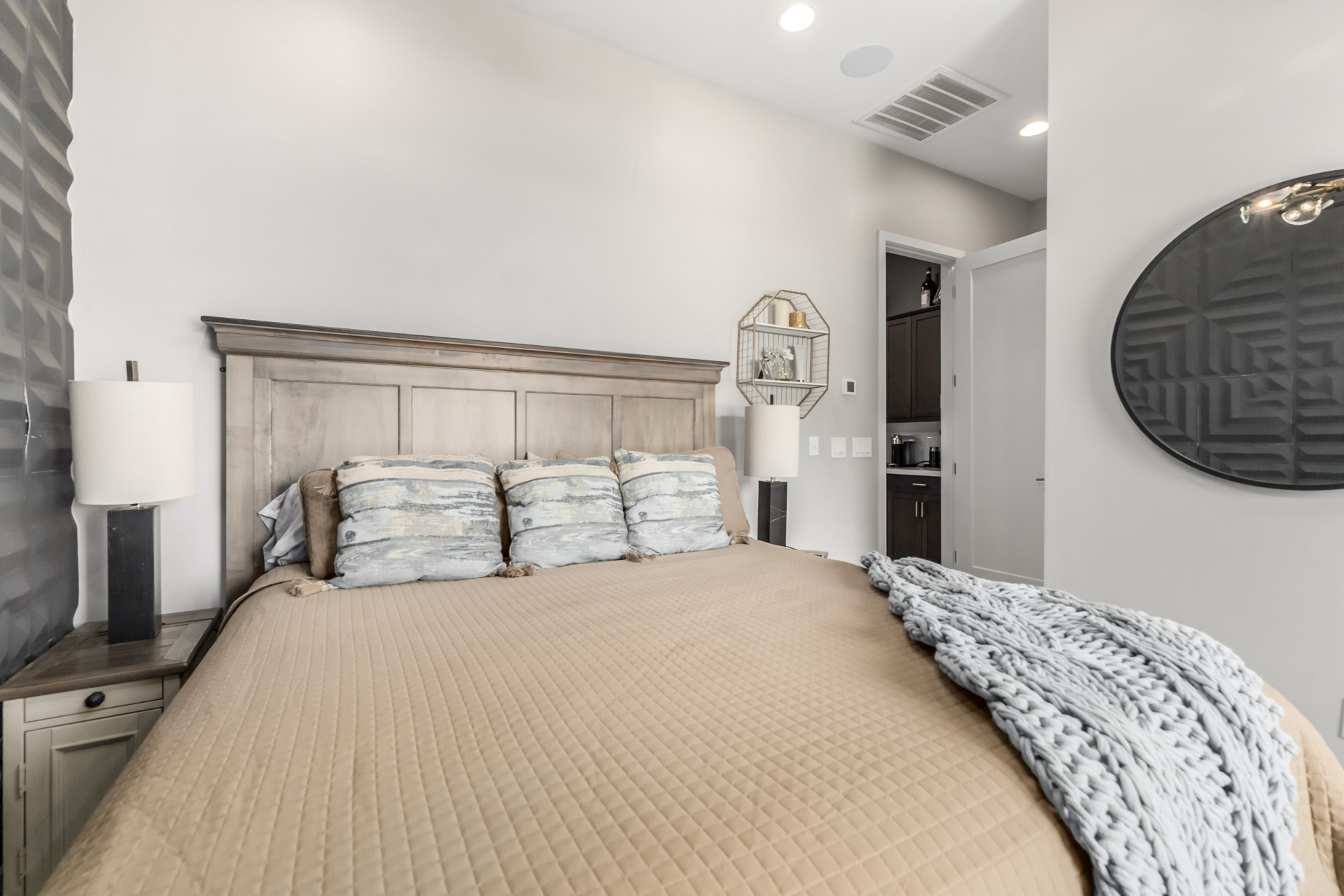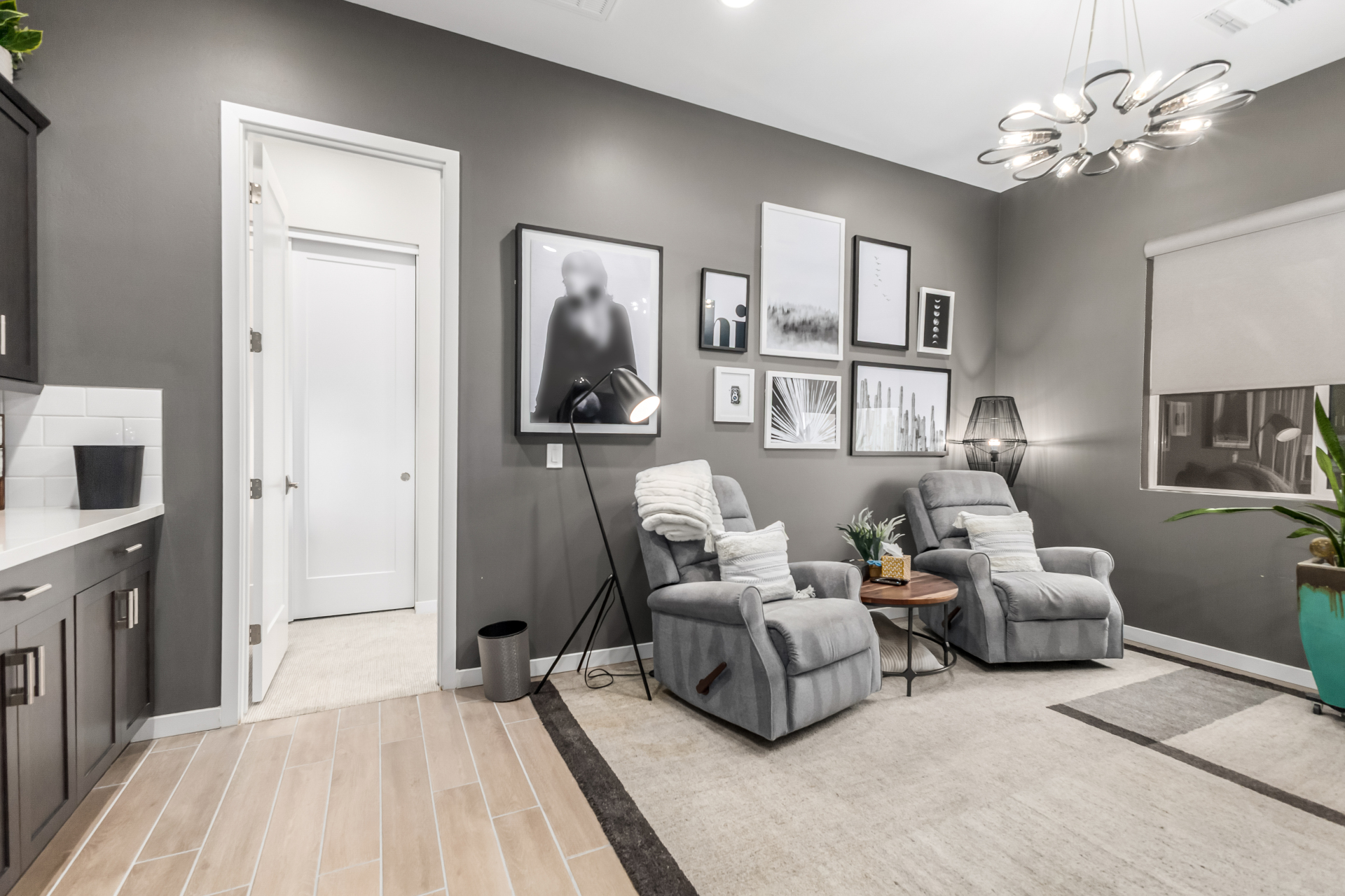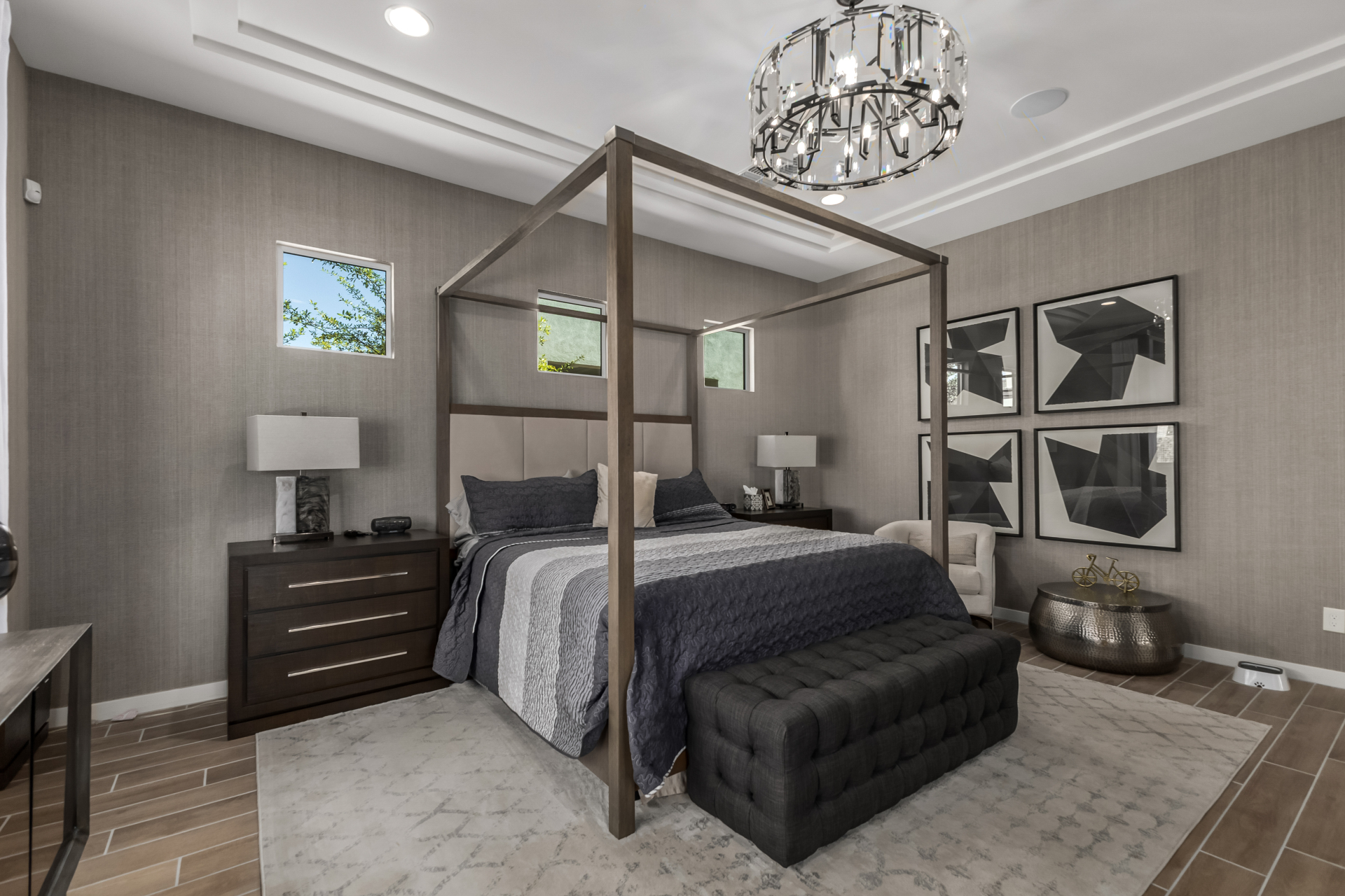 This spacious single-story former model home, designed by Bobby Berk, offers over $165K in upgrades with upscale finishes throughout. The gourmet kitchen features GE Café gas appliances, a 5-burner cooktop, double ovens, built-in ice machine, upgraded pantry, stainless side-by-side refrigerator, and quartz countertops. Enjoy indoor-outdoor living with a 12' multi-slider and wood-look tile throughout. Highlights include dark wood cabinetry, custom office with built-ins, generation suite with kitchenette, window treatments, whole-house sound system, water softener, garage cabinets with epoxy floors, and a landscaped backyard with mist system, fireplace, and built-in BBQ. Near South Mountain, Downtown, and Sky Harbor--don't miss your chance to make this sunning home yours!