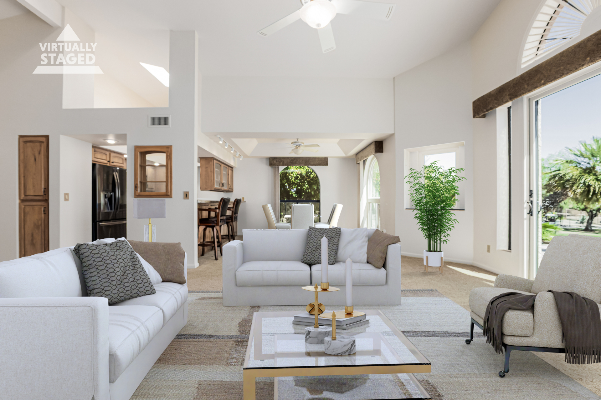 MILLION $$ MOUNTAIN VIEWS- PRICE REDUCED $85,000 for quick sale Adorable single-story townhome with gorgeous golf-course views! Discover the inviting and spacious interior, showcasing soft carpeting underfoot, tile in high-traffic areas, soaring vaulted ceilings promoting an airy feel, skylights & transom windows for abundant natural light, and a neutral palette throughout. The galley kitchen is equipped with custom cabinetry, tile backsplash, granite countertops, and built-in appliances for a seamless cooking experience. The tranquil main retreat offers beautiful mountain and golf-course views through the sliding doors to the patio, a walk-in closet for effortless organization, and a full bathroom with double sinks. Enjoy peaceful evenings in the backyard, admiring the fantastic scenery.