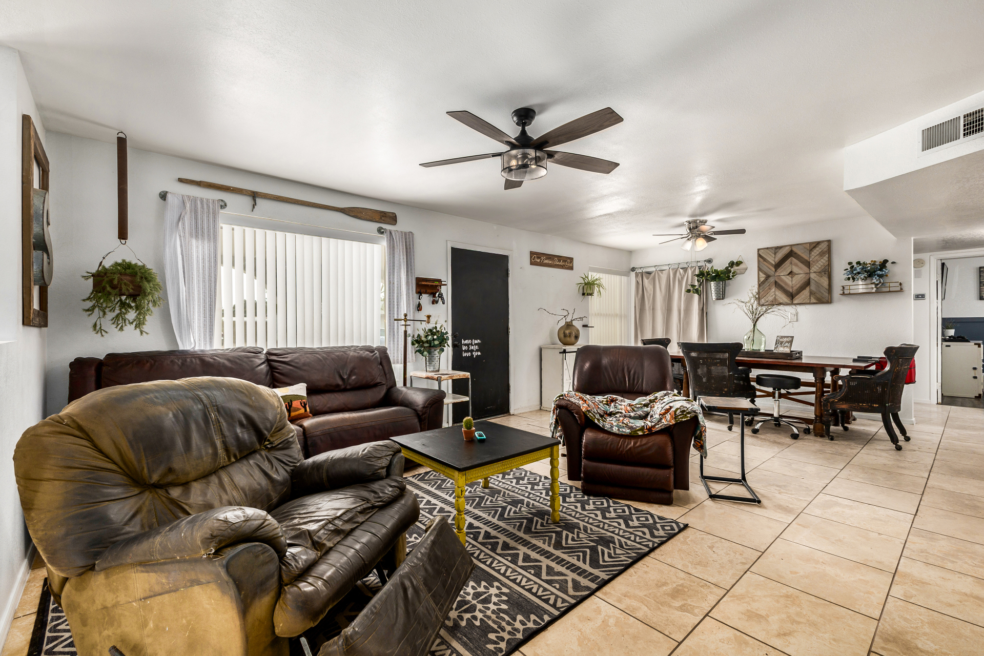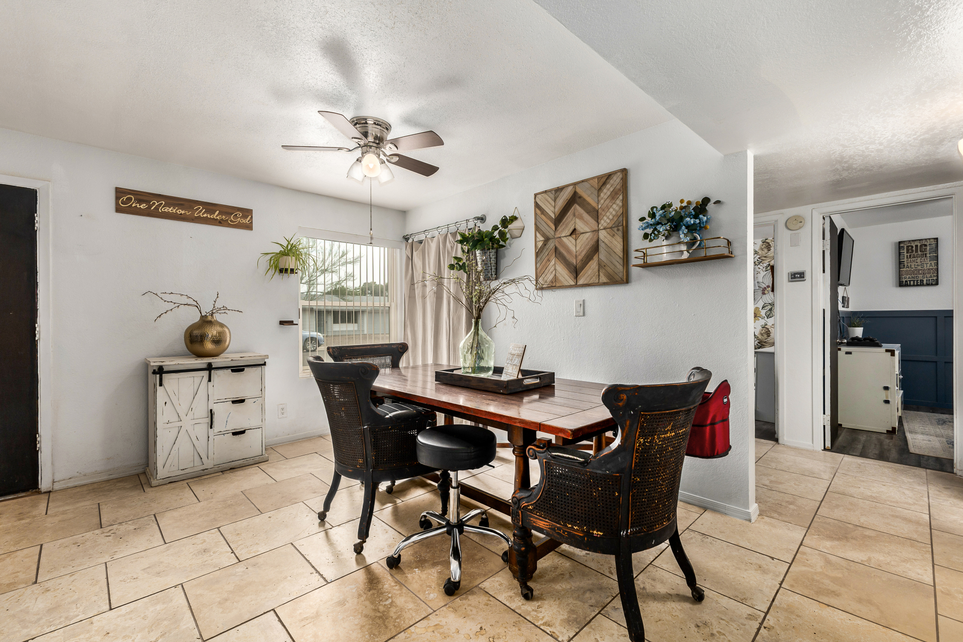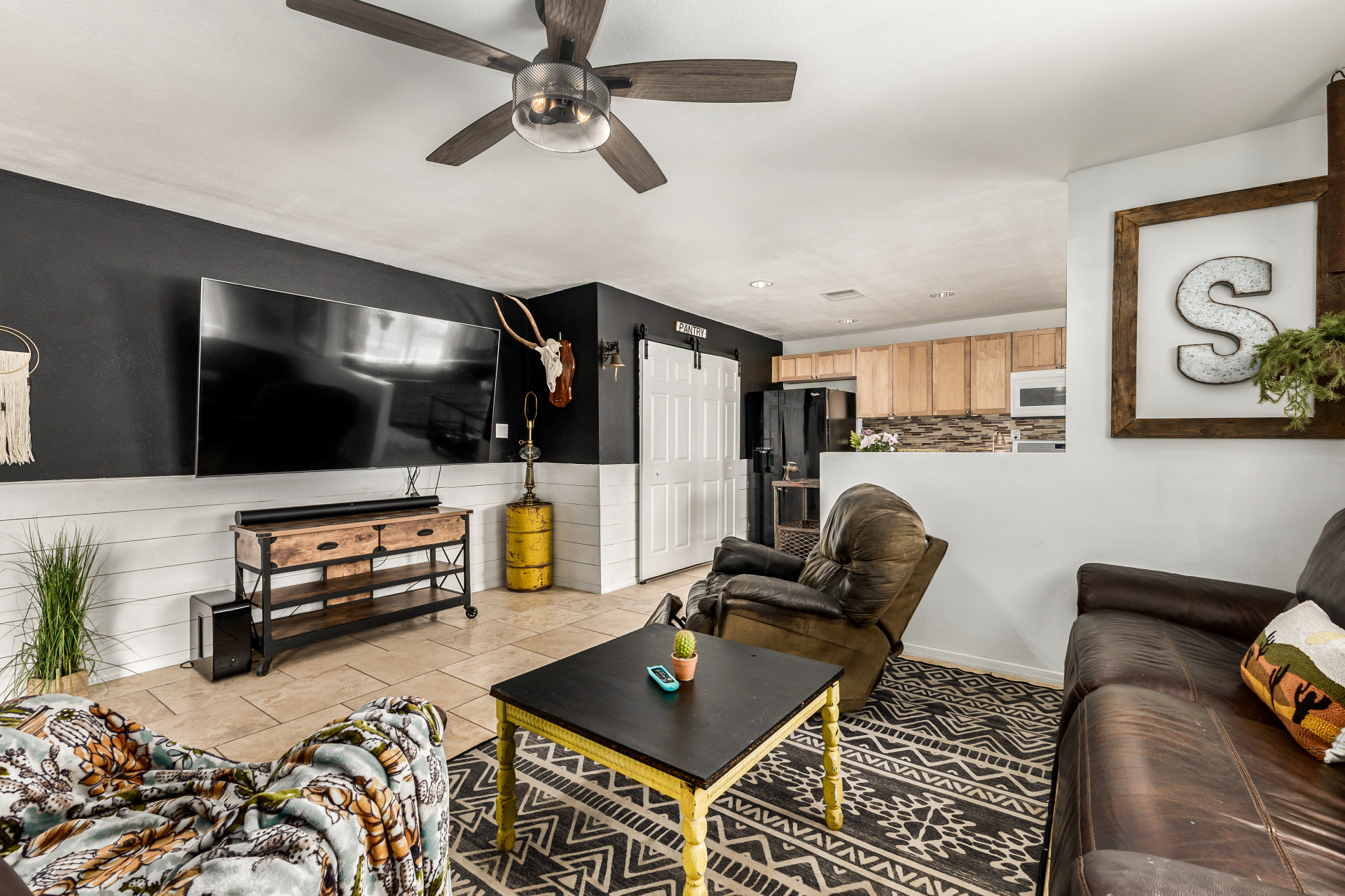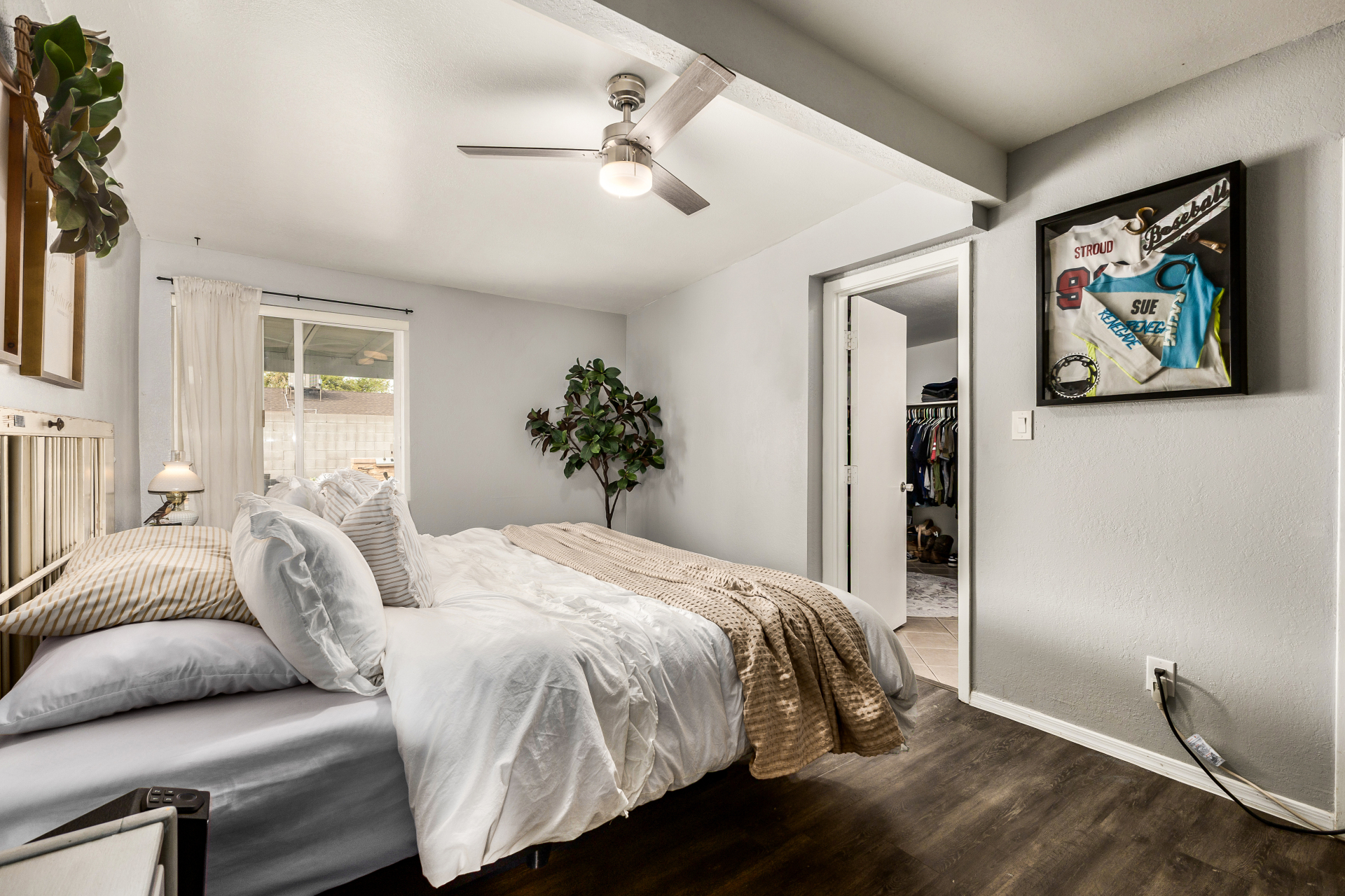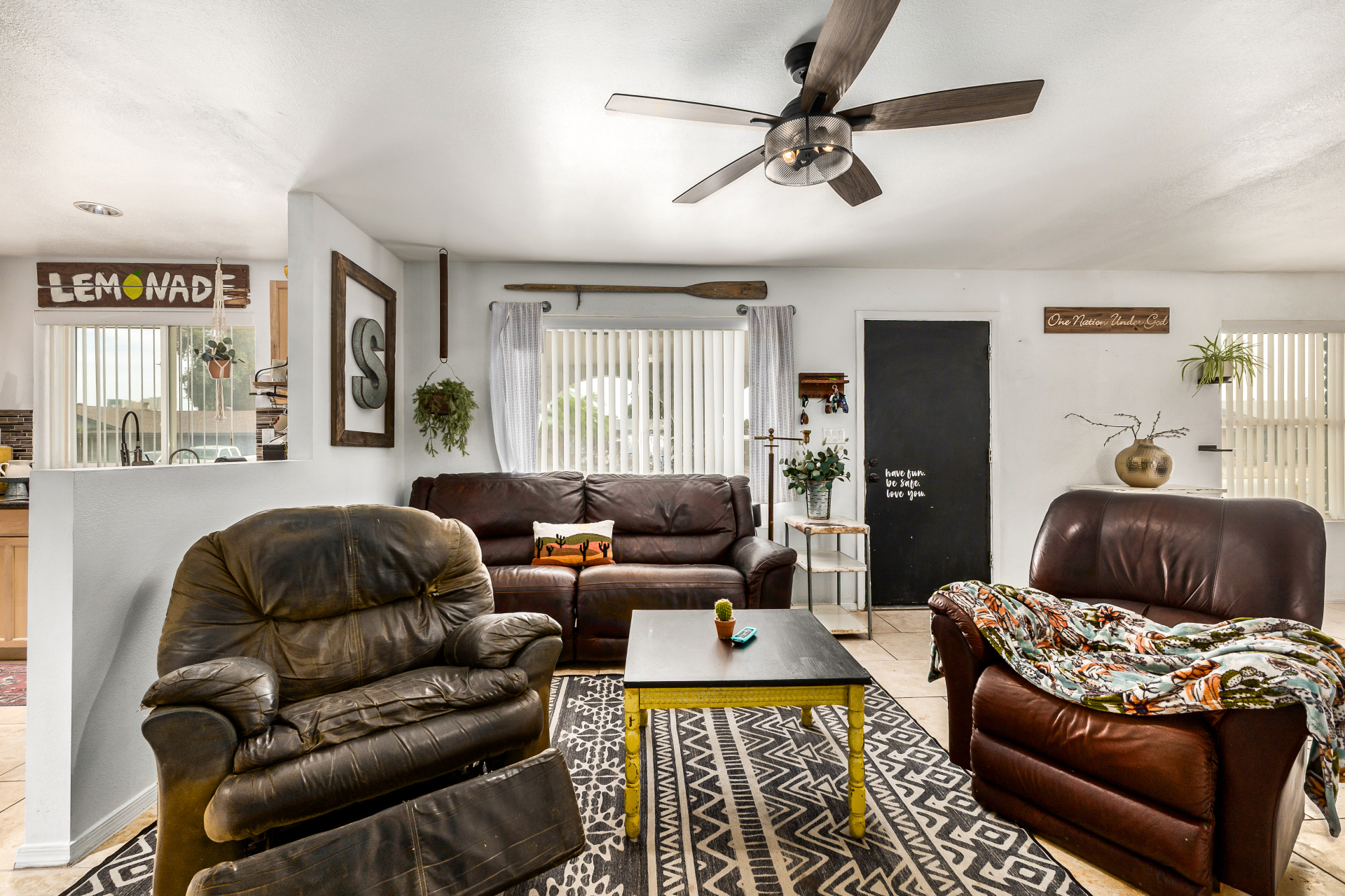 This gorgeous single-story home is ready to bring you joy! Fall in love with the bright and inviting living areas, featuring tile floors, abundant natural light, shiplap accents to add charm, and neutral colors throughout. Prepare feasts and quick meals in the impeccable kitchen, equipped with recessed lighting, oak cabinetry, tile backsplash, granite countertops, and built-in appliances. The main suite promises a good night's sleep and features a practical walk-in closet for effortless organization, as well as a full bathroom for added privacy. Out back, you'll have a covered patio perfect for entertaining and relaxation, a grass area ideal for games, a shed, and a built-in BBQ, perfect for gatherings with family and friends. No HOA restrictions! Welcome home!