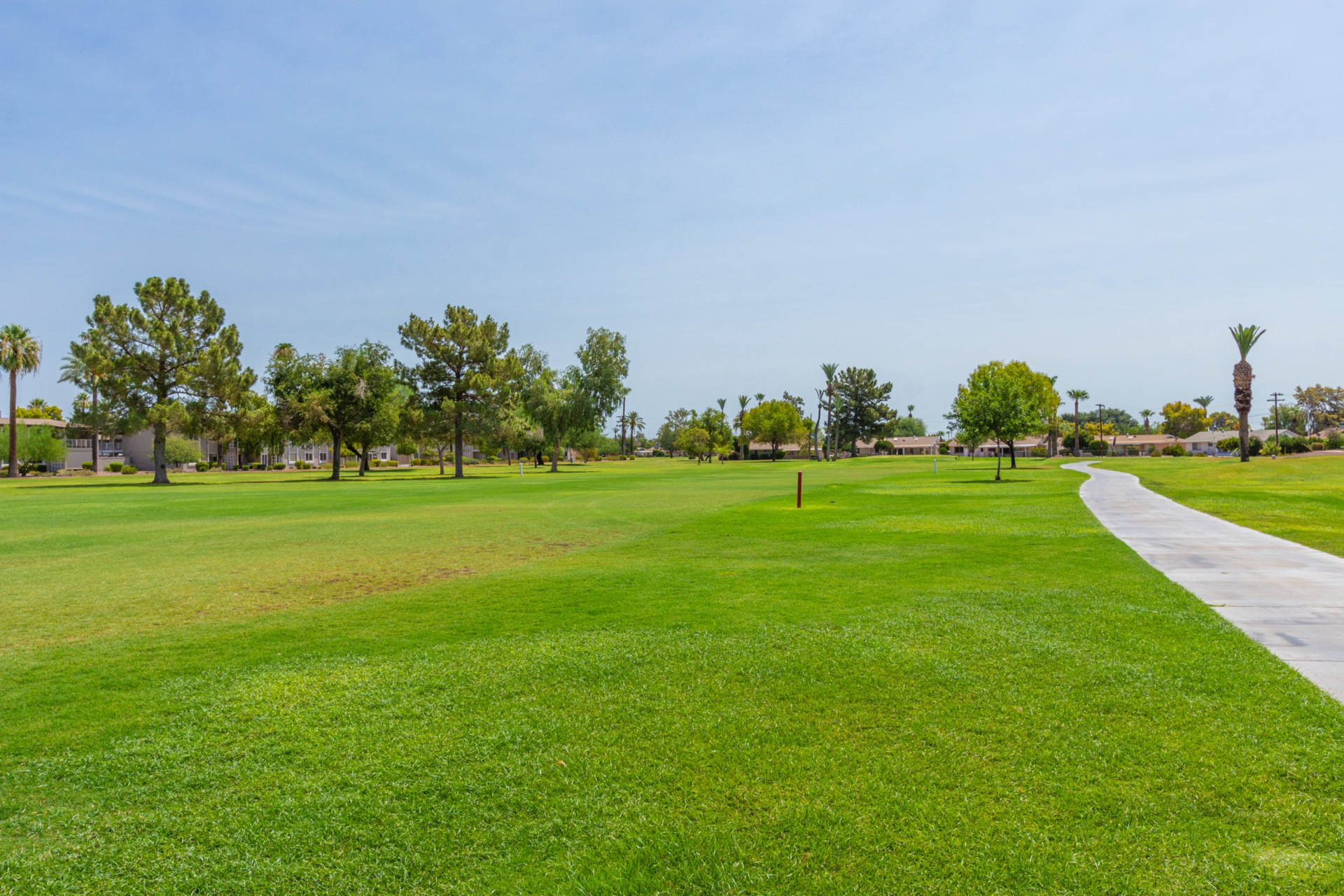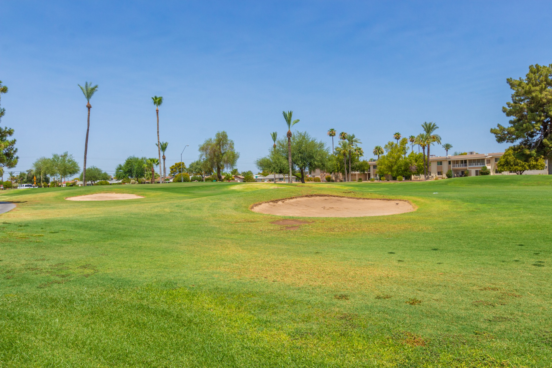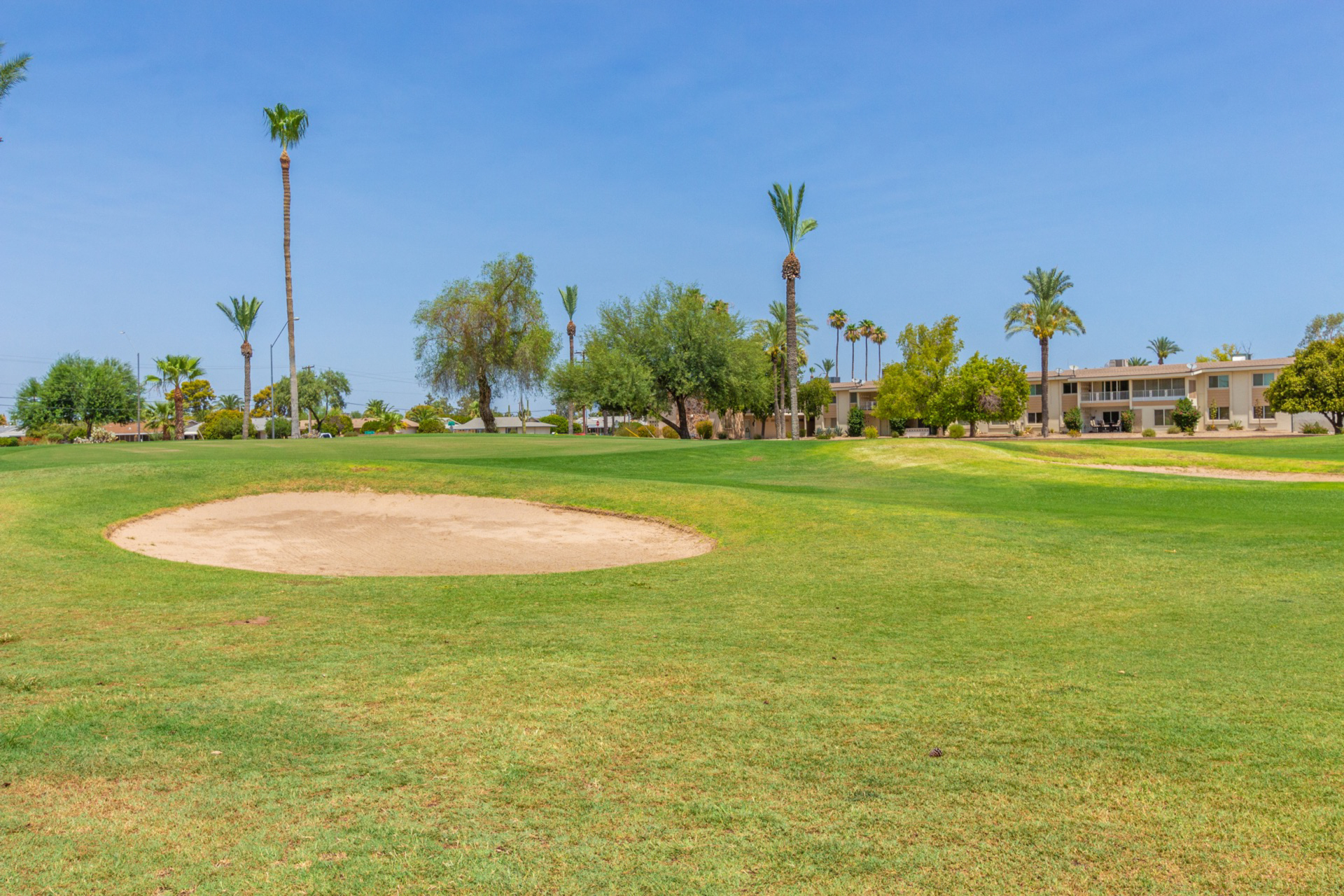 Located in the heart of Sun City, this remodeled 2-bedroom, 2-bath second-floor condo (with 2 elevators nearby) offers GOLF COURSE VIEWS and the perfect balance of comfort and low-maintenance living. Enjoy peaceful moments from your private balcony patio with views of the golf course, ideal for relaxing evenings, watching the sunset, or taking in the beauty of the surrounding landscape. Just a short walk or golf cart ride away from the community recreation center. The center offers endless opportunities to stay active and connected, with golf, swimming, clubs, hobbies, and social events that make it easy to meet friends and enjoy each day to the fullest. Designed for effortless living, this apartment-style condo features 2 elevator access points, 1 covered assigned parking space.