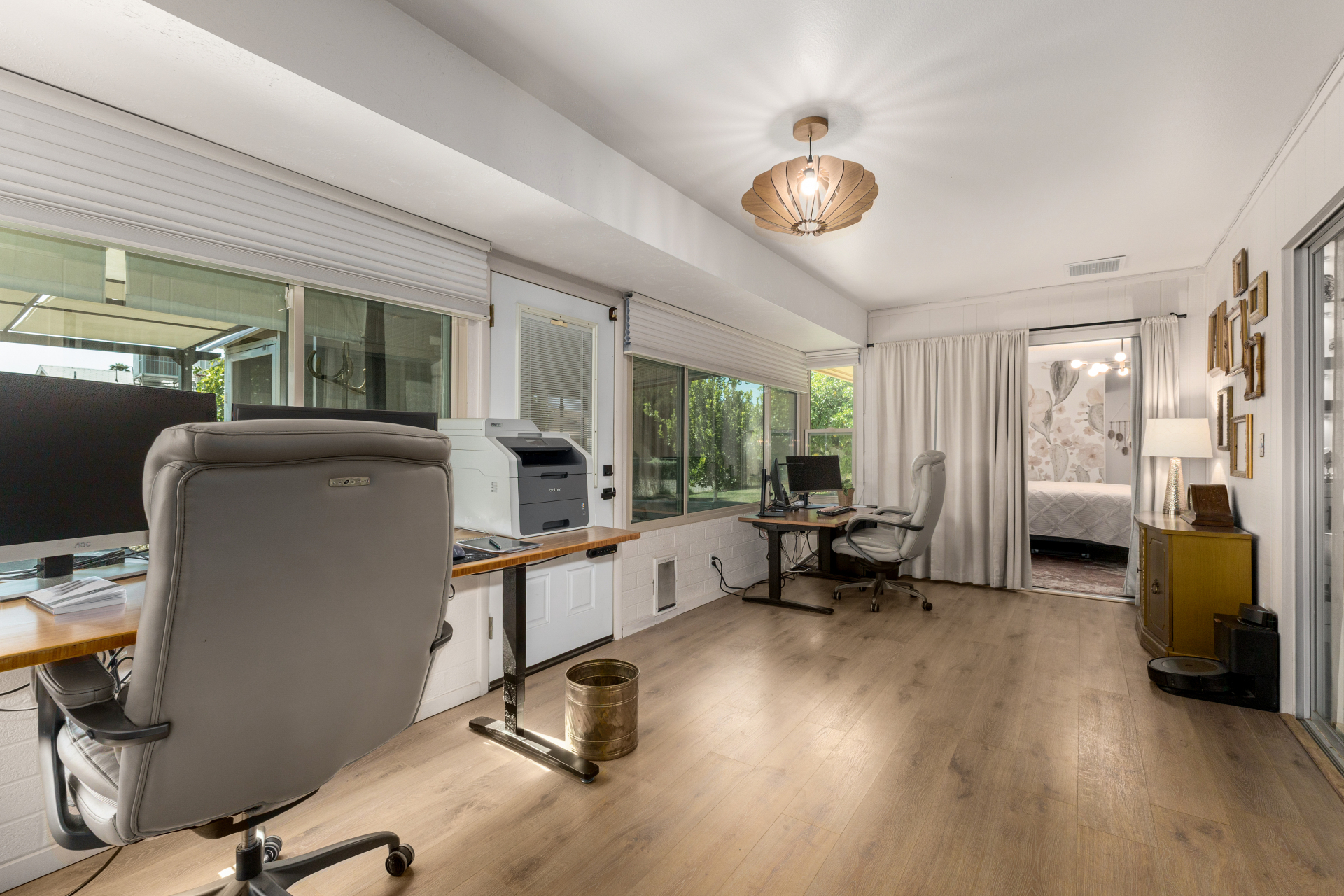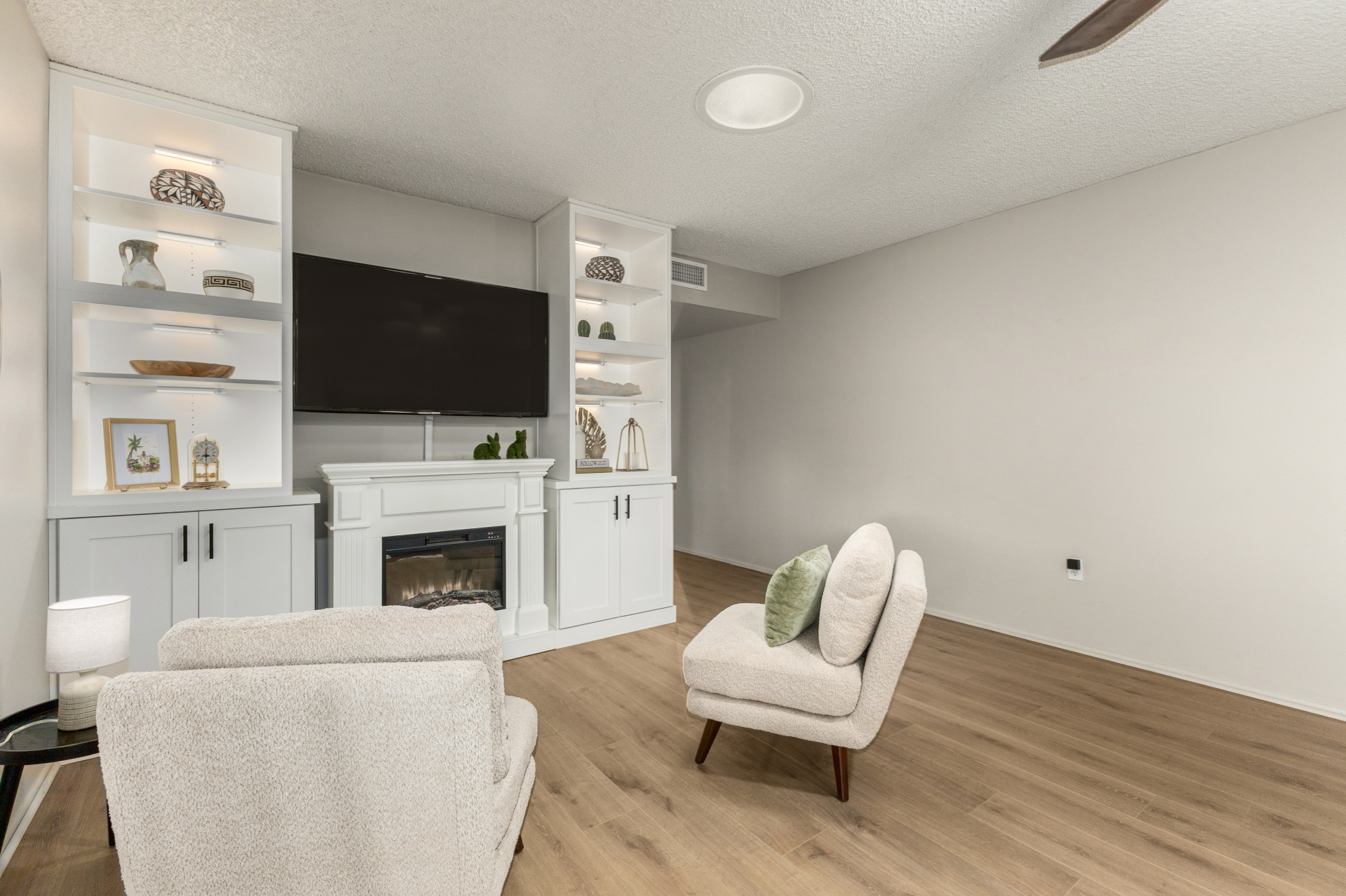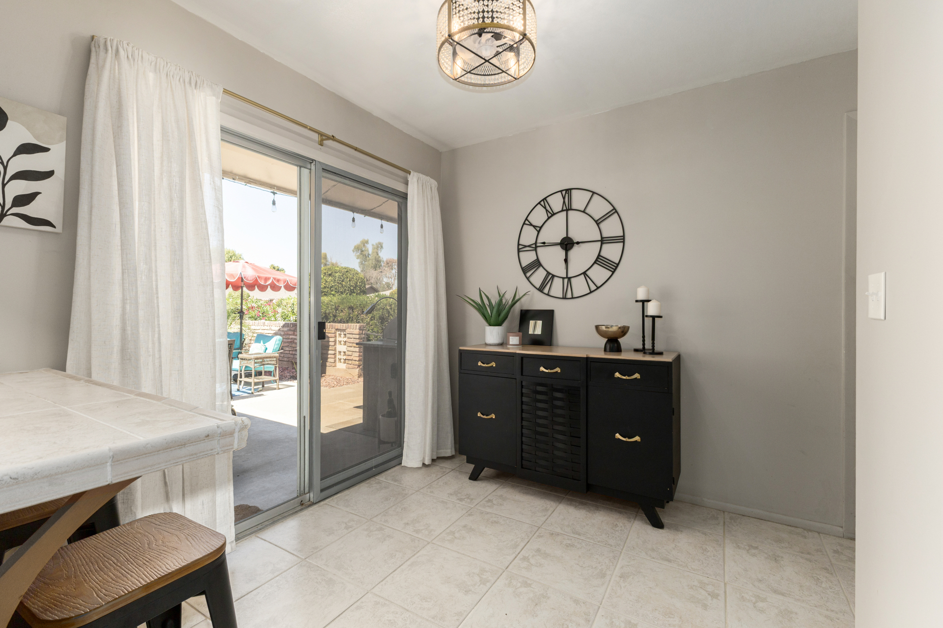 What a lovely 2-bedroom townhome perfectly located in the adult Community of Sun City! This North/South-facing gem offers carport parking, manicured landscape, and a gated courtyard with a built-in BBQ. Come inside to find a seamlessly flowing living & dining room, ideal for entertaining. The kitchen provides fluorescent lighting, matching appliances, tile counters & backsplash, plenty of cabinets, and a breakfast bar. Sizable primary bedroom includes a sitting room, a walk-in closet, and a private bathroom, bringing comfort to your everyday routine. Host weekend gatherings in the relaxing backyard, complete with a screened-in patio and fragrant citrus tree, excellent for enjoying freshly squeezed juice. Don't let this amazing abode slip by! Hurry!