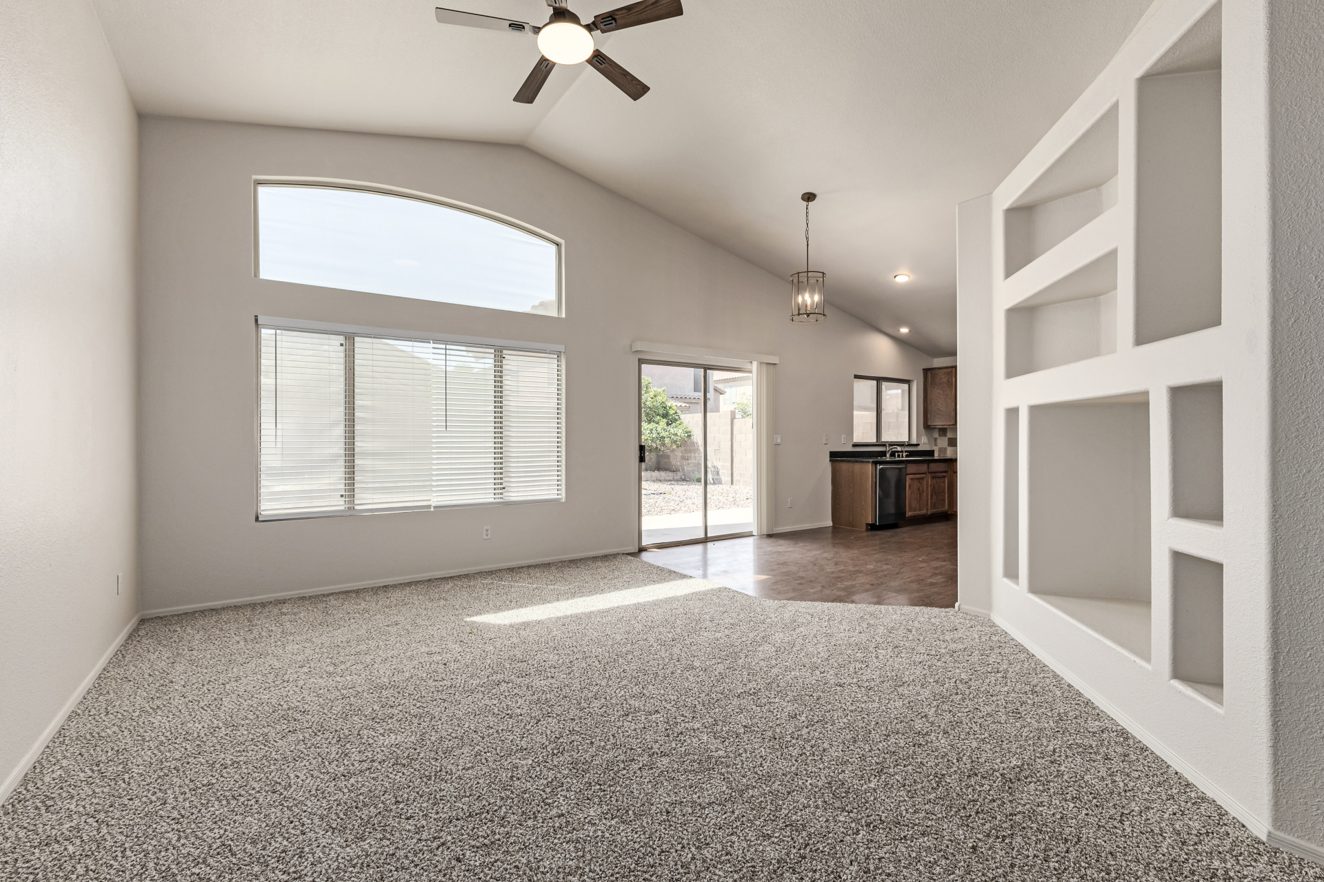**Location! Location! Location!** Incredible opportunity to own a beautifully updated home in Lindsay Ranch, Gilbert--priced under $475K! Conveniently located with easy access to Gilbert Downtown, San Tan Village Mall, the Loop 202, and Chandler Downtown. This single-level home offers 3 bedrooms, 2 bathrooms, a 2-car garage with cabinetry, and low-maintenance landscaping. Step inside to vaulted ceilings, abundant natural light, a neutral palette, **fresh interior paint**, and **brand-new carpet throughout**. The functional layout features a welcoming living room and an open-concept family room with a media niche. The eat-in kitchen shines with **quartz countertops**, **brand-new stainless steel appliances*,wood cabinetry, recessed lighting, a walk-in pantry, and sliding doors to the patio.