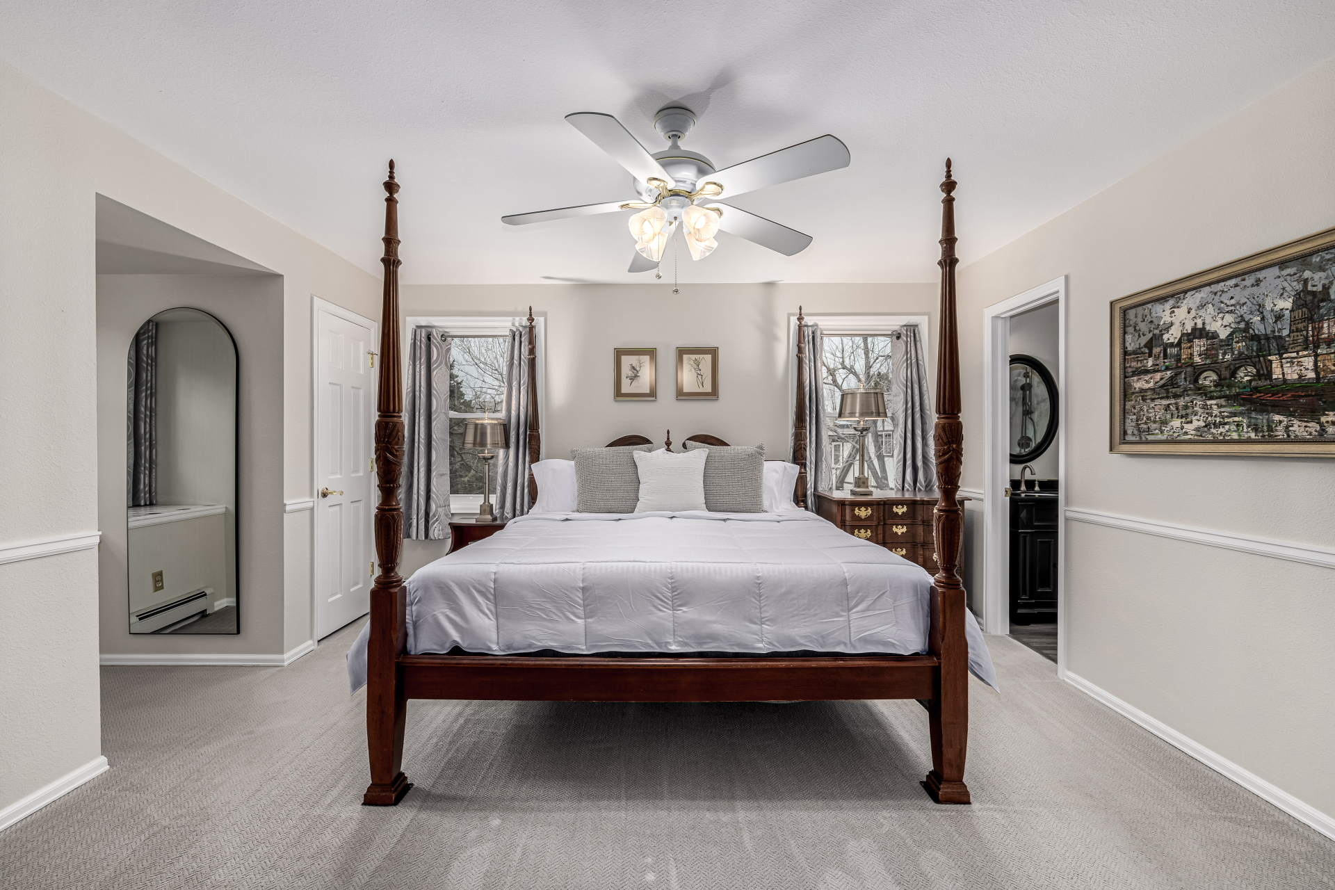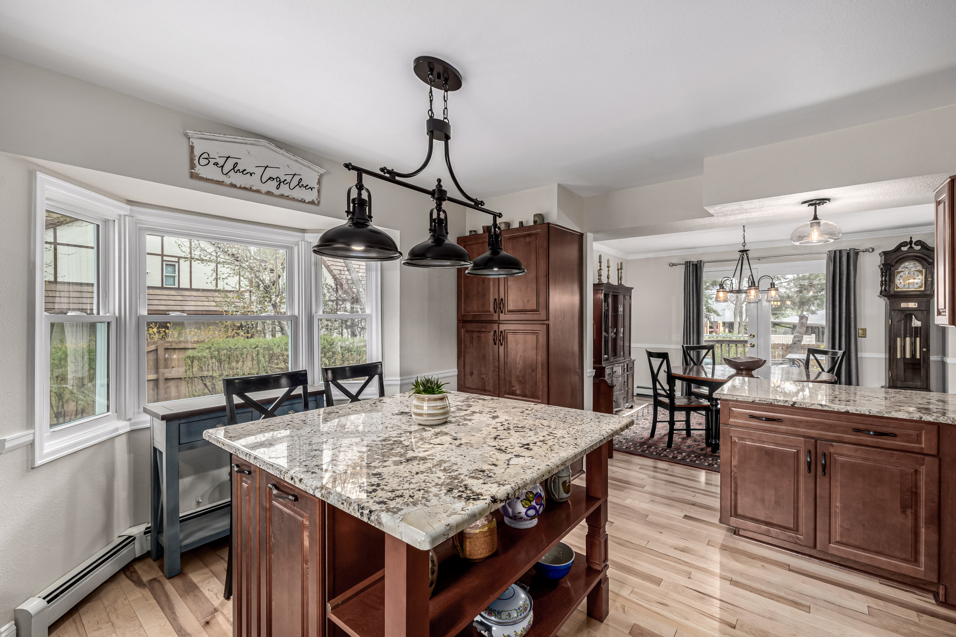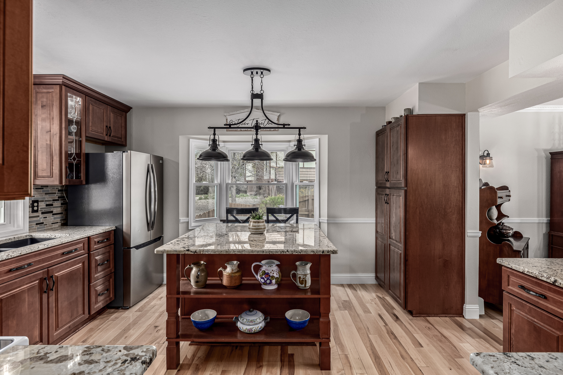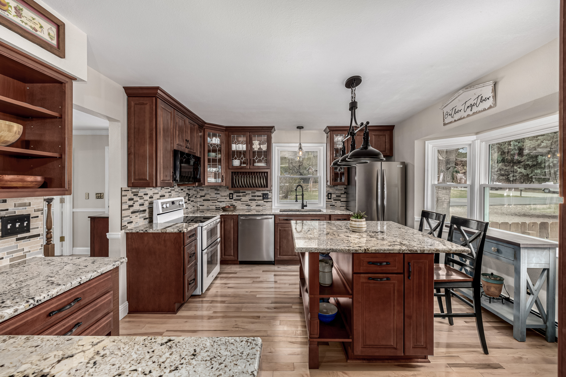 Look no further! This fantastic 3 bed, 4 bath residence in Applewood Mesa is the one for you! Featuring a charming facade w/brick accents, a lush green landscape, 2 garage spaces, and a welcoming front porch. Discover a sizeable dining & living area w/crown moulding, chair railing, elegant maple hardwood, neutral palette, and a wood-burning stove. The gourmet kitchen is worthy of a chef, equipped w/ample cabinetry, granite counters, tile backsplash, built-in appliances, a center island, and a lovely bay window. You'll also find a cozy family room and a den/office, each showcasing stylish French doors. The primary suite boasts plush carpet, a walk-in closet, and a lavish bath w/dual sinks for added convenience. Don't forget about the spacious loft skylights and a wet bar, perfect for an entertainment center! Also including an expansive backyard w/lovely decks and a convenient storage shed, this home has it all! Act now before it's gone!