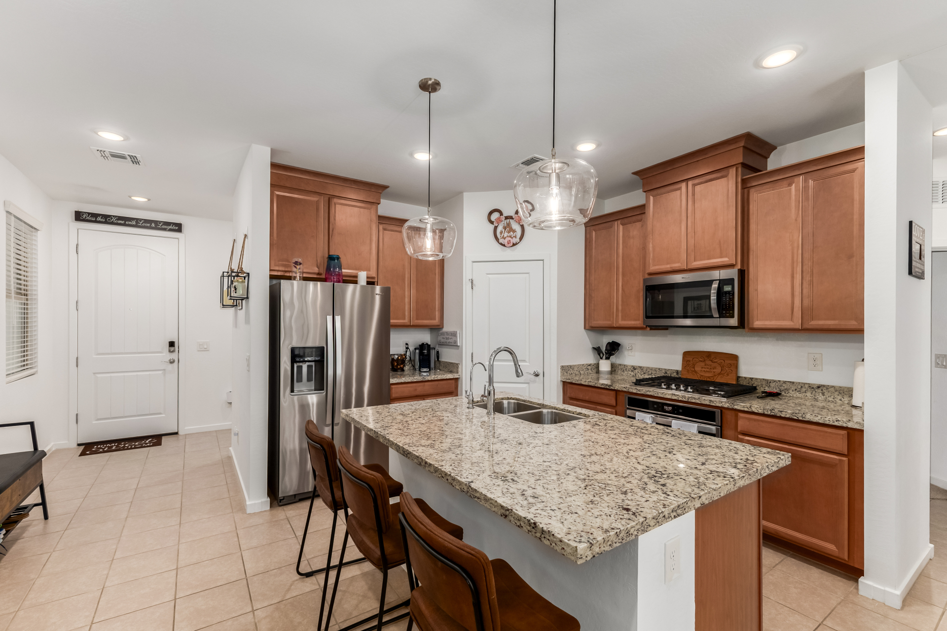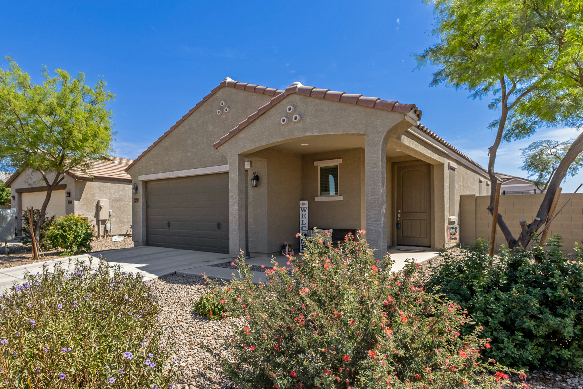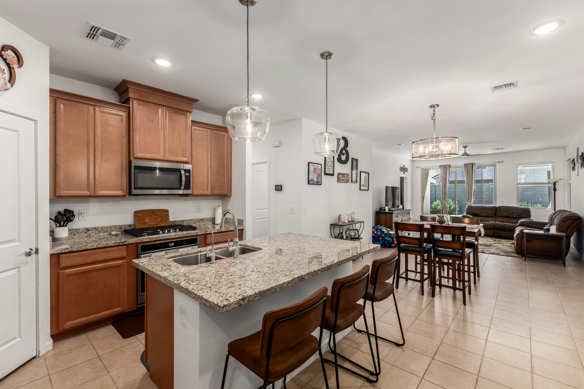A rare find! Welcome to this lovely 3-bed, 2-bath home featuring a 2-car garage and a thoughtfully designed interior that exudes comfort and convenience. Enjoy a seamless flow between the living room, dining area, and kitchen. Neutral paint, tile flooring, ceiling fans, tons of natural light, and stylish light fixtures are worth mentioning. Impeccable kitchen displays a handy pantry, stainless steel appliances, abundant cabinets, granite counters, and a center island with a breakfast bar. Carpeted main bedroom offers a private bathroom and a walk-in closet for easy organization. The secondary bedrooms include sliding door closets. Large backyard has a covered patio ideal for enjoying quiet mornings or relaxing afternoons. A deal like this won't last. Hurry!