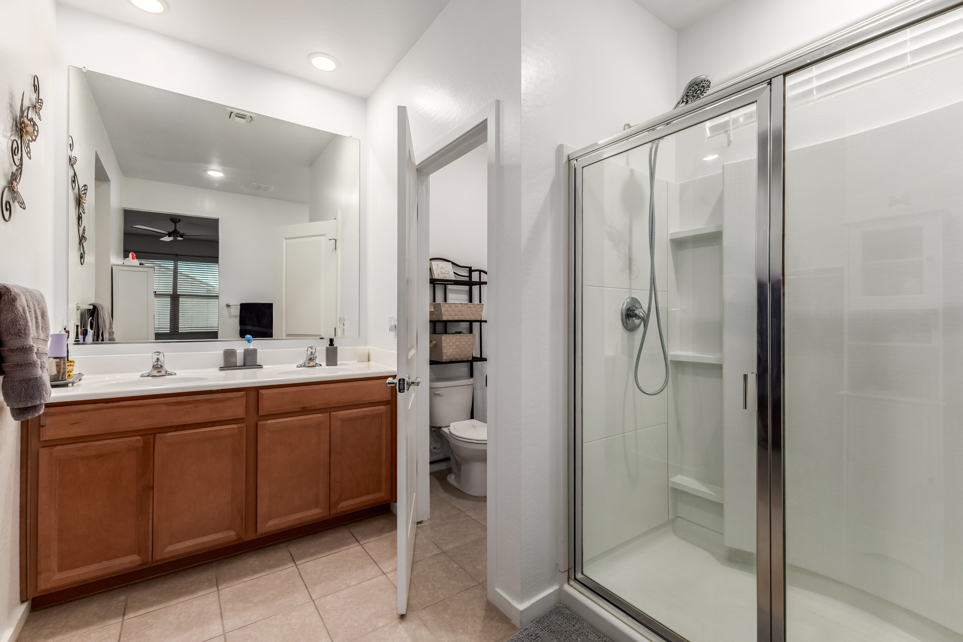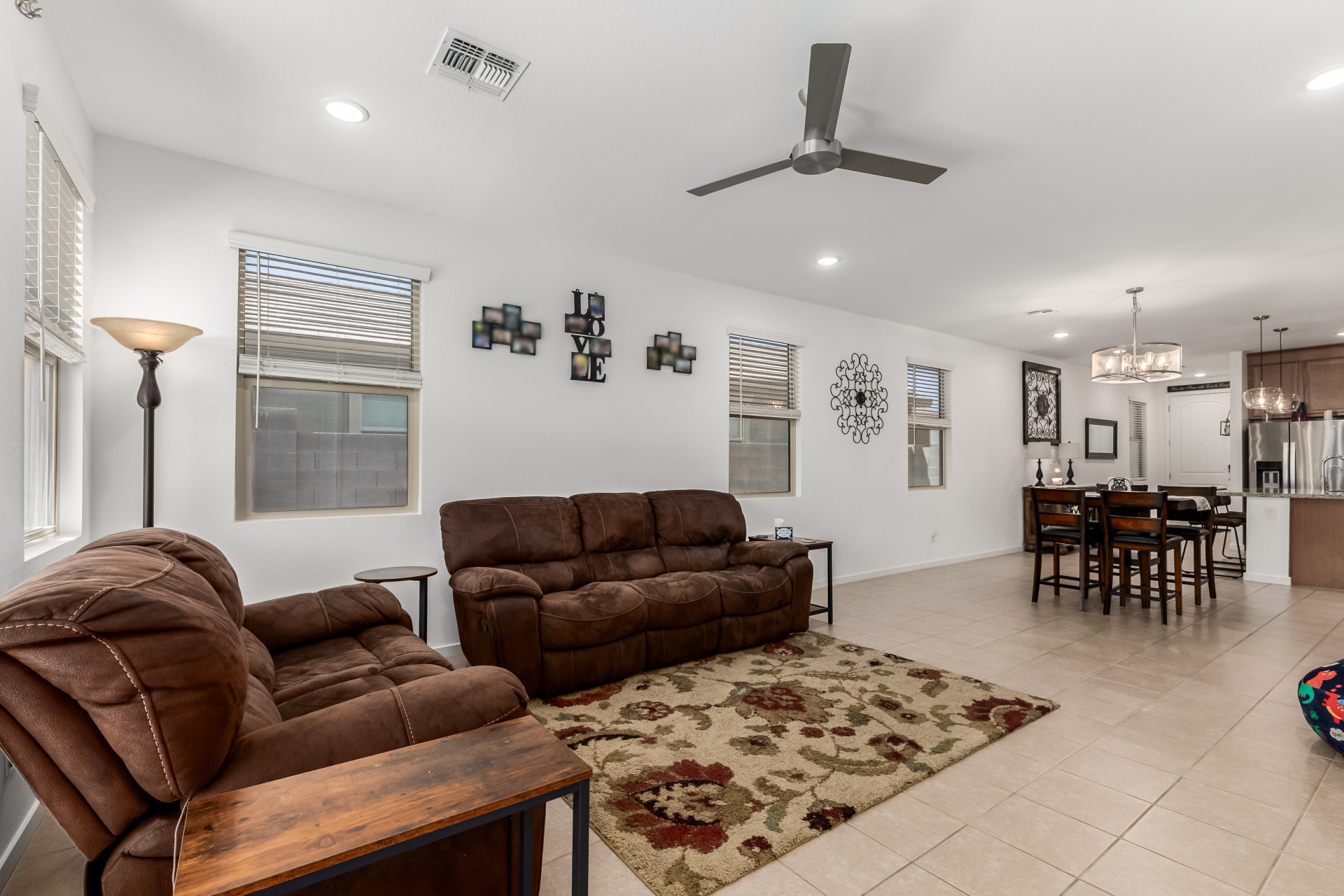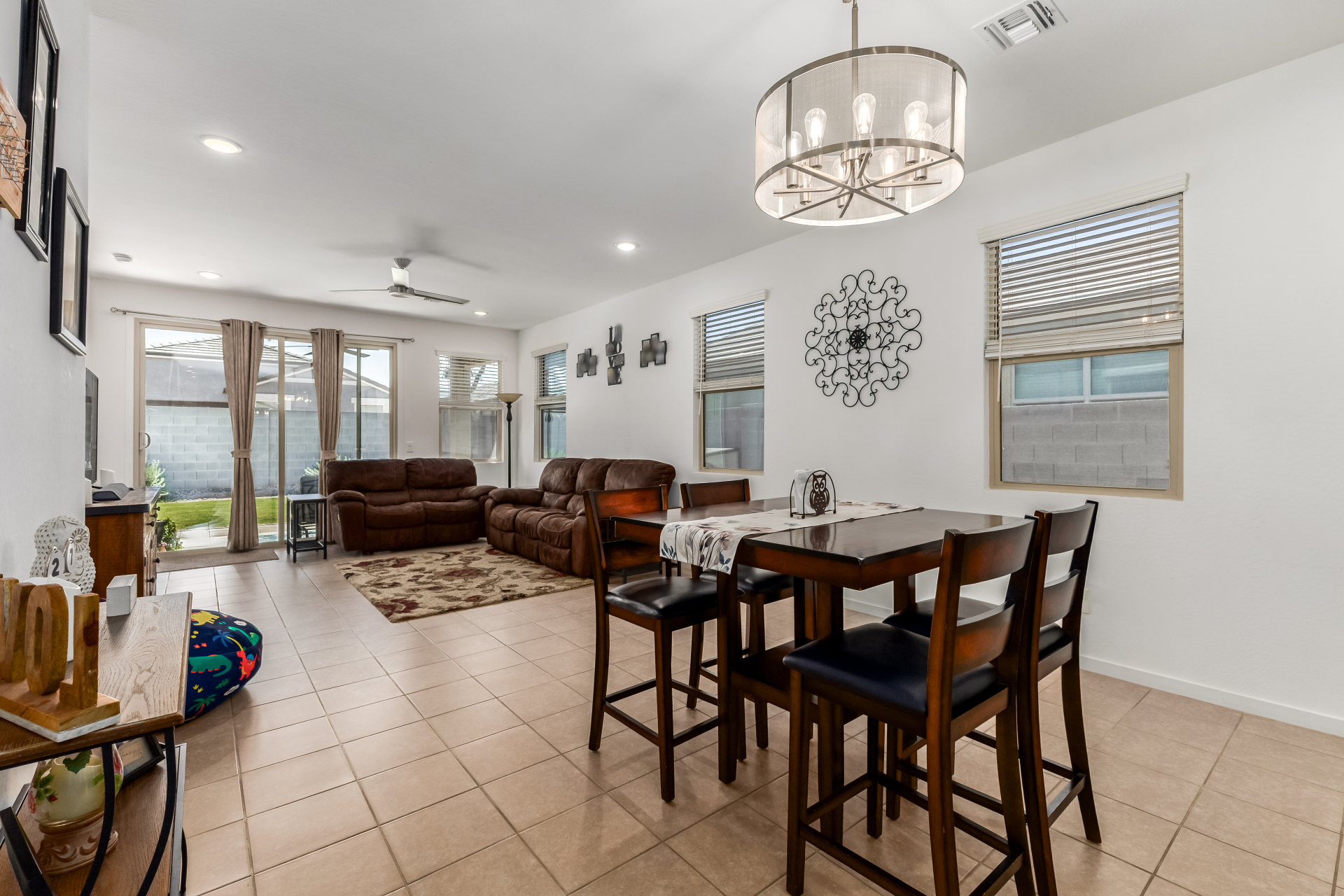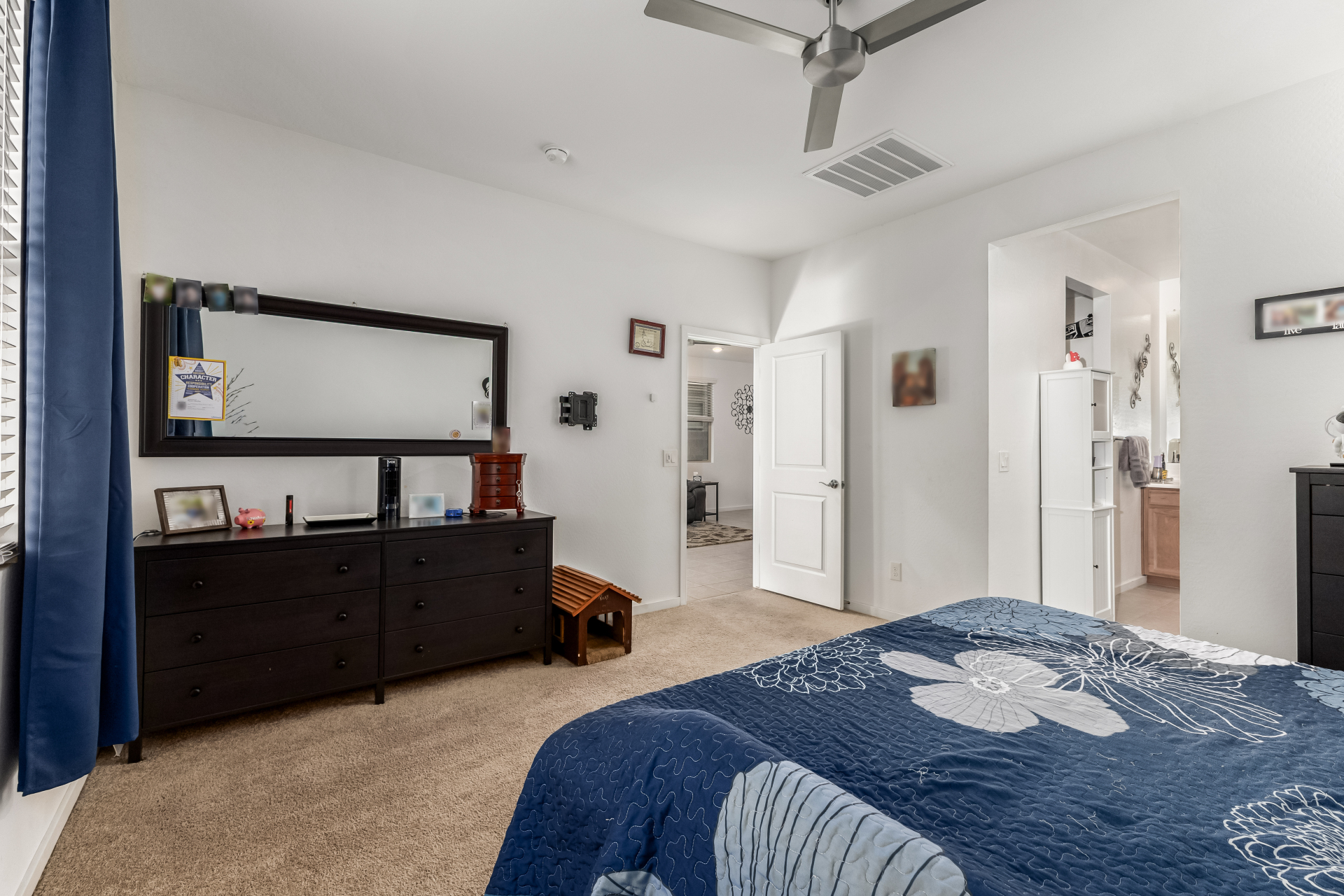 A rare find! Welcome to this lovely 3-bed, 2-bath home featuring a 2-car garage and a thoughtfully designed interior that exudes comfort and convenience. Enjoy a seamless flow between the living room, dining area, and kitchen. Neutral paint, tile flooring, ceiling fans, tons of natural light, and stylish light fixtures are worth mentioning. Impeccable kitchen displays a handy pantry, stainless steel appliances, abundant cabinets, granite counters, and a center island with a breakfast bar. Carpeted main bedroom offers a private bathroom and a walk-in closet for easy organization. The secondary bedrooms include sliding door closets. Large backyard has a covered patio ideal for enjoying quiet mornings or relaxing afternoons. A deal like this won't last. Hurry!