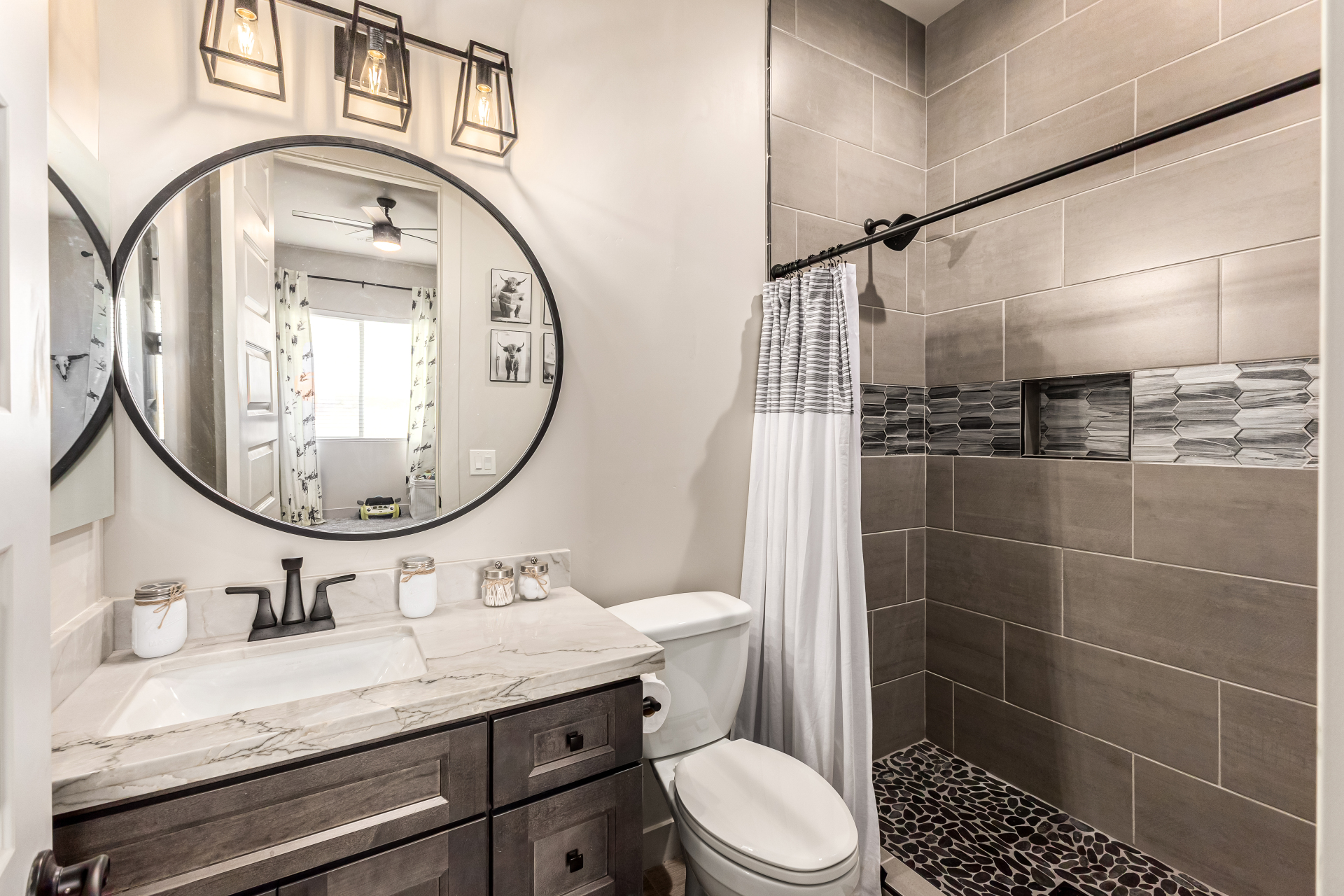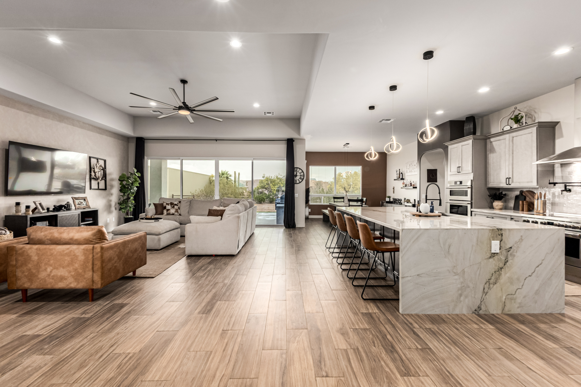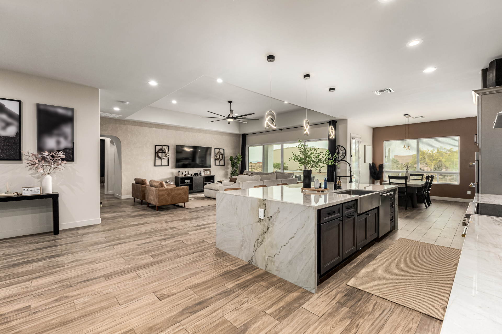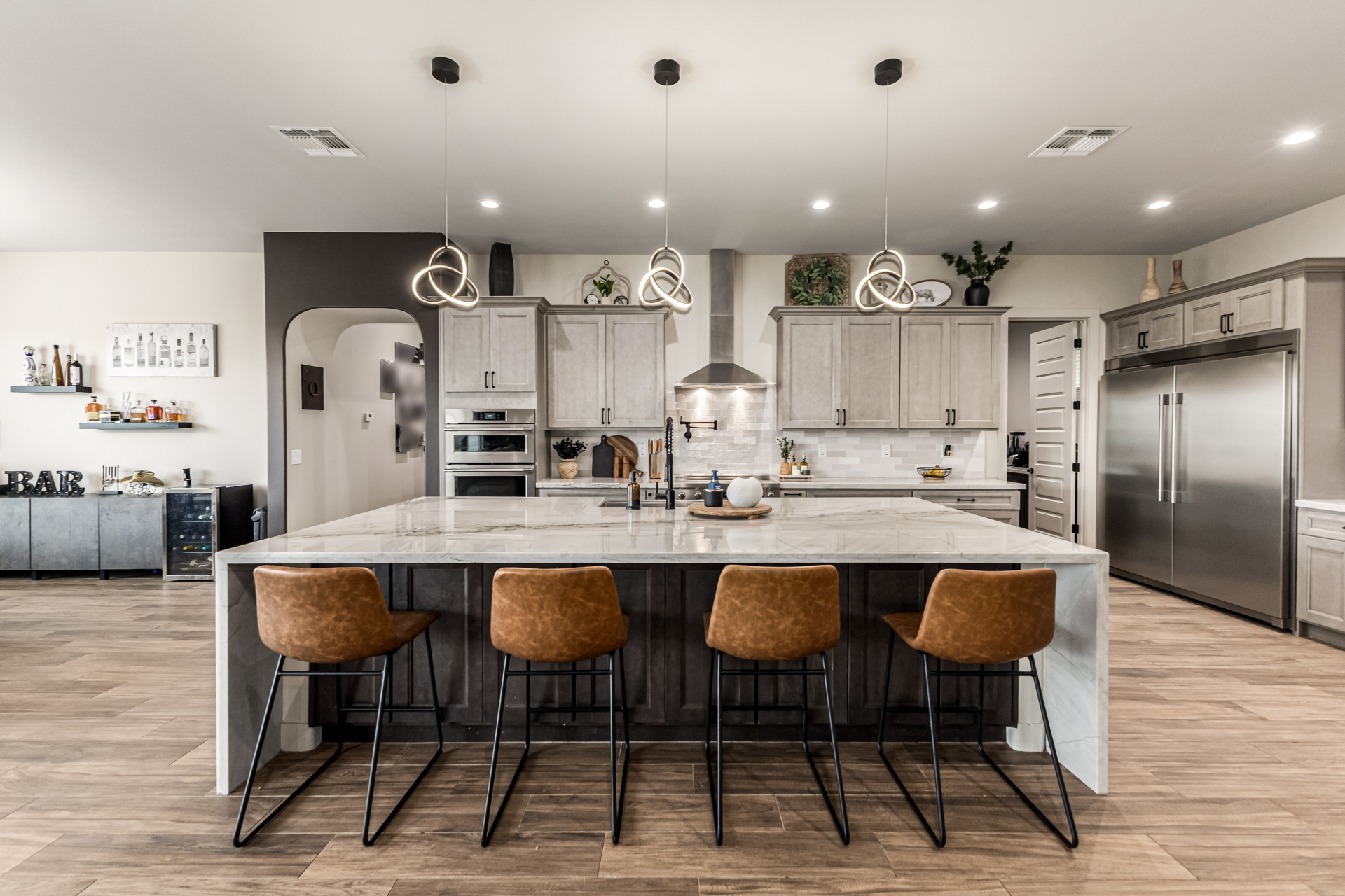 Welcome to this fabulous 2023 built home featuring 4 bedrooms nestled on a 1 AC lot with horse privileges! All the space you need for your animals, future additions, storage, cars, and more! The interior seamlessly blends style, comfort, and functionality, featuring wood-look floors, contemporary light fixtures, tons of natural light, and neutral colors that promote a modern feel throughout. The gourmet kitchen is a chef's dream, 2 tone cabinetry adorned with crown molding, tile backsplash, beautiful quartz countertops, SS Frigidaire Professional Series appliances, a walk-in pantry, and an island with a breakfast bar, perfect for entertaining. The main bedroom is a true retreat, offering a spa-like bathroom with double vanities, a separate shower & tub, a spacious walk-in closet
