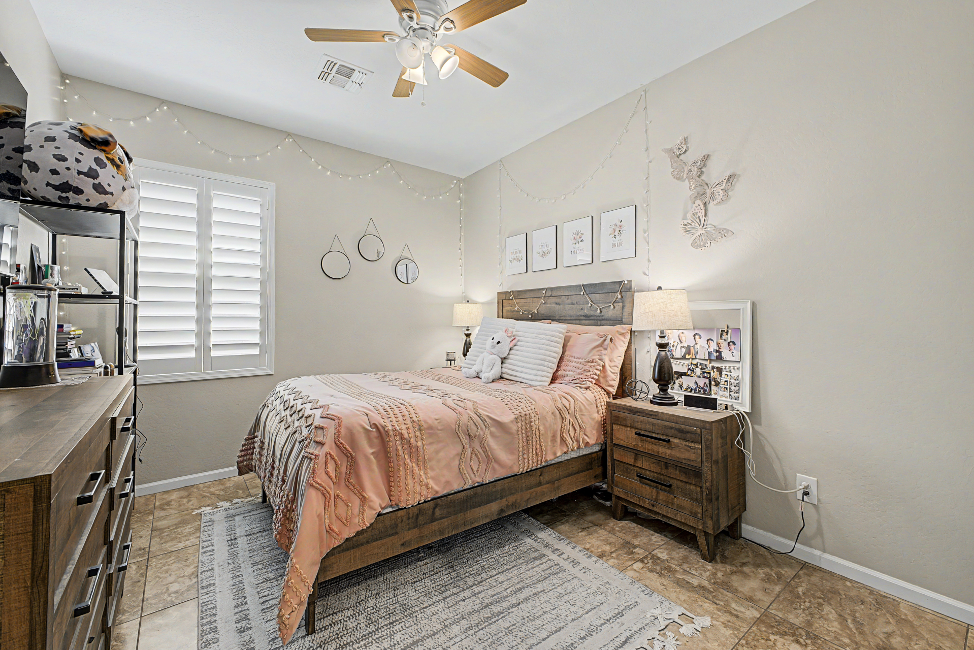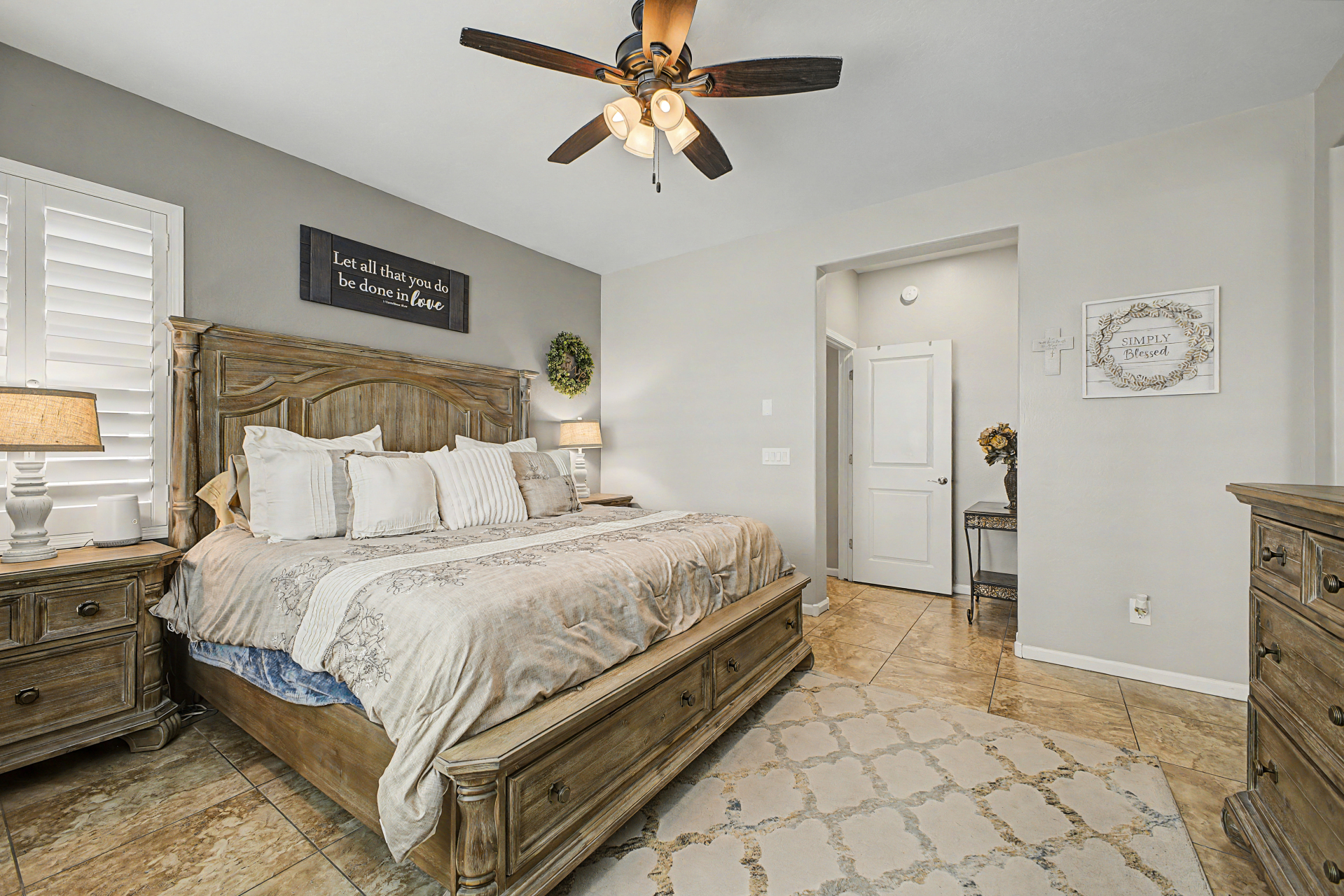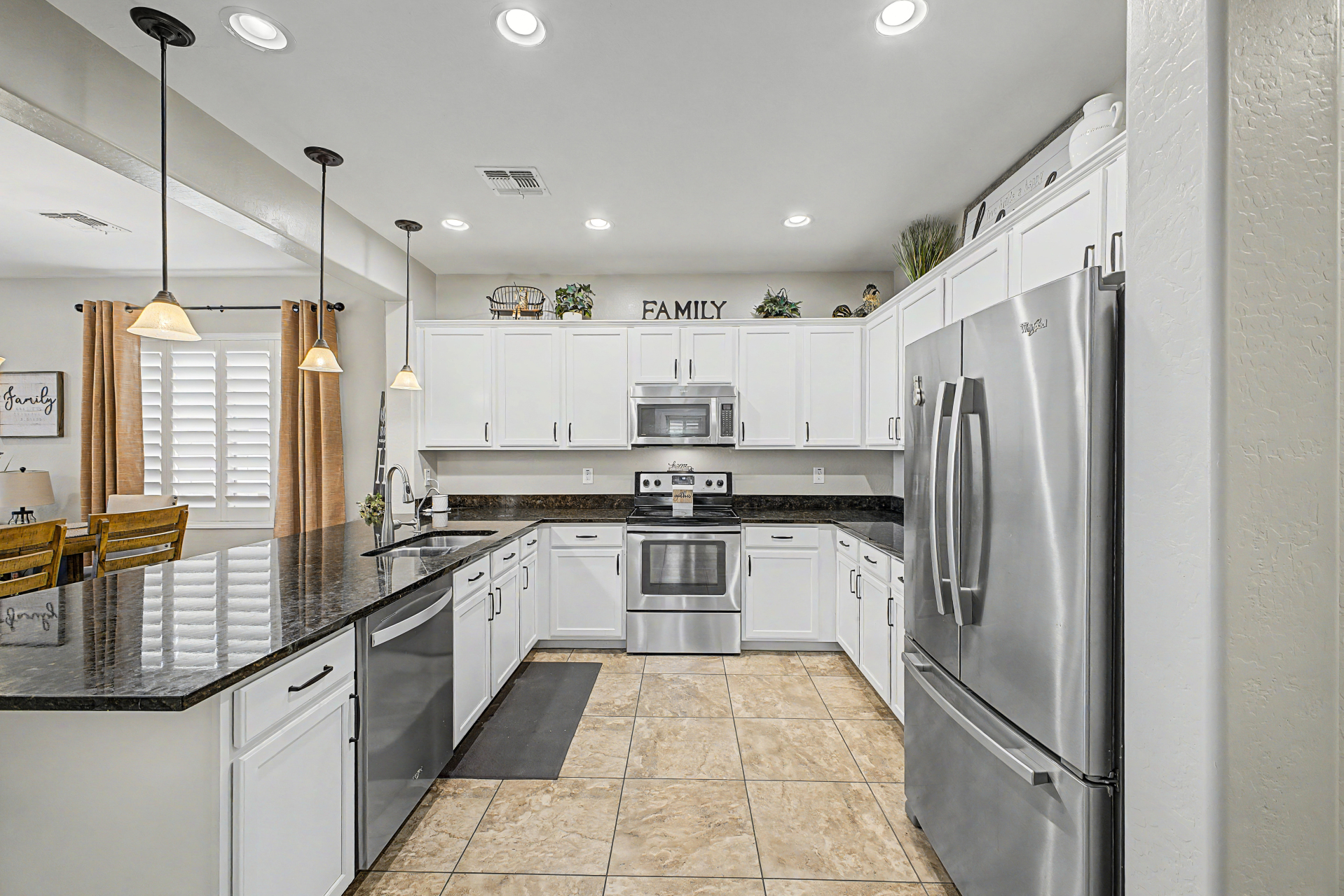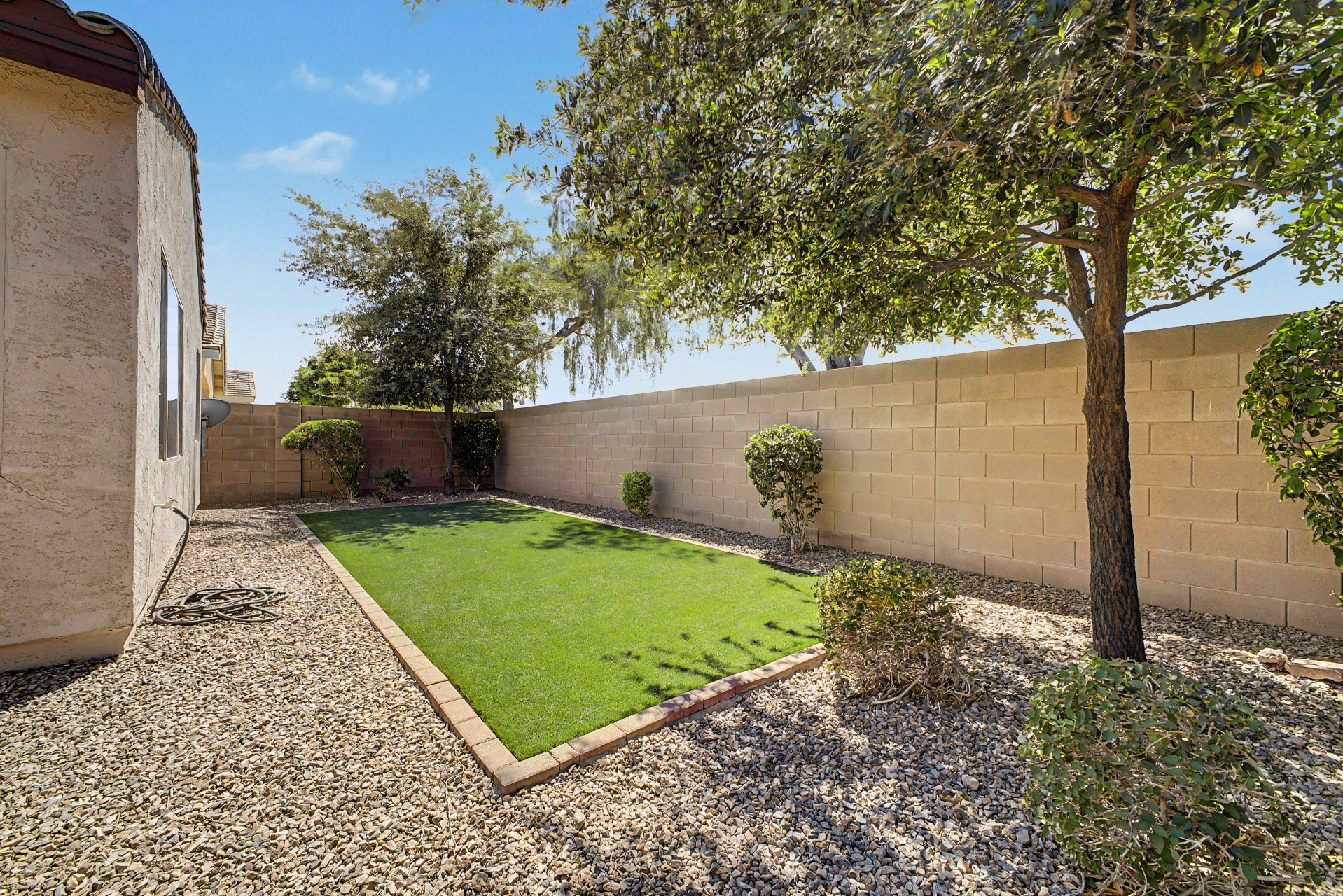 Welcome to this beautiful rare 5 bedroom, 3 bathroom single level home in Coldwater Ranch. Offering an open great room floorplan, tile flooring throughout, classy plantation shutters throughout, warm paint colors, granite counter tops, pre-wired for surround sound, an open kitchen to the great room with a new dishwasher, stainless steel appliances and sit up breakfast bar for those casual meals. The only house on the street with a paver driveway and turf front yard. The community features spacious grassy areas, a soccer field, a baseball field, and several small parks--perfect for recreation or relaxation. The house backs to an open desert area for complete privacy and to be amazed by awesome sunsets or stargazing while sitting on your back patio sipping a cold beverage.