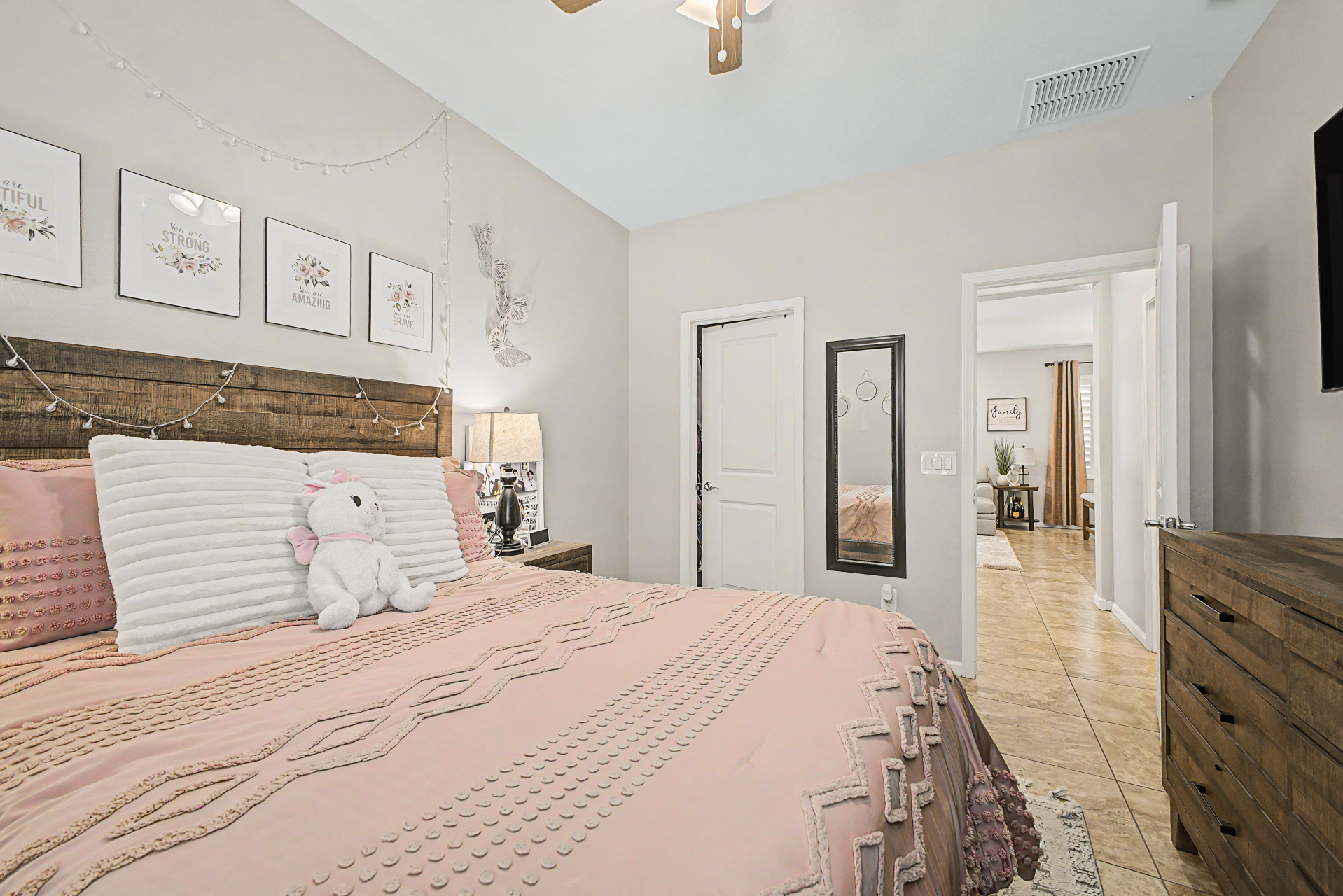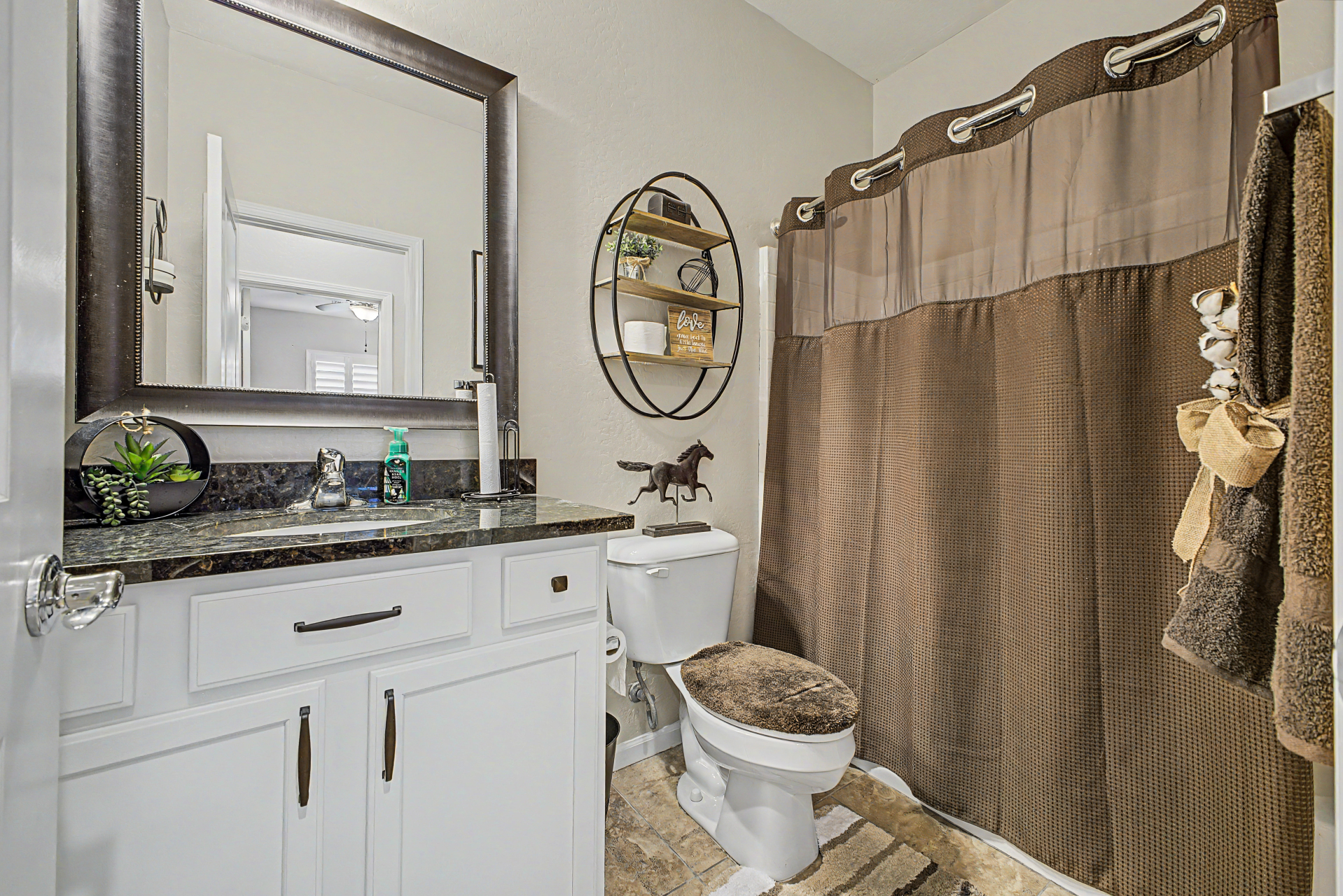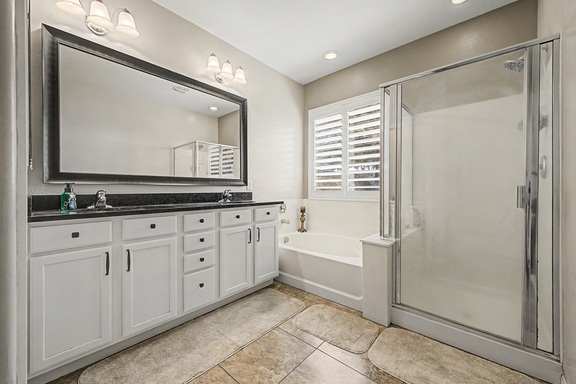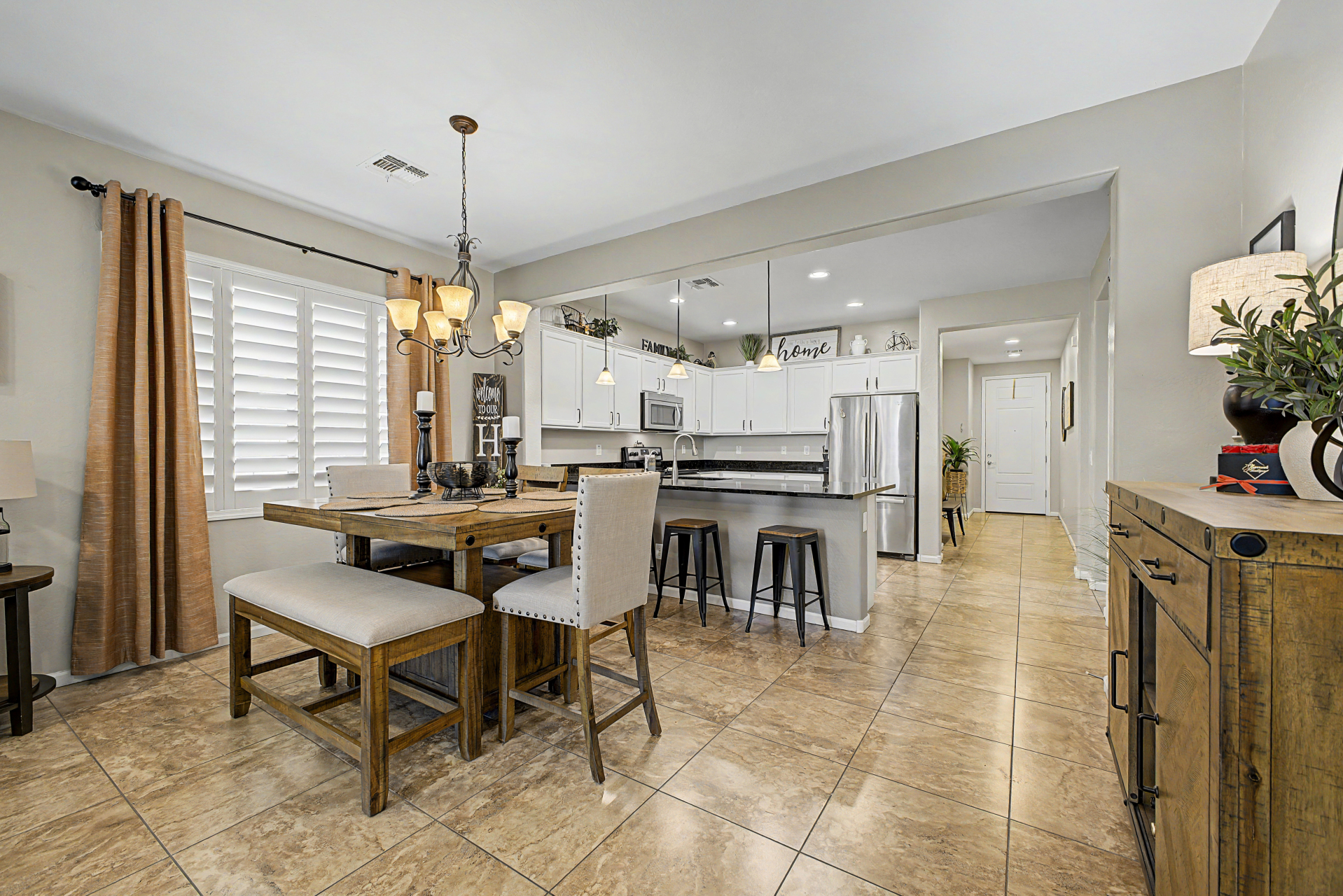 Welcome to this beautiful rare 5 bedroom, 3 bathroom single level home in Coldwater Ranch. Offering an open great room floorplan, tile flooring throughout, classy plantation shutters throughout, warm paint colors, granite counter tops, pre-wired for surround sound, an open kitchen to the great room with a new dishwasher, stainless steel appliances and sit up breakfast bar for those casual meals. The only house on the street with a paver driveway and turf front yard. The community features spacious grassy areas, a soccer field, a baseball field, and several small parks--perfect for recreation or relaxation. The house backs to an open desert area for complete privacy and to be amazed by awesome sunsets or stargazing while sitting on your back patio sipping a cold beverage.